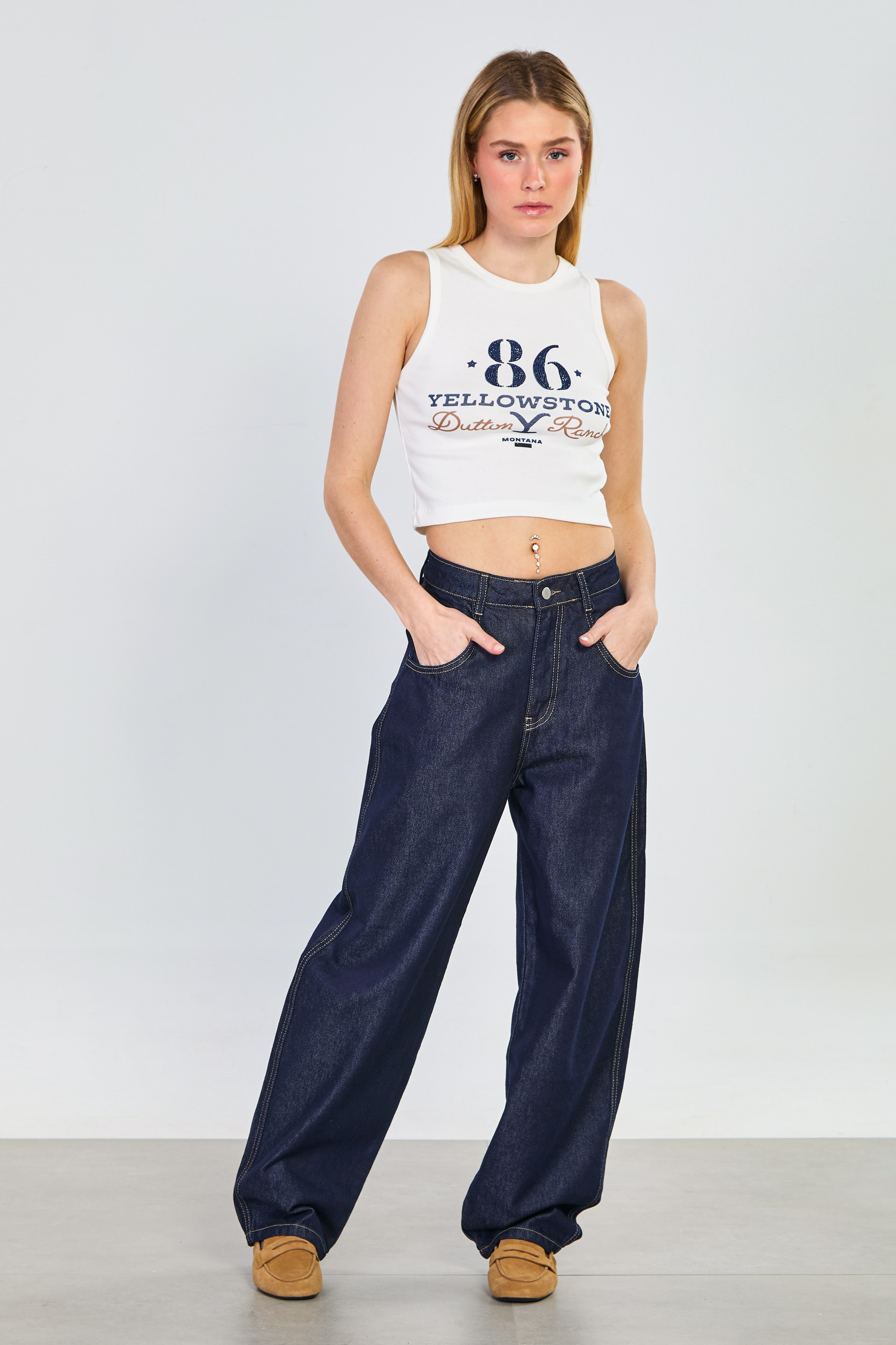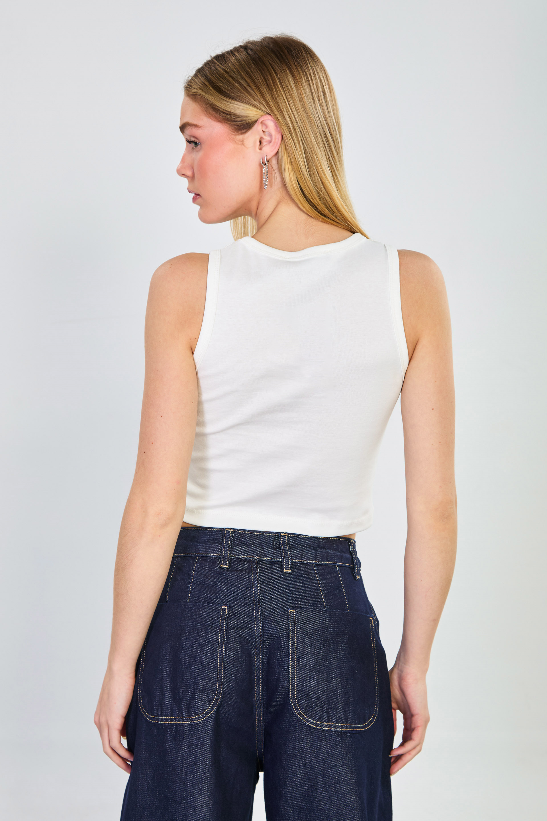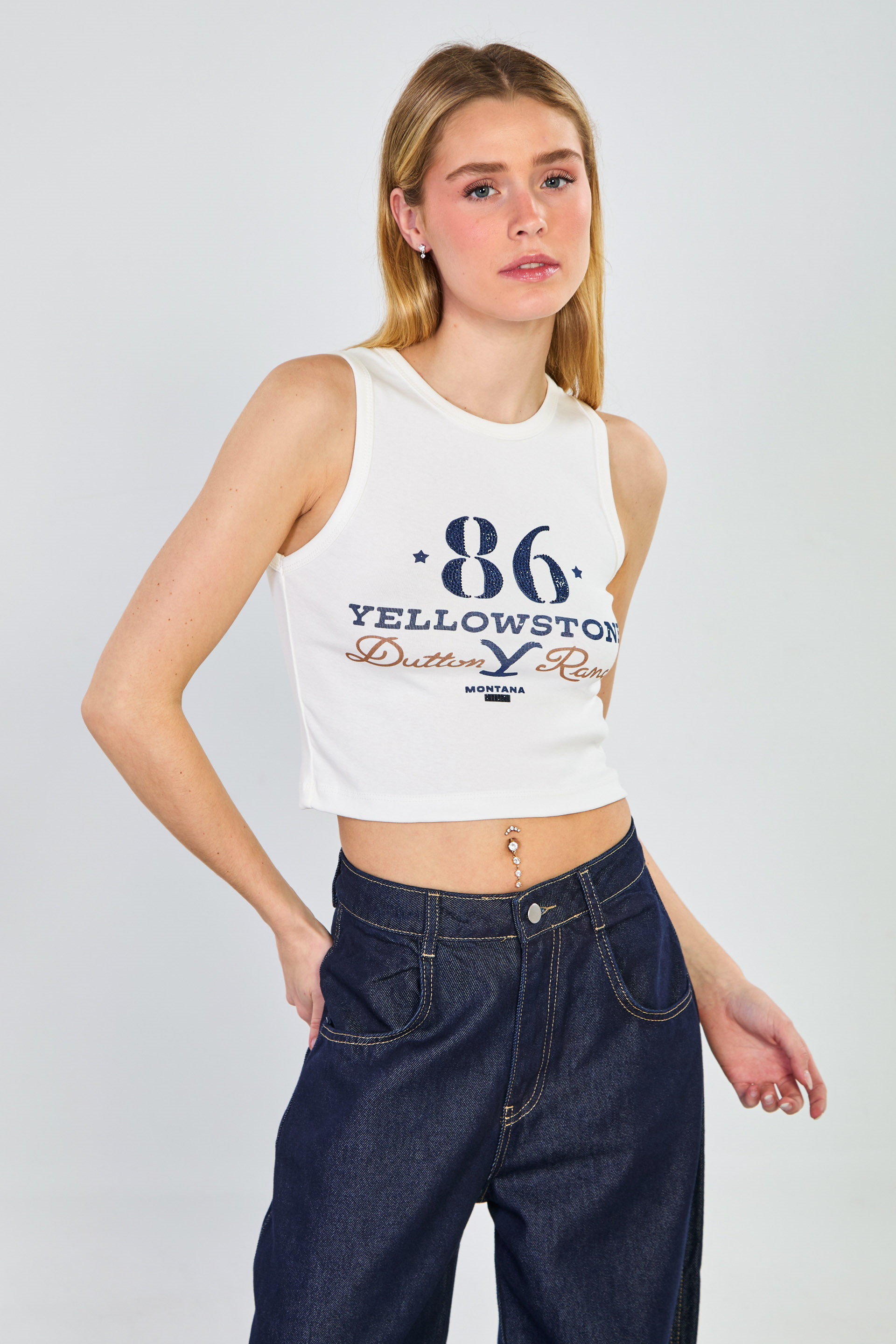 Kadın 86 Yellowstone Yazılı Kolsuz Body - Ekru