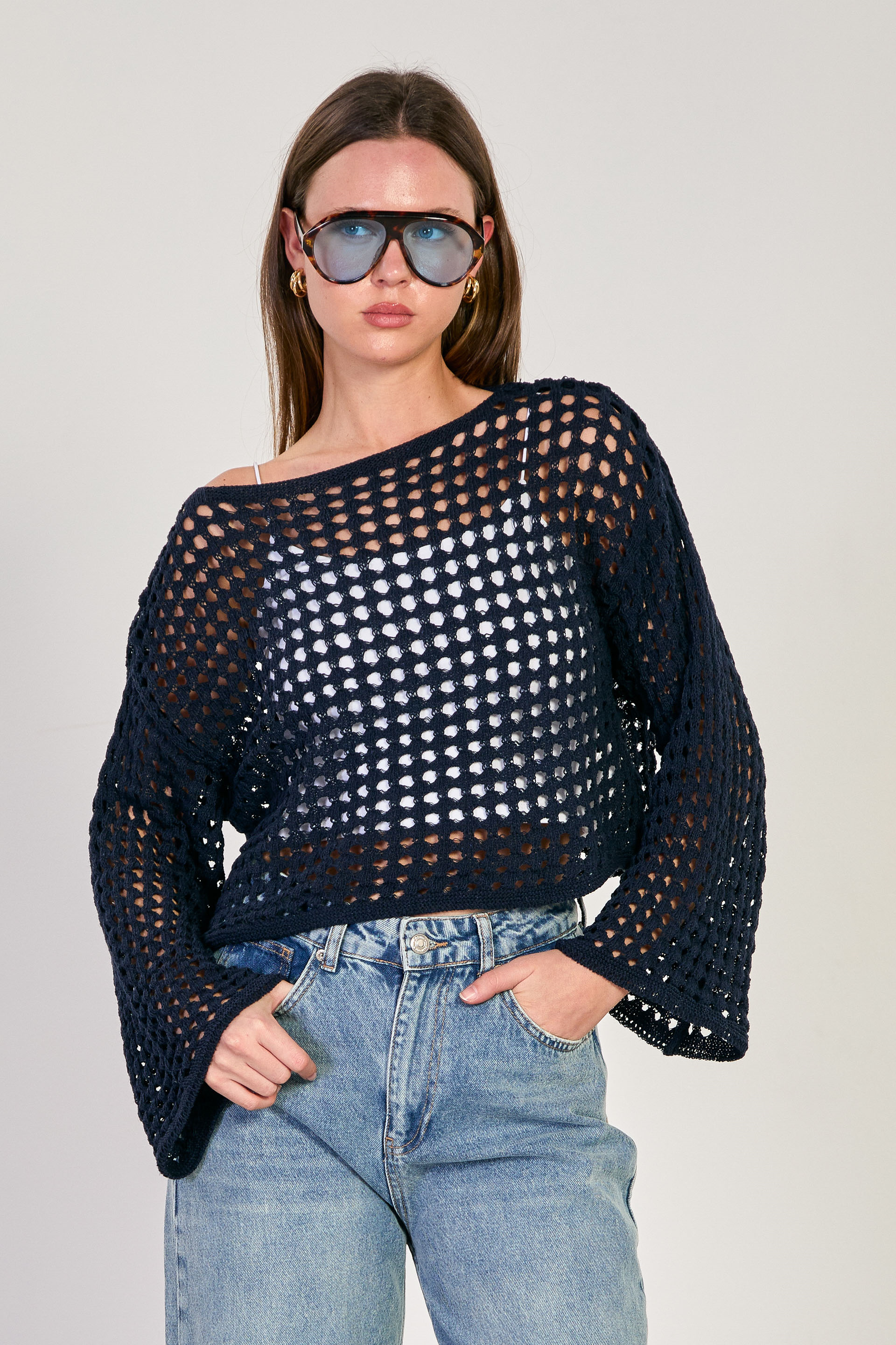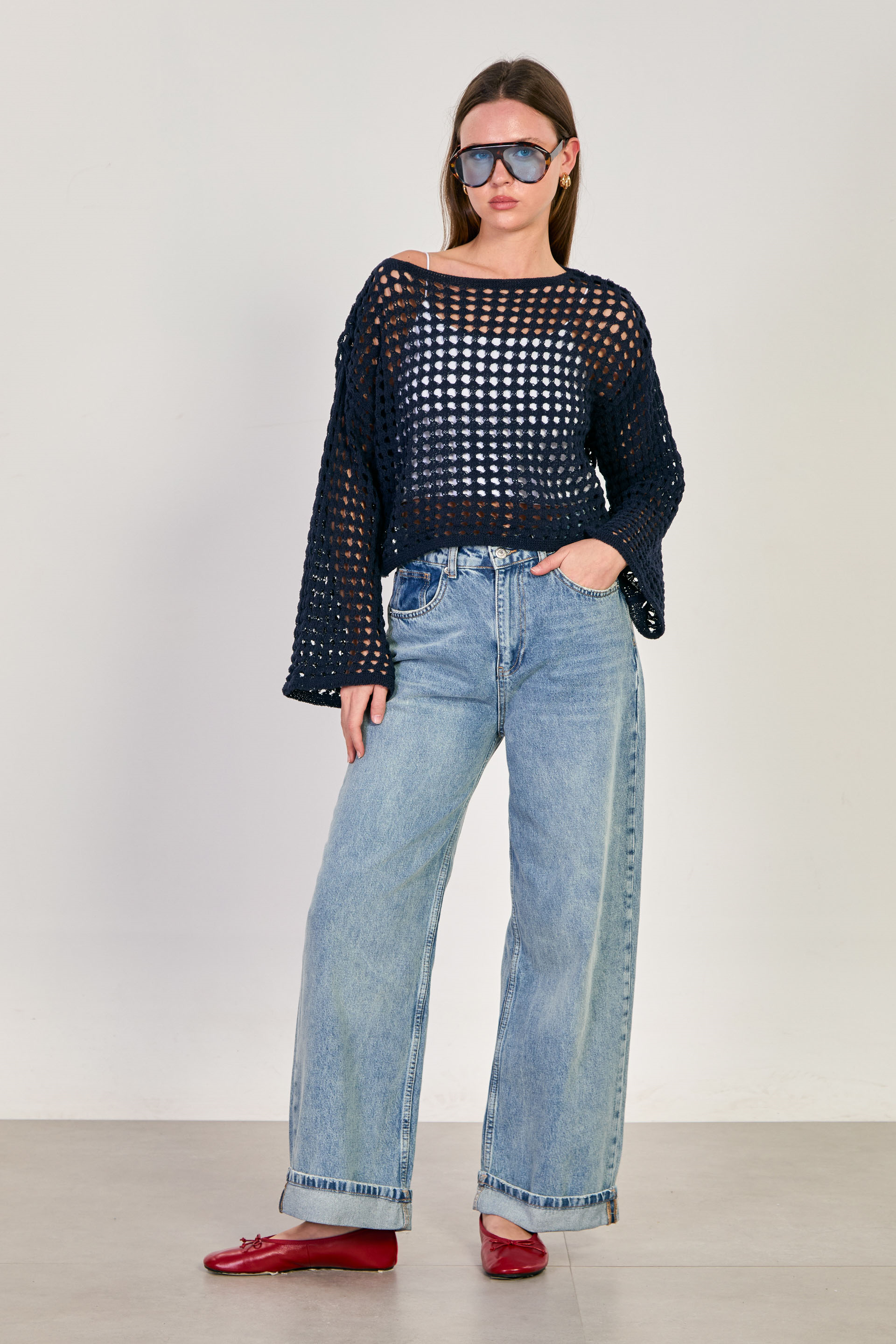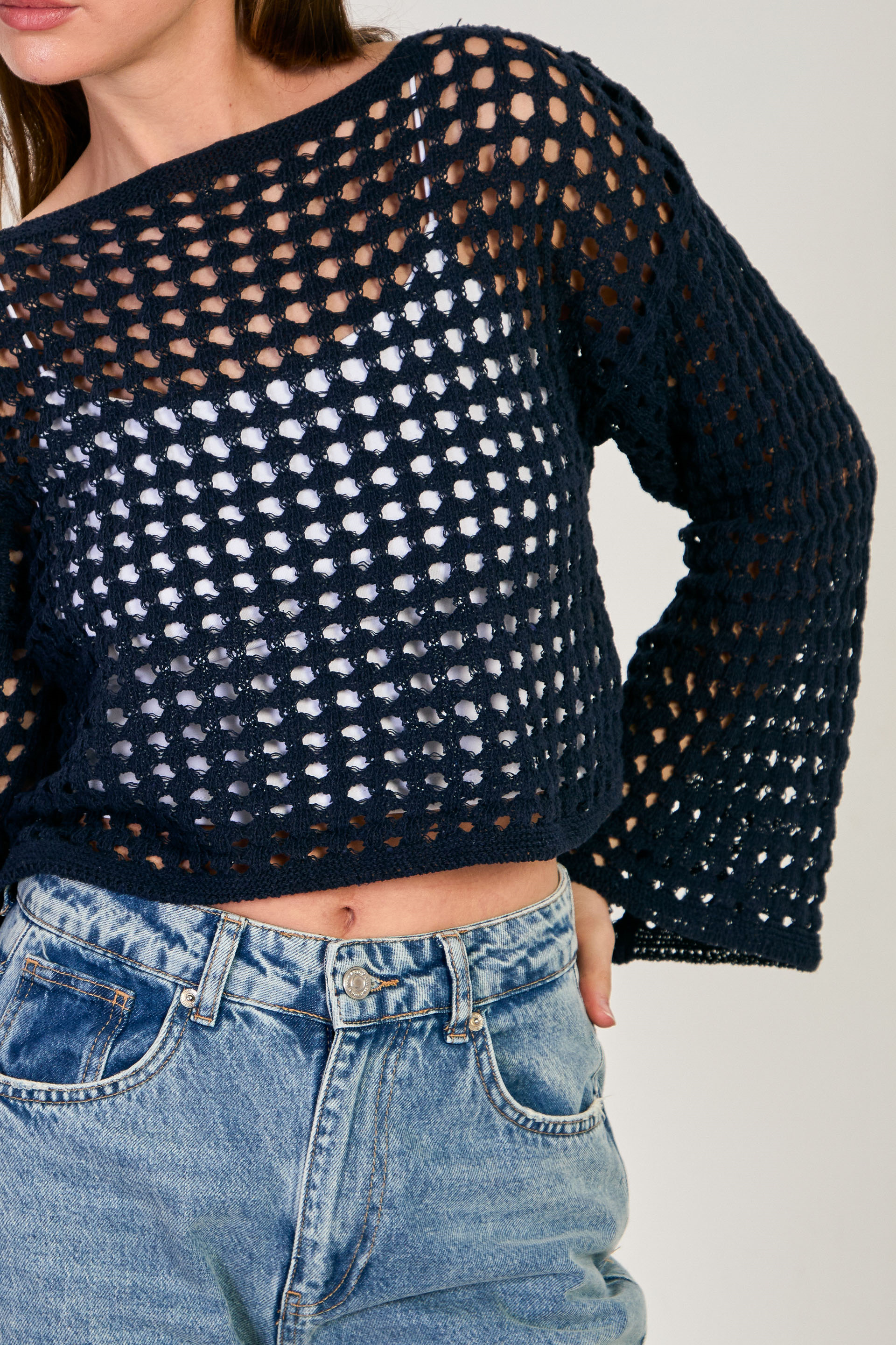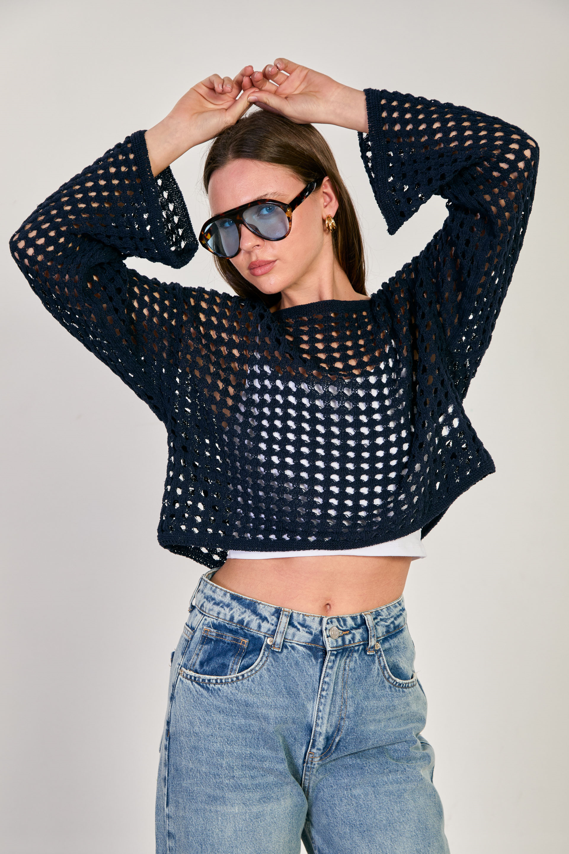 Kadın Ajurlu Crop Kazak - Lacivert