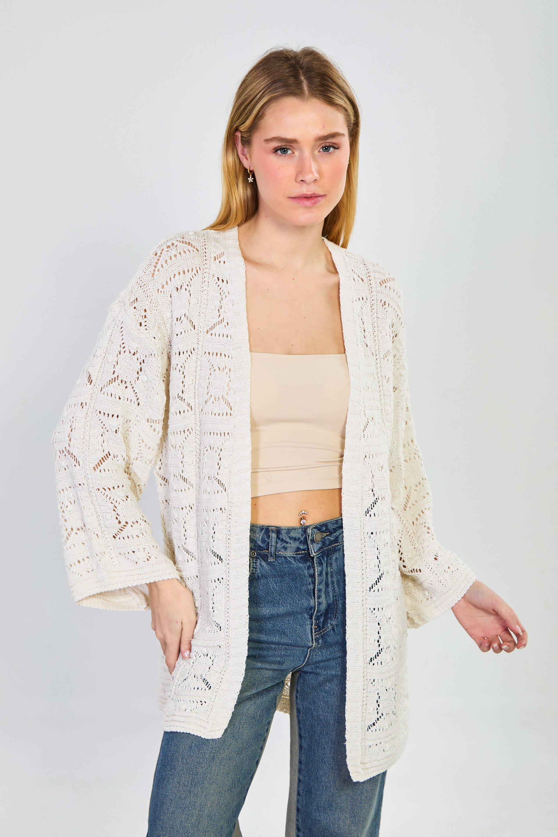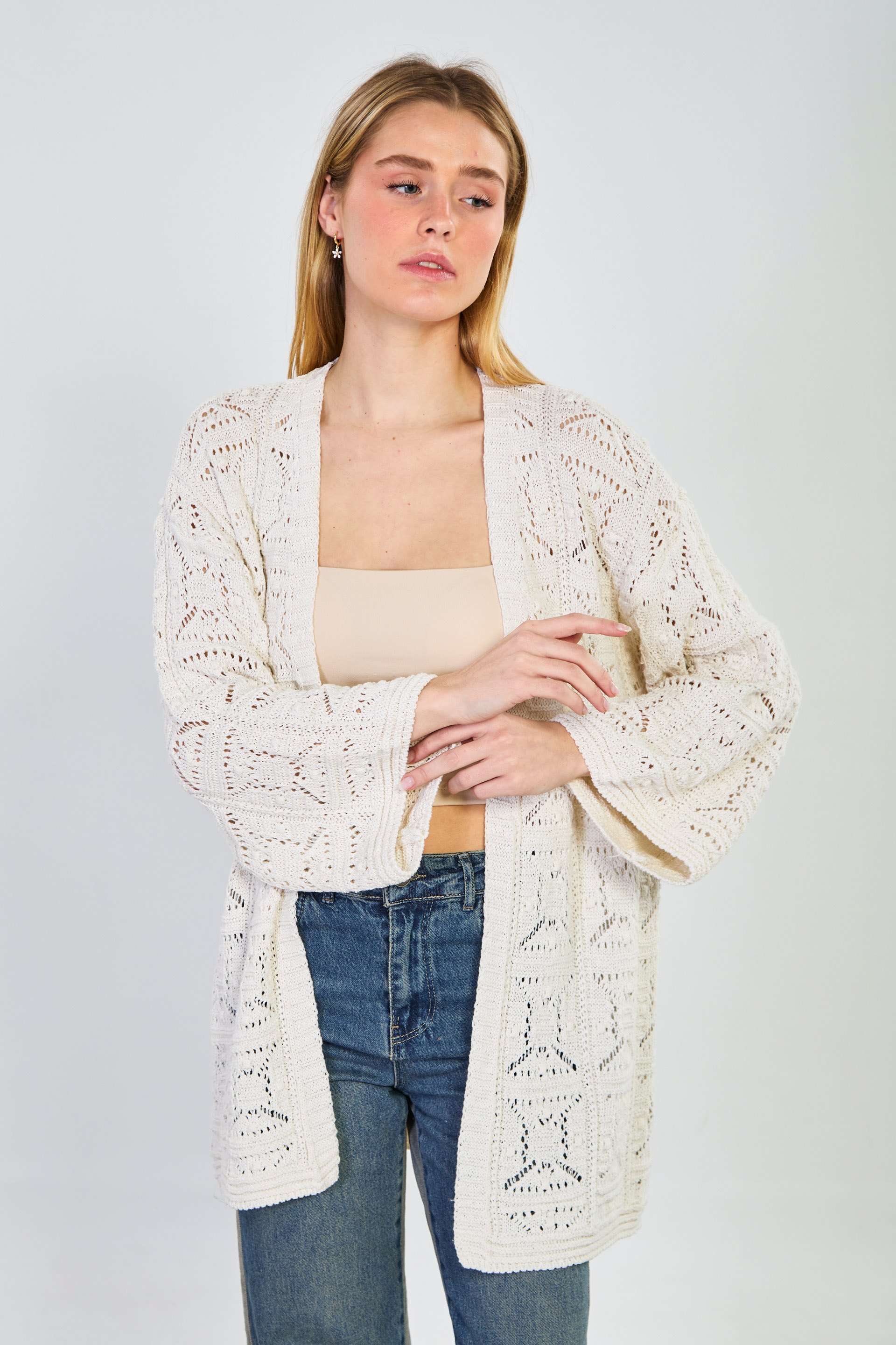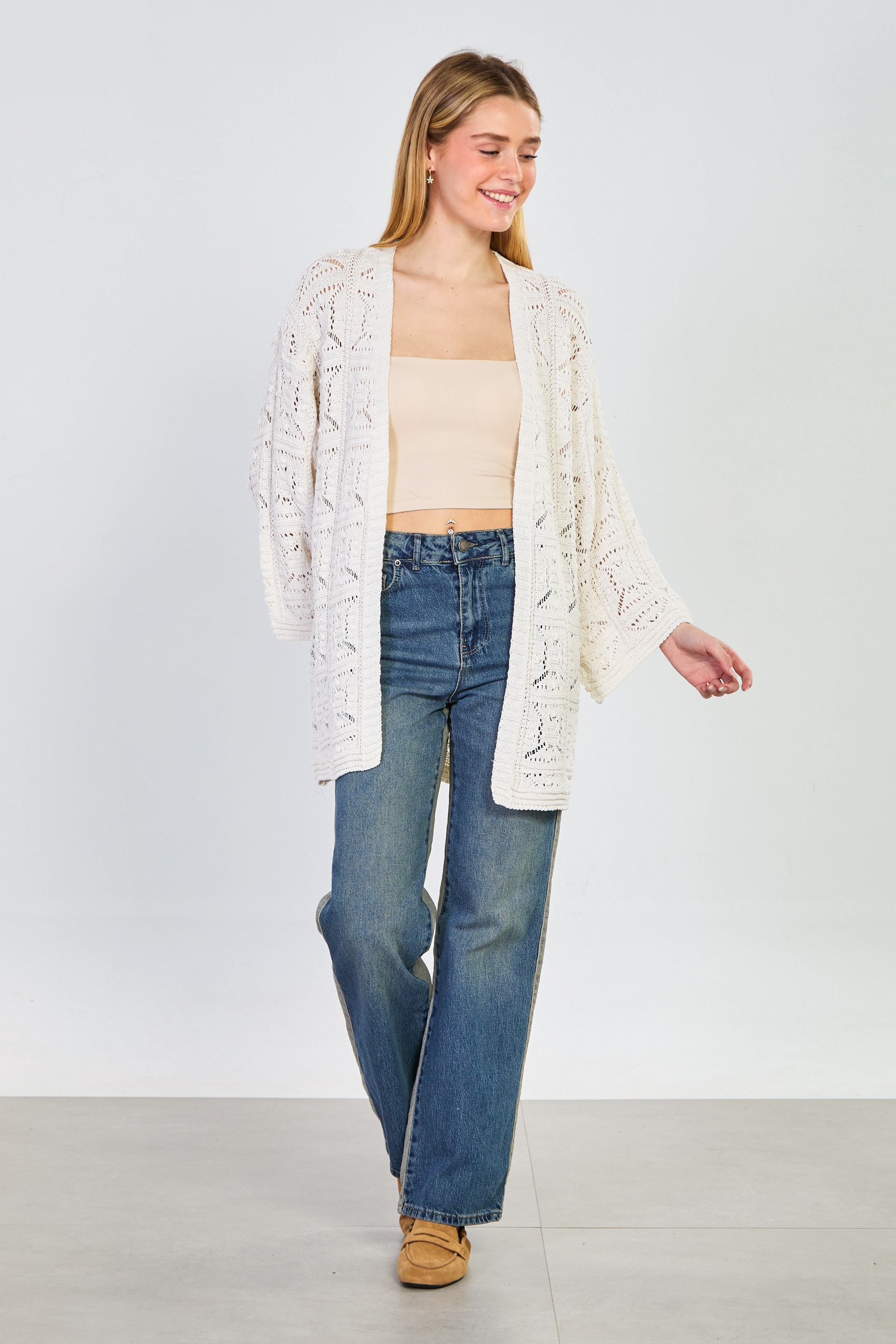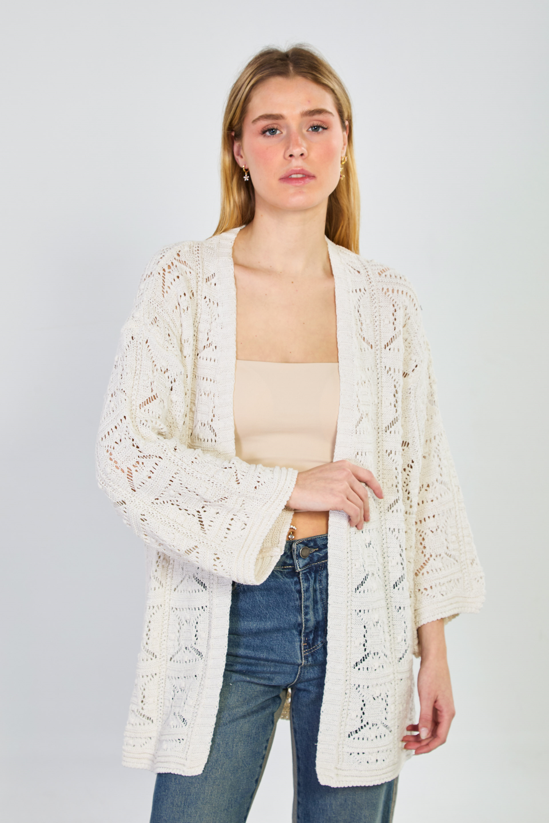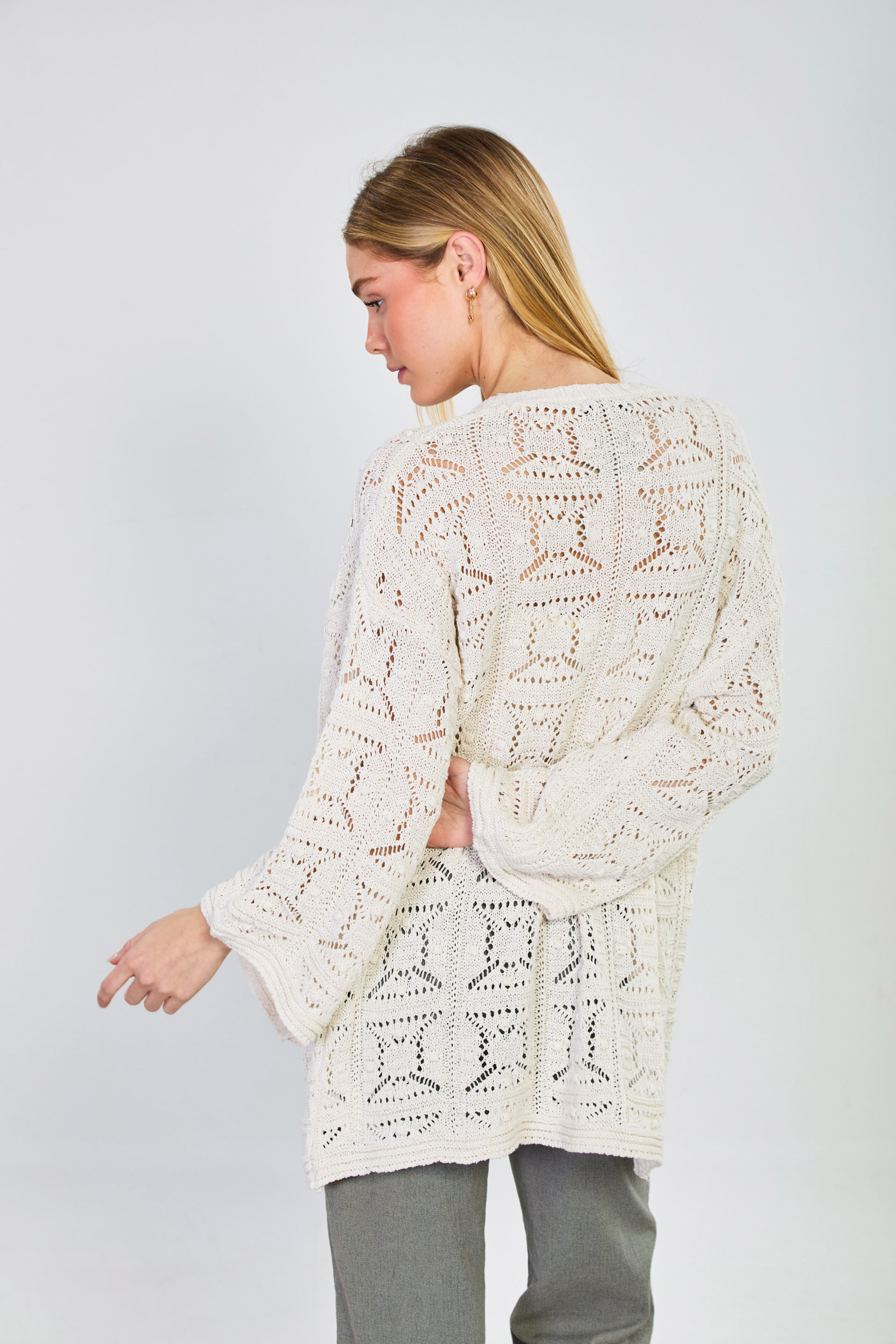Kadın Ajurlu Uzun Hırka - Natural
