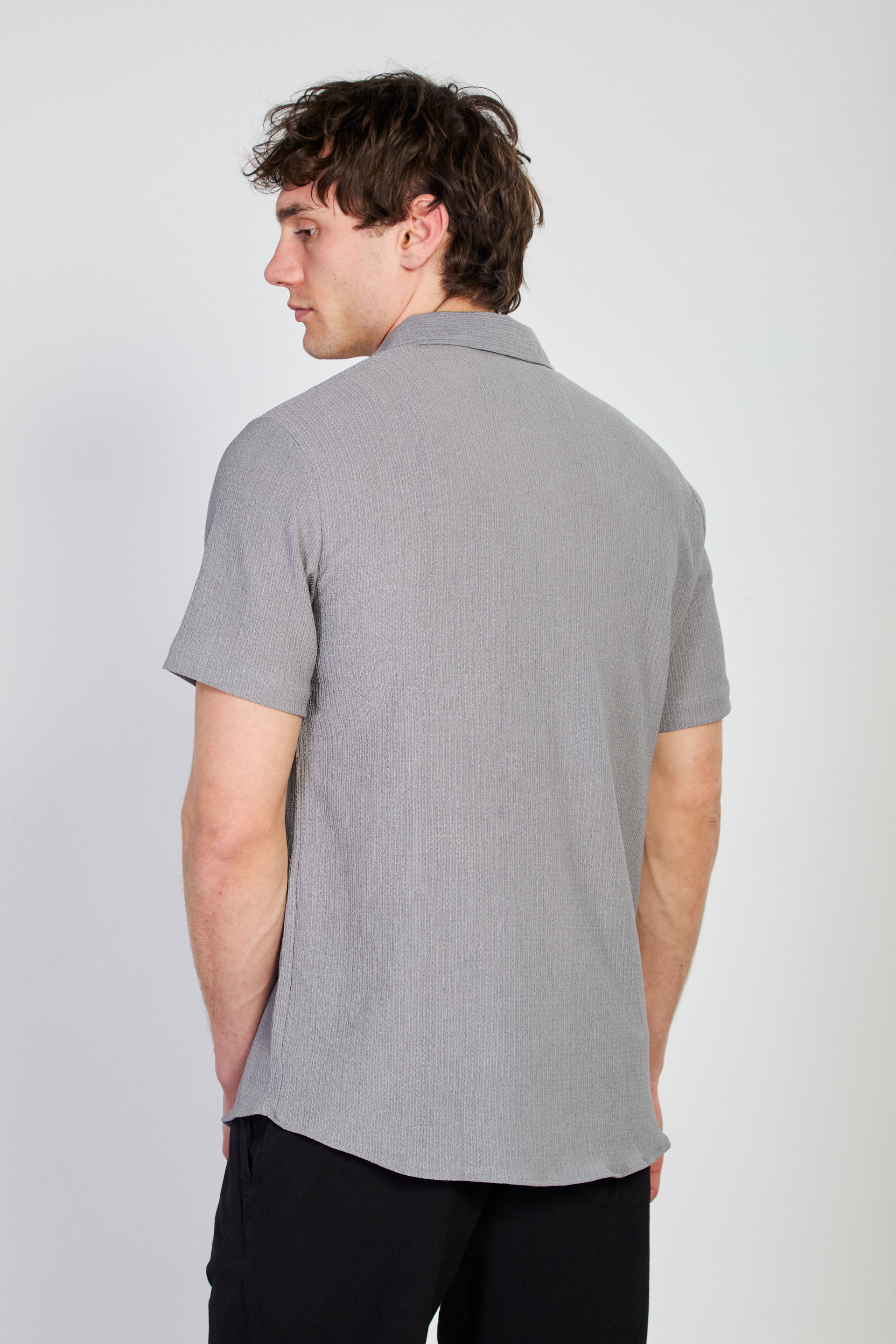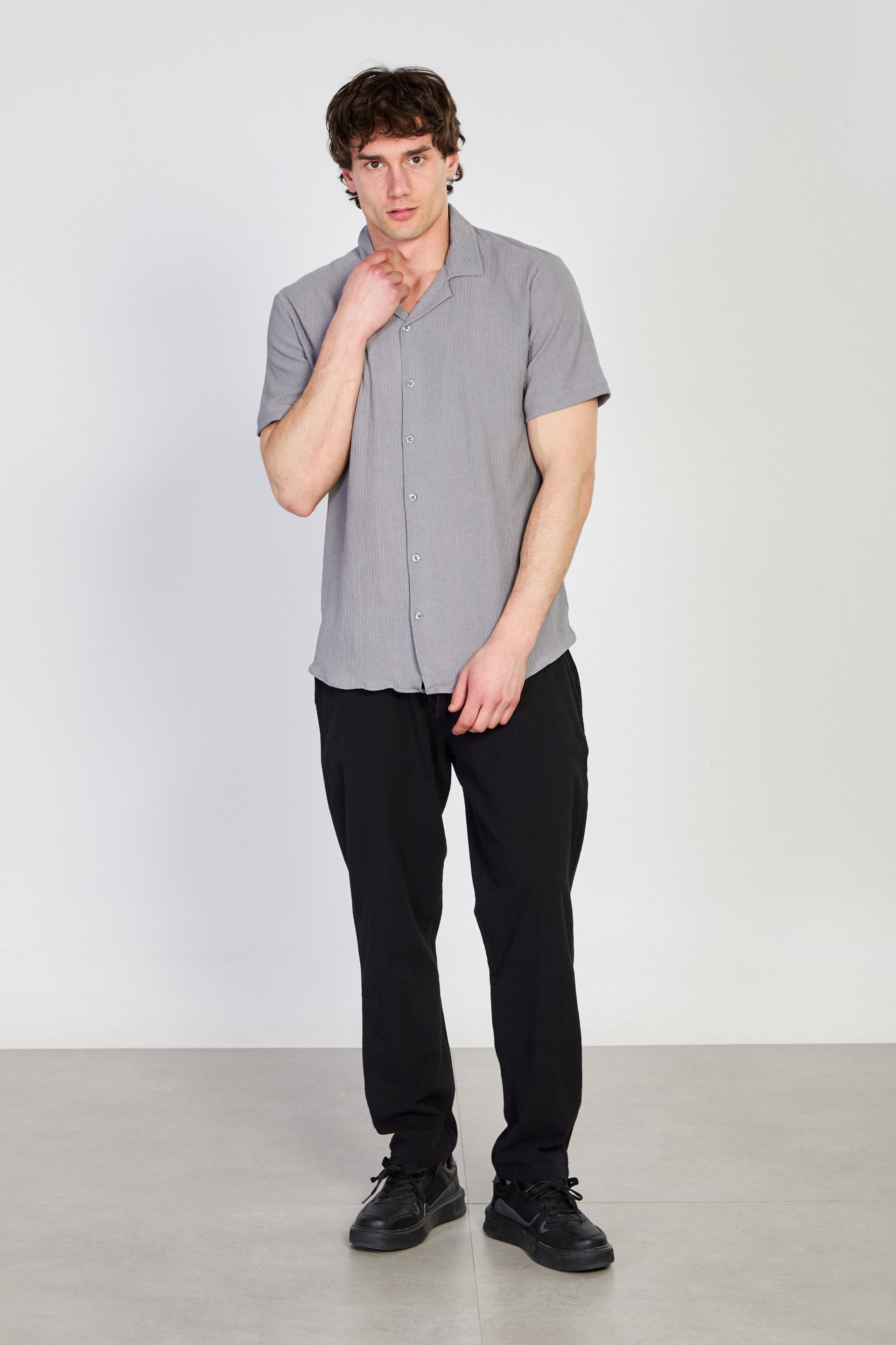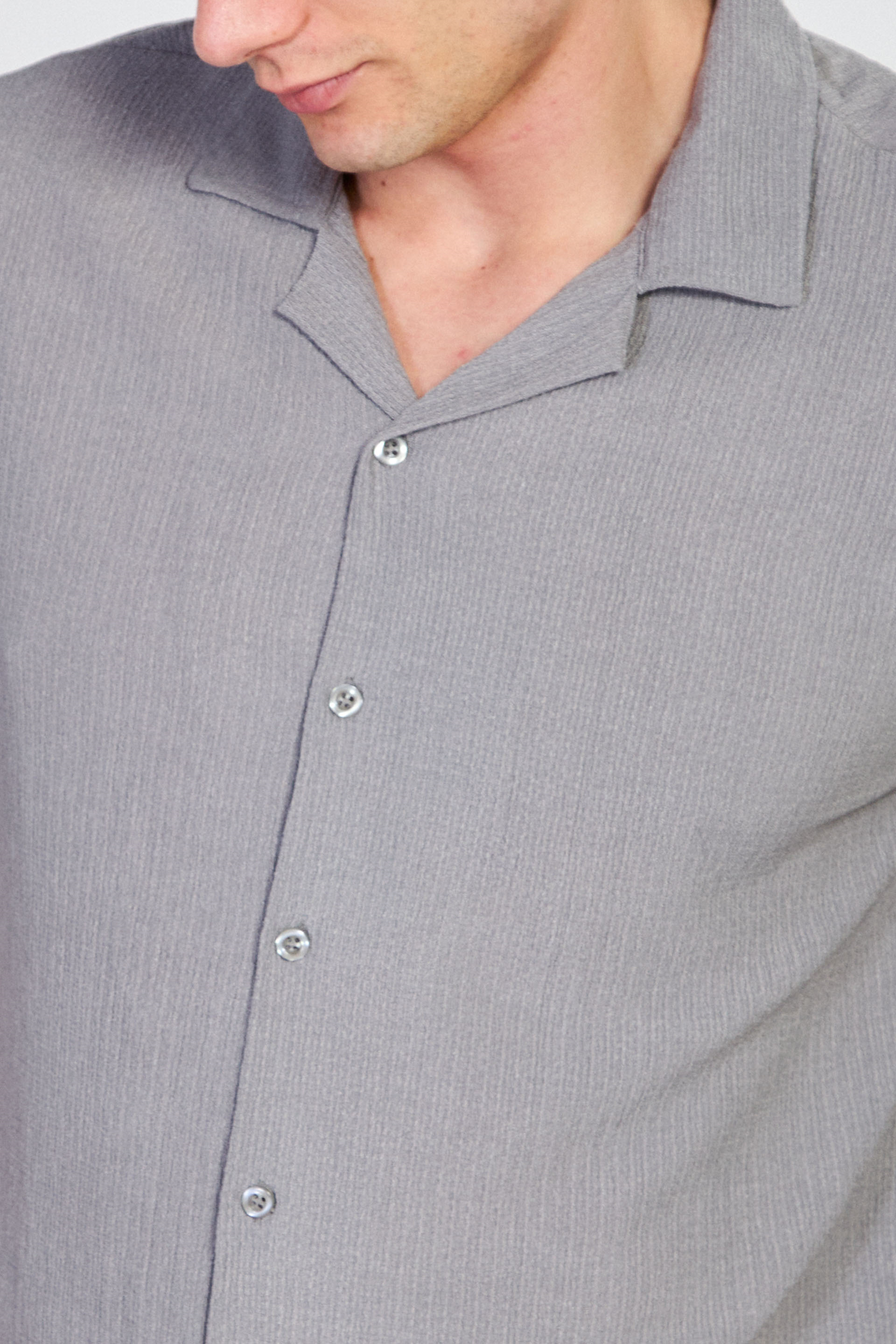 Erkek Apaş Yaka Bürümcük Gömlek - Açık Gri