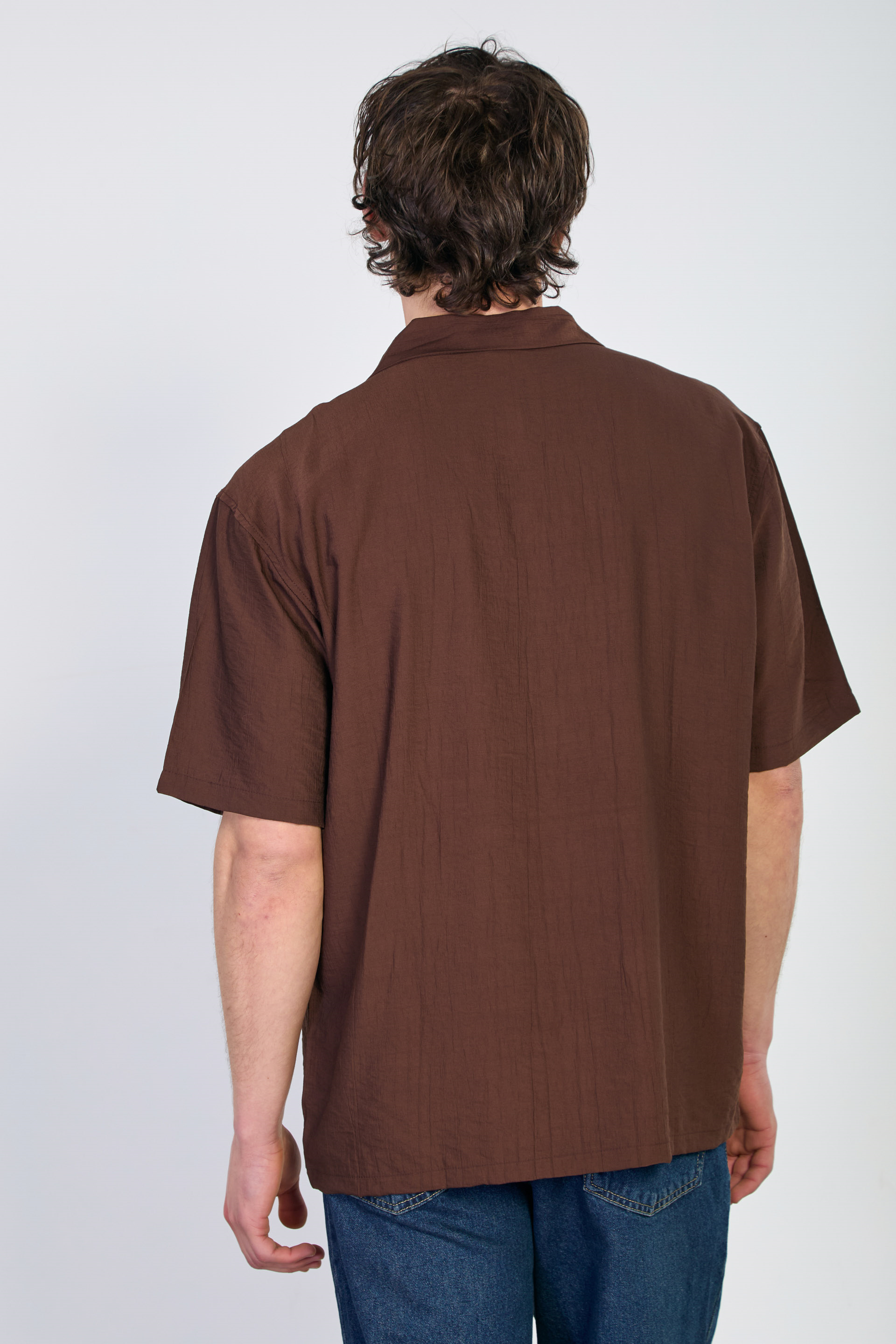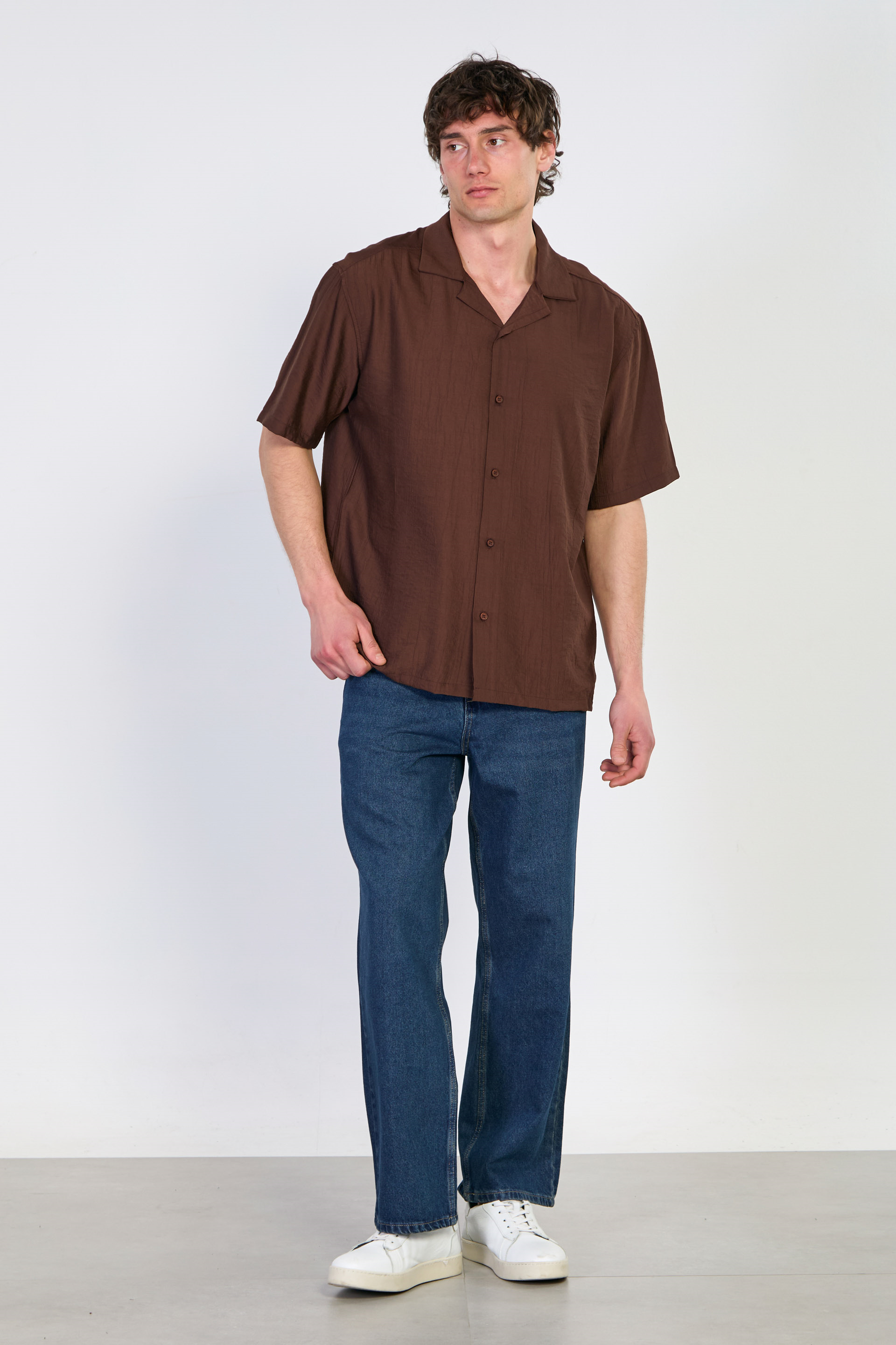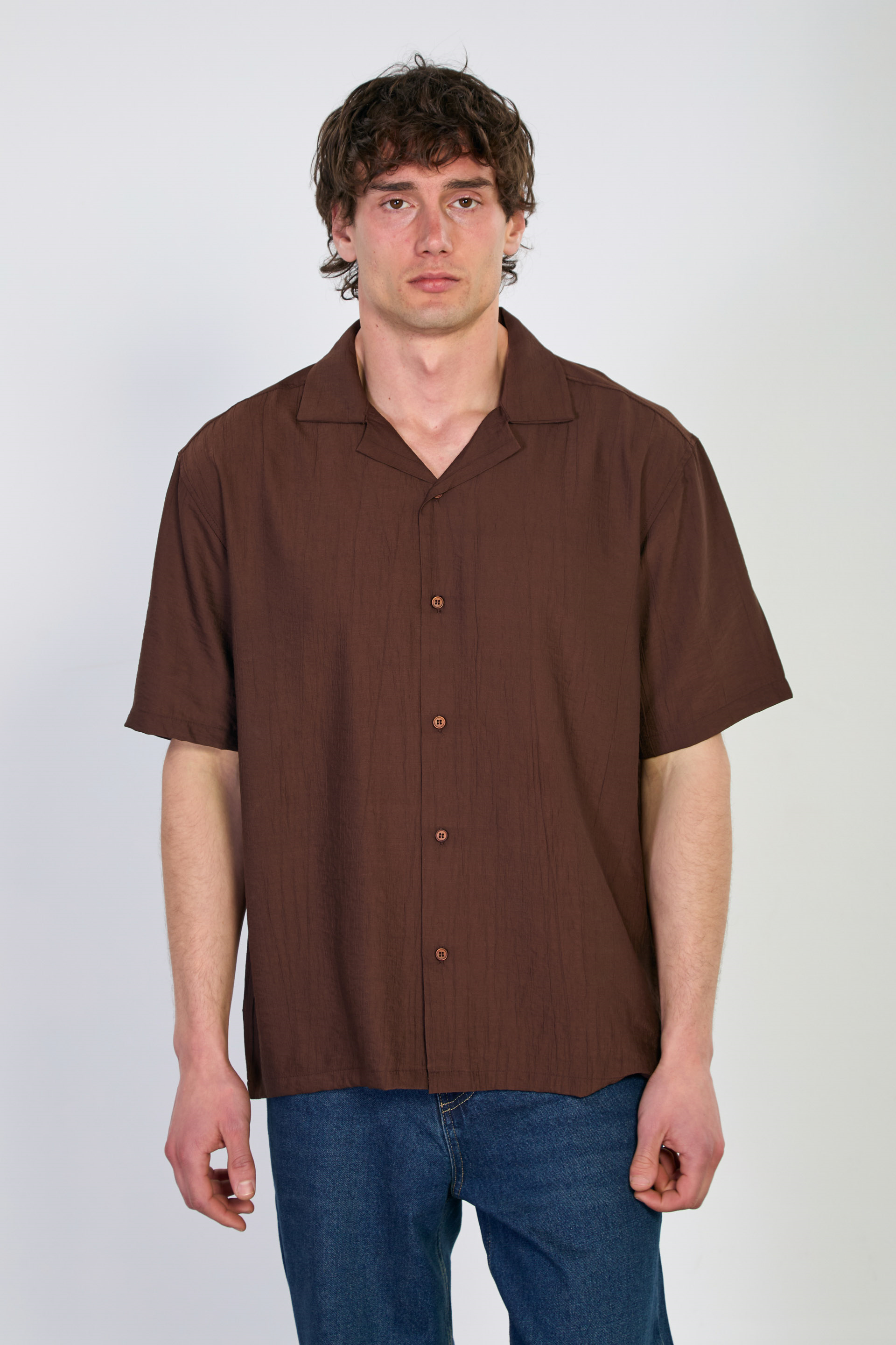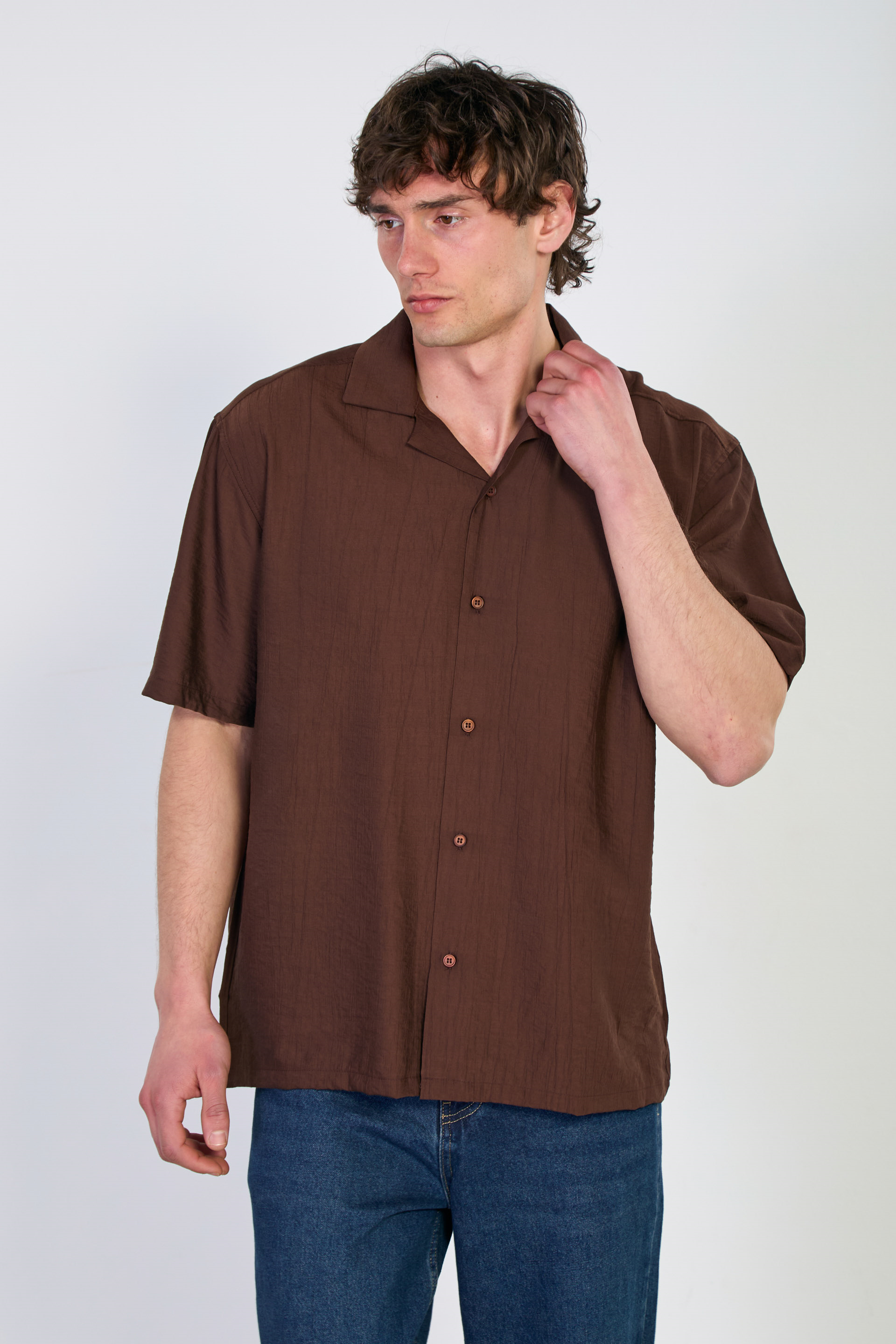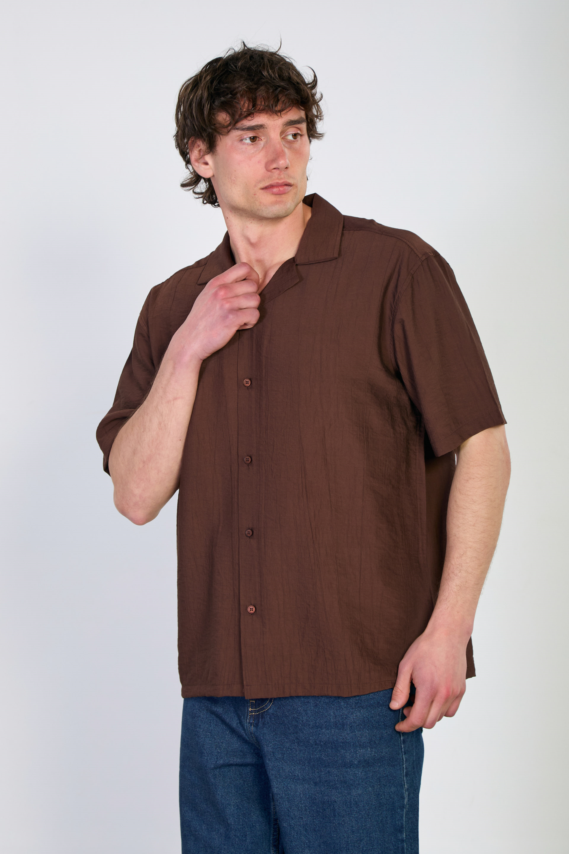 Erkek Apaş Yaka Kısa Kollu Çilek Gömlek - Kahve