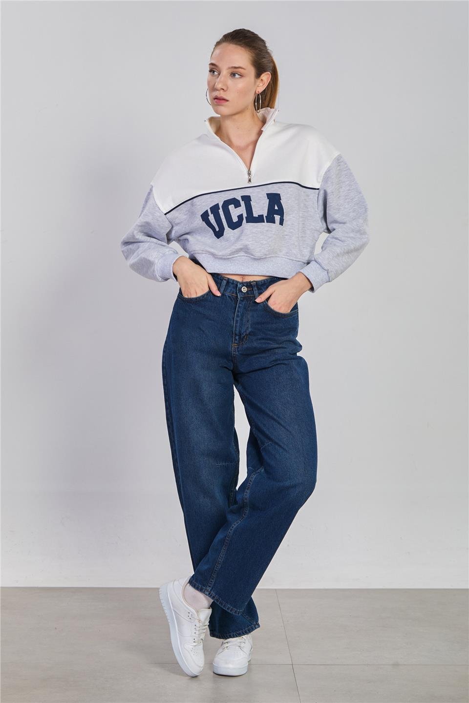 Kadın Arkası Tokalı Baggy Jean Pantolon - Mavi