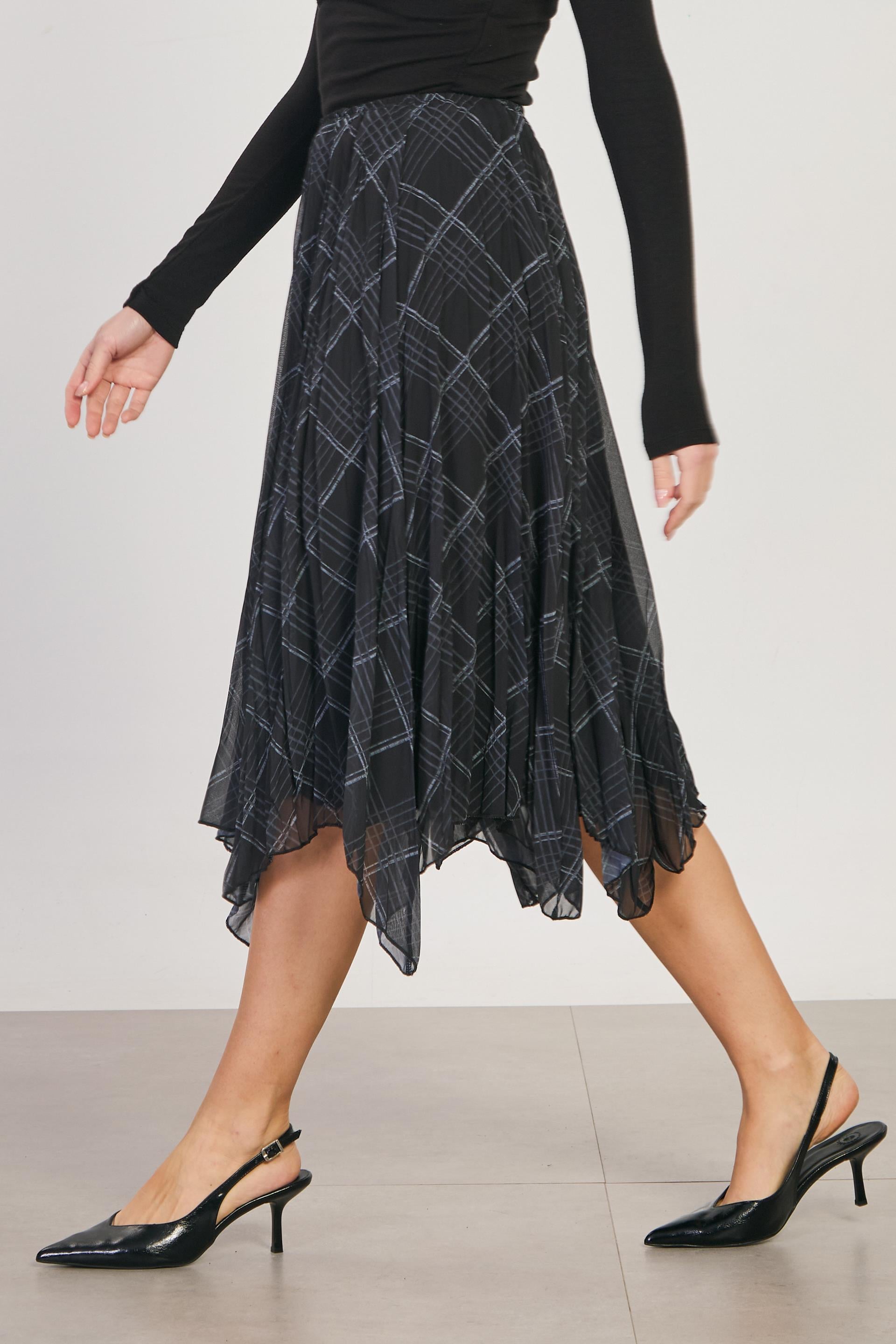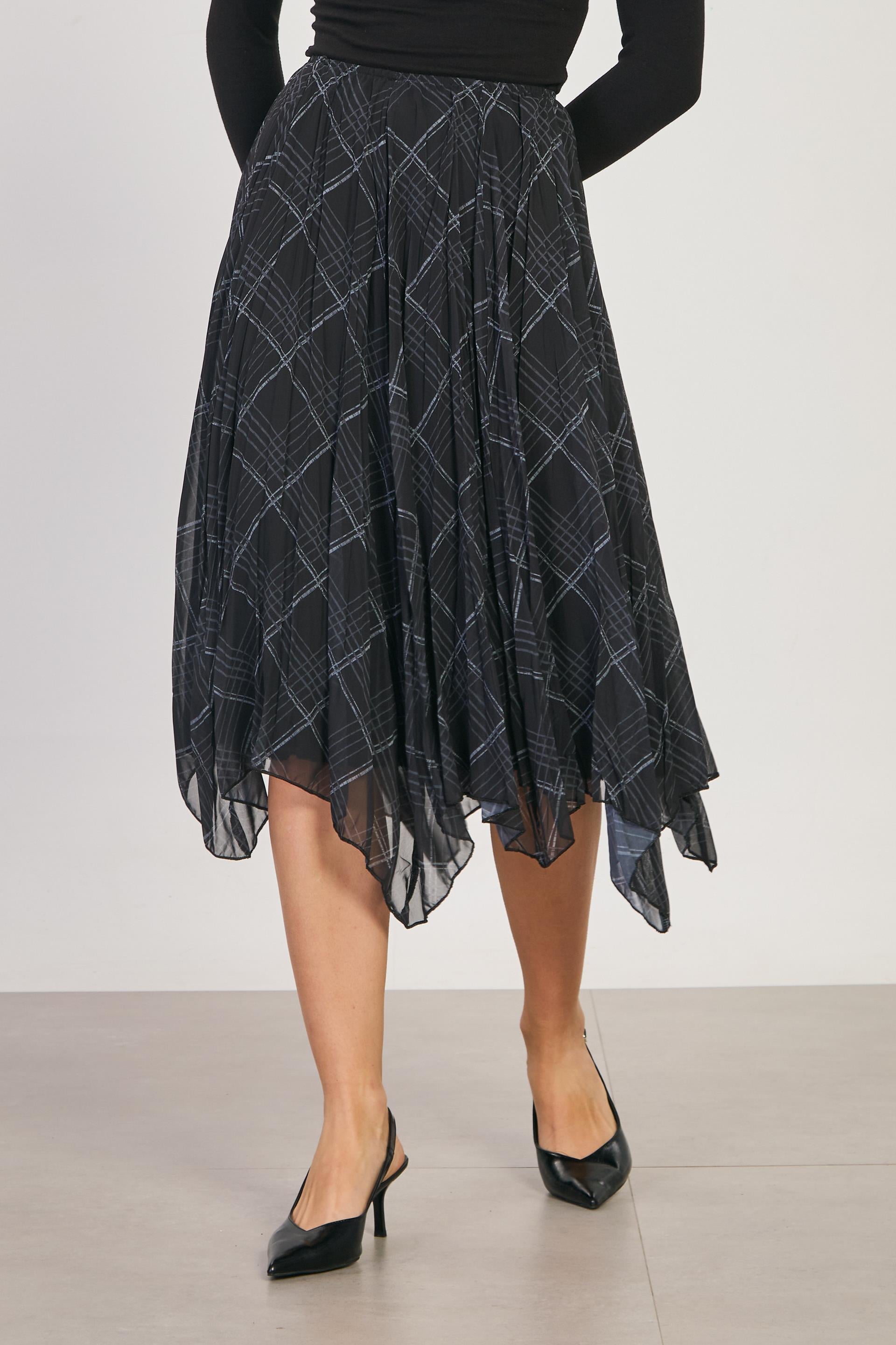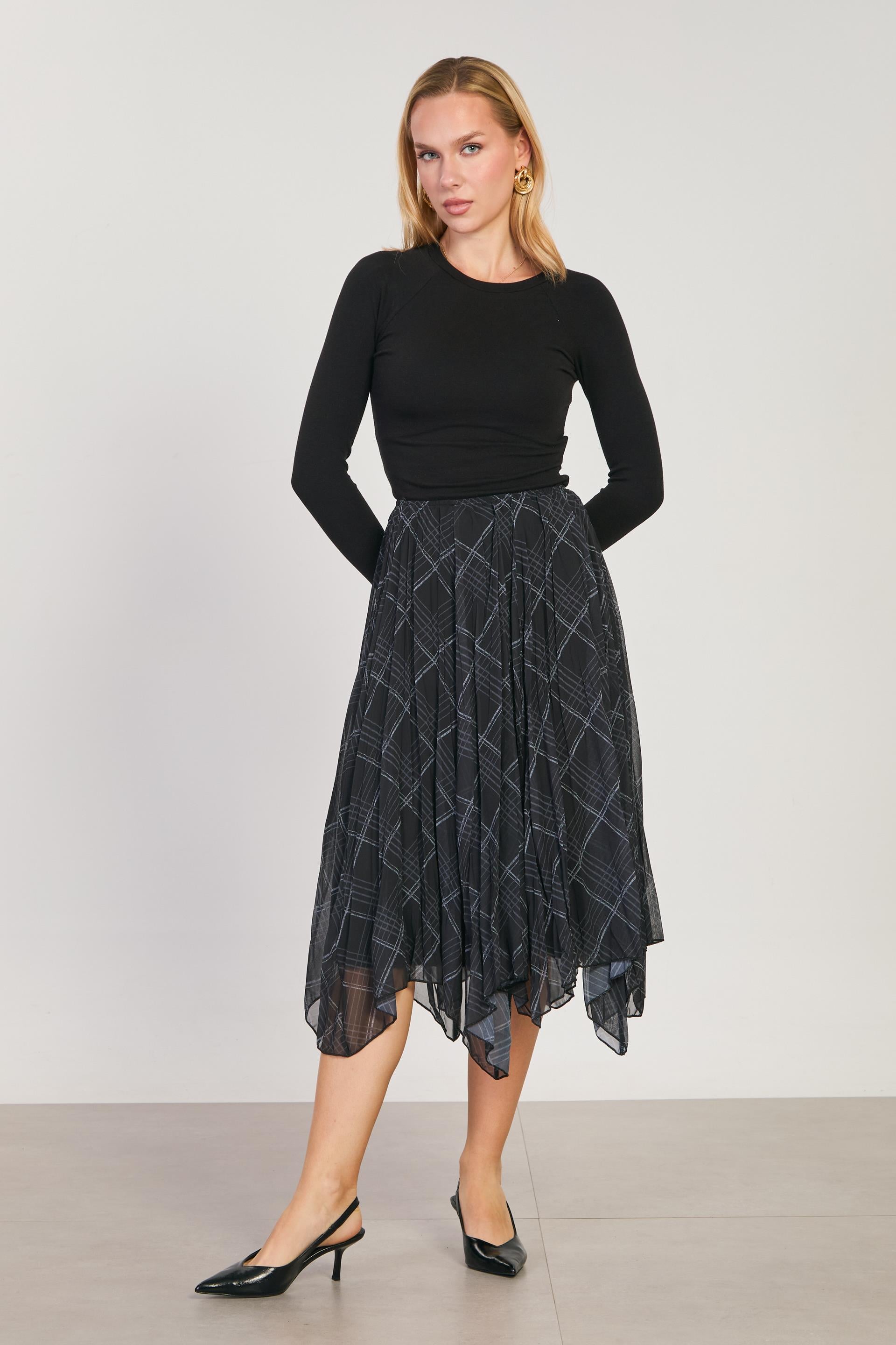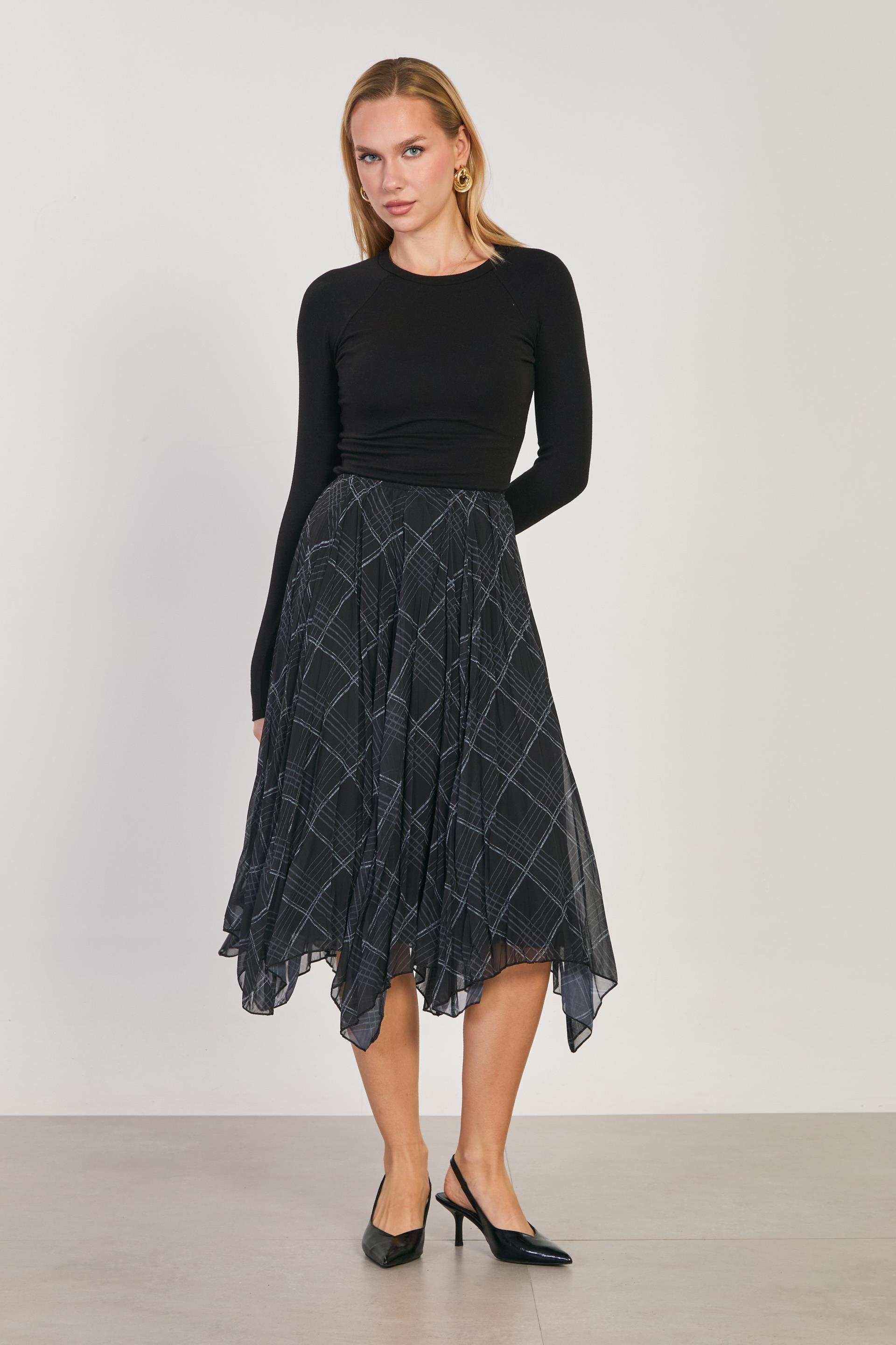Kadın Asimetrik Kesim Ekose Etek - Siyah