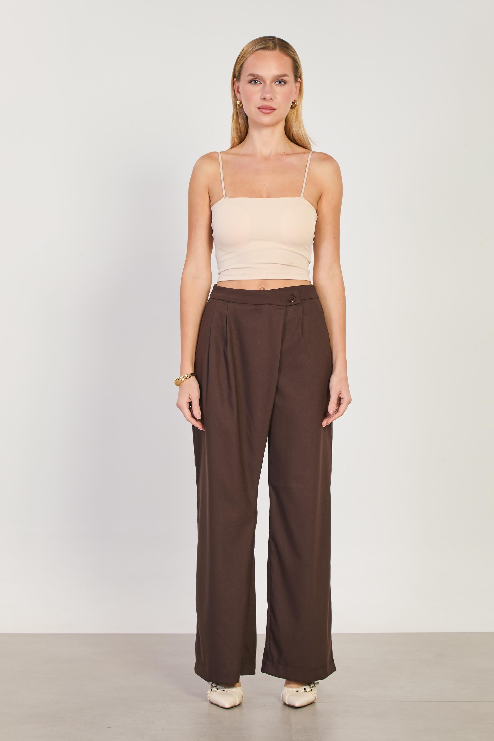 Kadın Asimetrik Palazzo Pantolon - Kahve