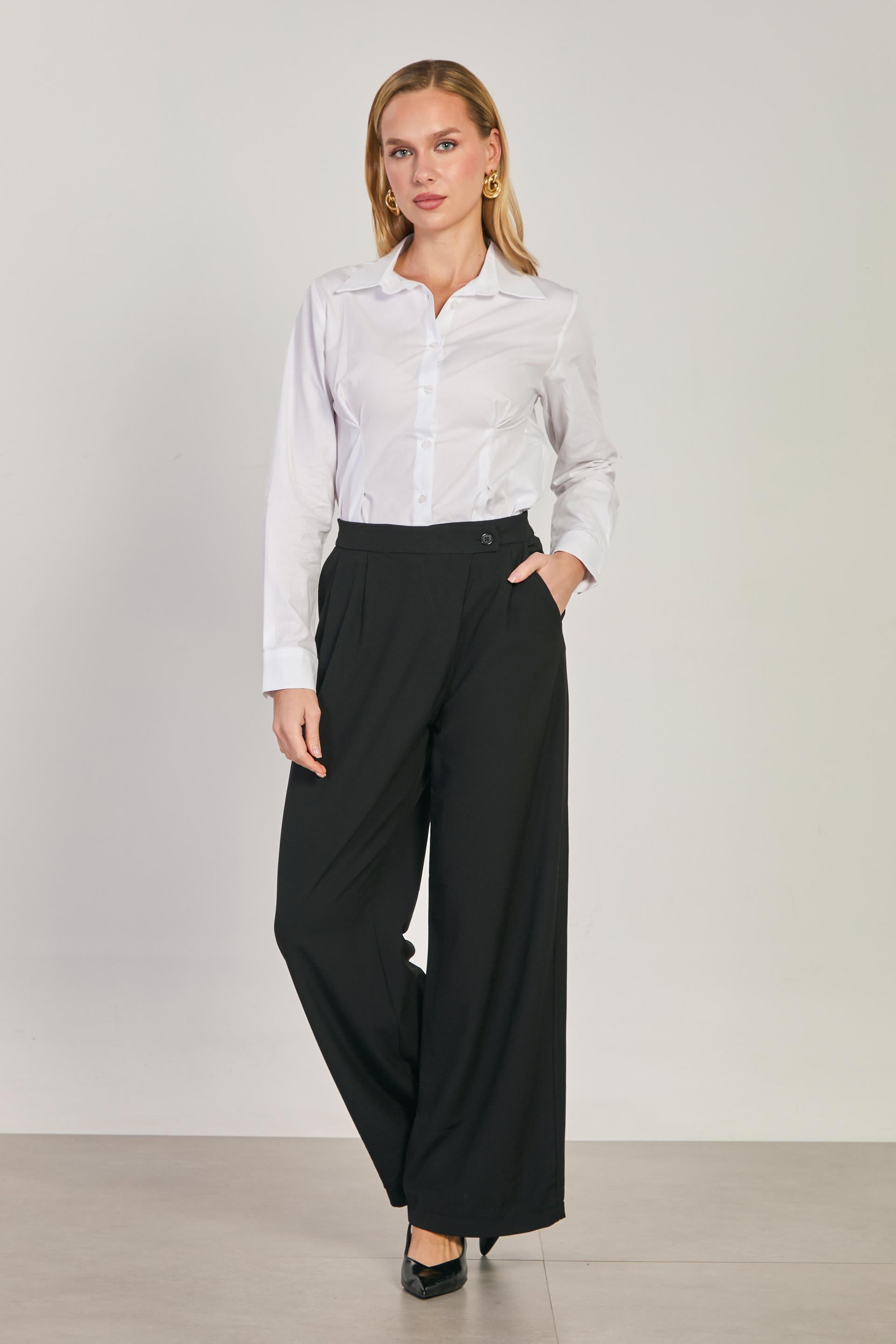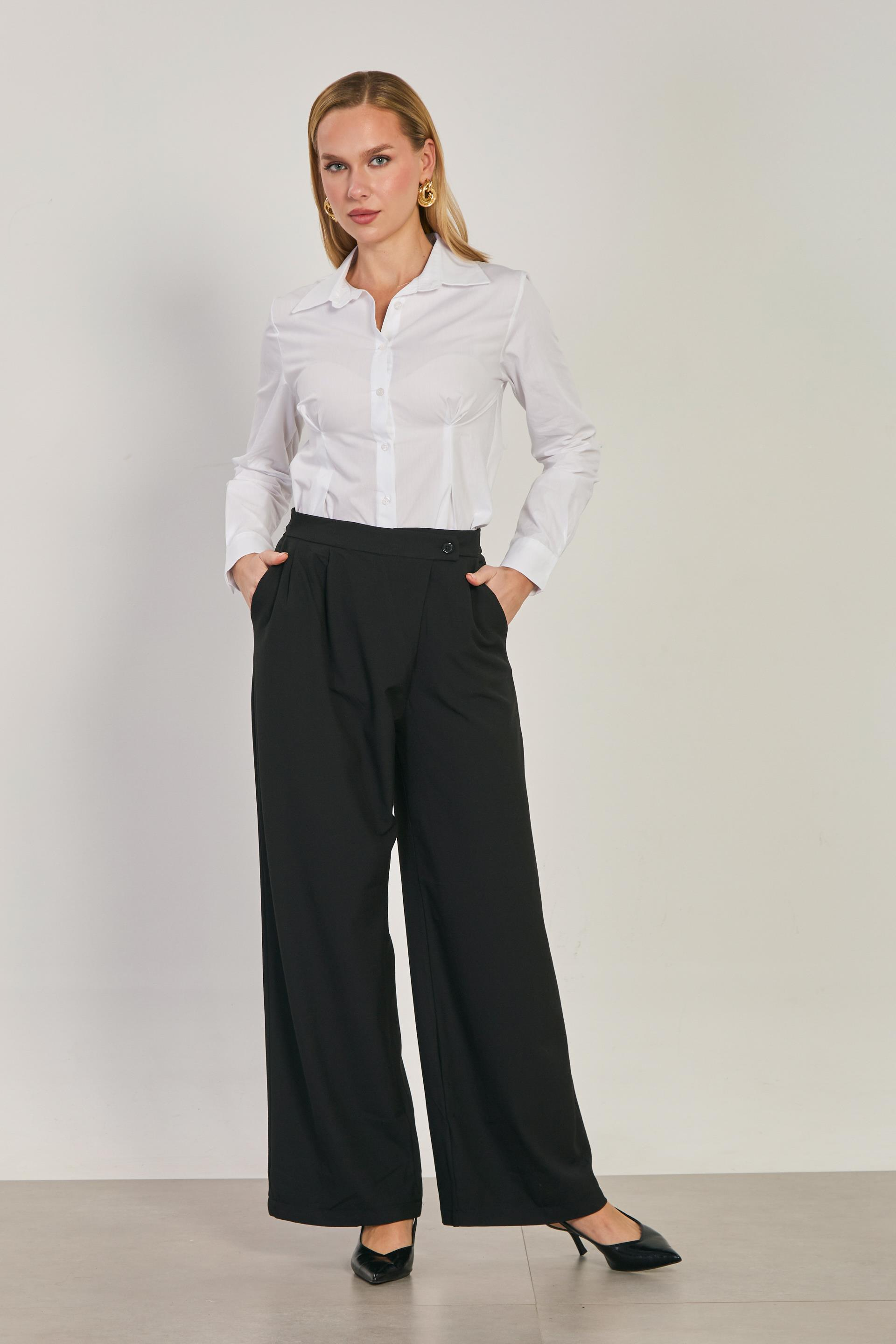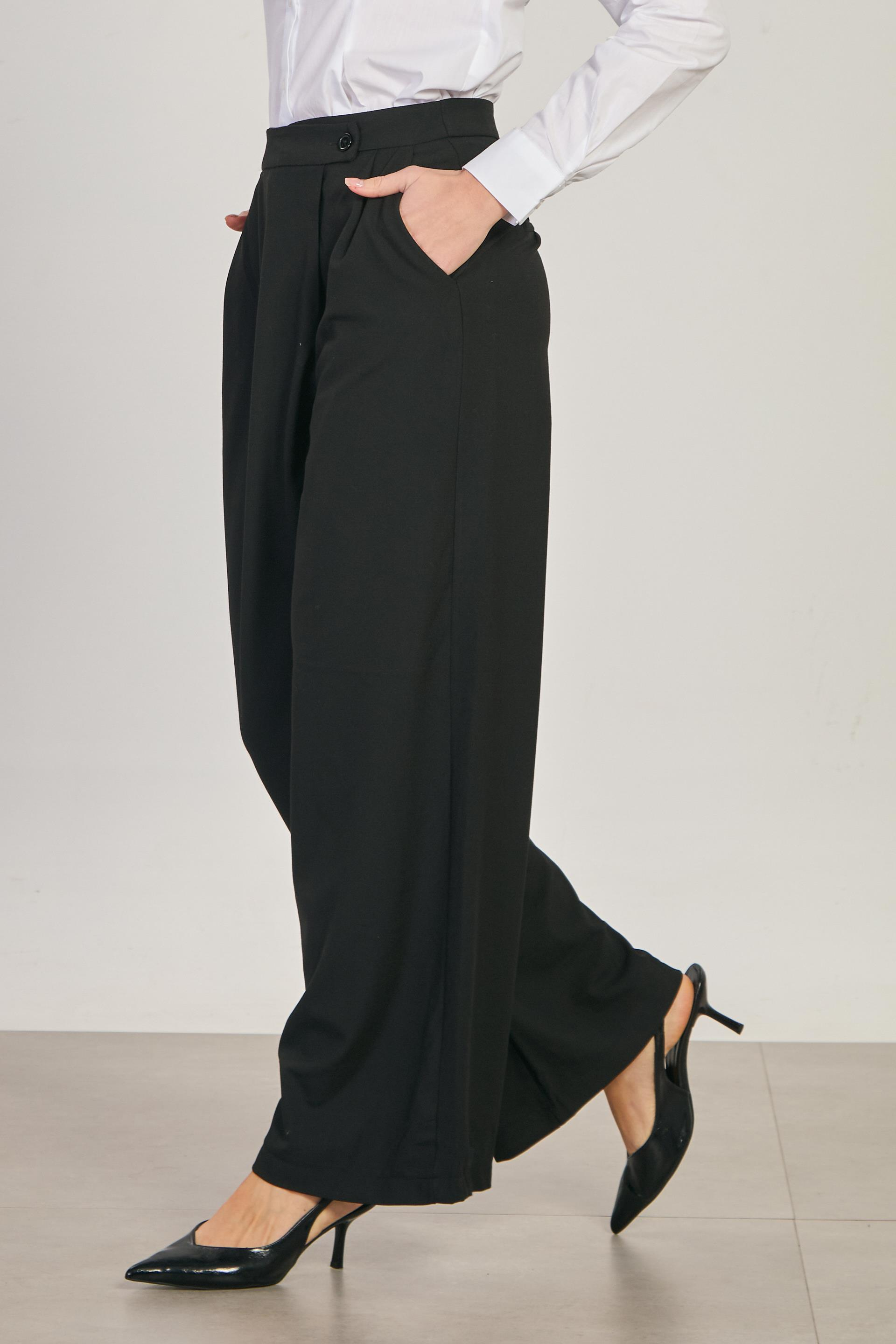Kadın Asimetrik Palazzo Pantolon - Siyah
