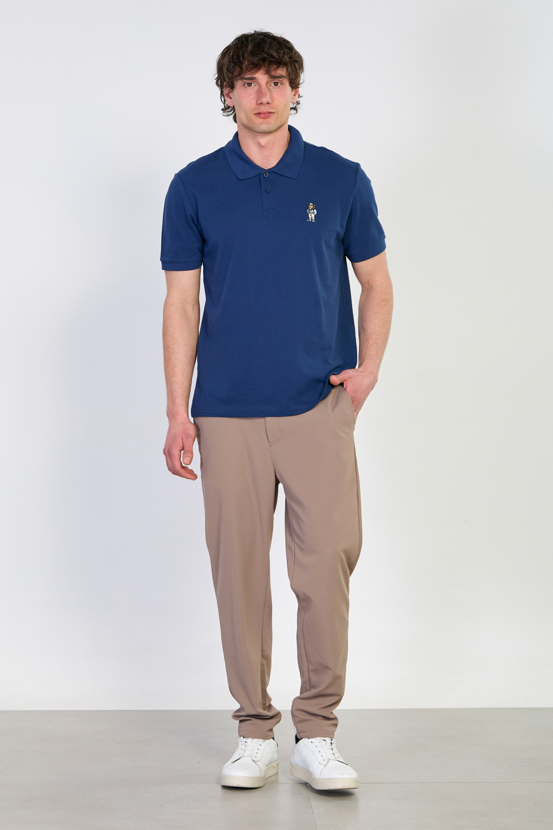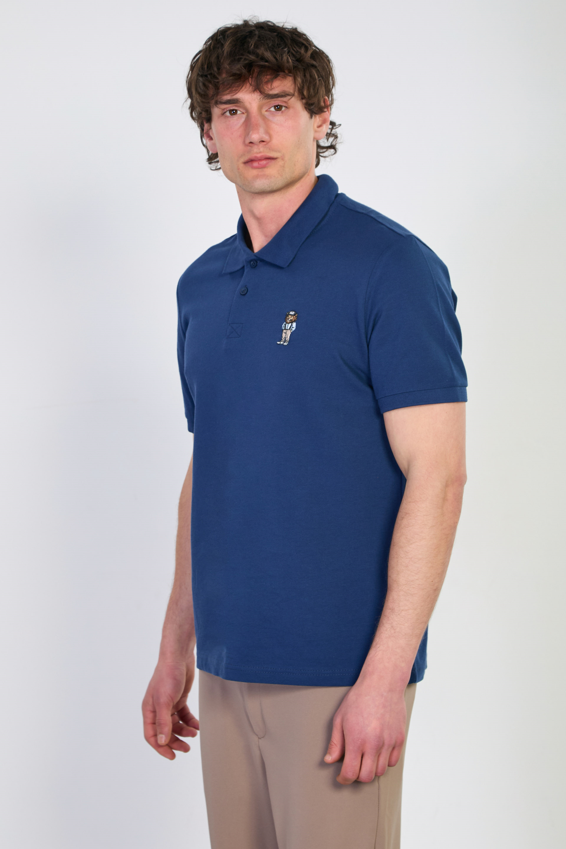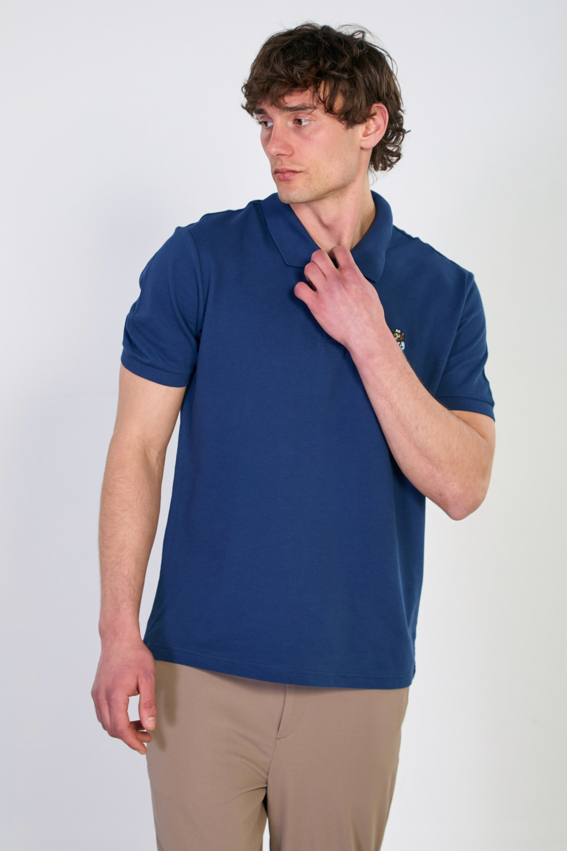 Erkek Aslan Nakışlı Polo Yaka T-Shirt - Lacivert
