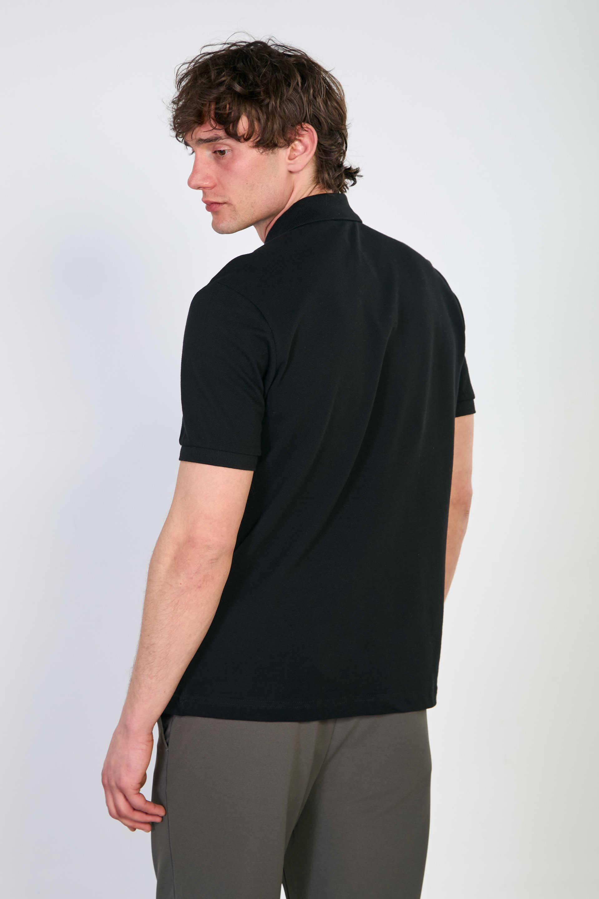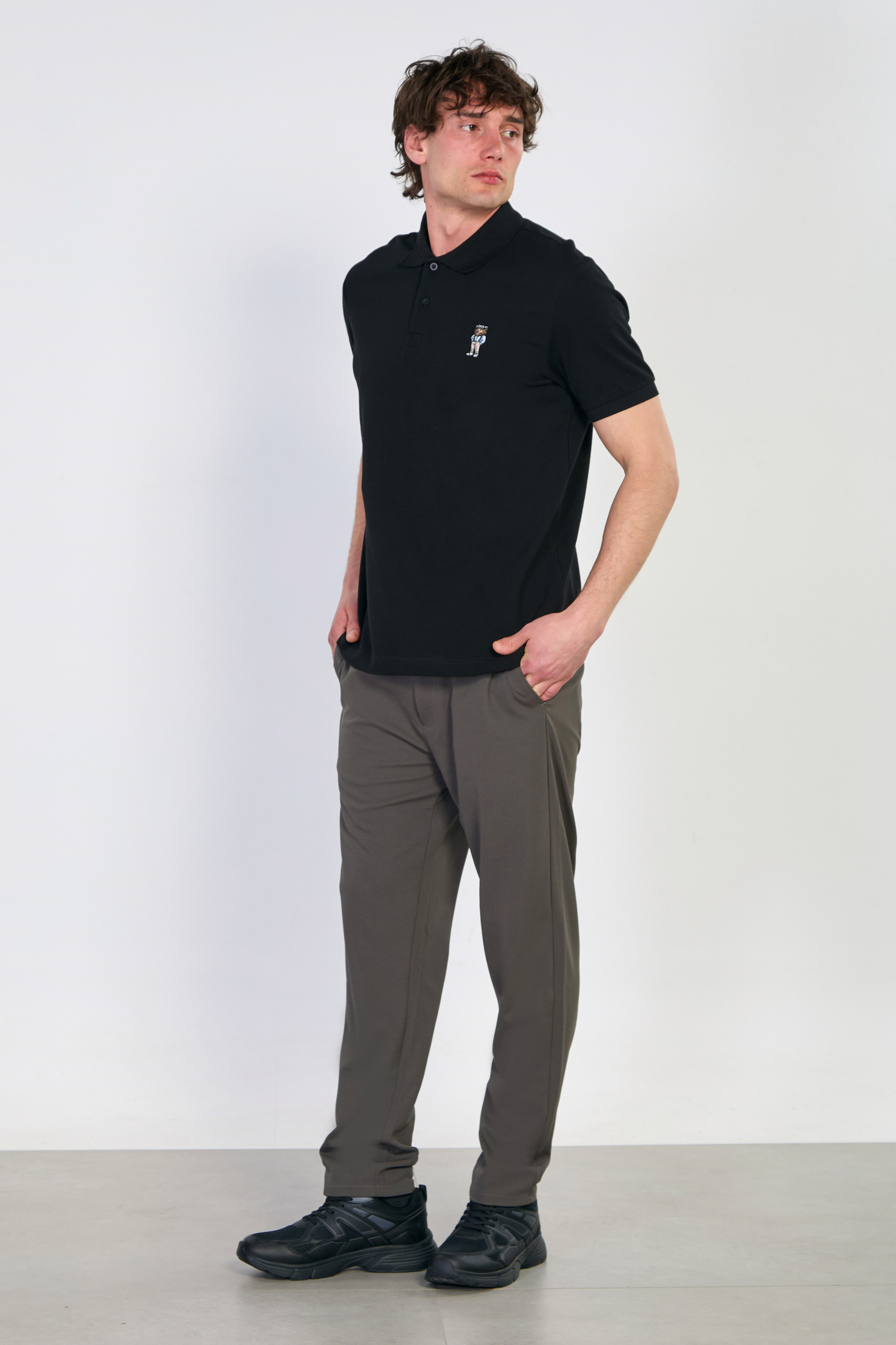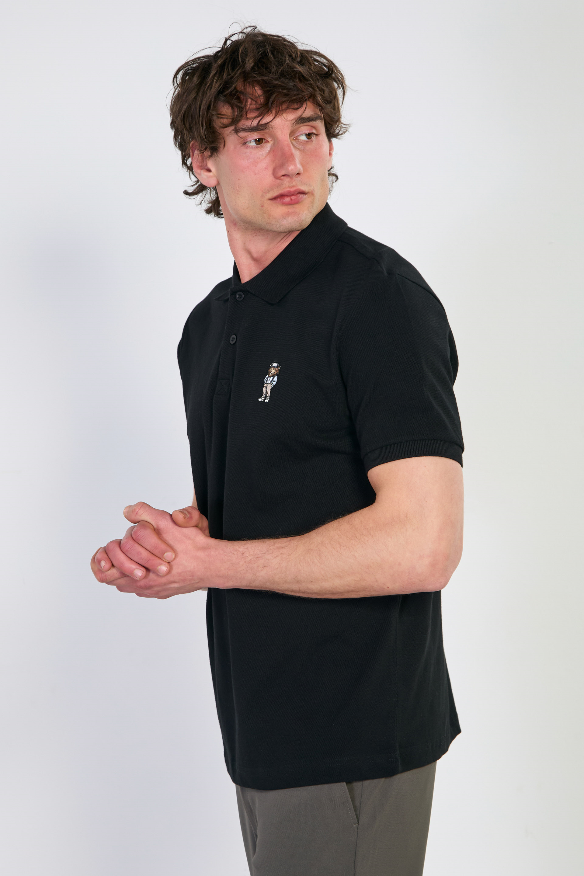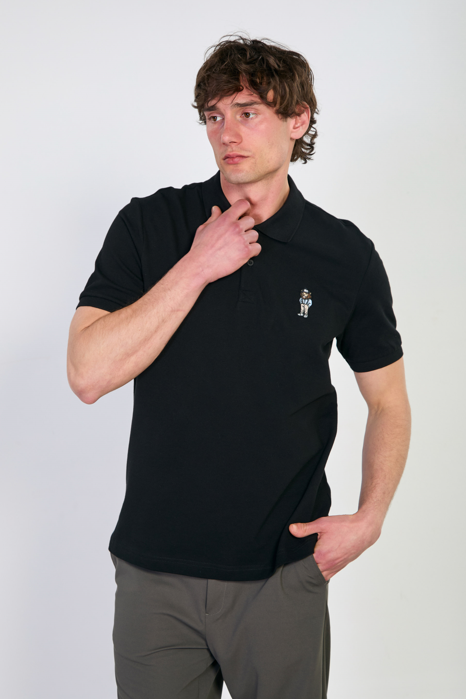 Aslan nakışlı polo yaka t-shirt-4070 Siyah