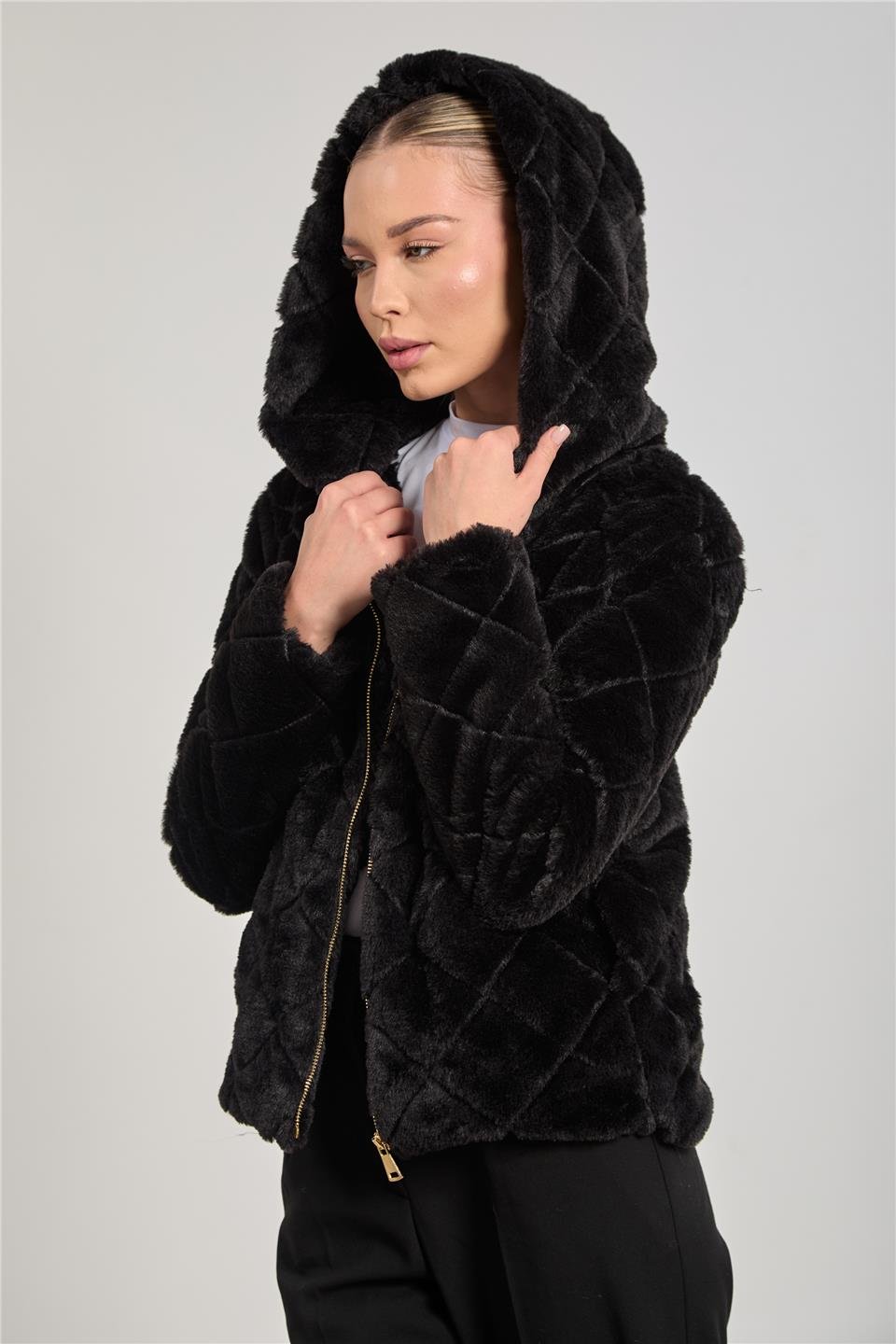 Kadın Baklava Desenli Peluş Ceket - Siyah