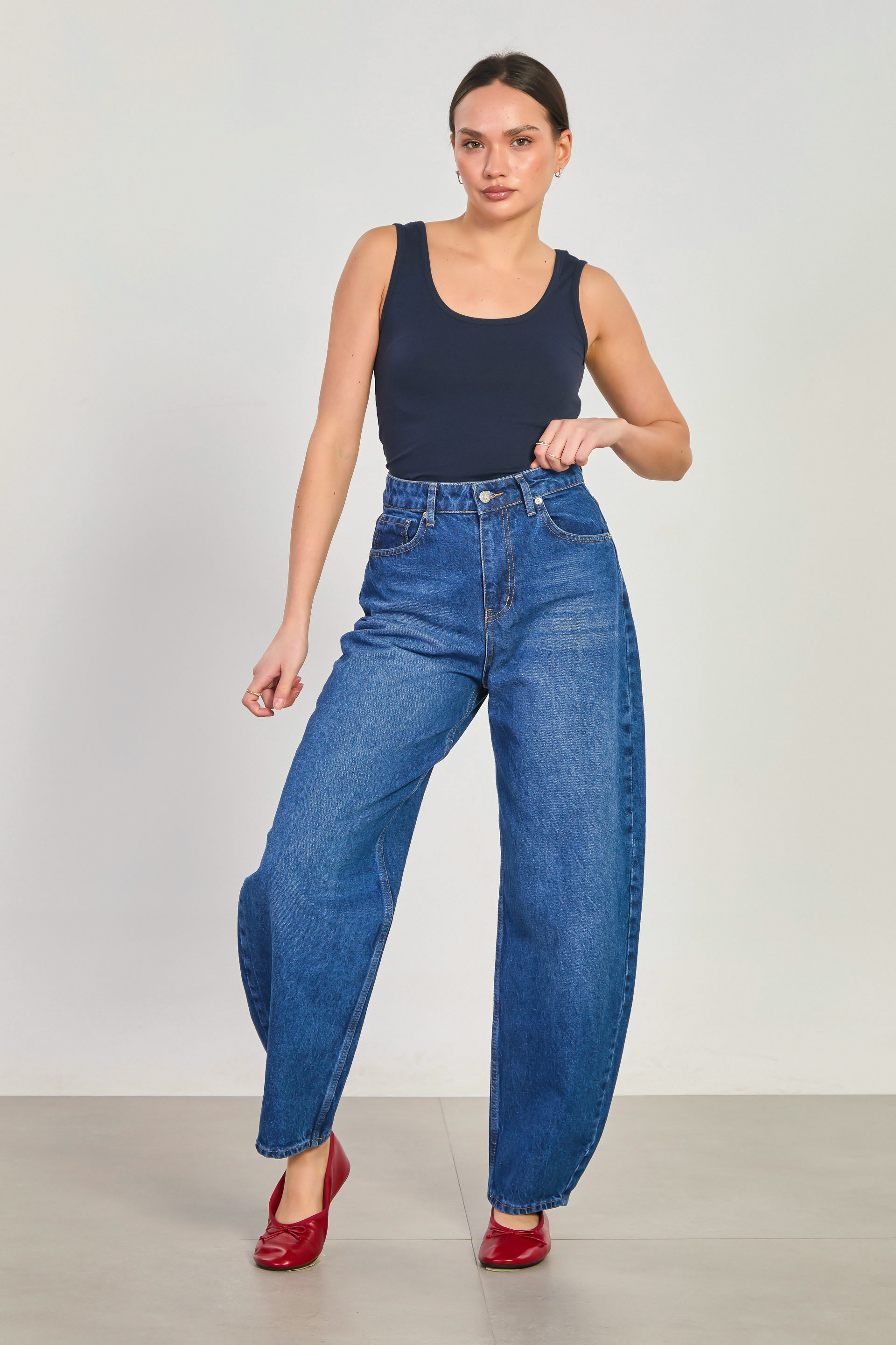 Kadın Balon Jean Pantolon - Koyu Mavi