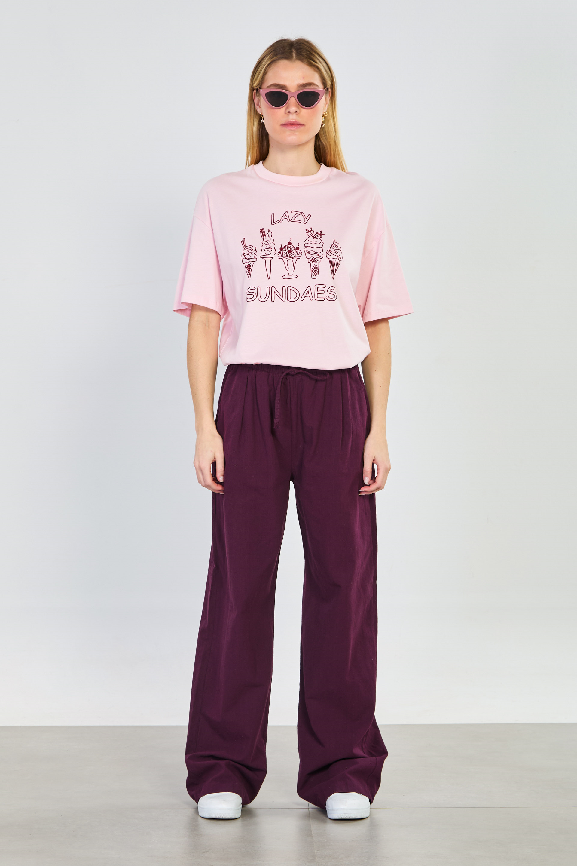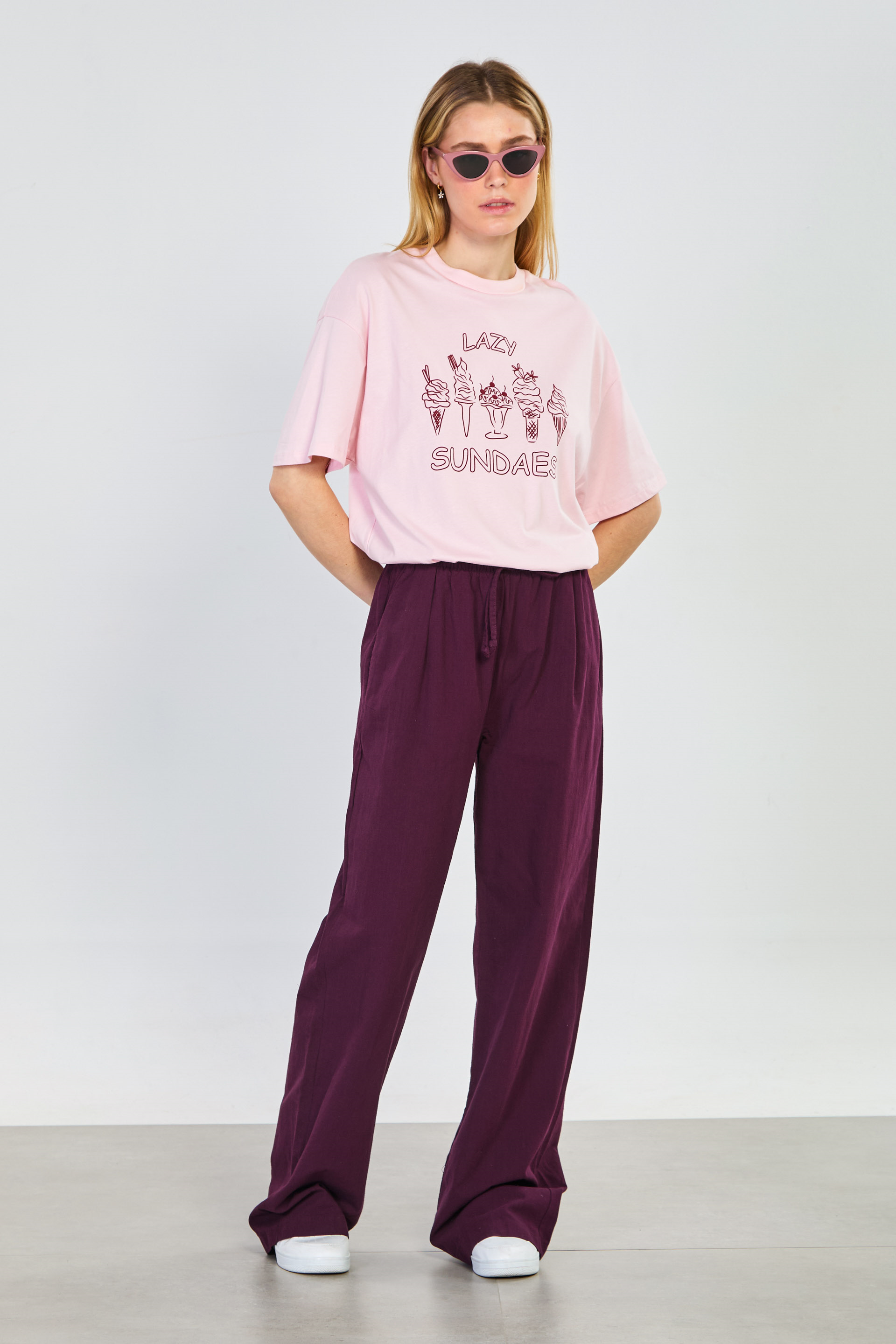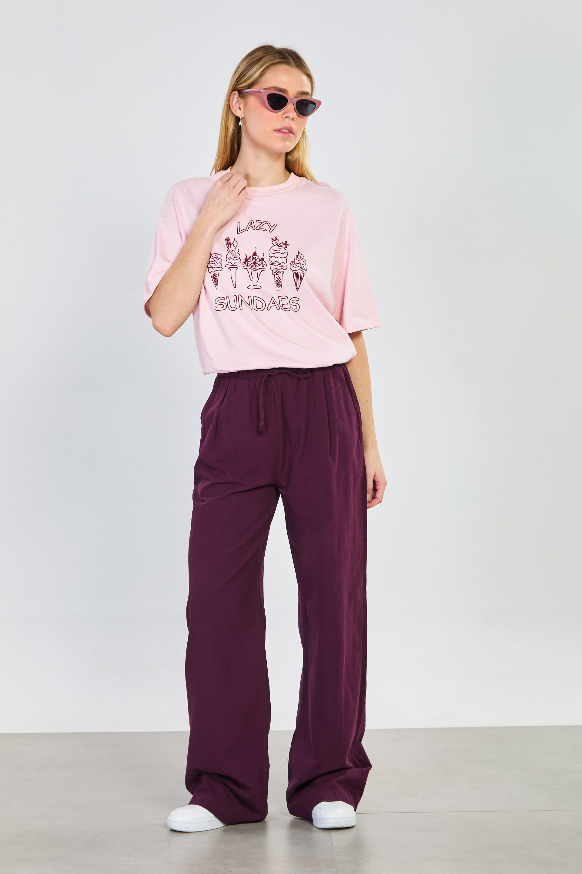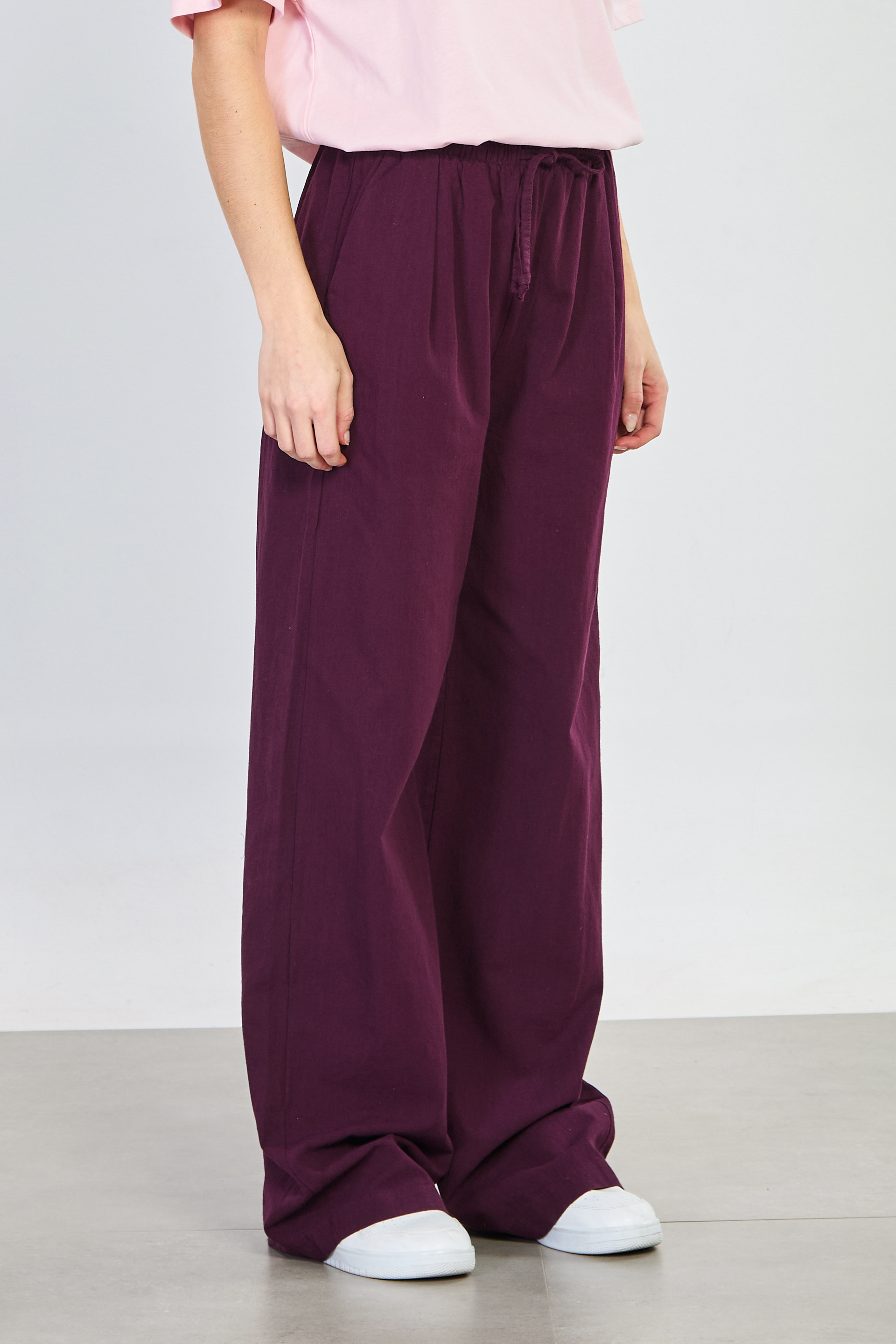 Kadın Belden Bağlamalı Bol Kesim Pantolon - Mürdüm