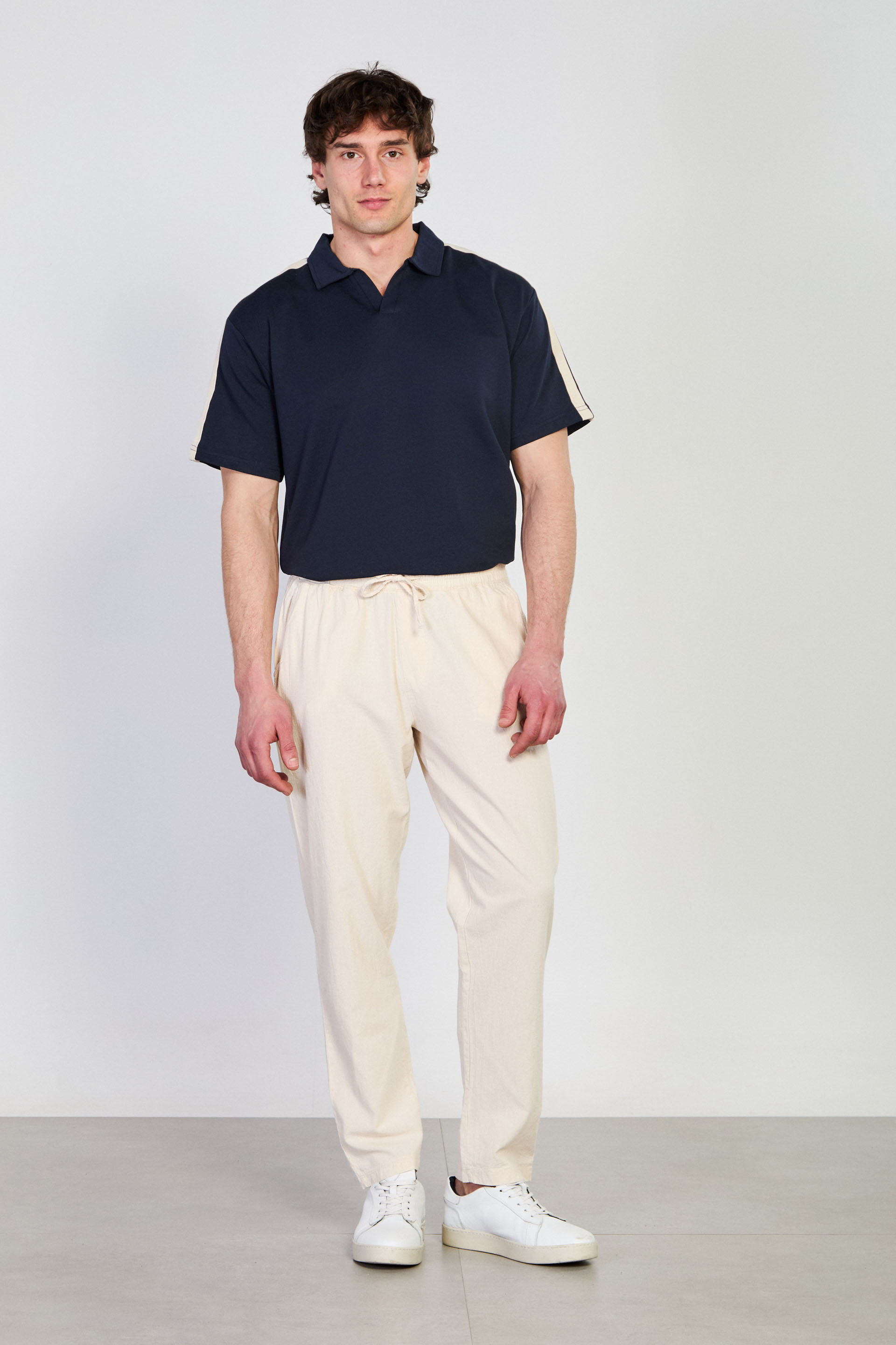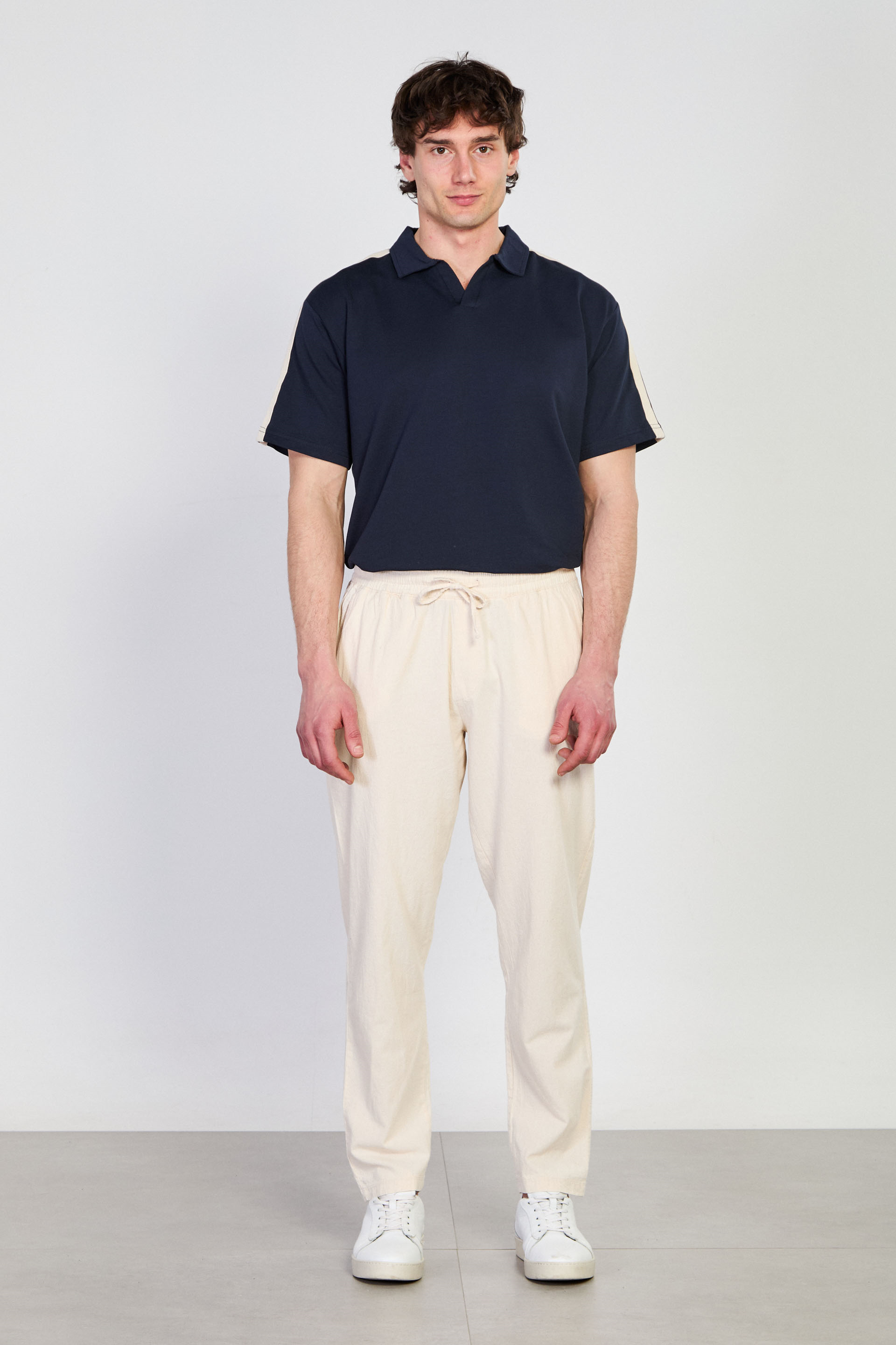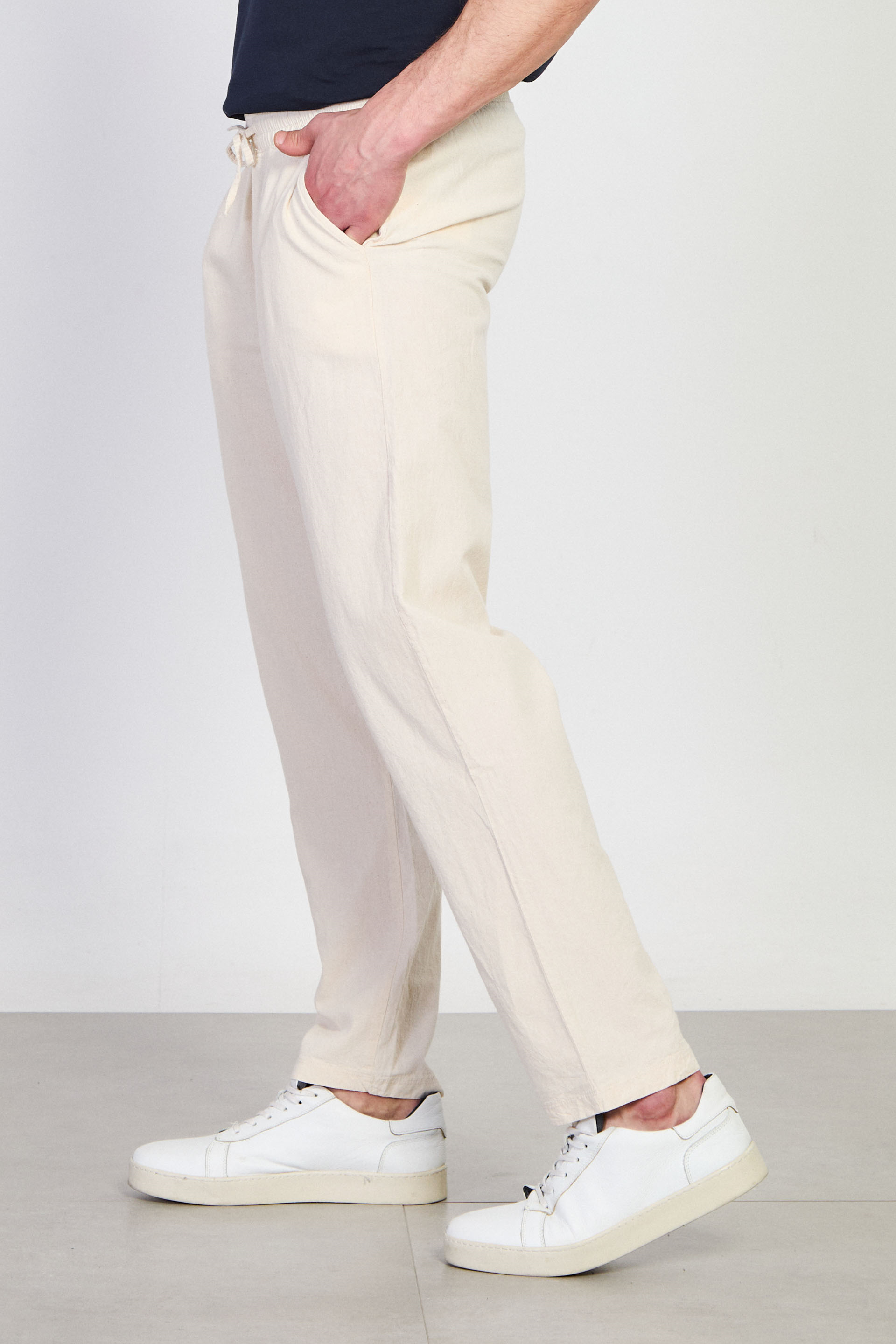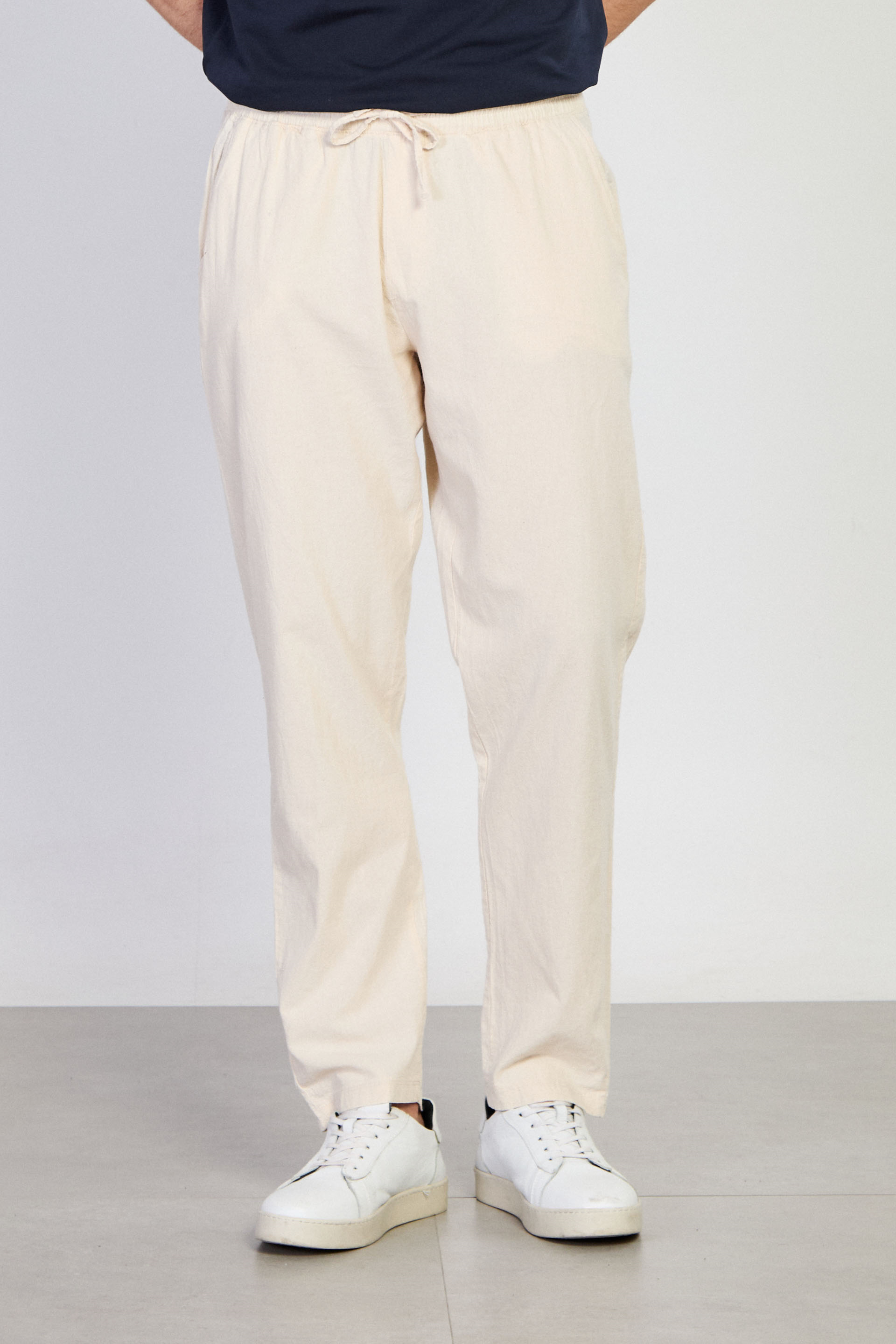 Erkek Beli Bağlamalı Salaş Pantolon - Ekru