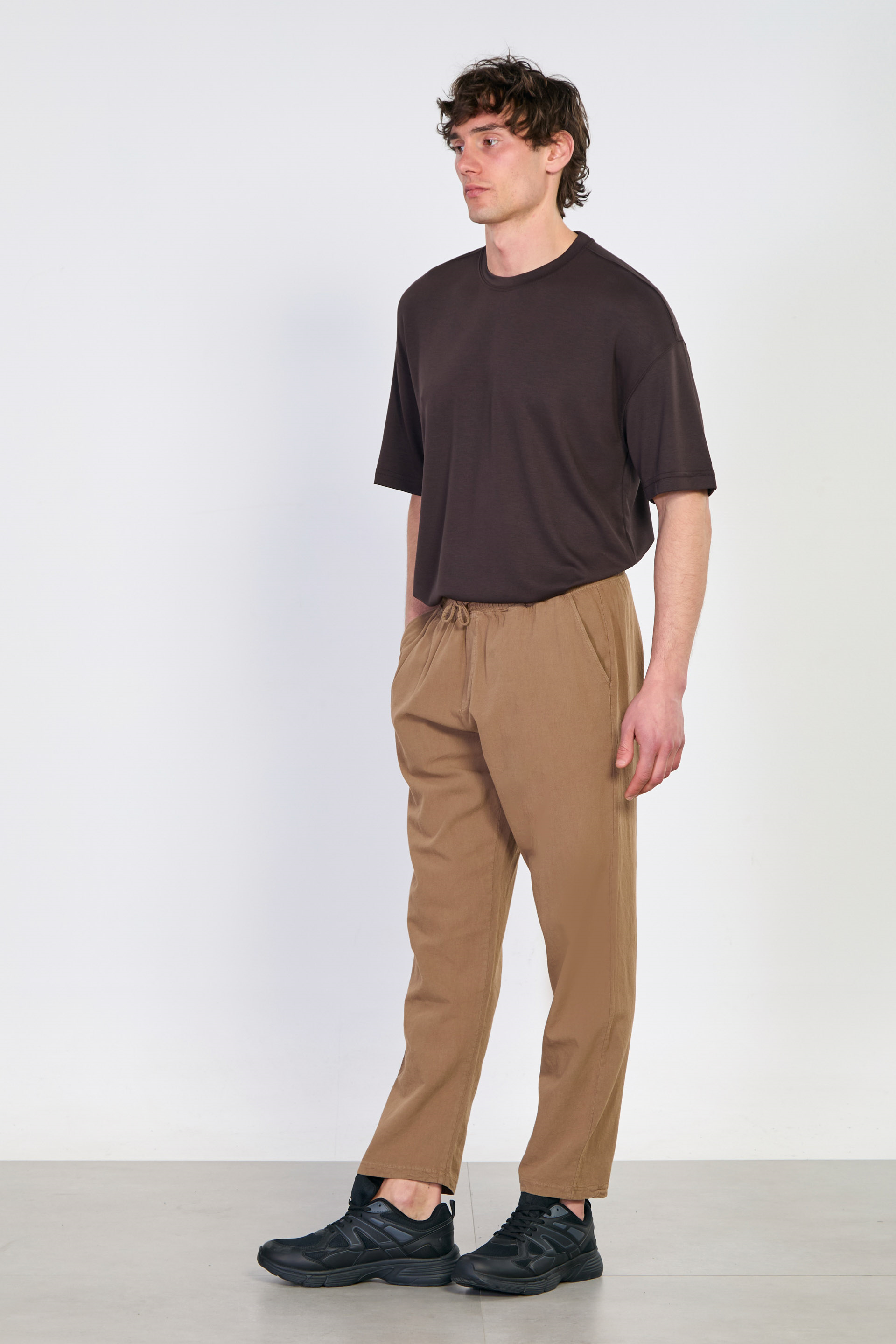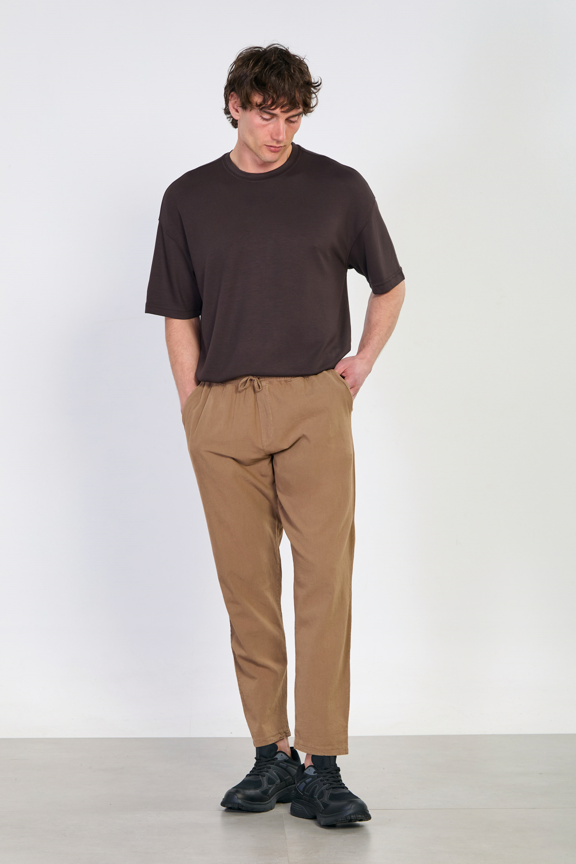 Beli bağlamalı salaş pantolon-9171-097 Vizon