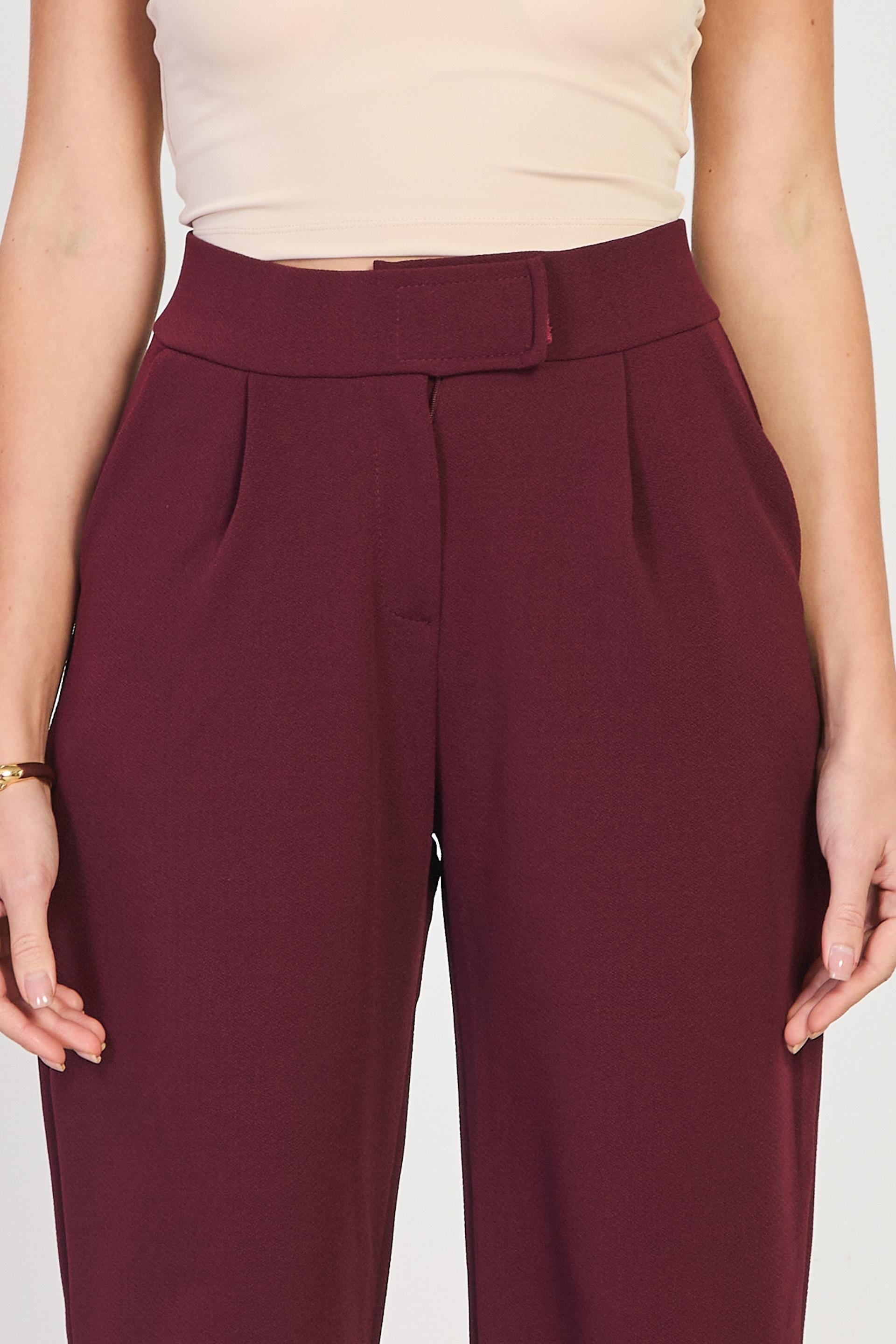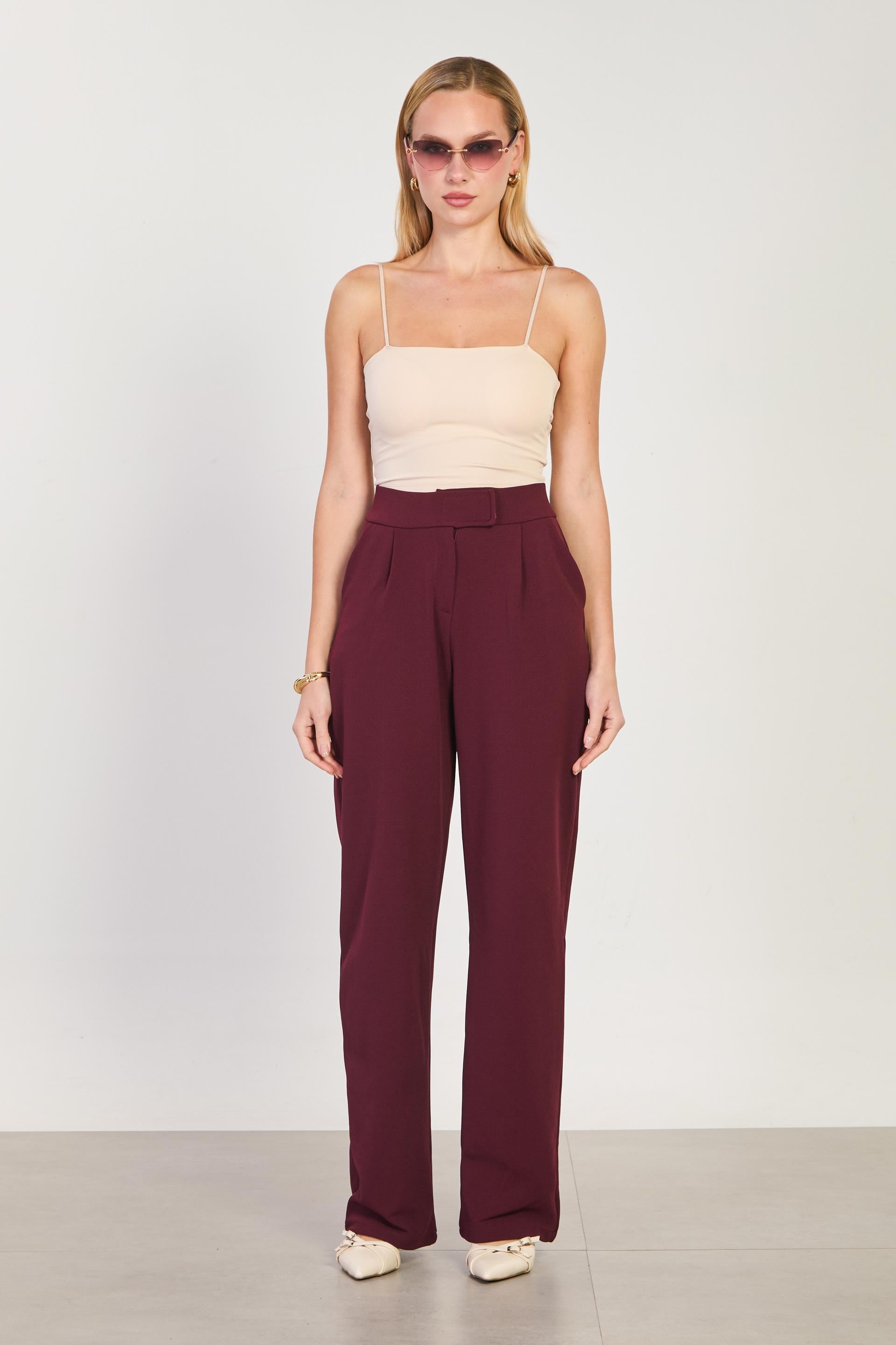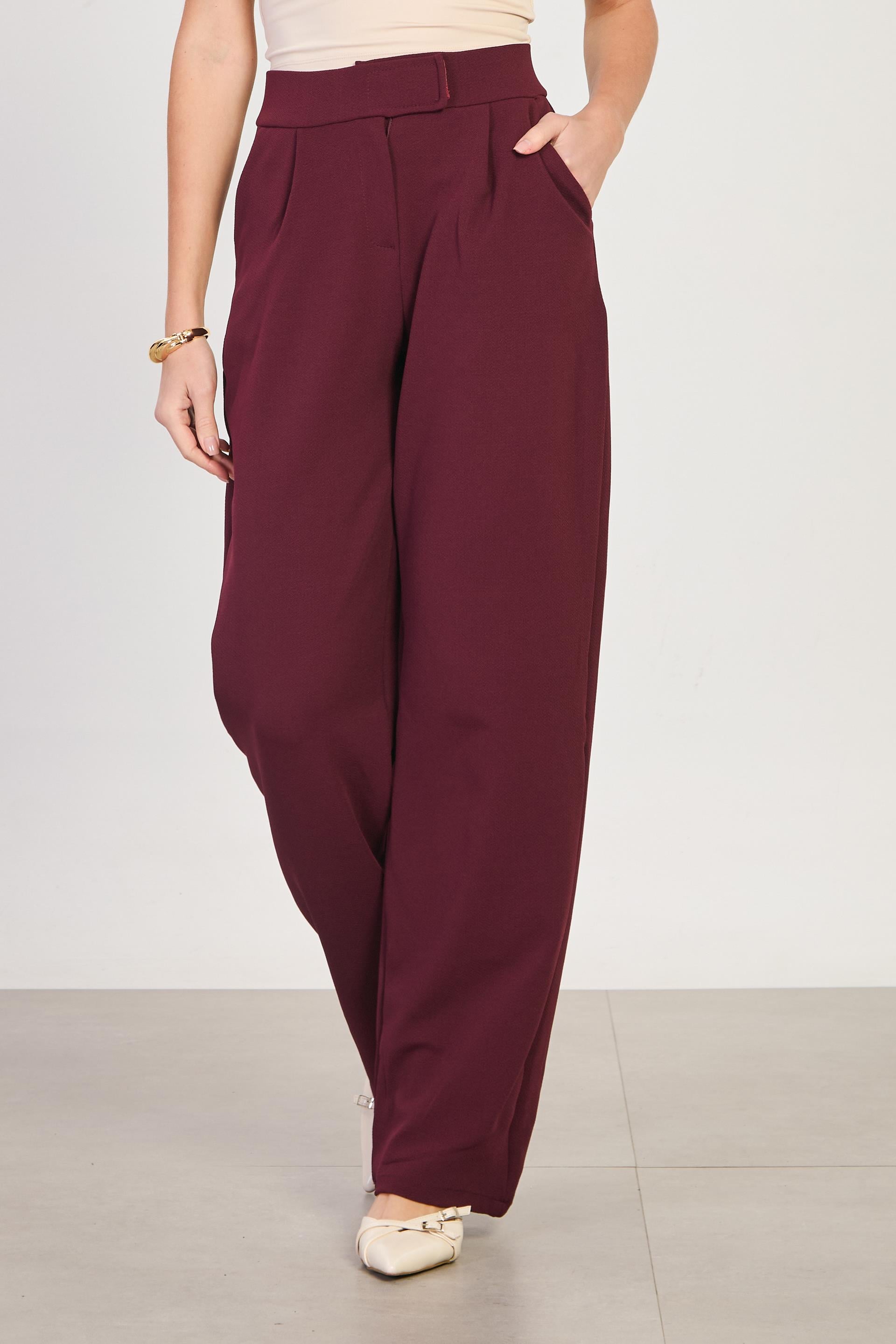 Kadın Beli Cırtlı Bol Pantolon - Bordo