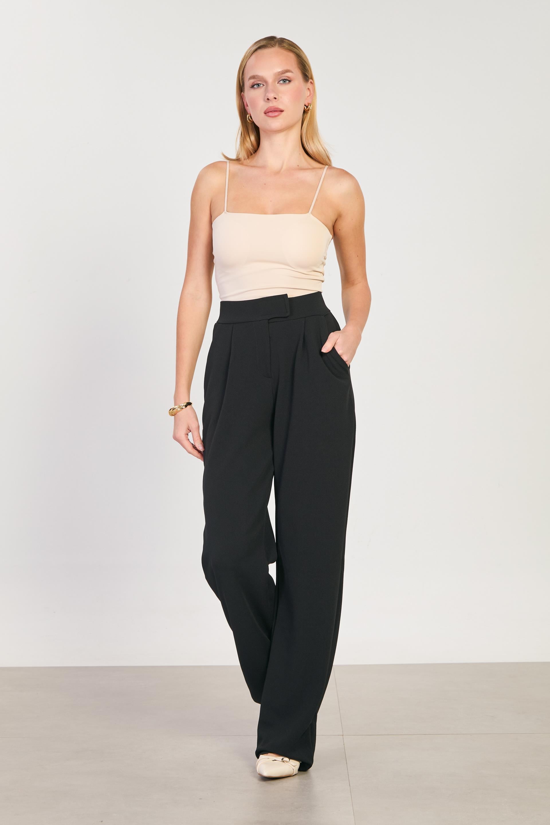 Kadın Beli Cırtlı Bol Pantolon - Siyah