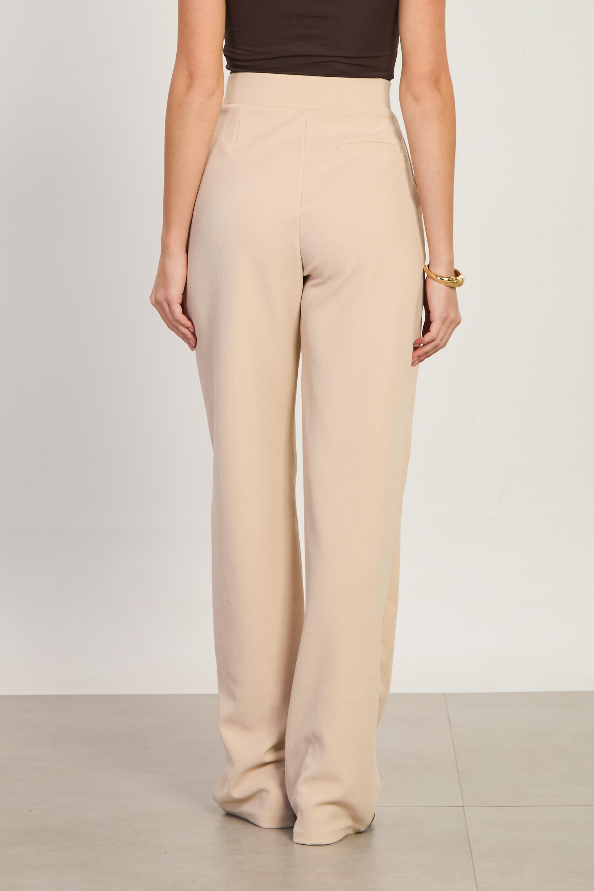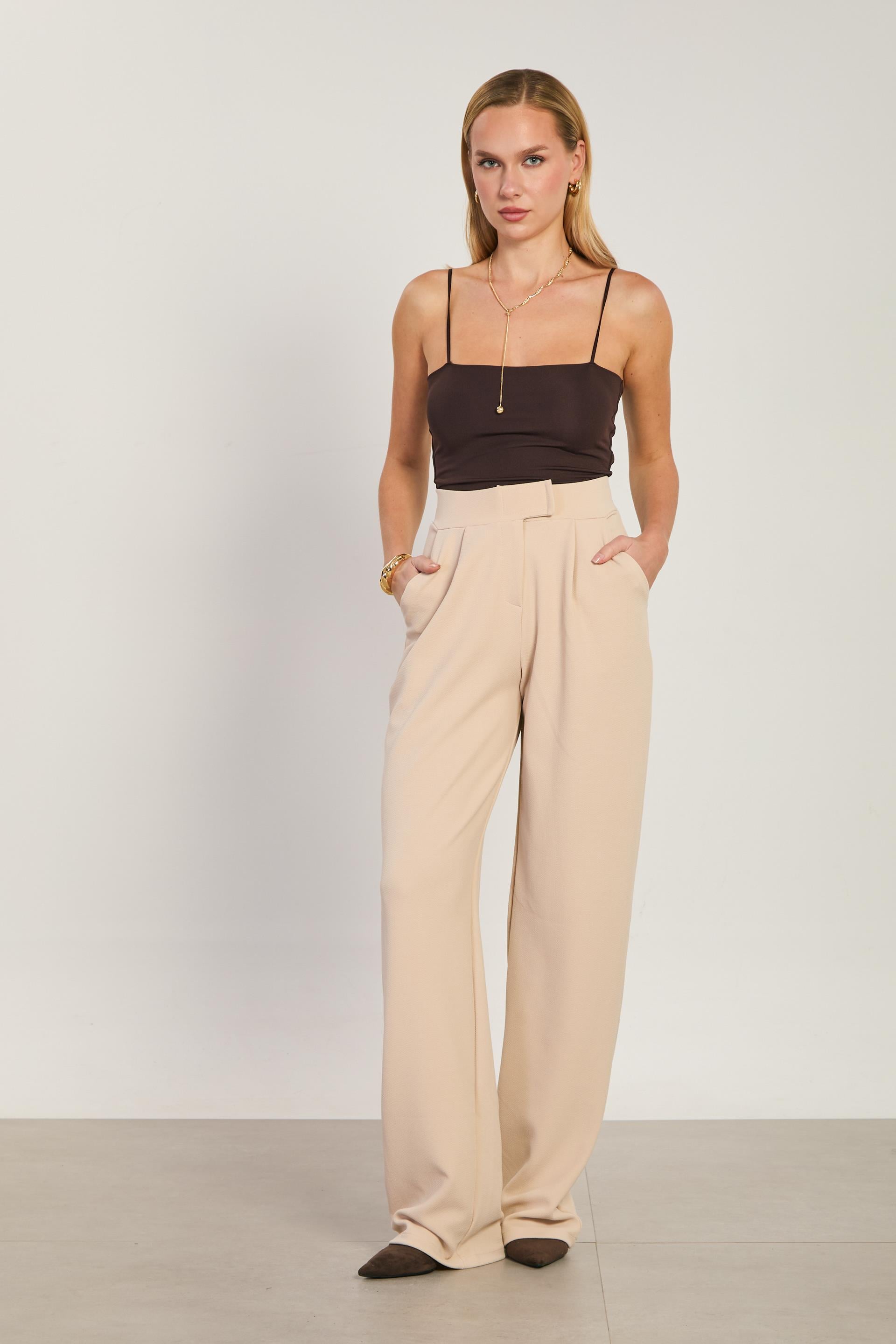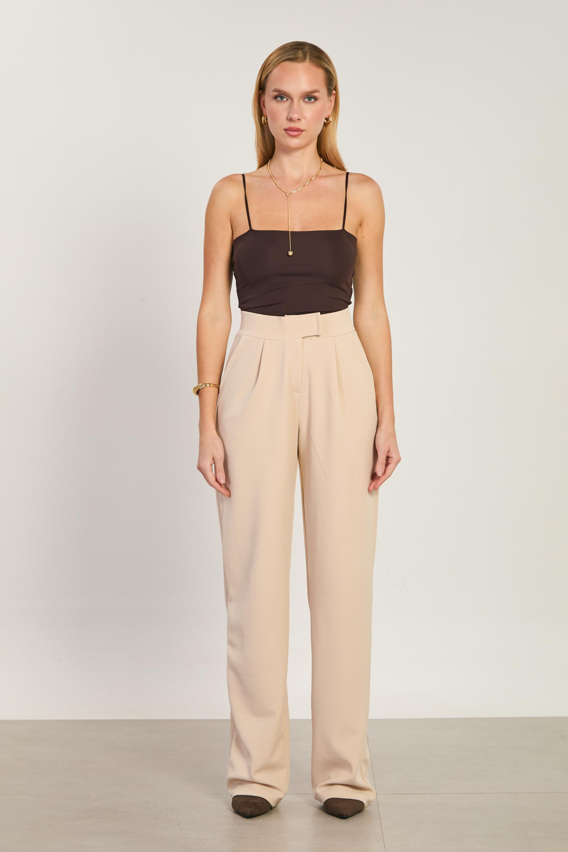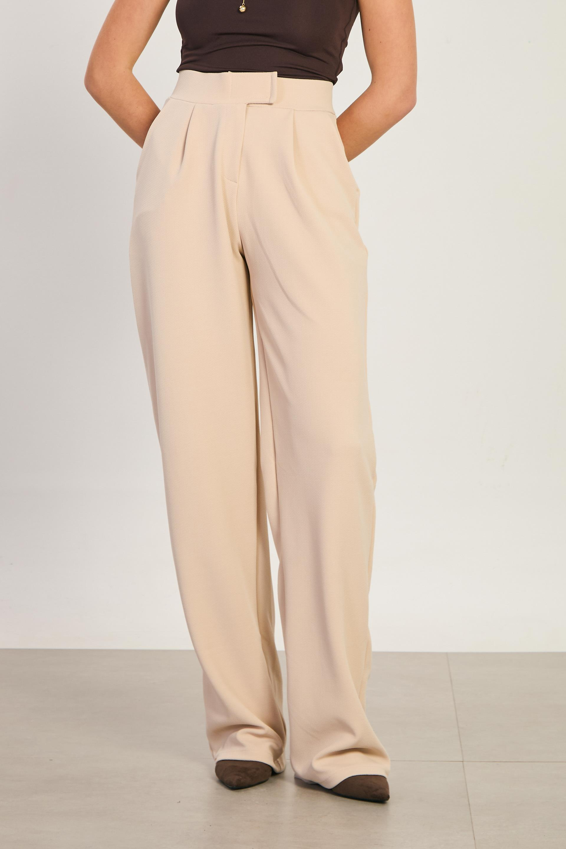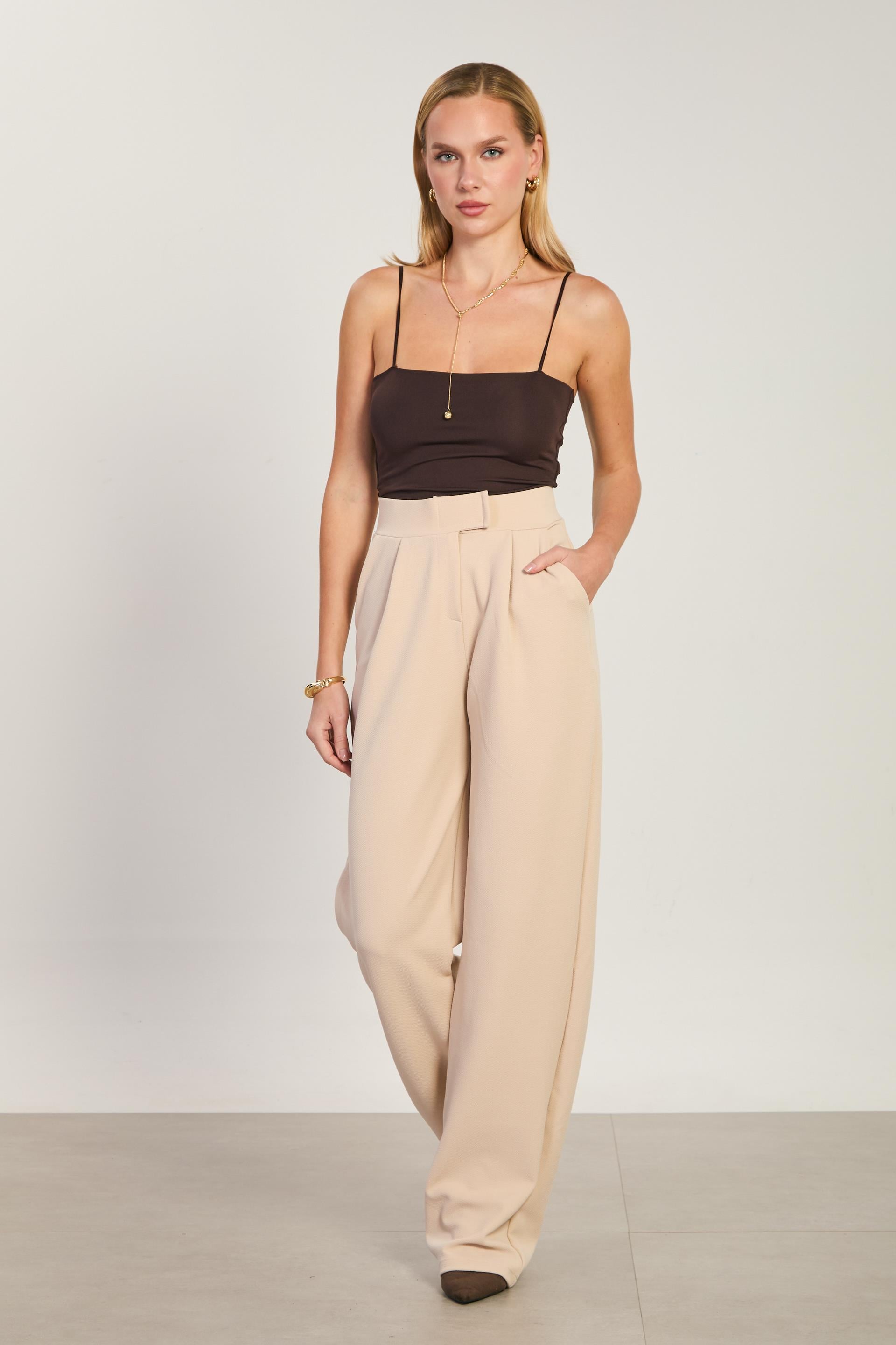 Kadın Beli Cırtlı Bol Pantolon - Taş
