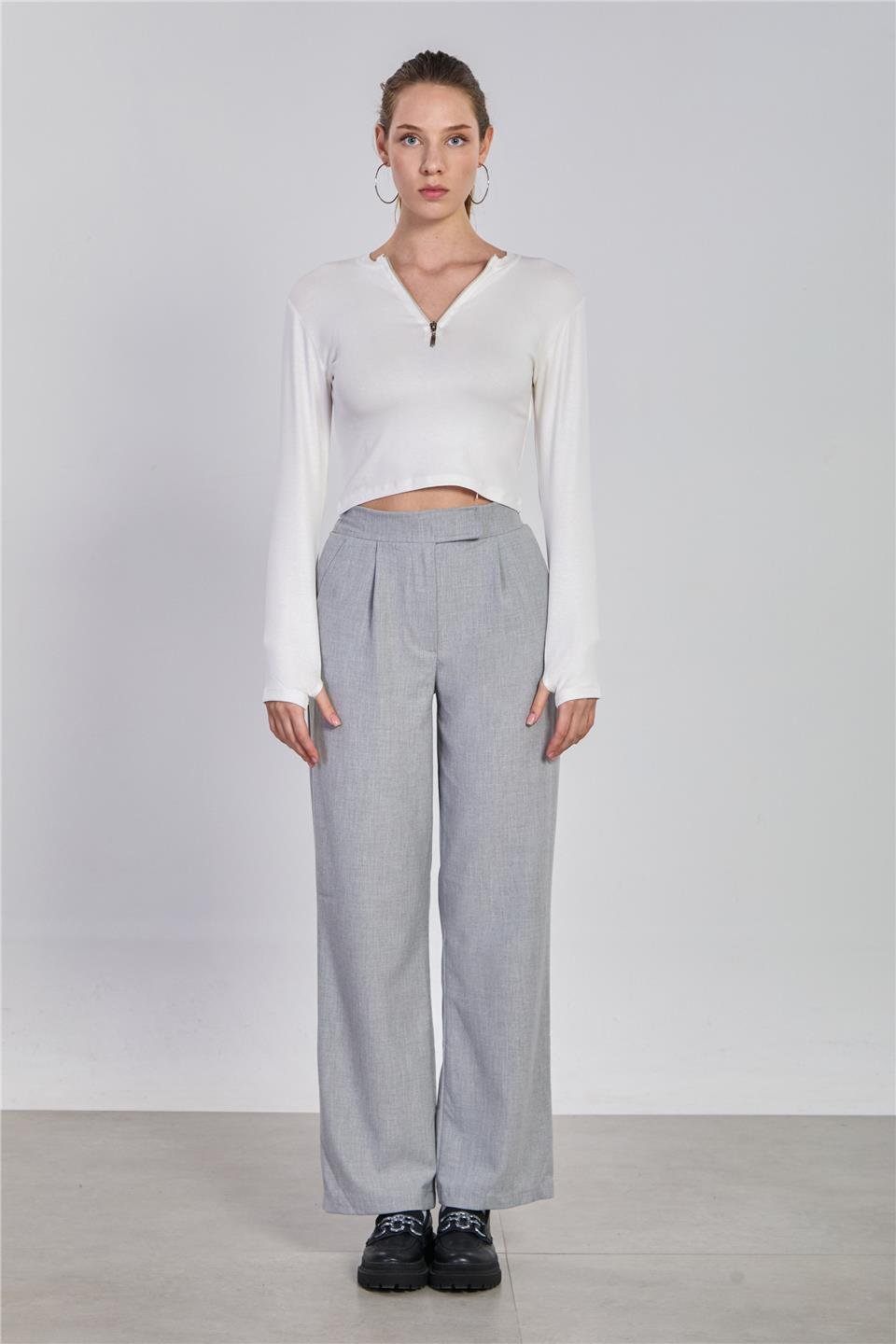 Kadın Beli Cırtlı Kumaş Pantolon - Açık Gri