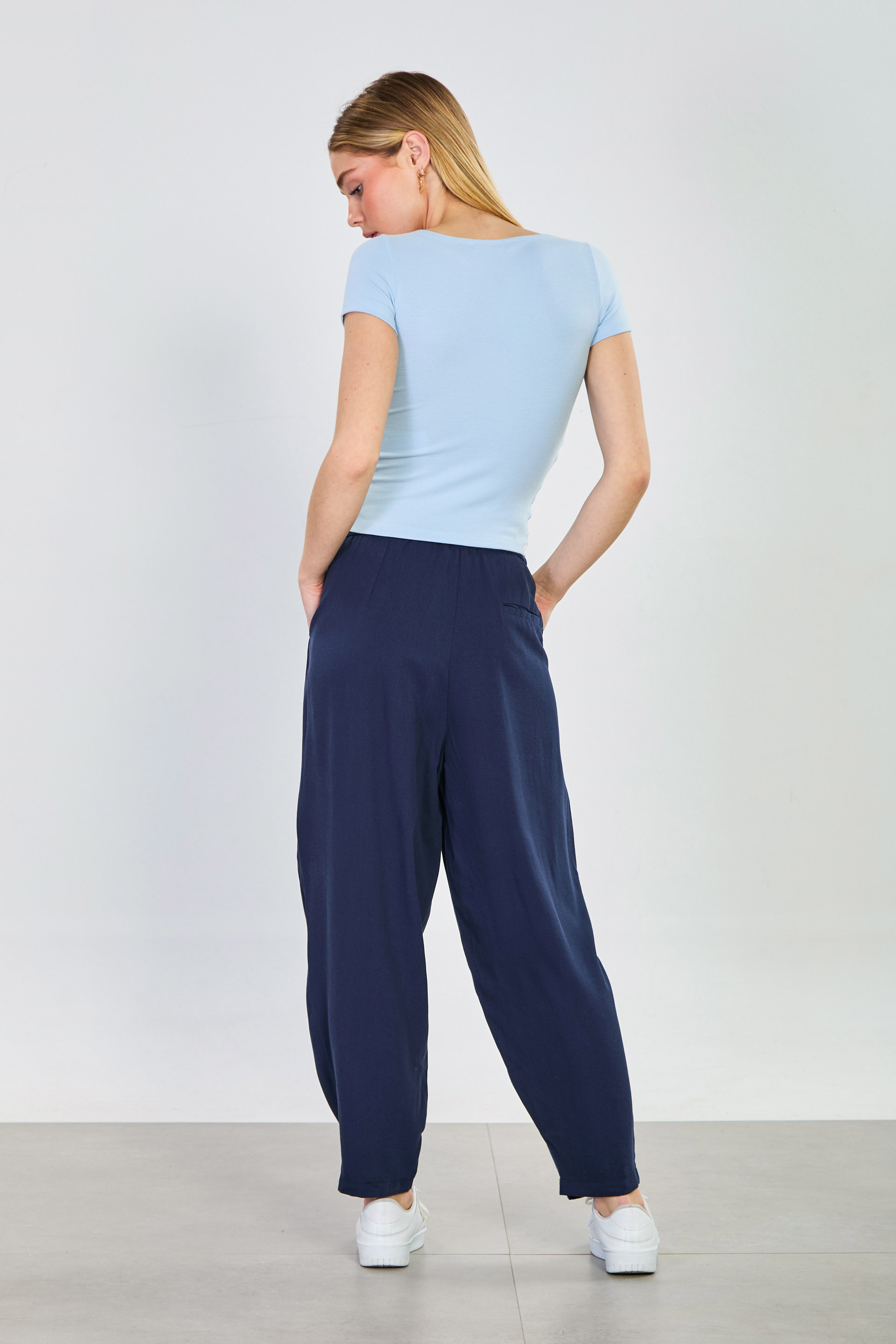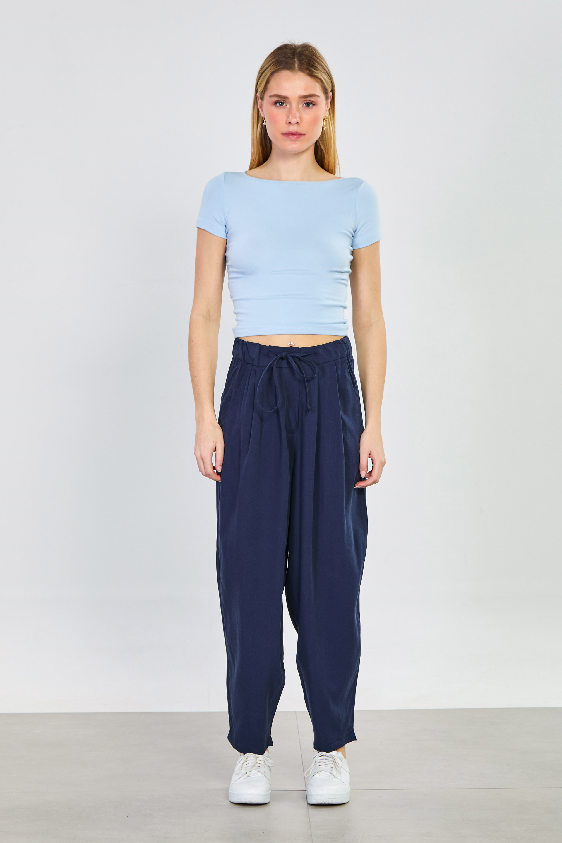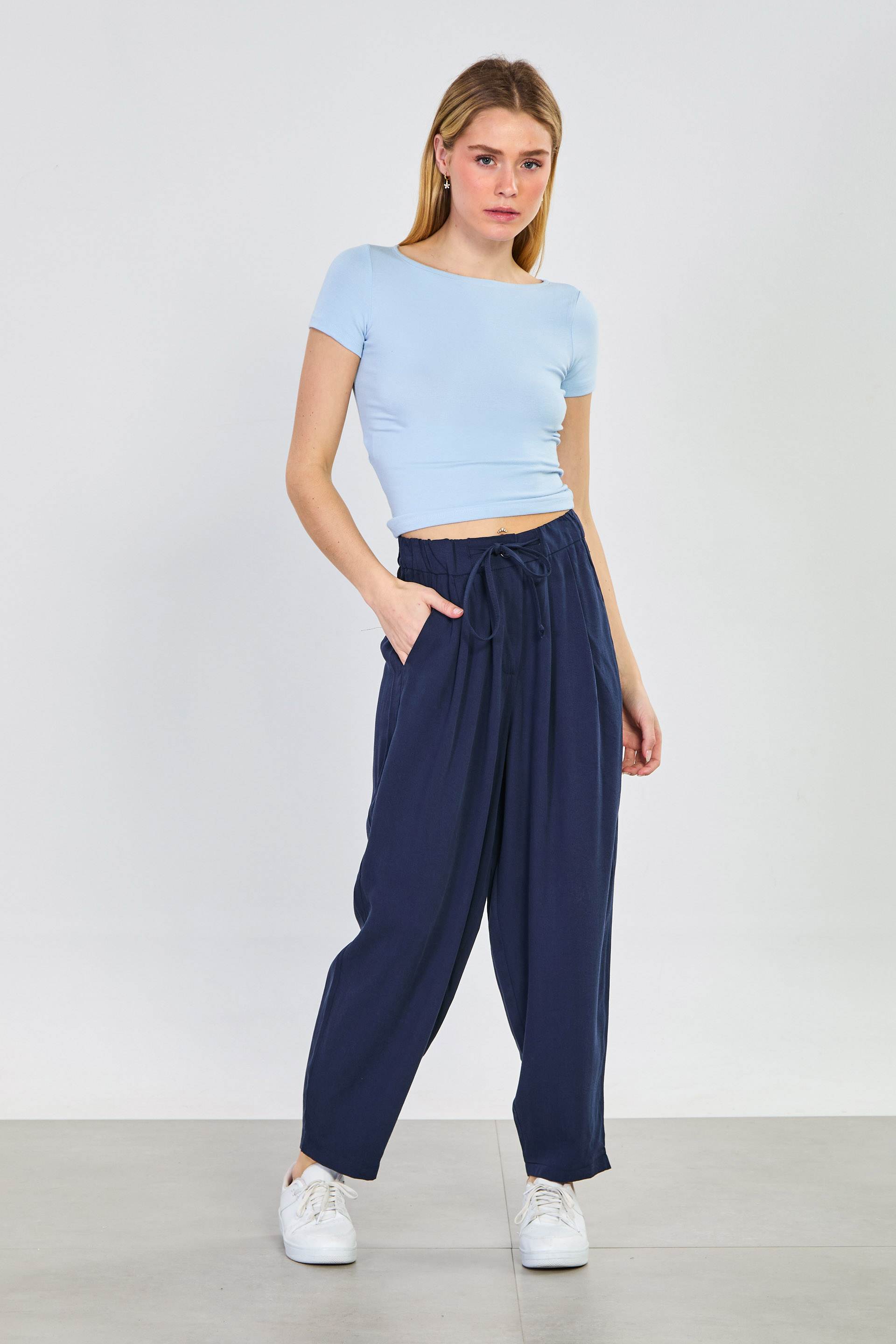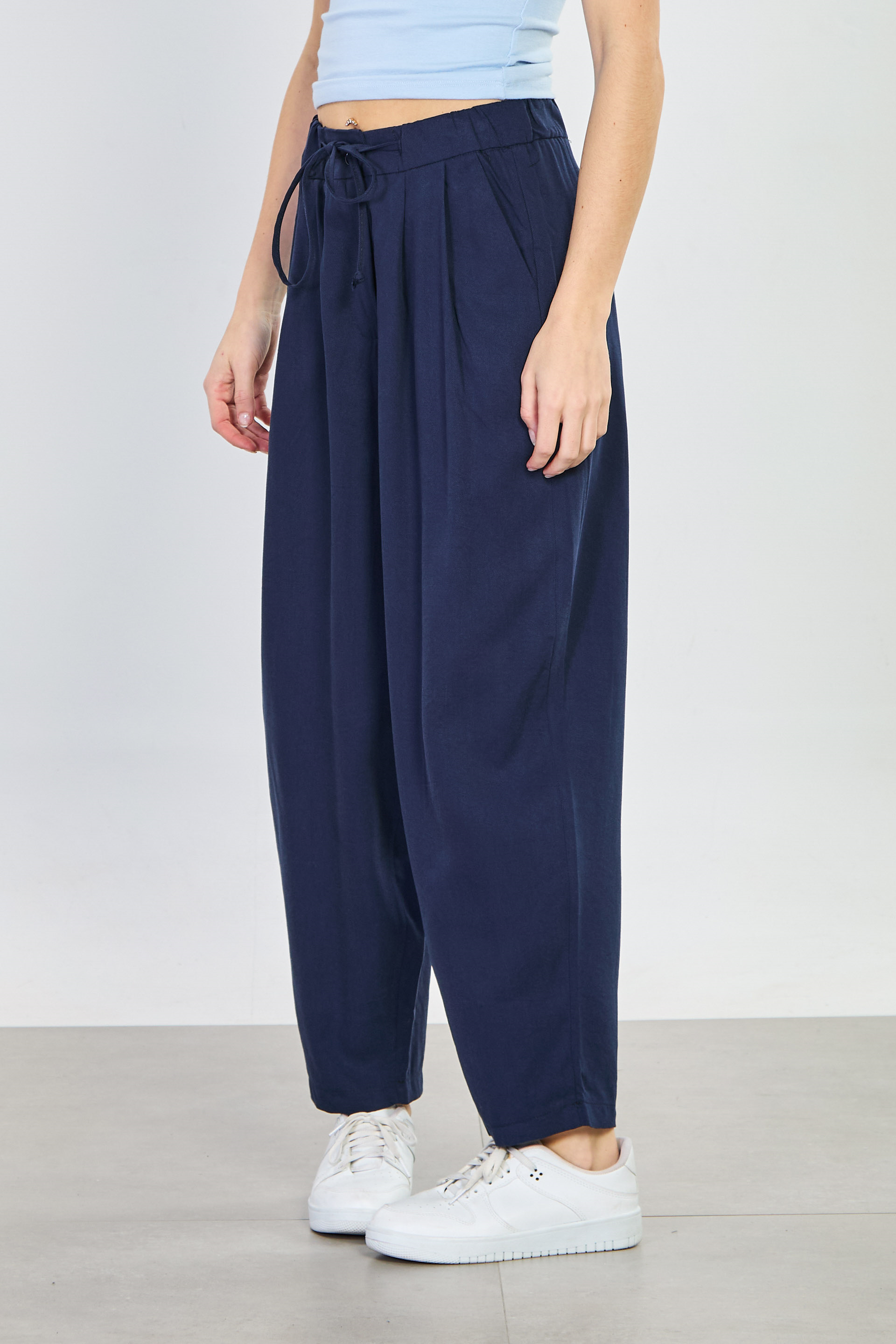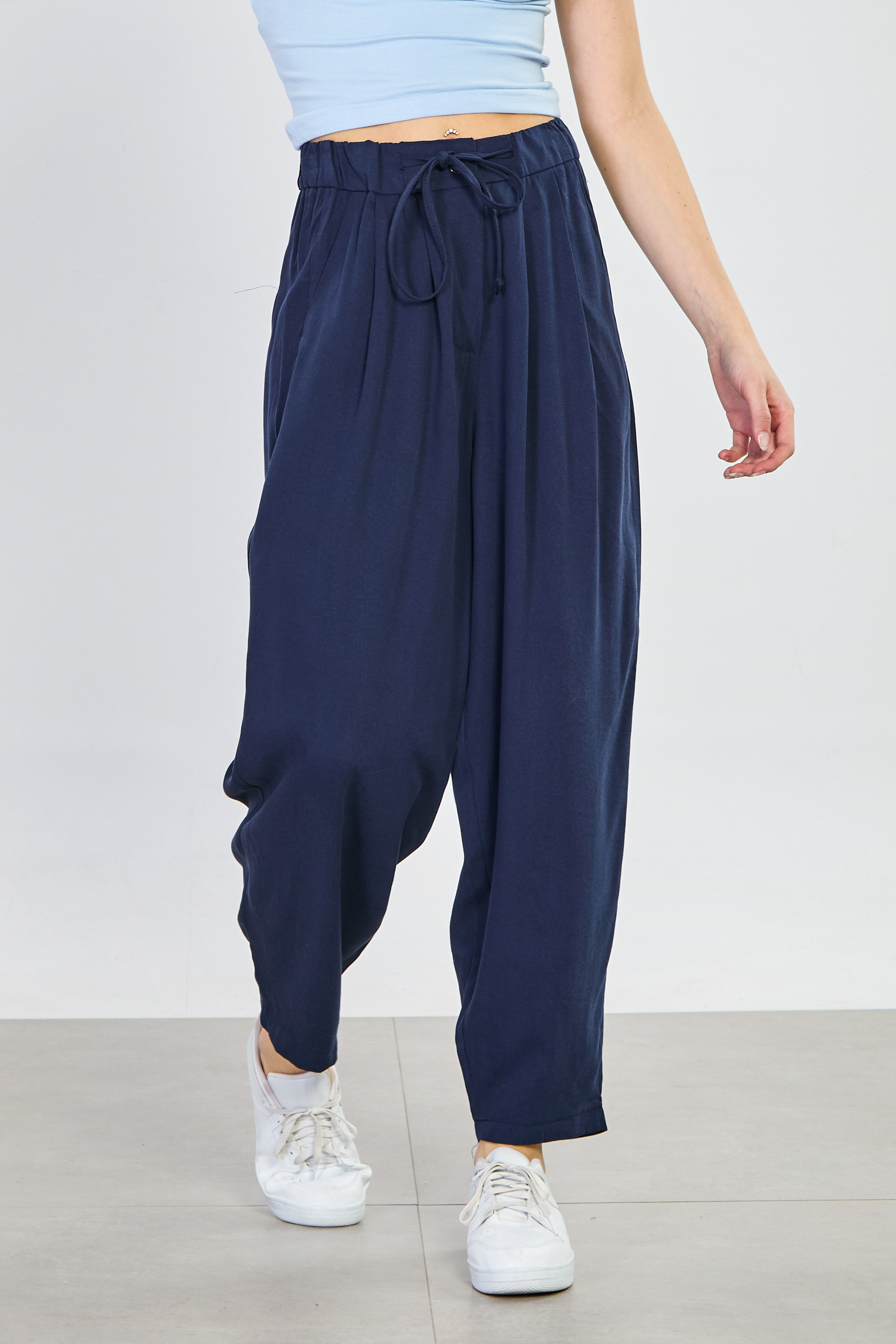 Kadın Beli İpli Havuç Pantolon - Lacivert