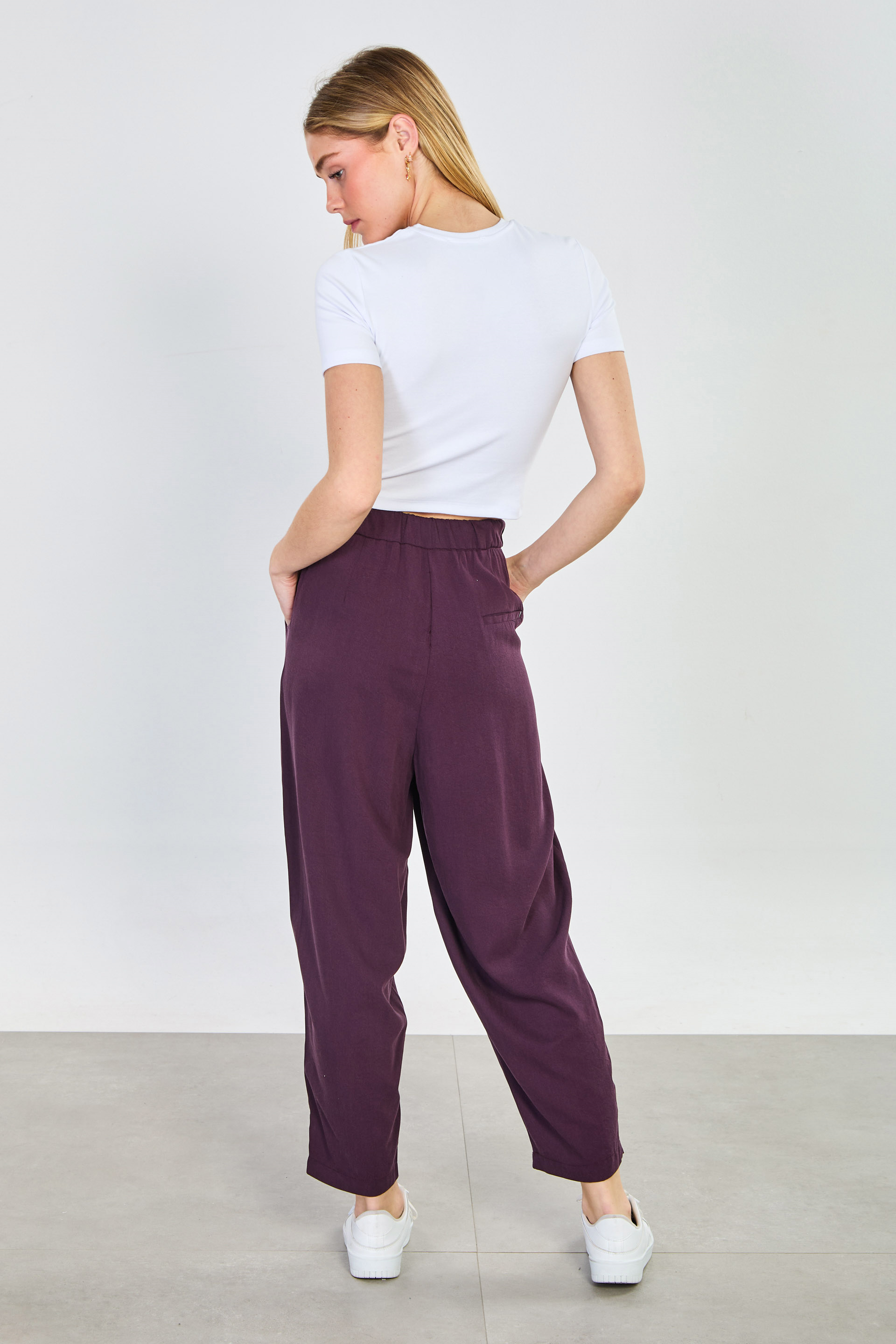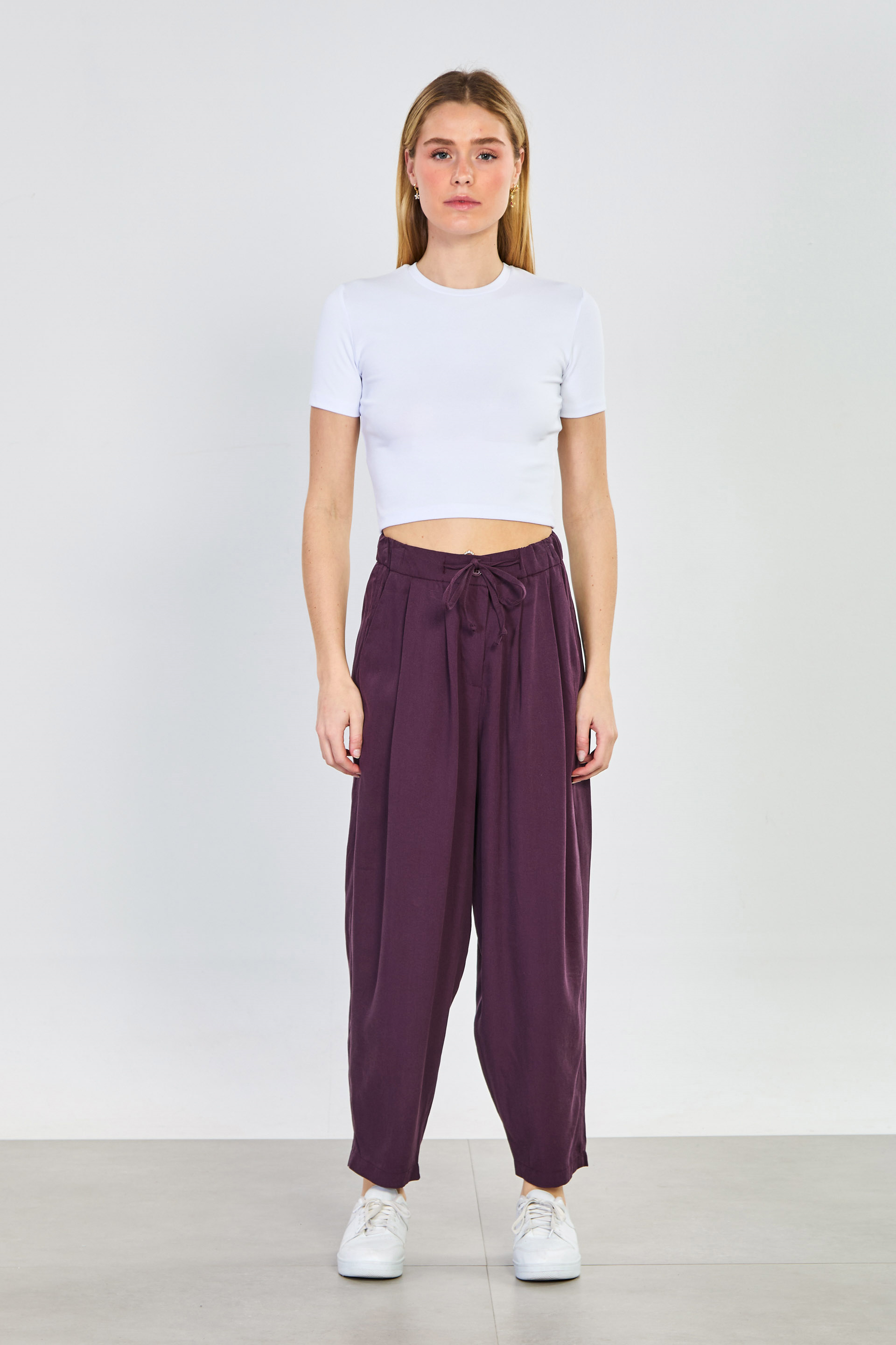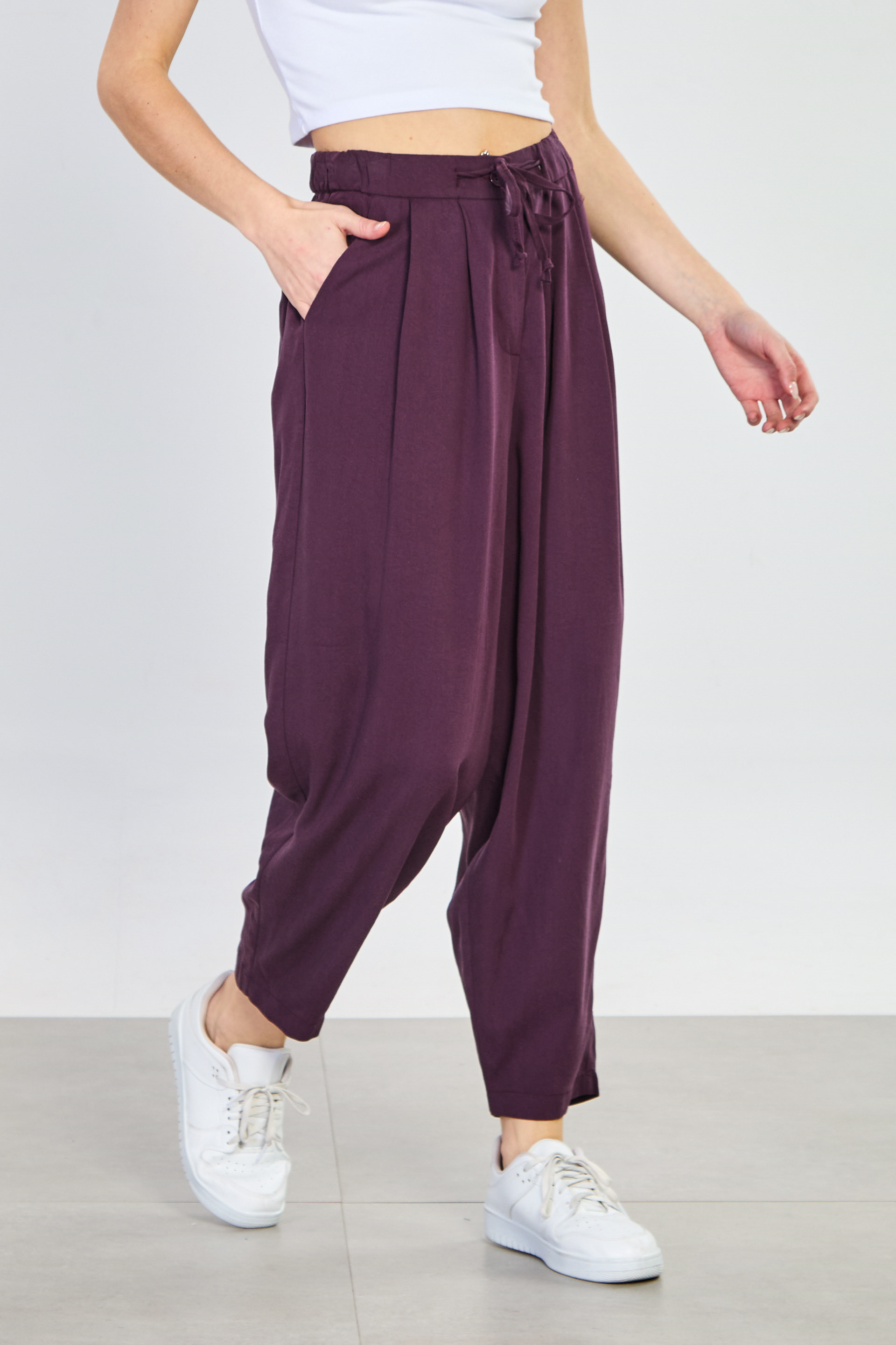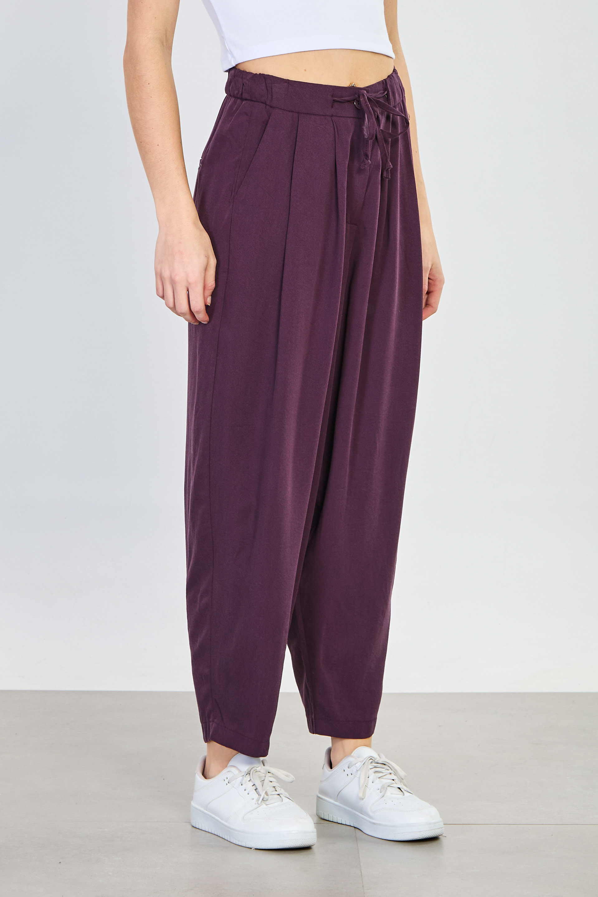 Kadın Beli İpli Havuç Pantolon - Mürdüm