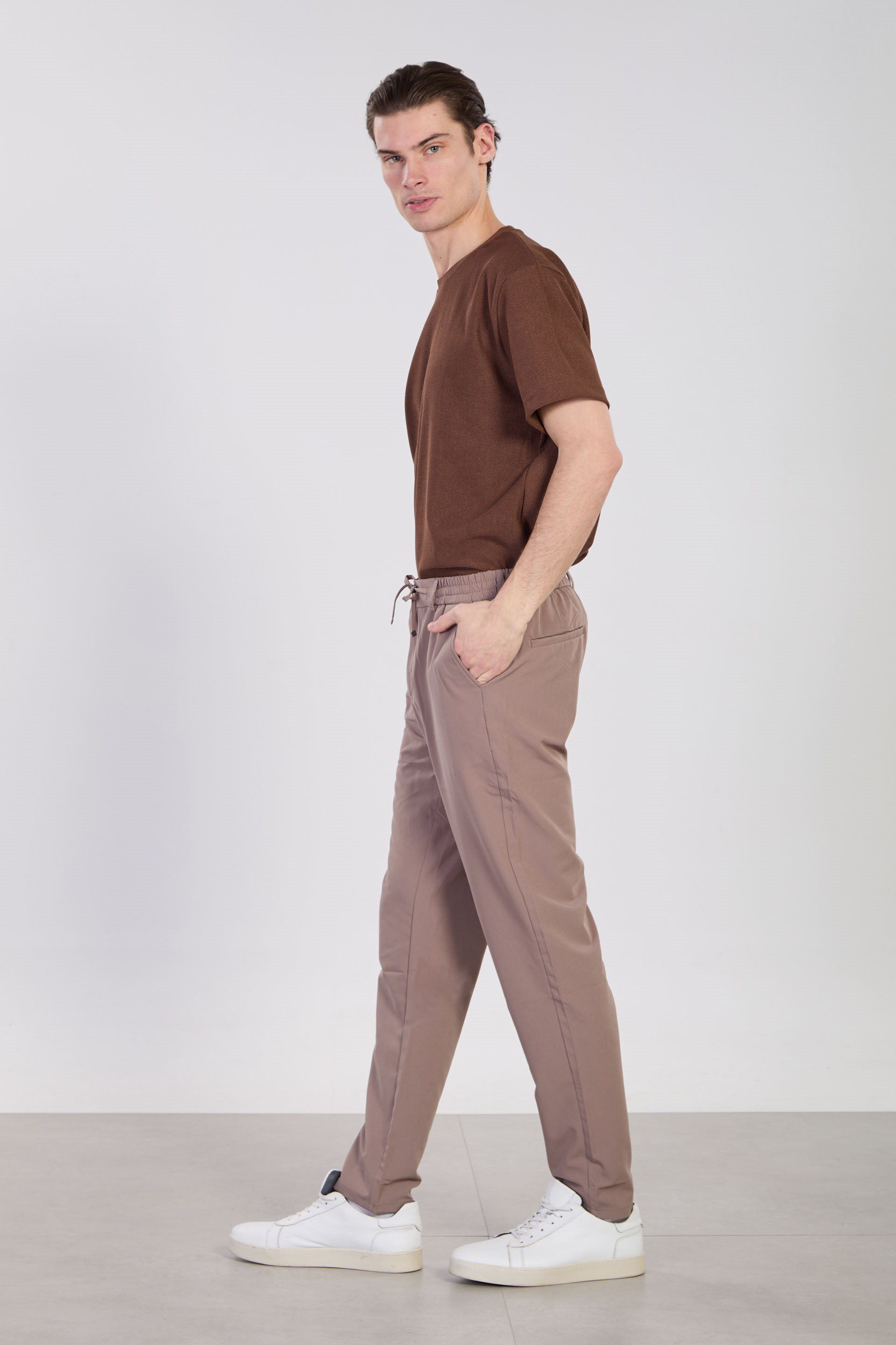 Erkek Beli İpli Jogger Pantolon - Kahve