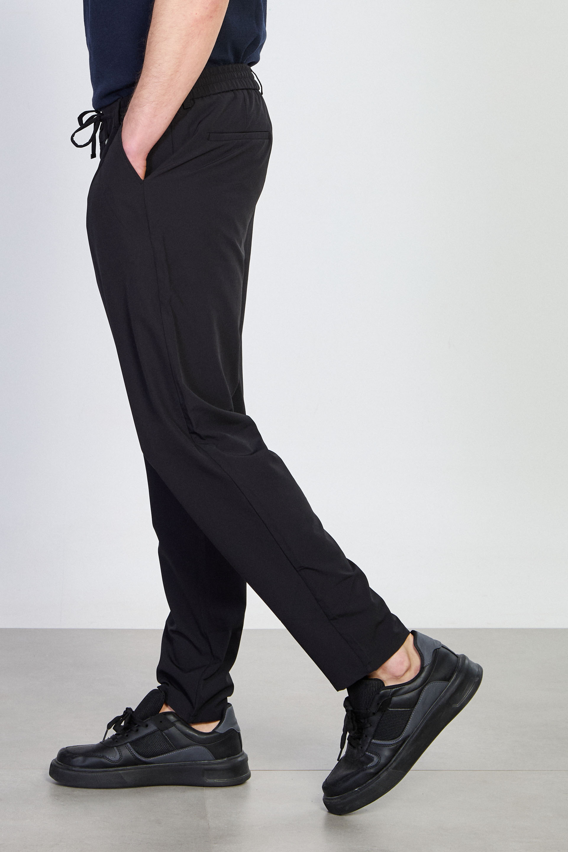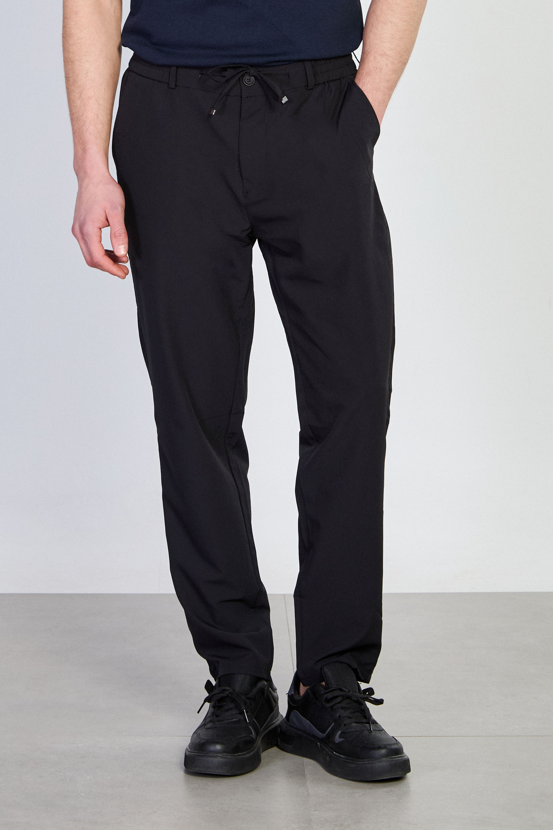 Erkek Beli İpli Jogger Pantolon - Siyah