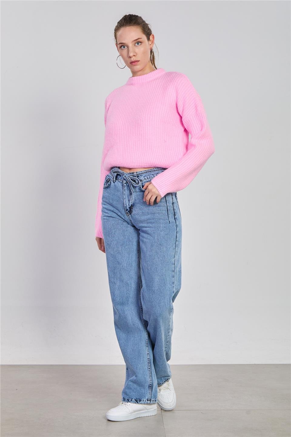 Kadın Beli İpli Palazzo Jean Pantolon - Mavi Kar