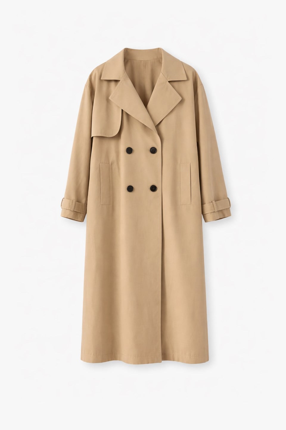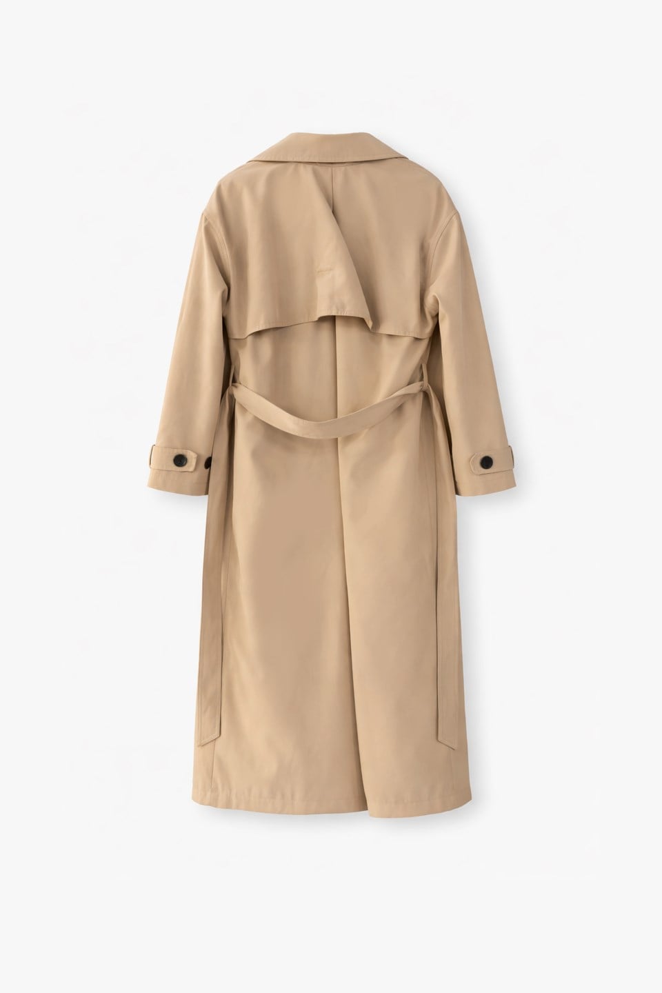 Kadın Beli Kuşaklı Dört Düğmeli Uzun Trençkot - Bej
