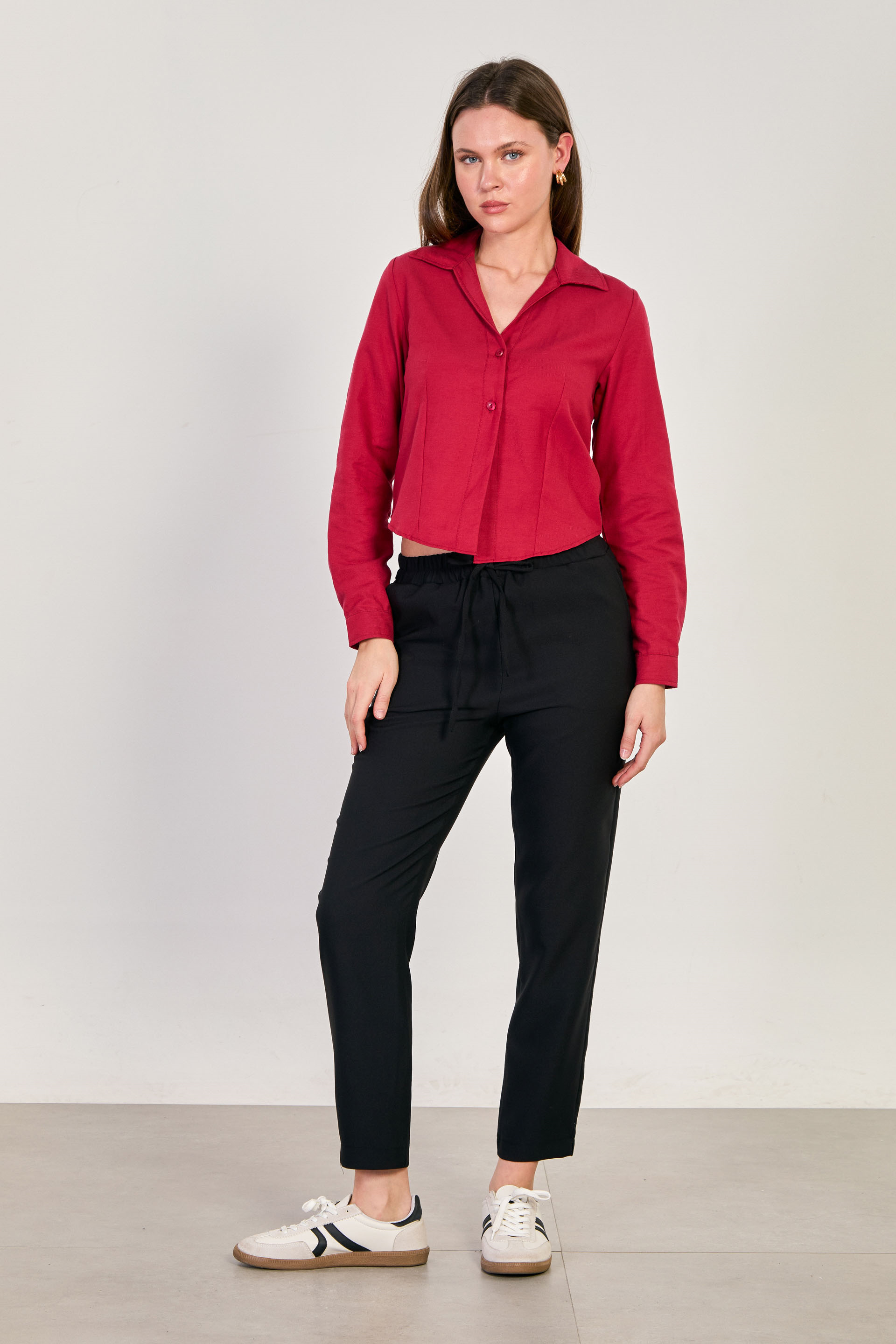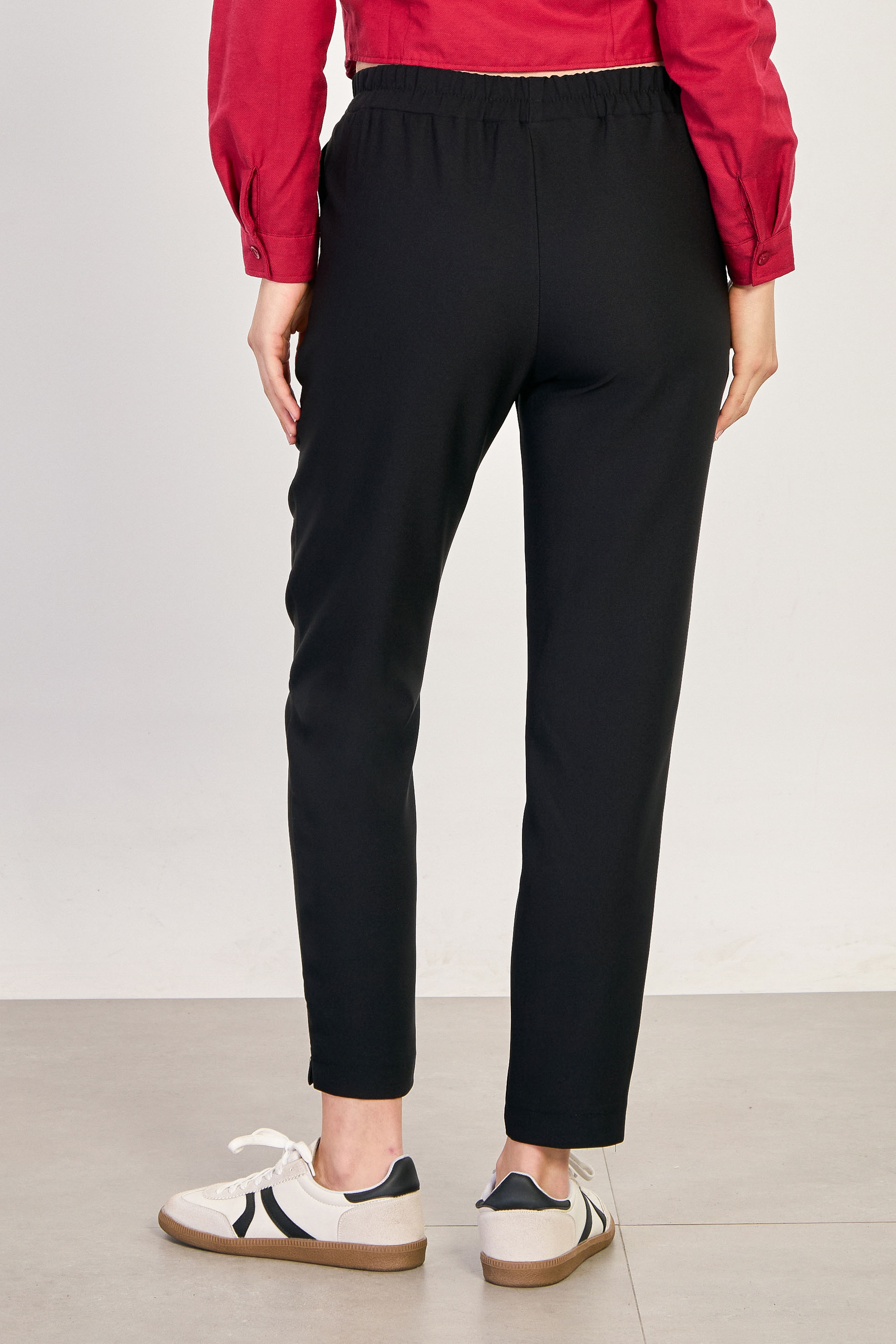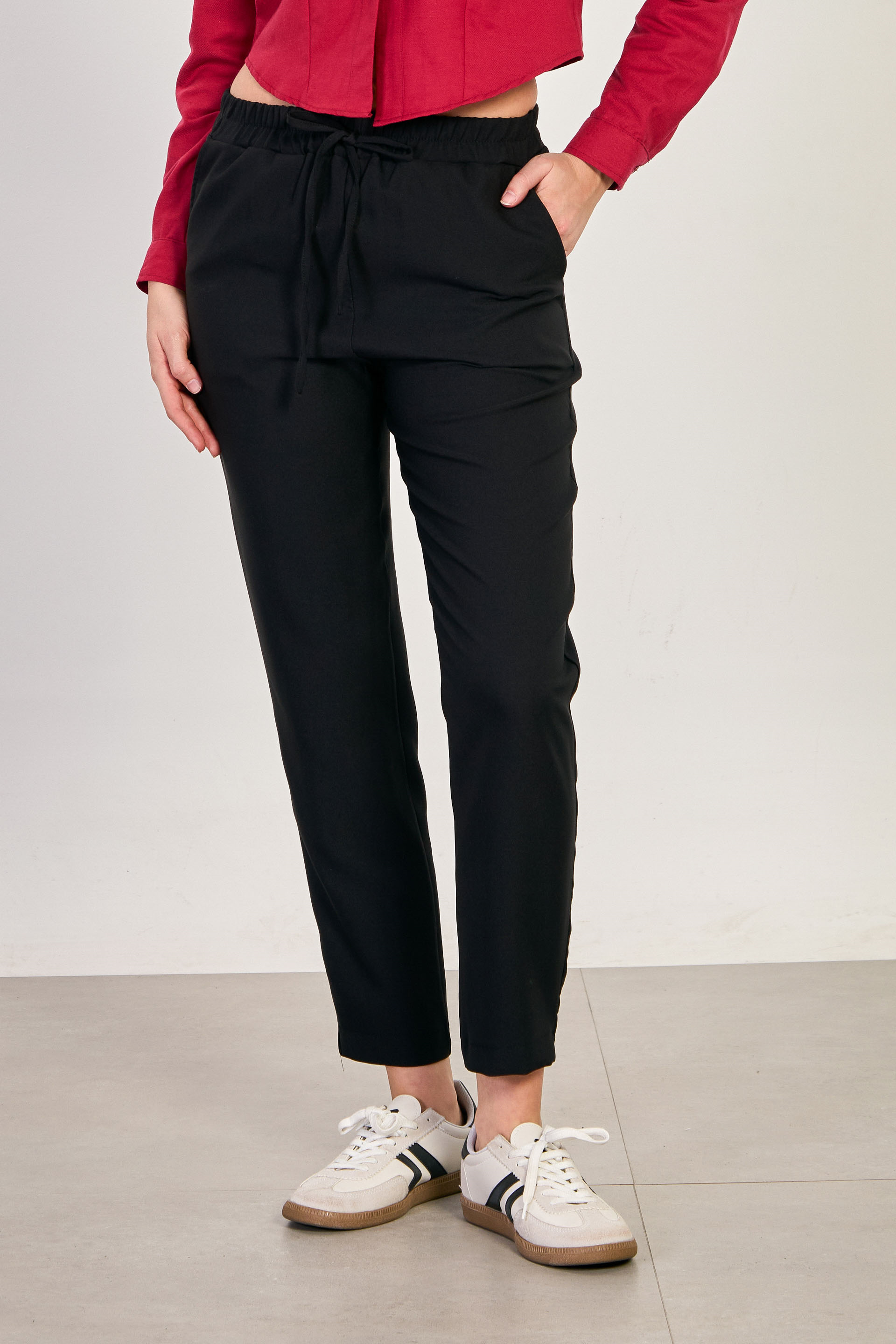 Kadın Beli Lastikli Bağcıklı Pantolon - Siyah