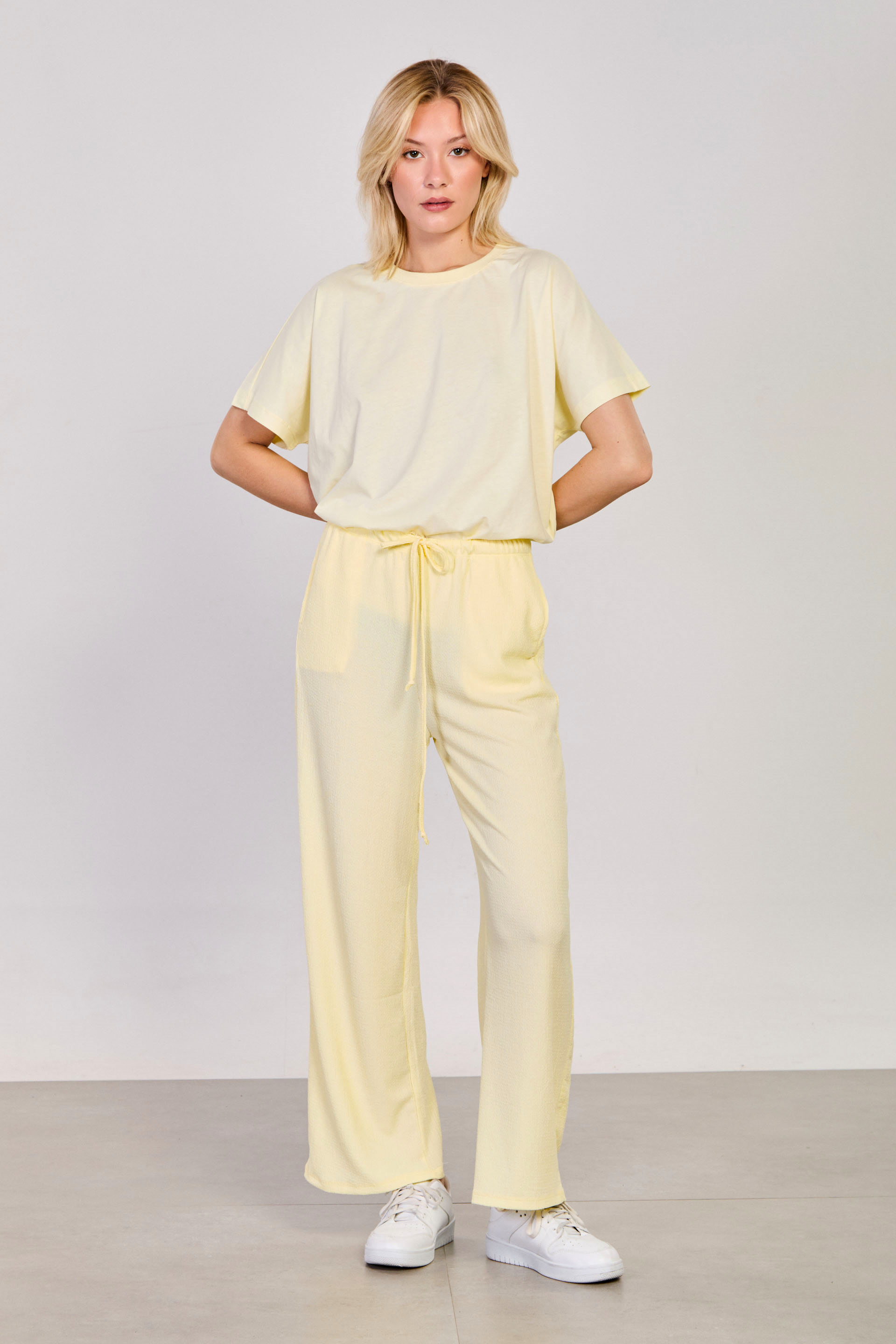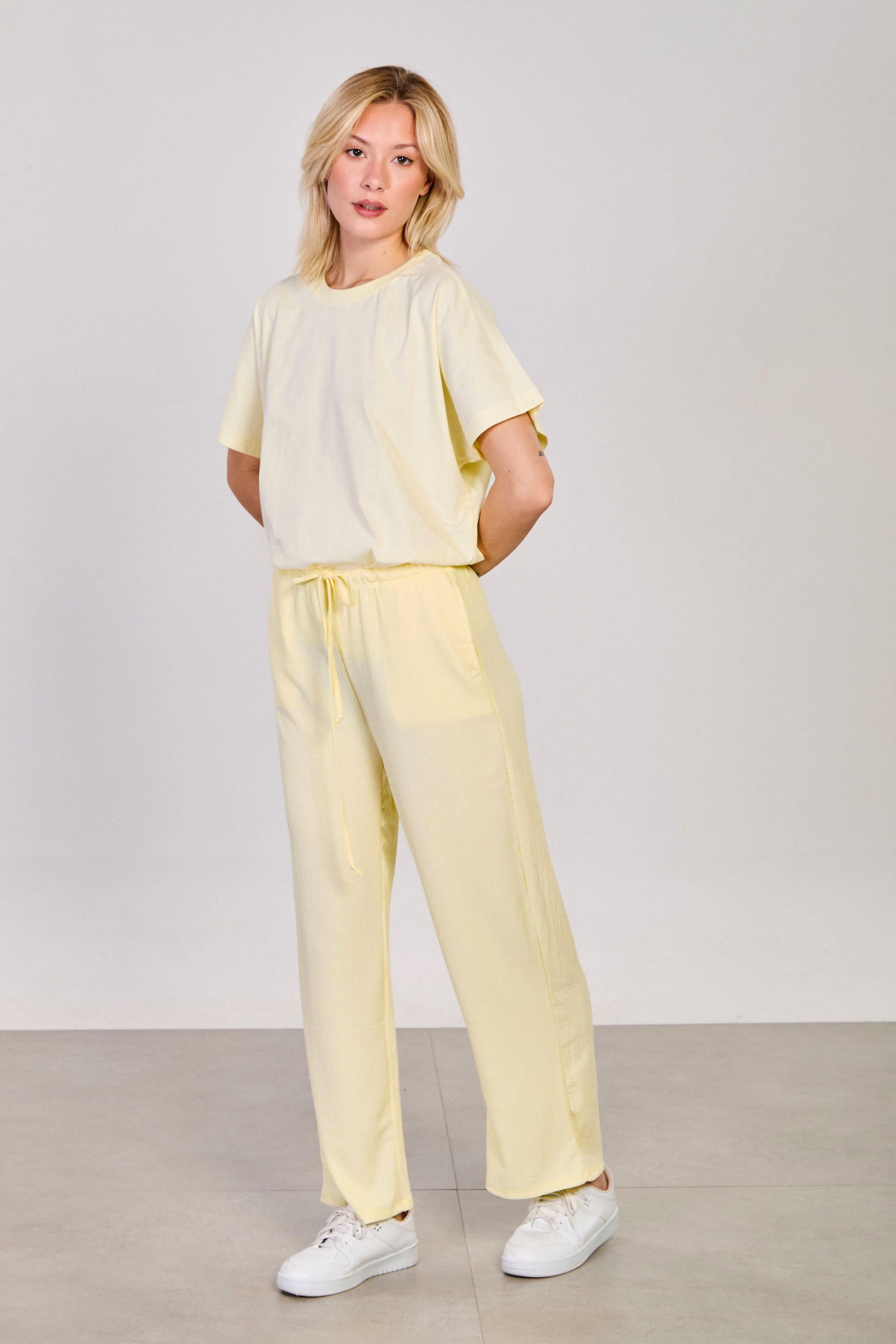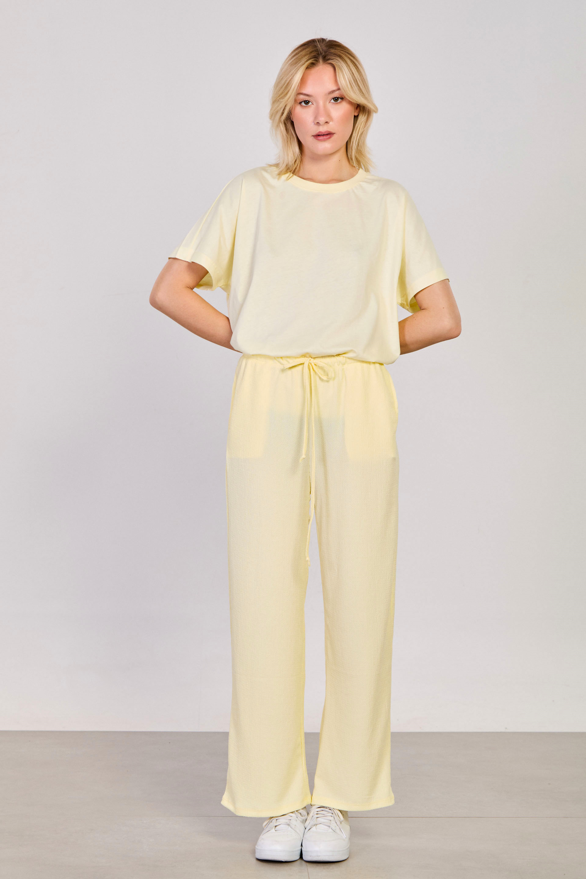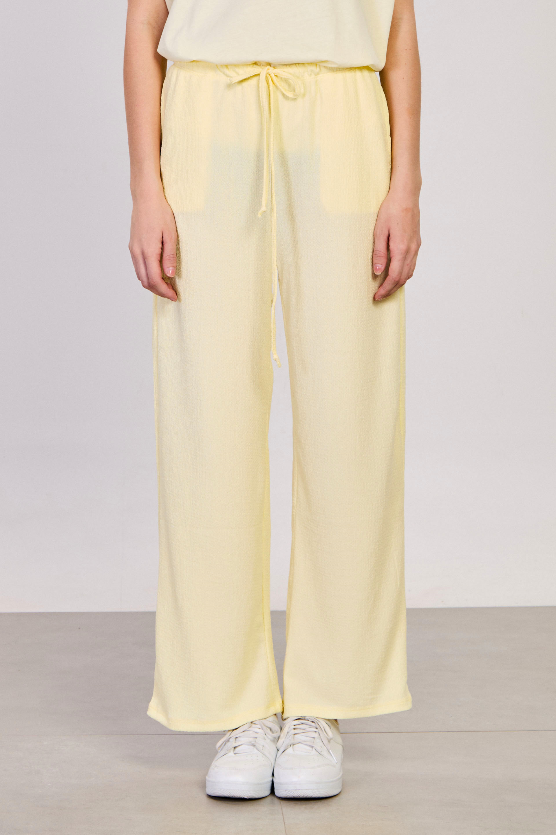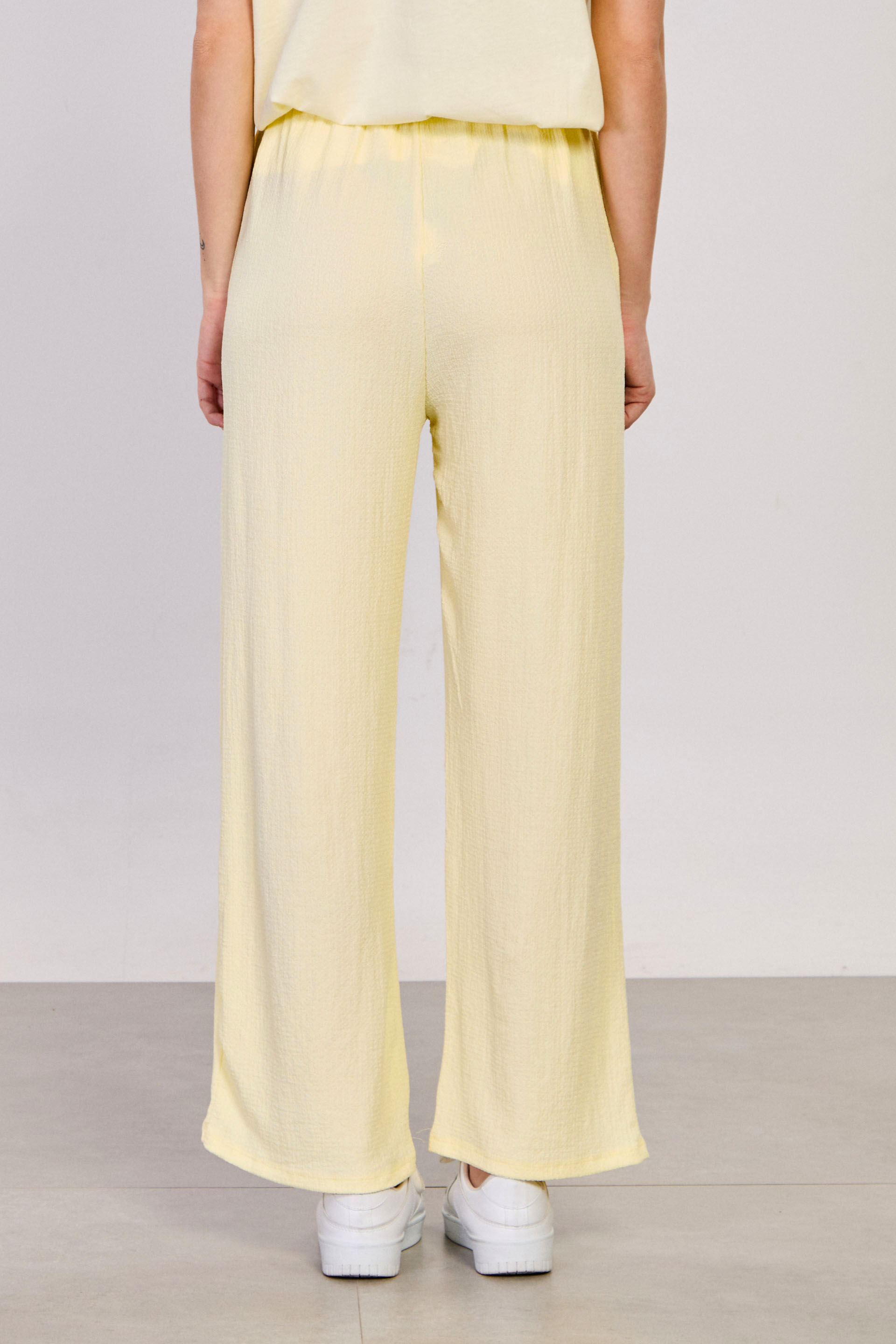 Kadın Beli Lastikli Bol Paça Pantolon - Sarı