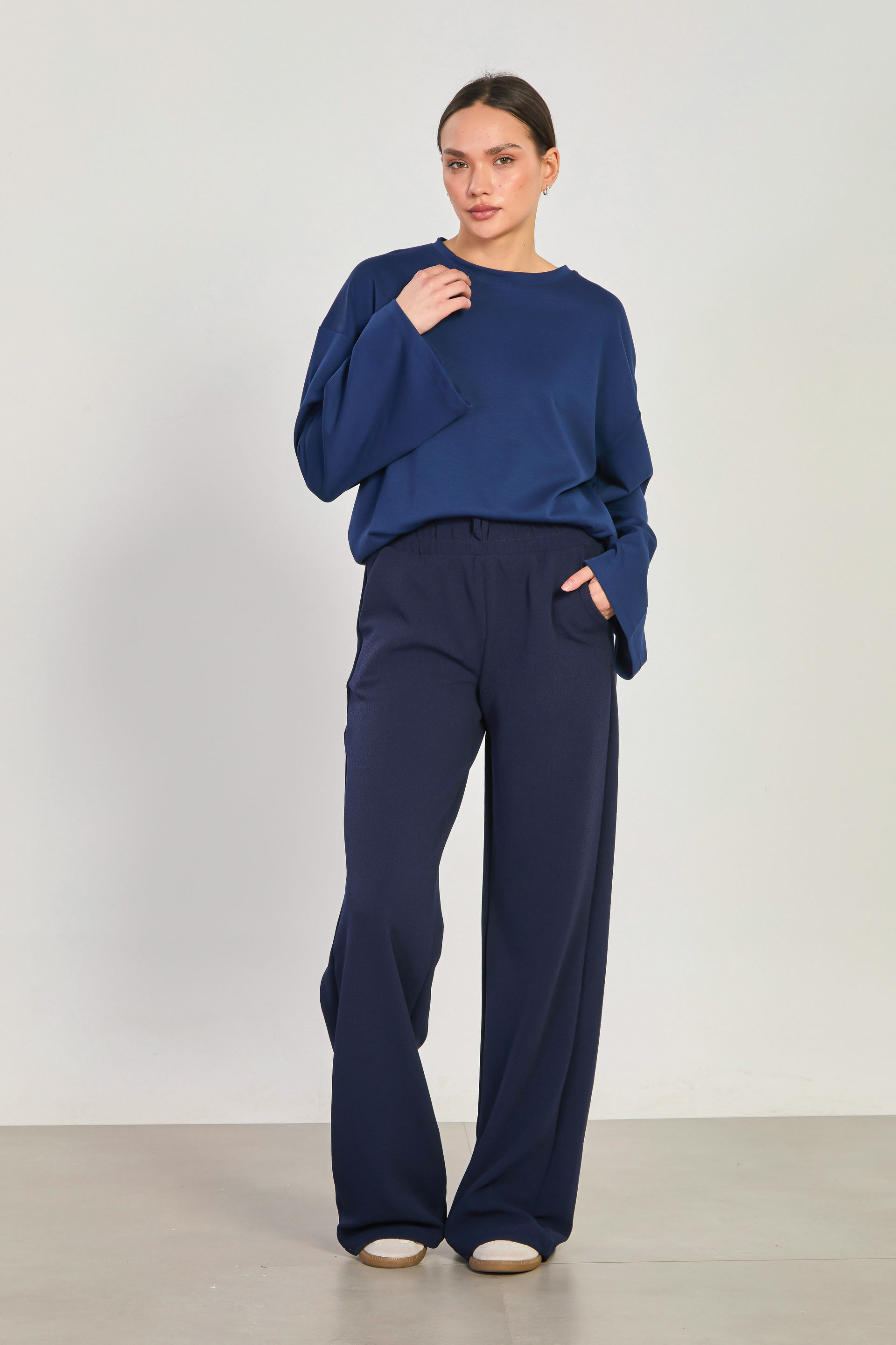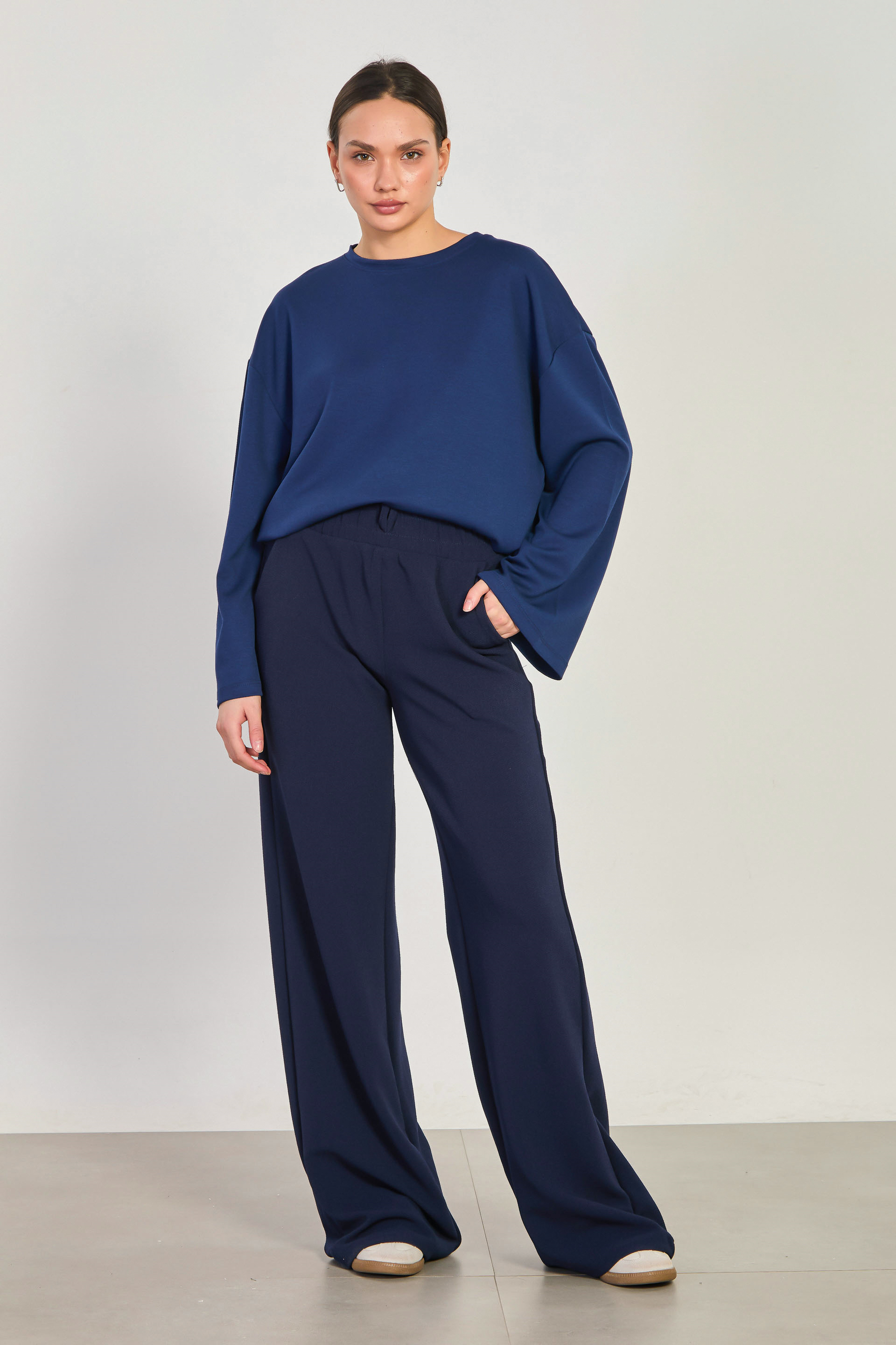 Kadın Beli Lastikli Bol Pantolon - Lacivert