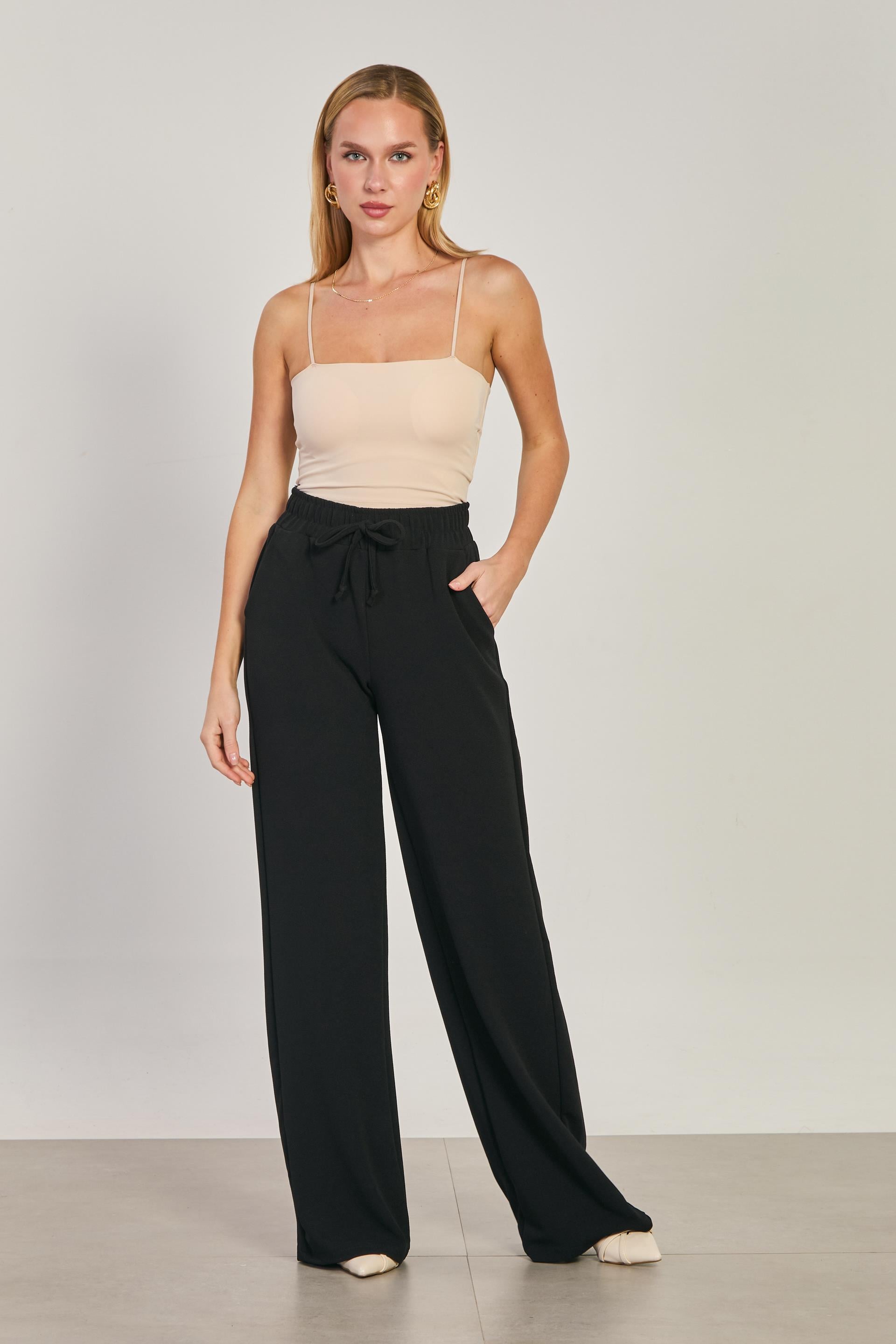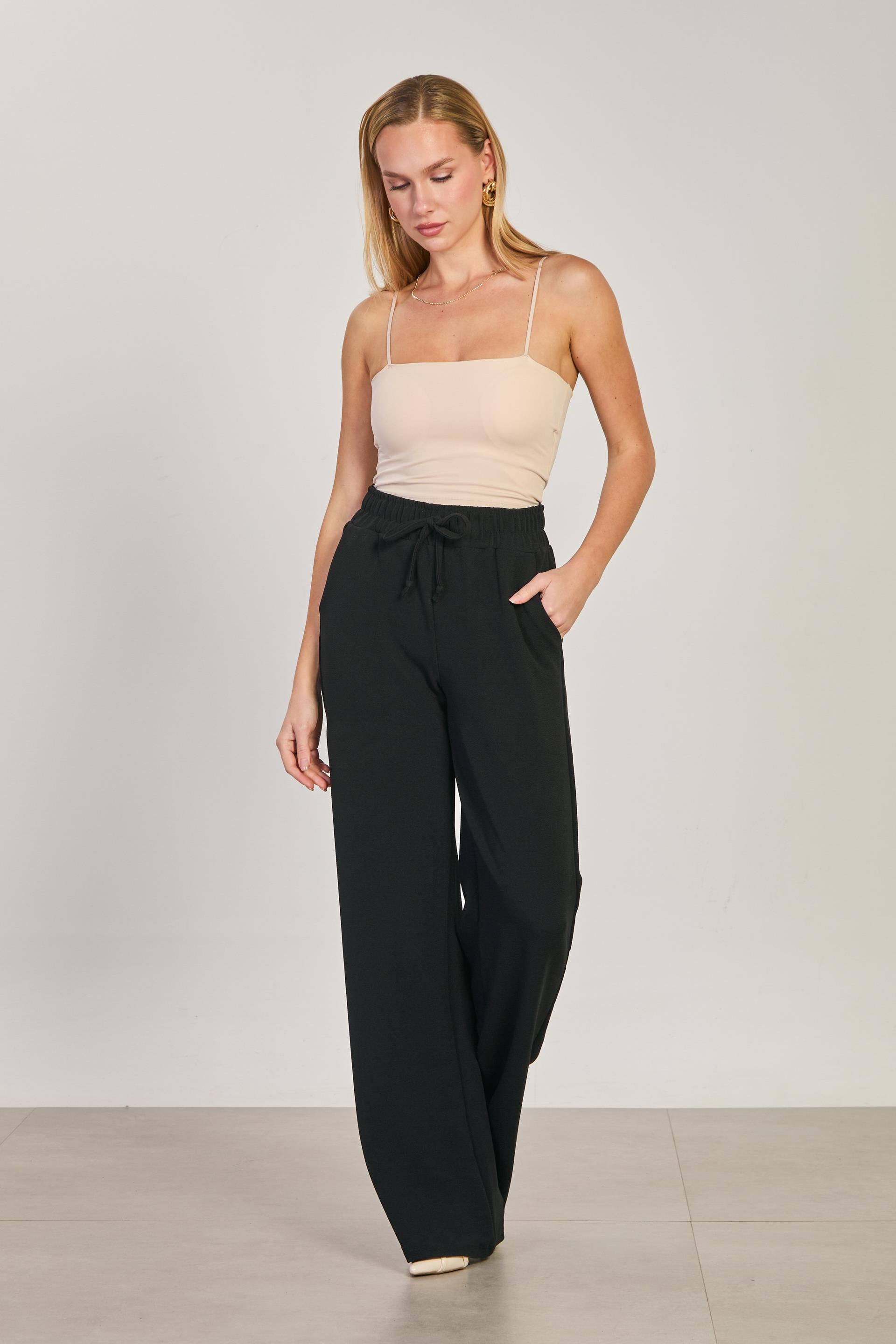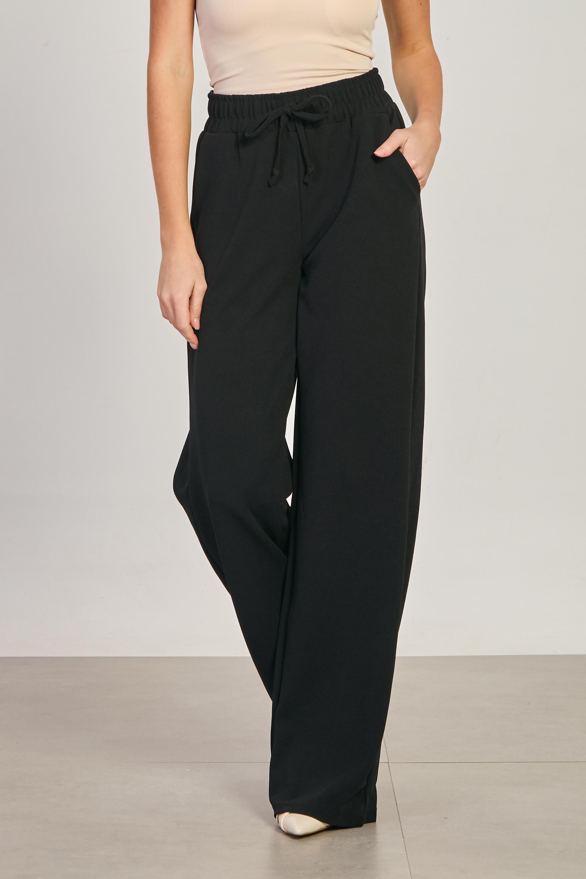Kadın Beli Lastikli Bol Pantolon - Siyah