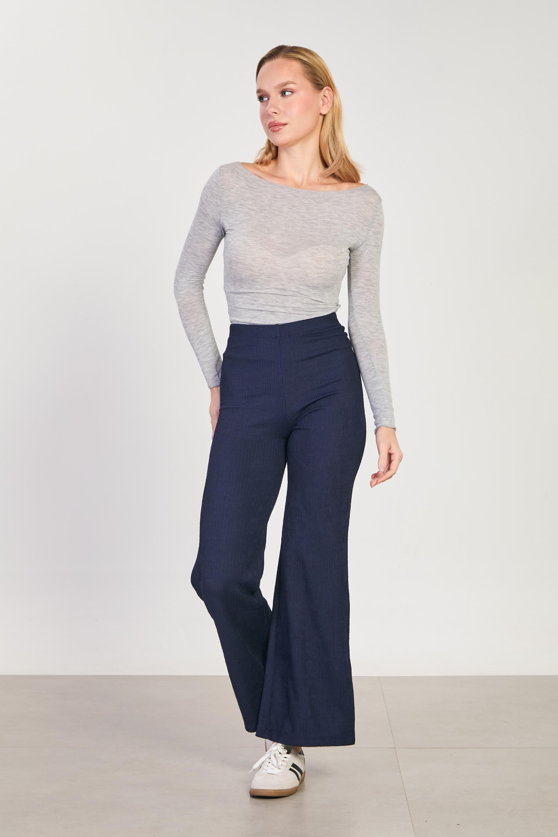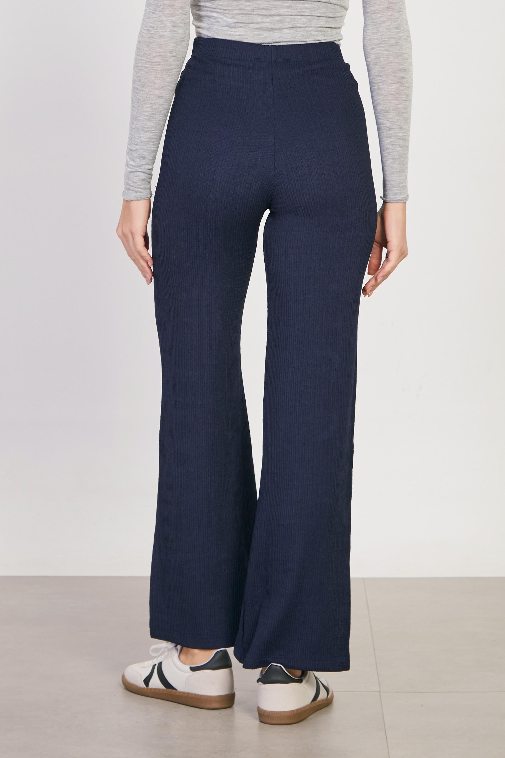 Kadın Beli Lastikli Dokulu Bol Pantolon - Lacivert