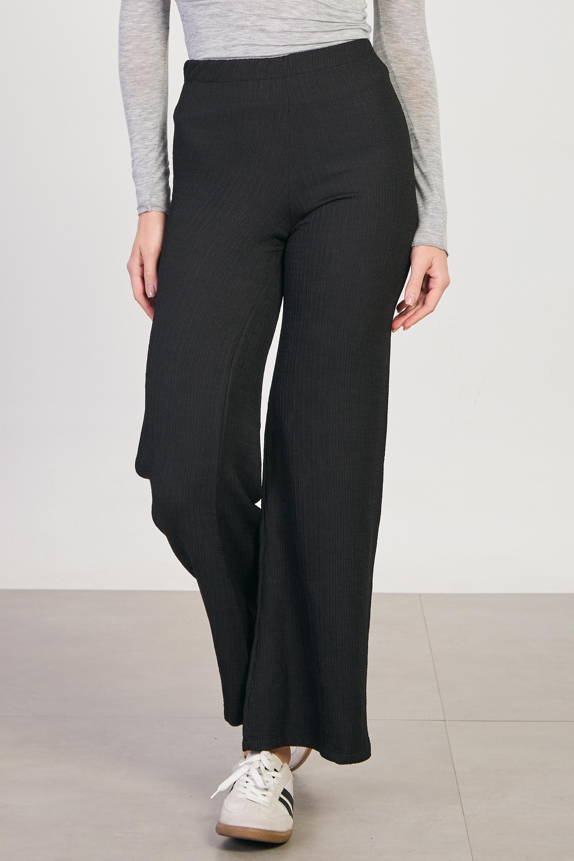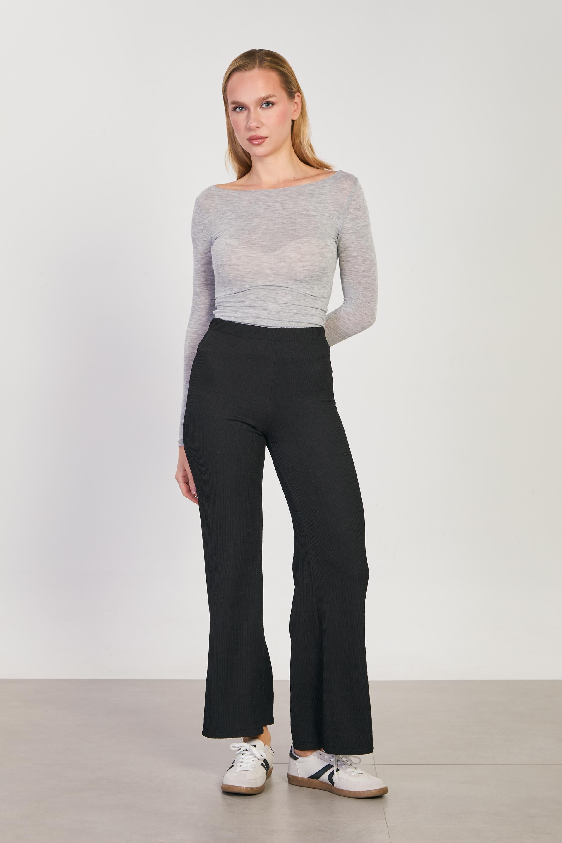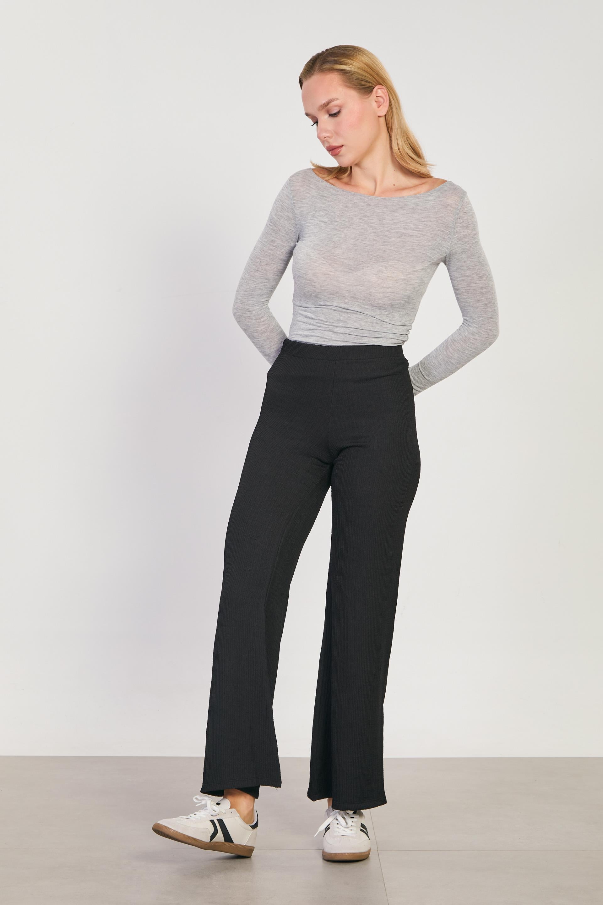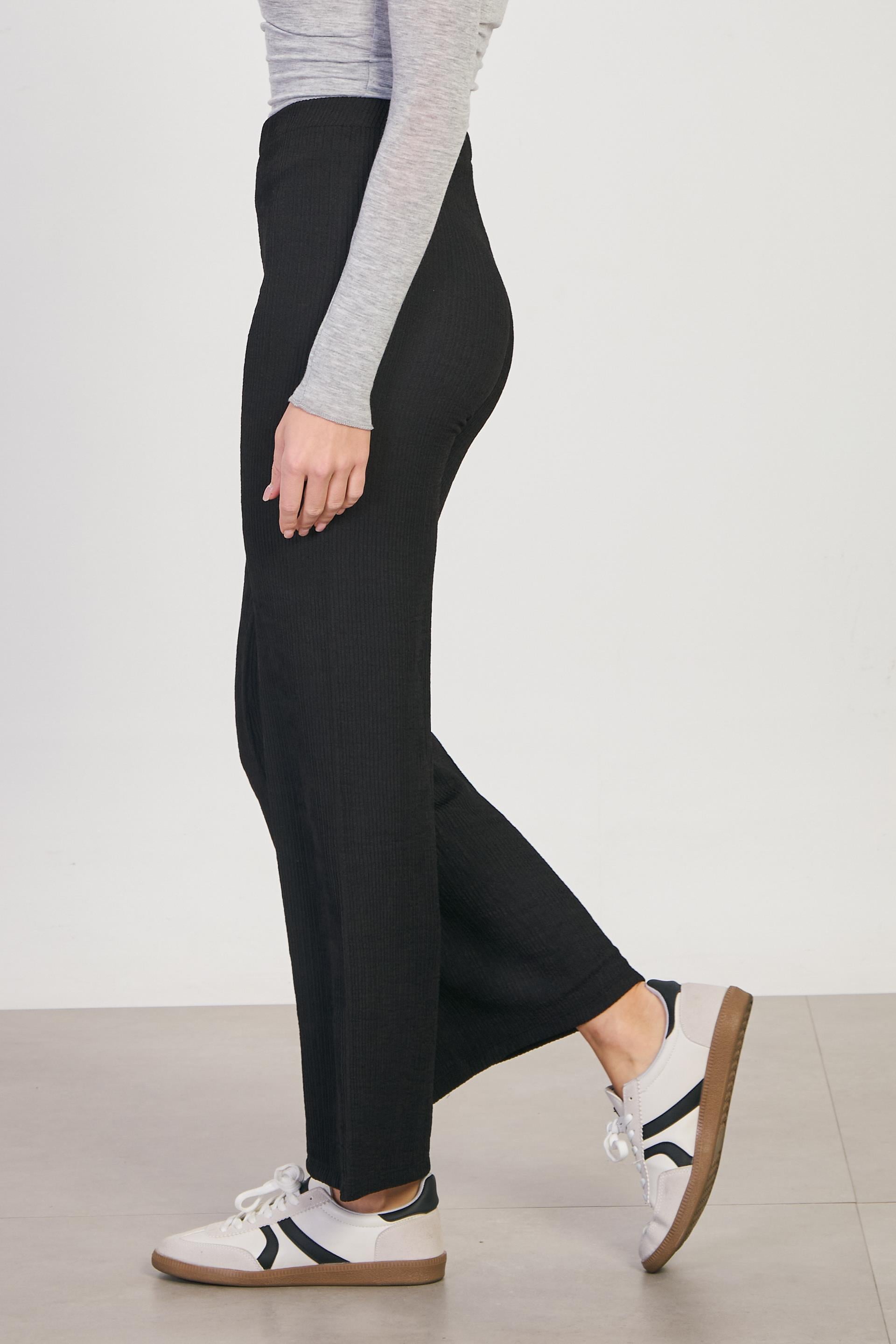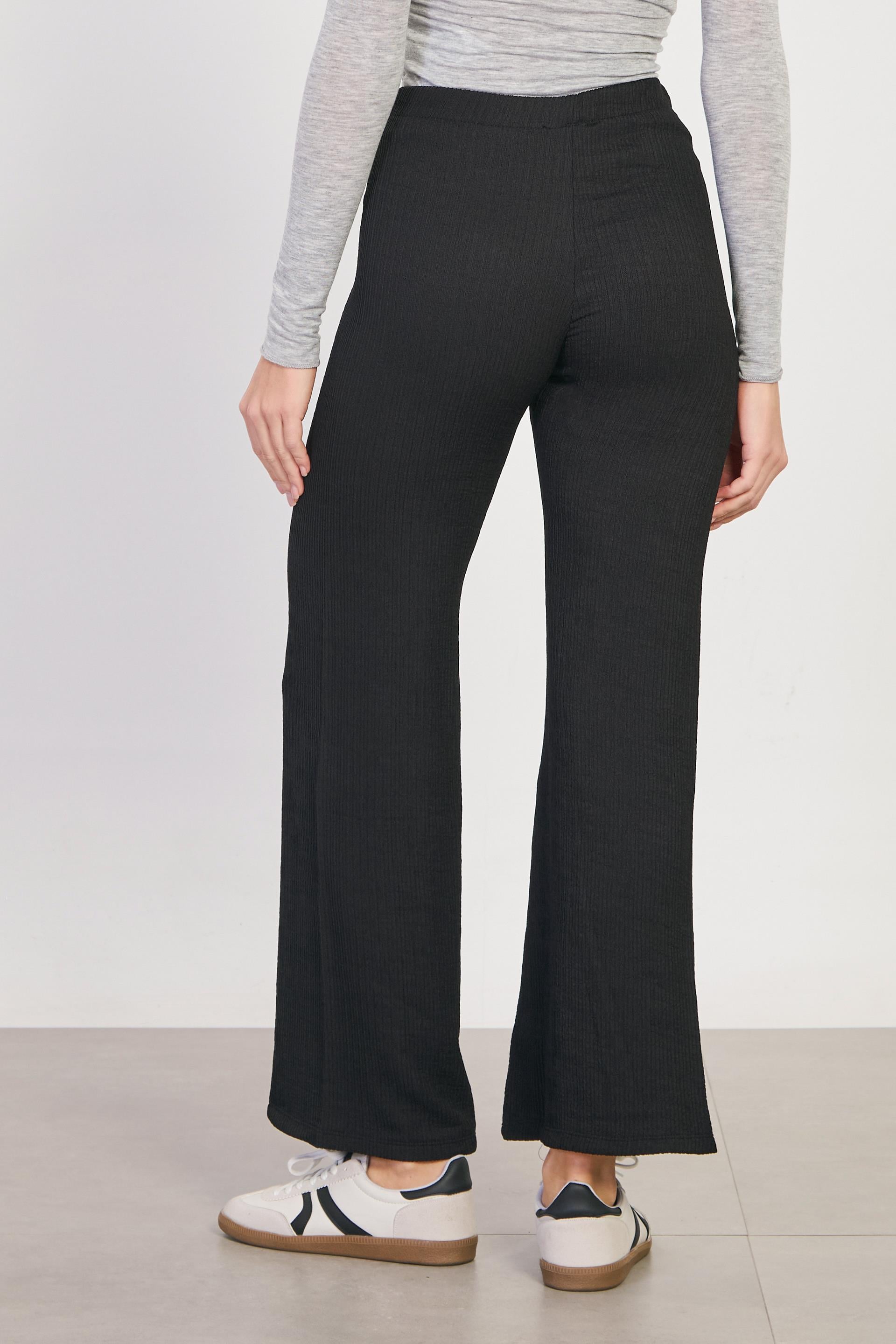Kadın Beli Lastikli Dokulu Bol Pantolon - Siyah
