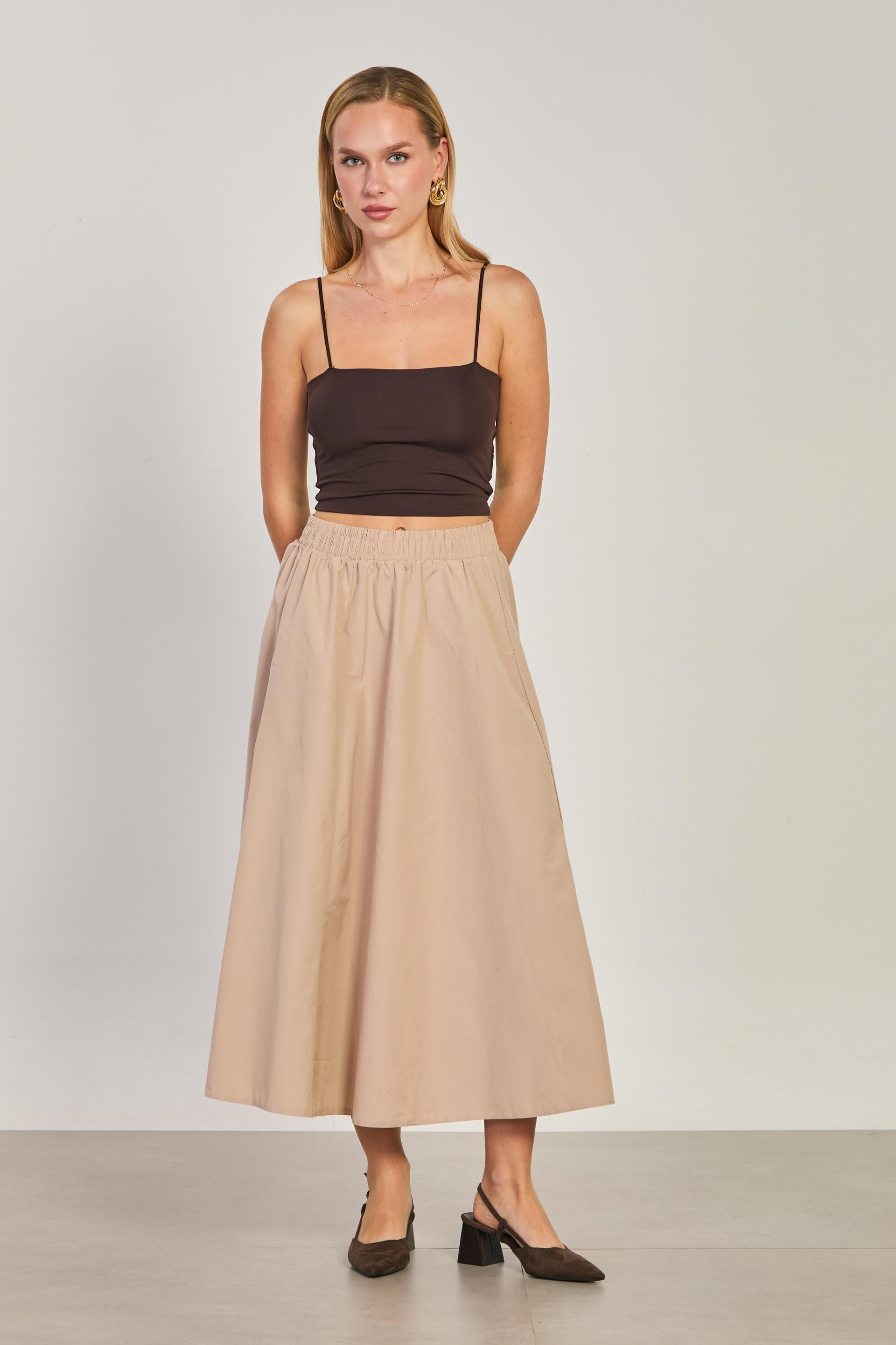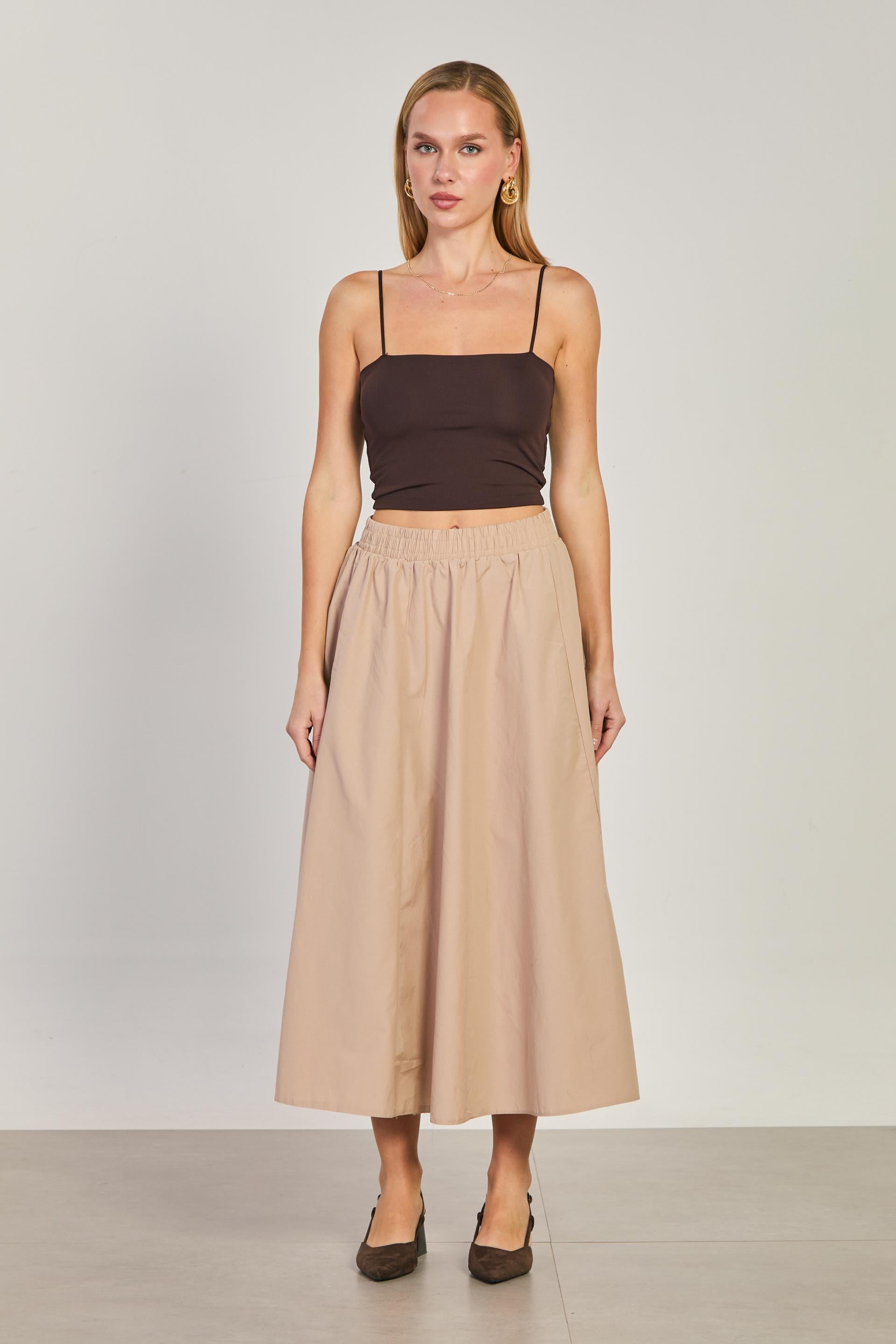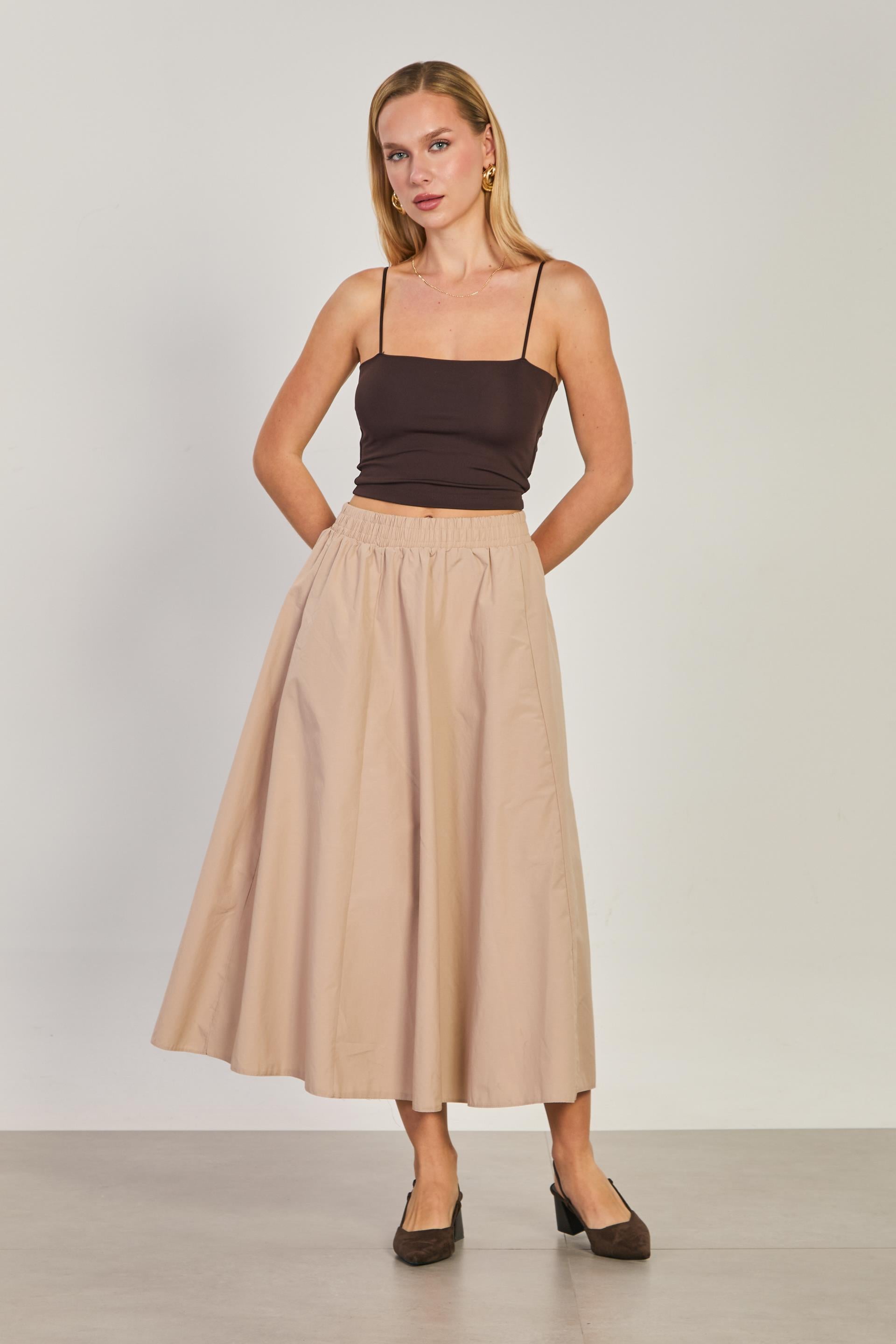 Kadın Beli Lastikli Etek - Taş