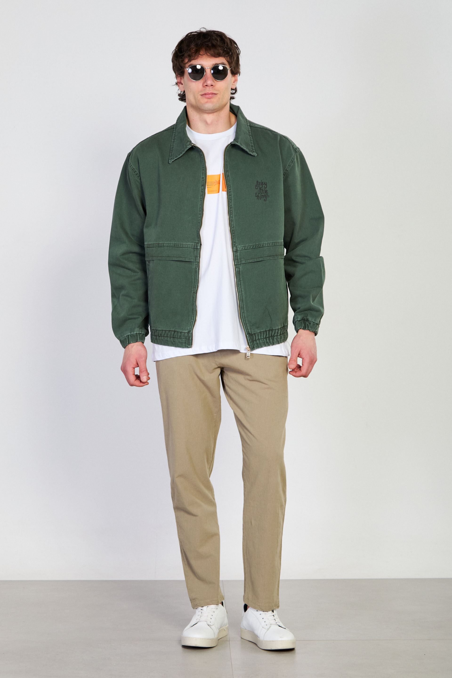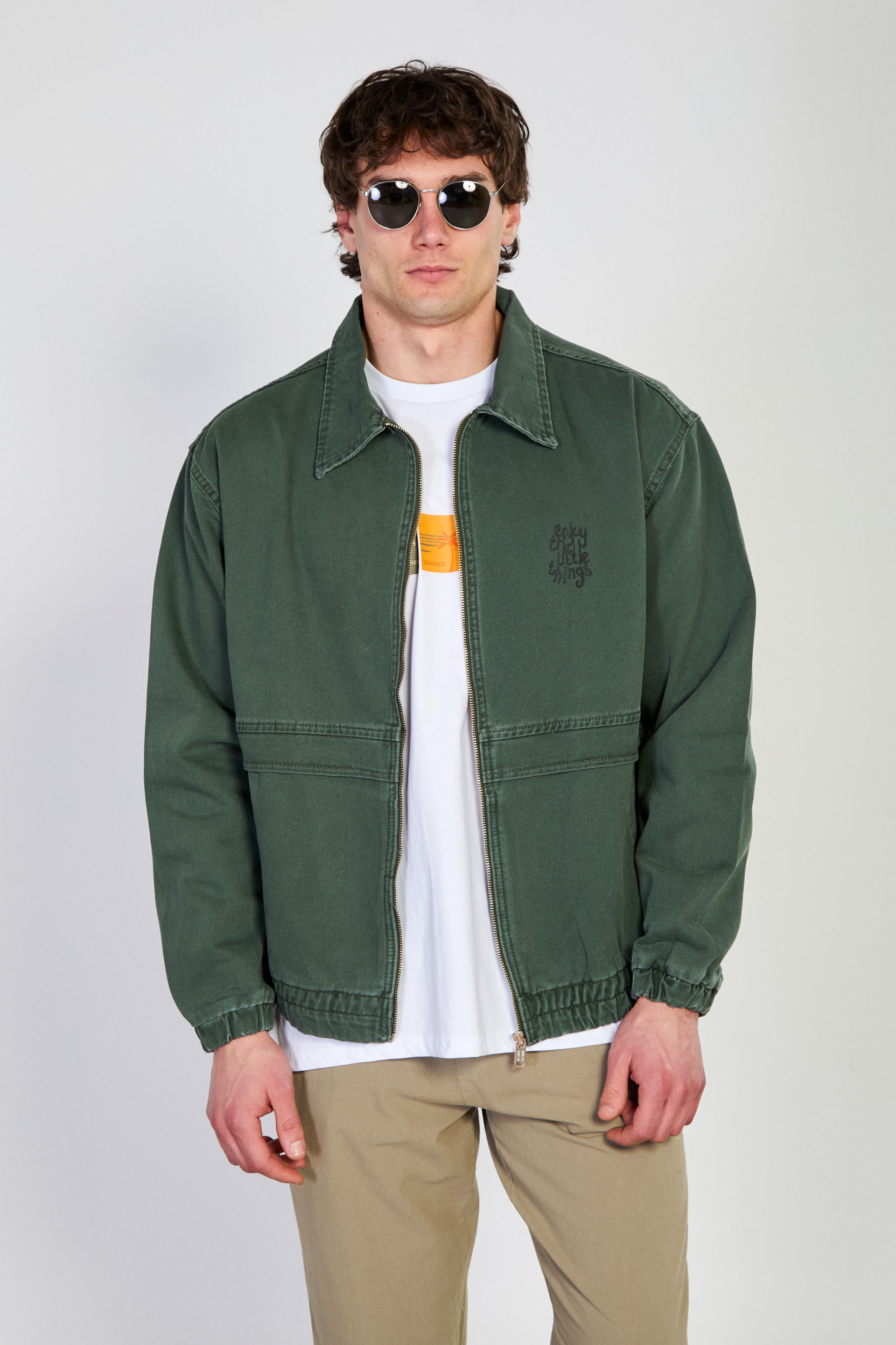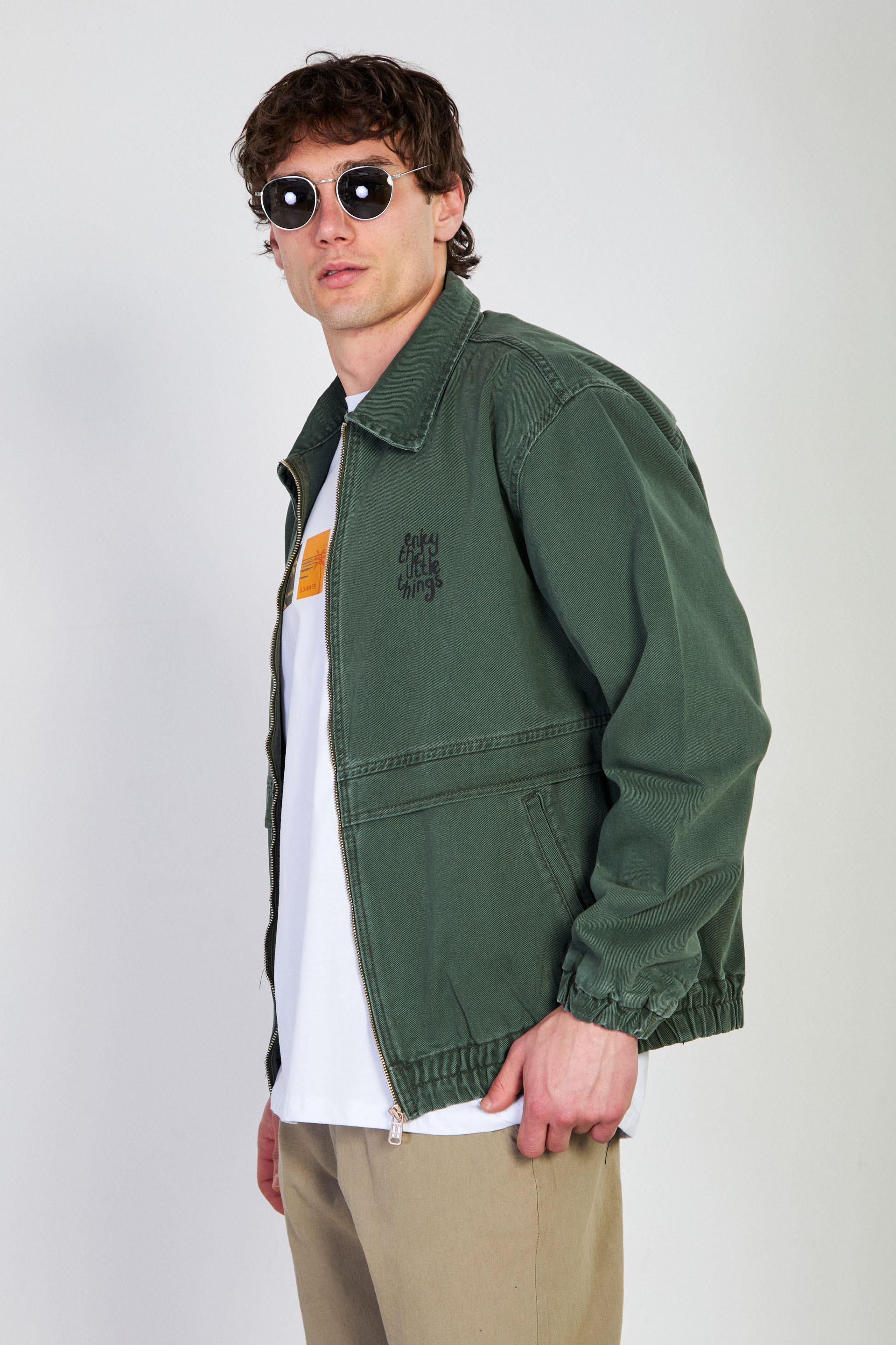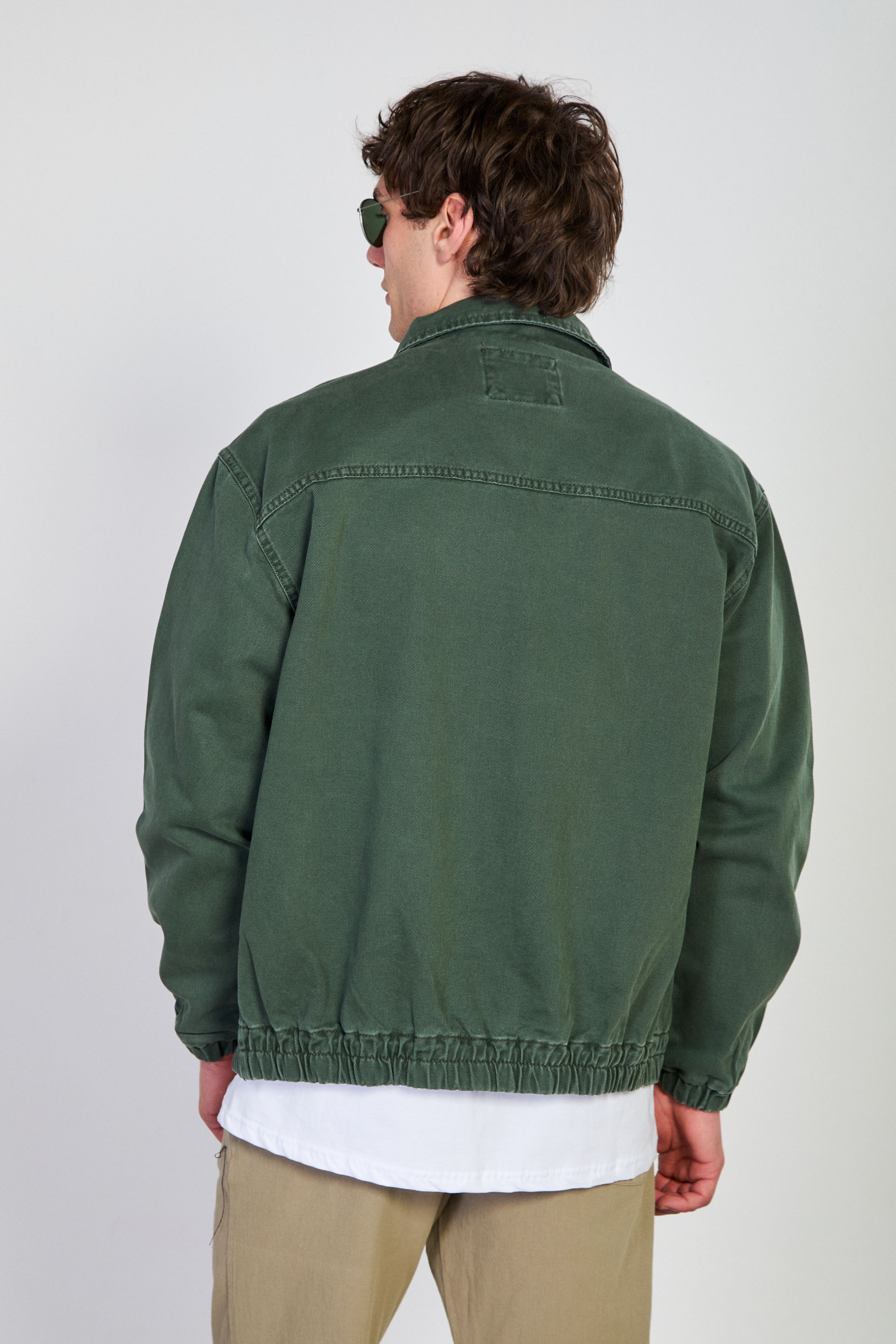 Erkek Beli Lastikli Fermuar Polo Yaka Ceket - Haki
