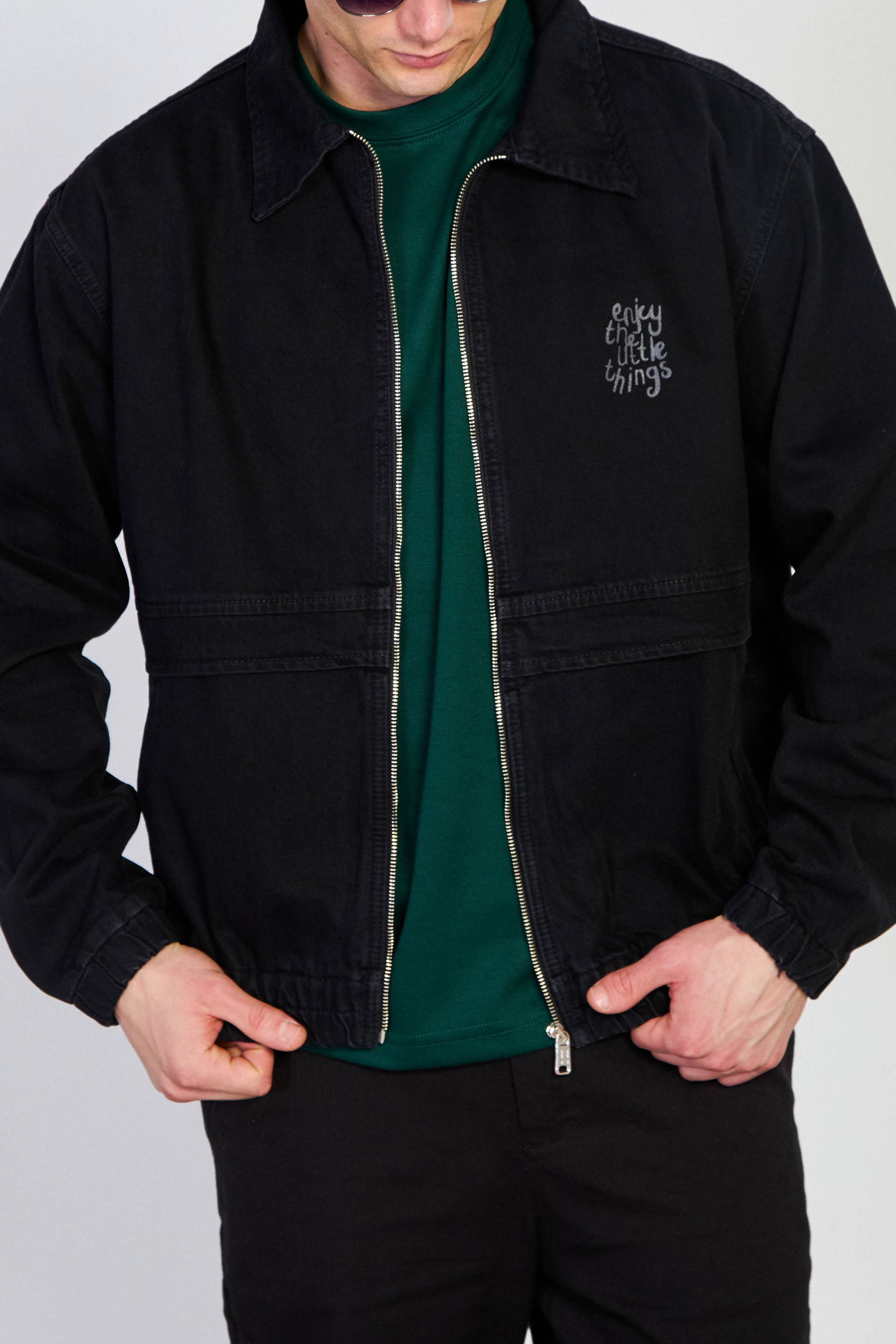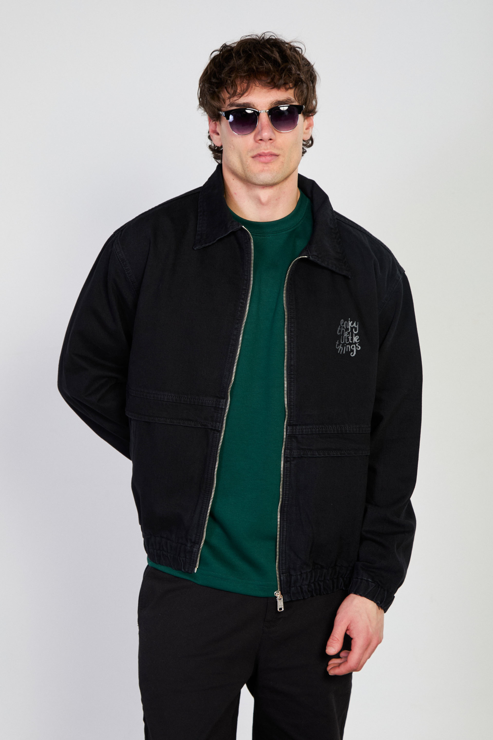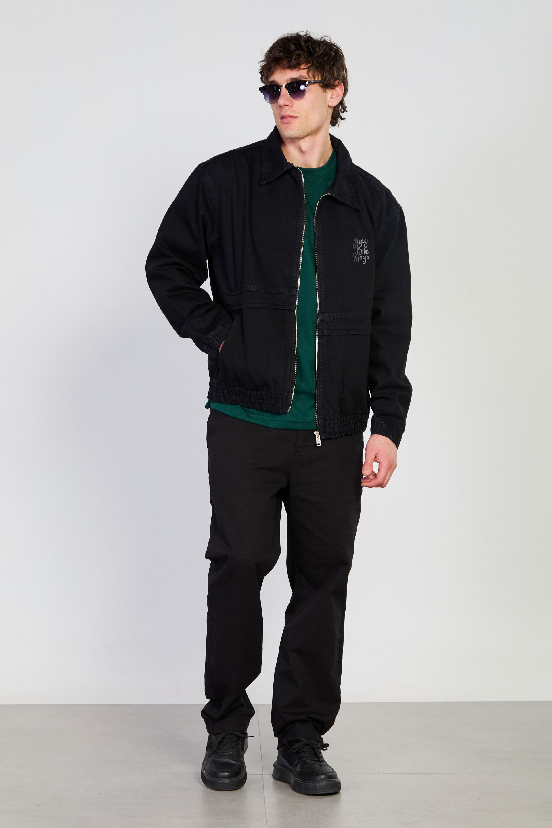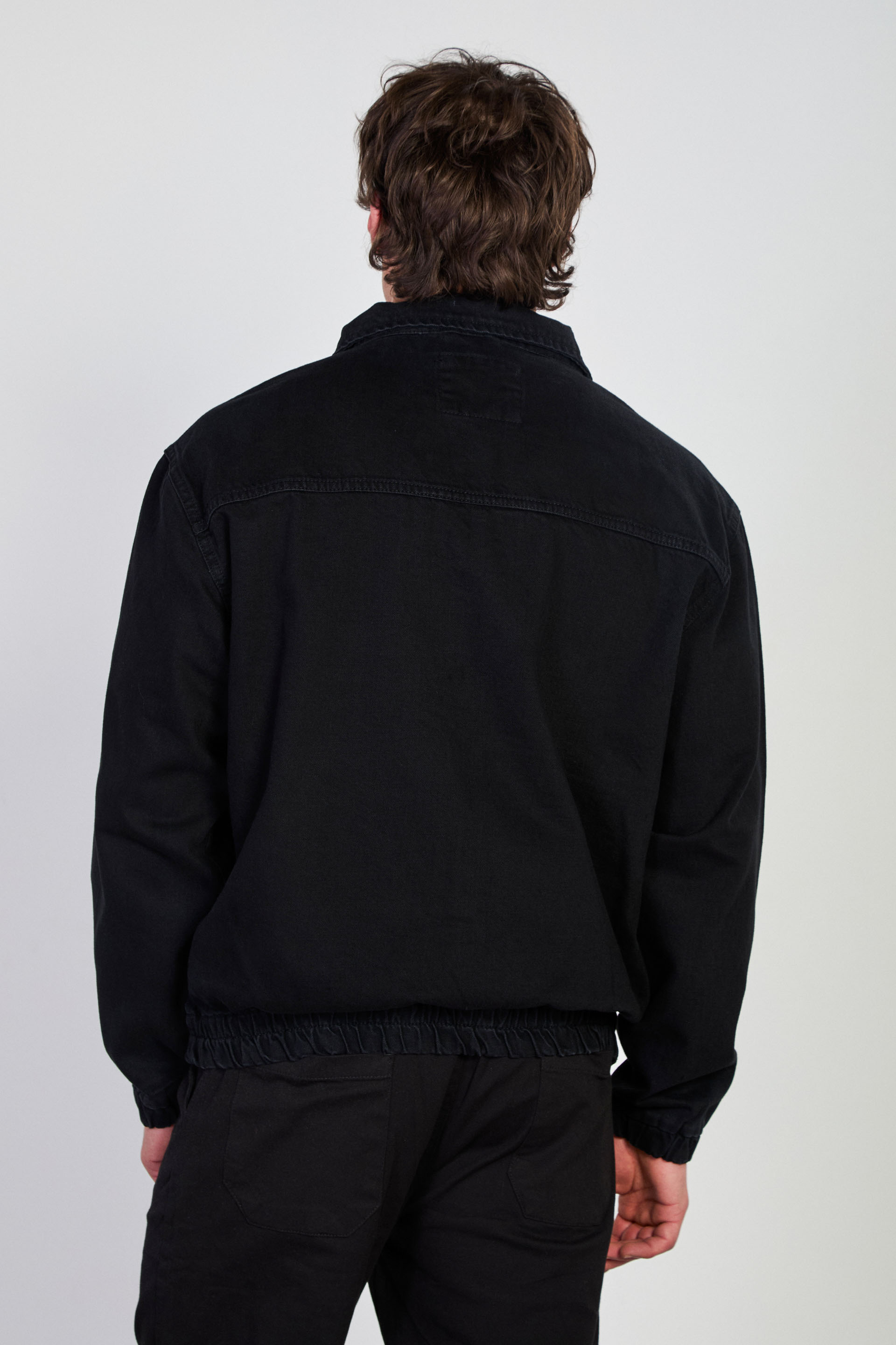 Erkek Beli Lastikli Fermuar Polo Yaka Ceket - Siyah