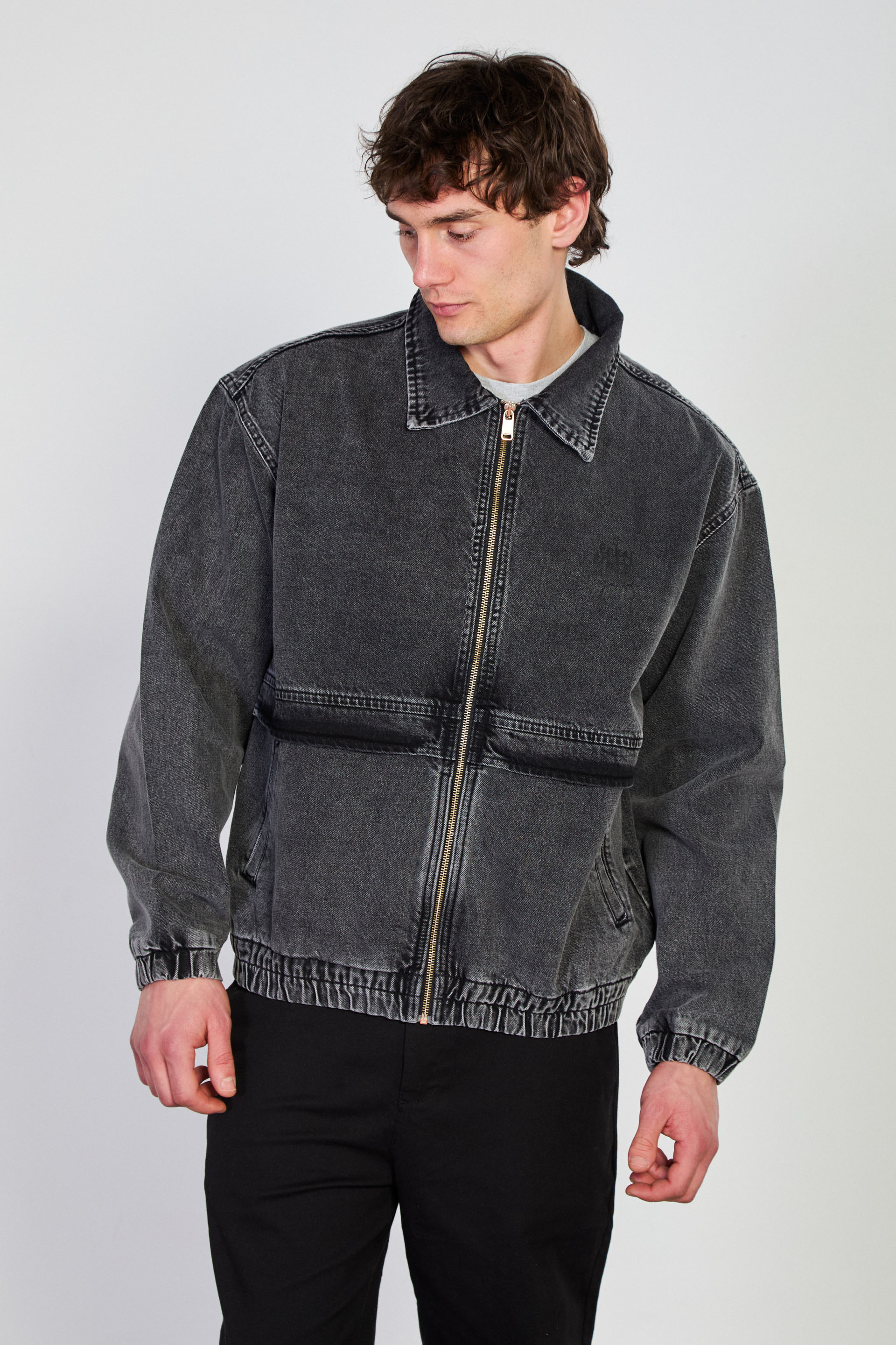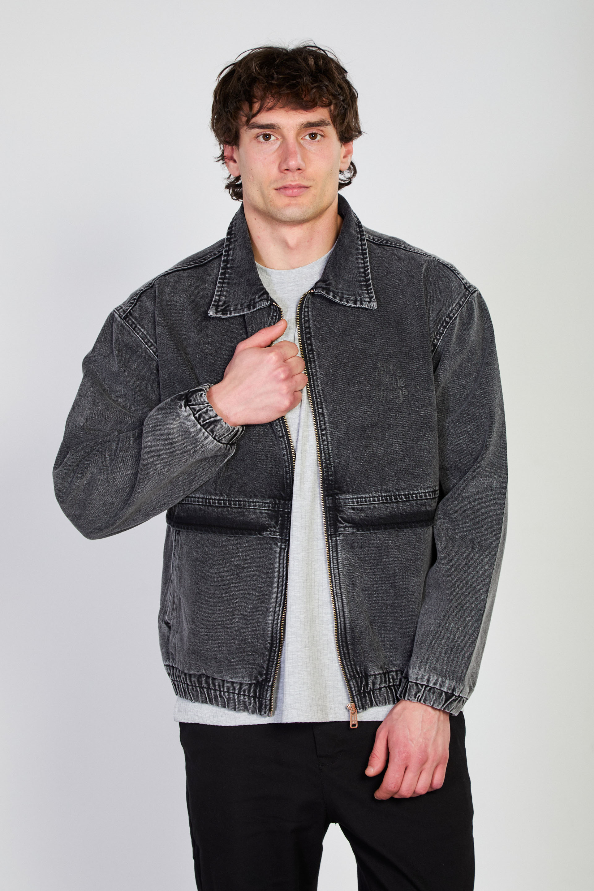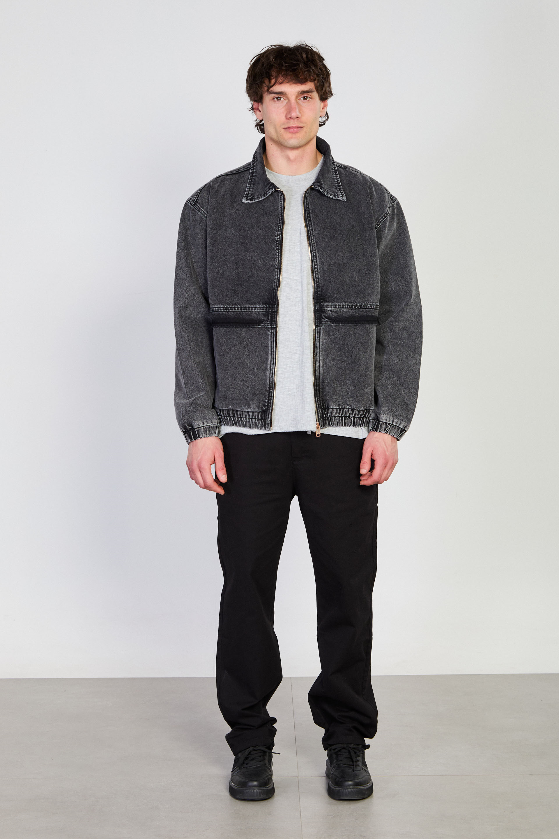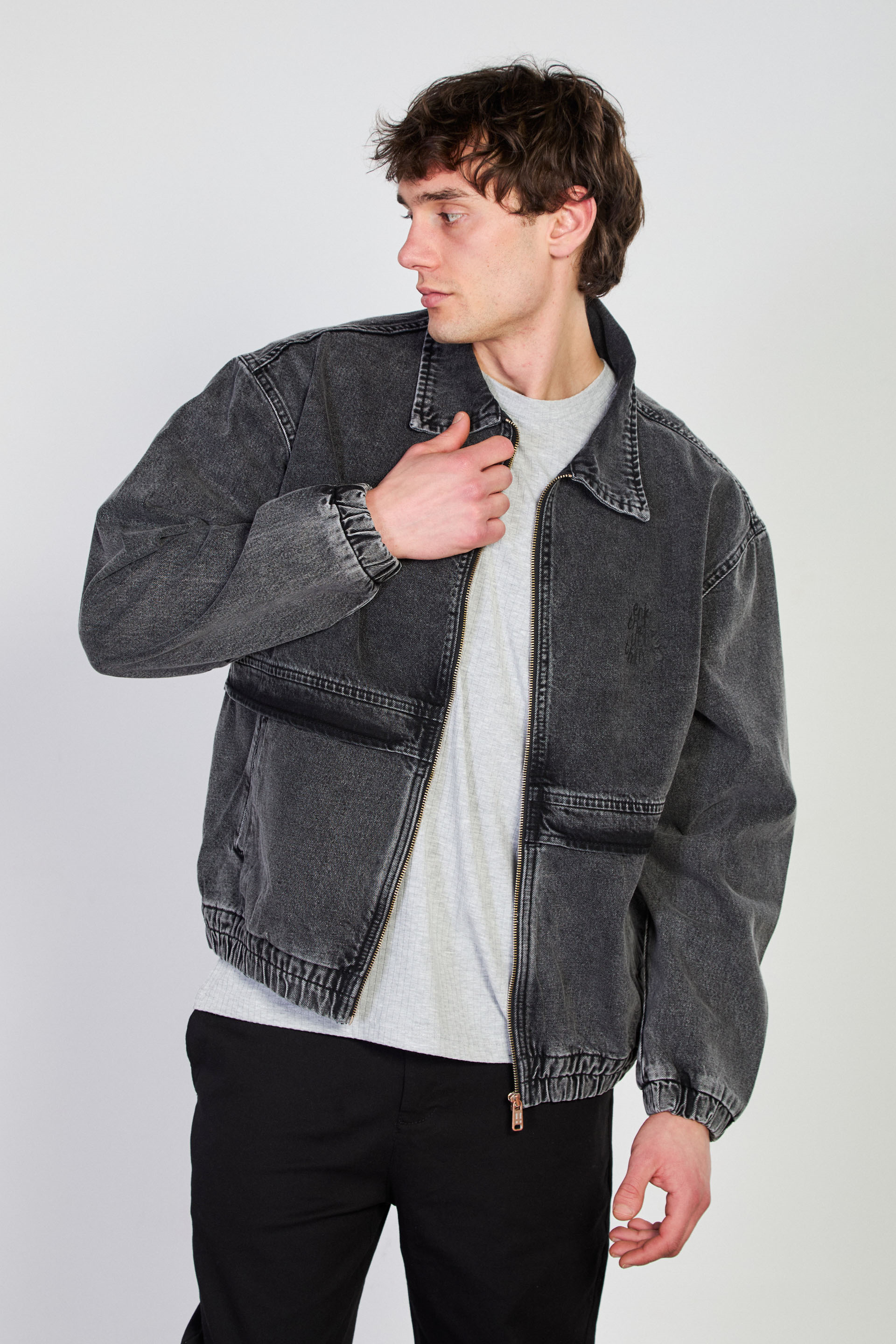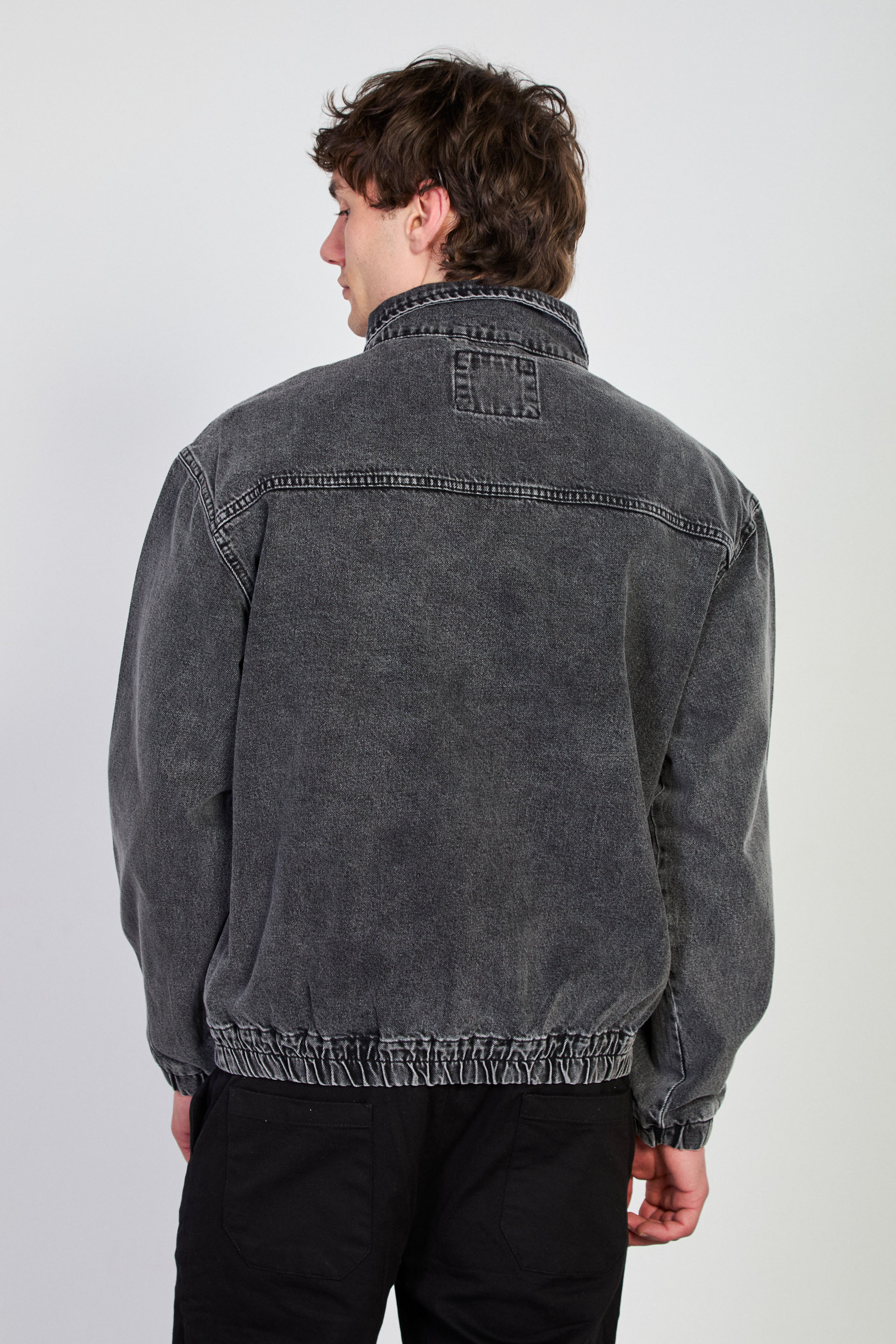 Erkek Beli Lastikli Fermuar Polo Yaka Ceket - Siyah Kar Y.
