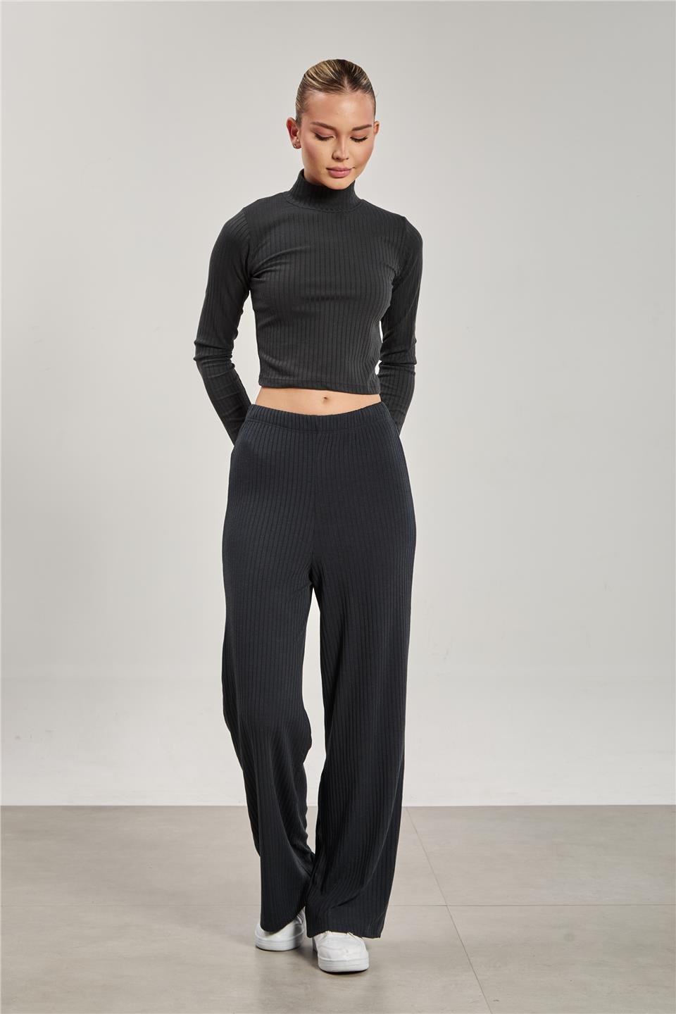 Kadın Beli Lastikli Fitilli Bol Pantolon - Antrasit