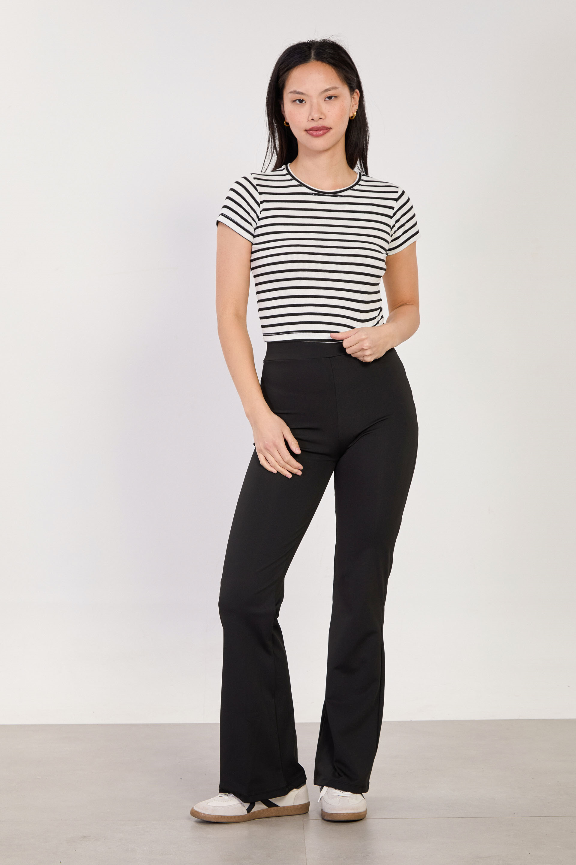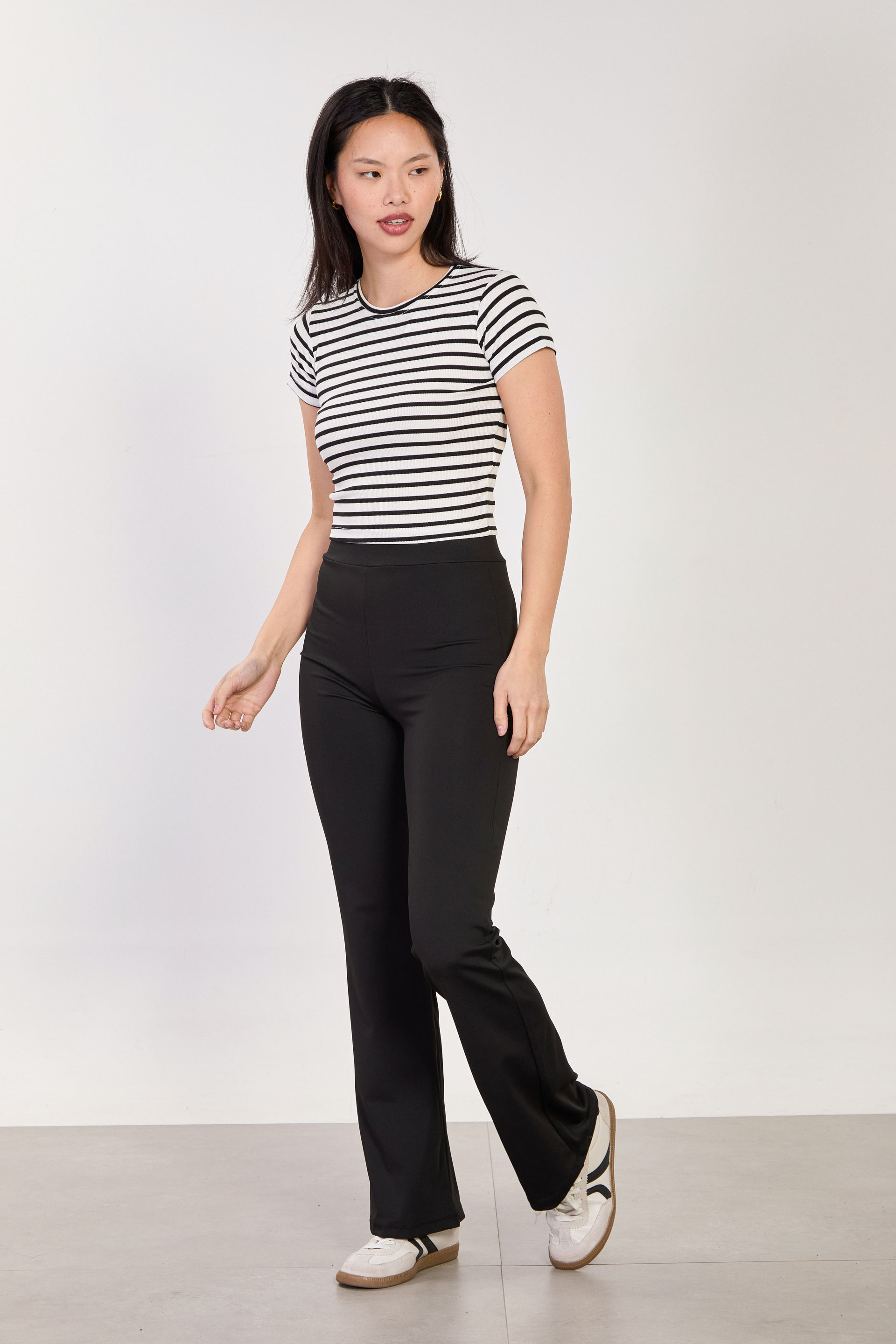 Kadın Beli Lastikli İspanyol Paça Pantolon - Siyah