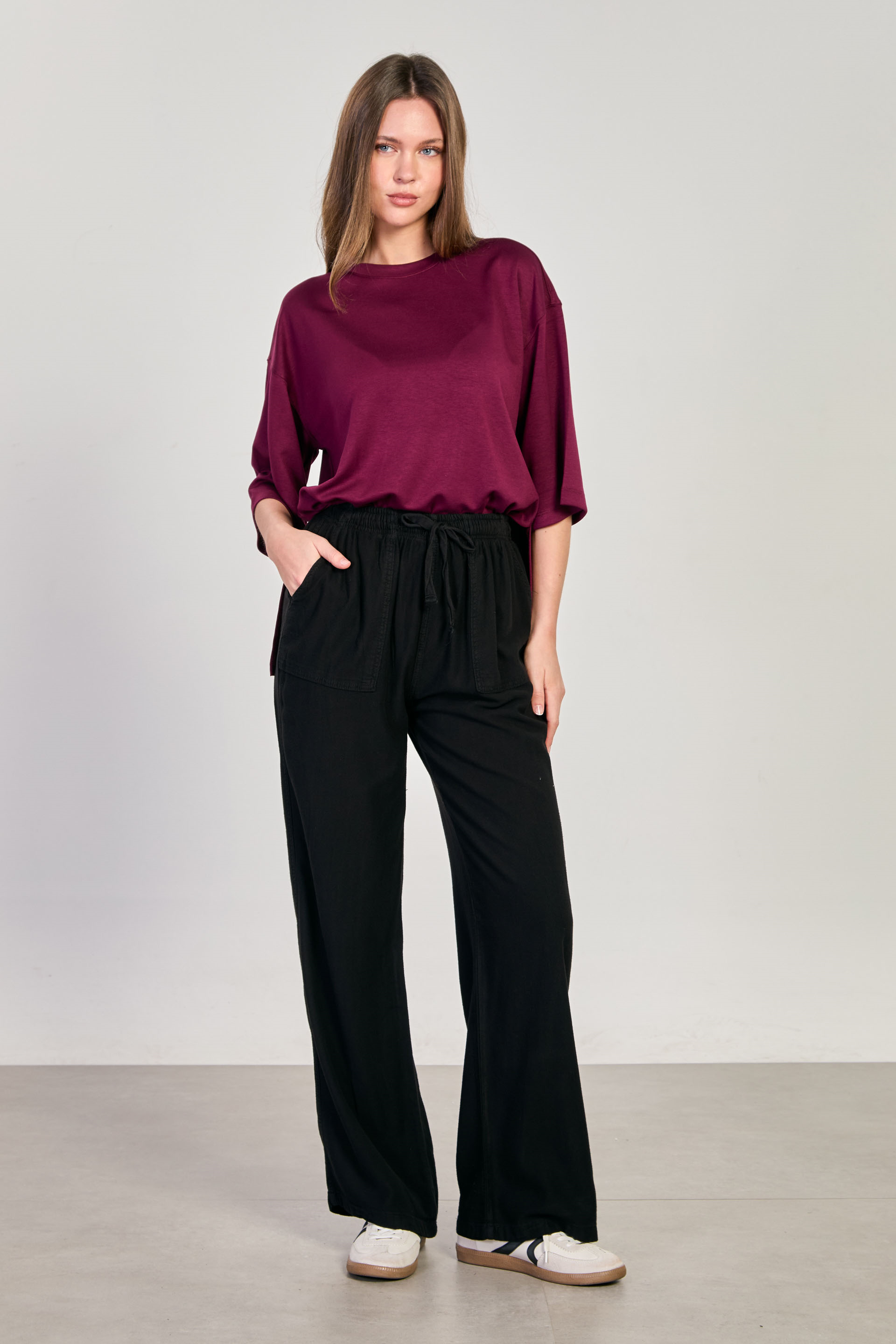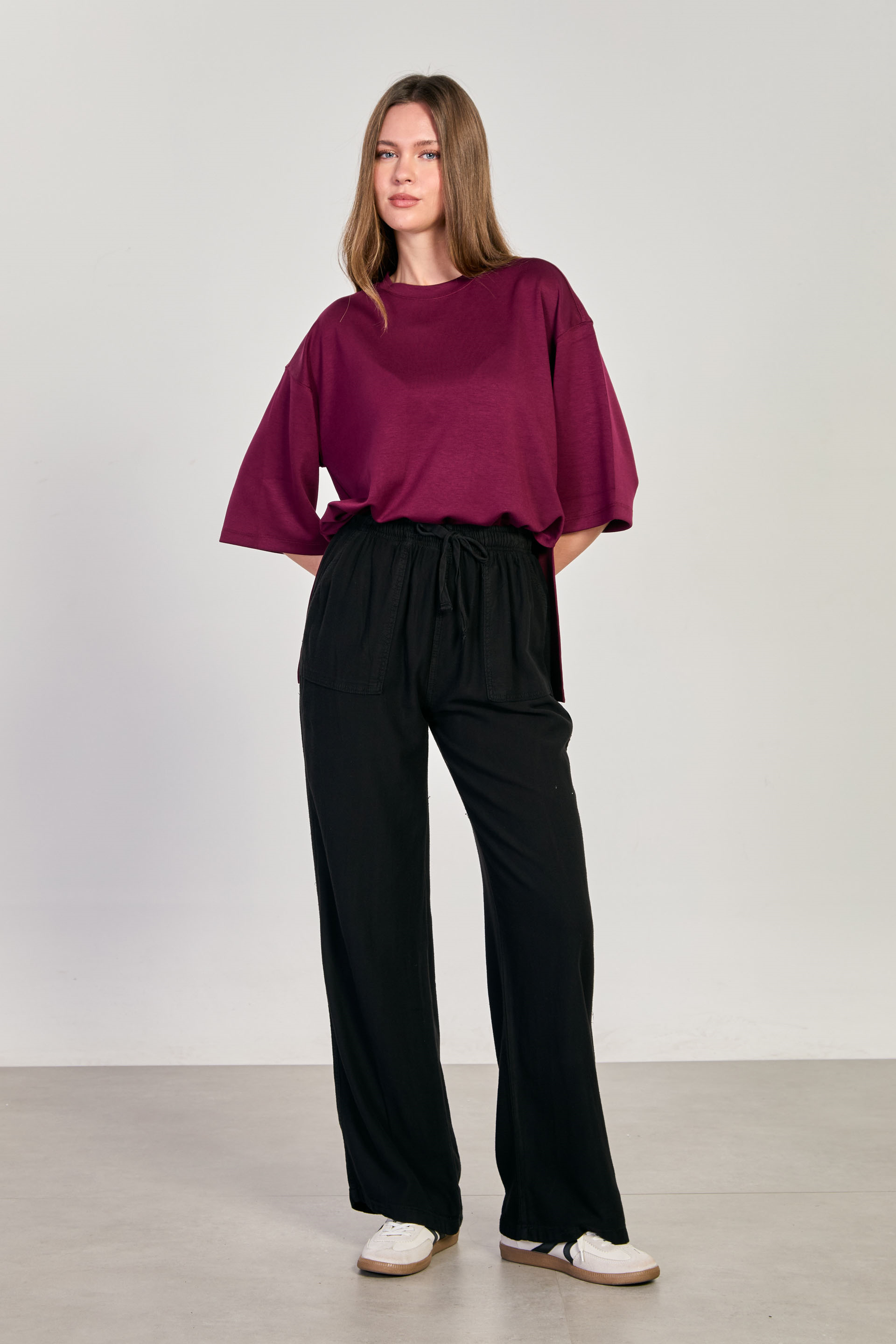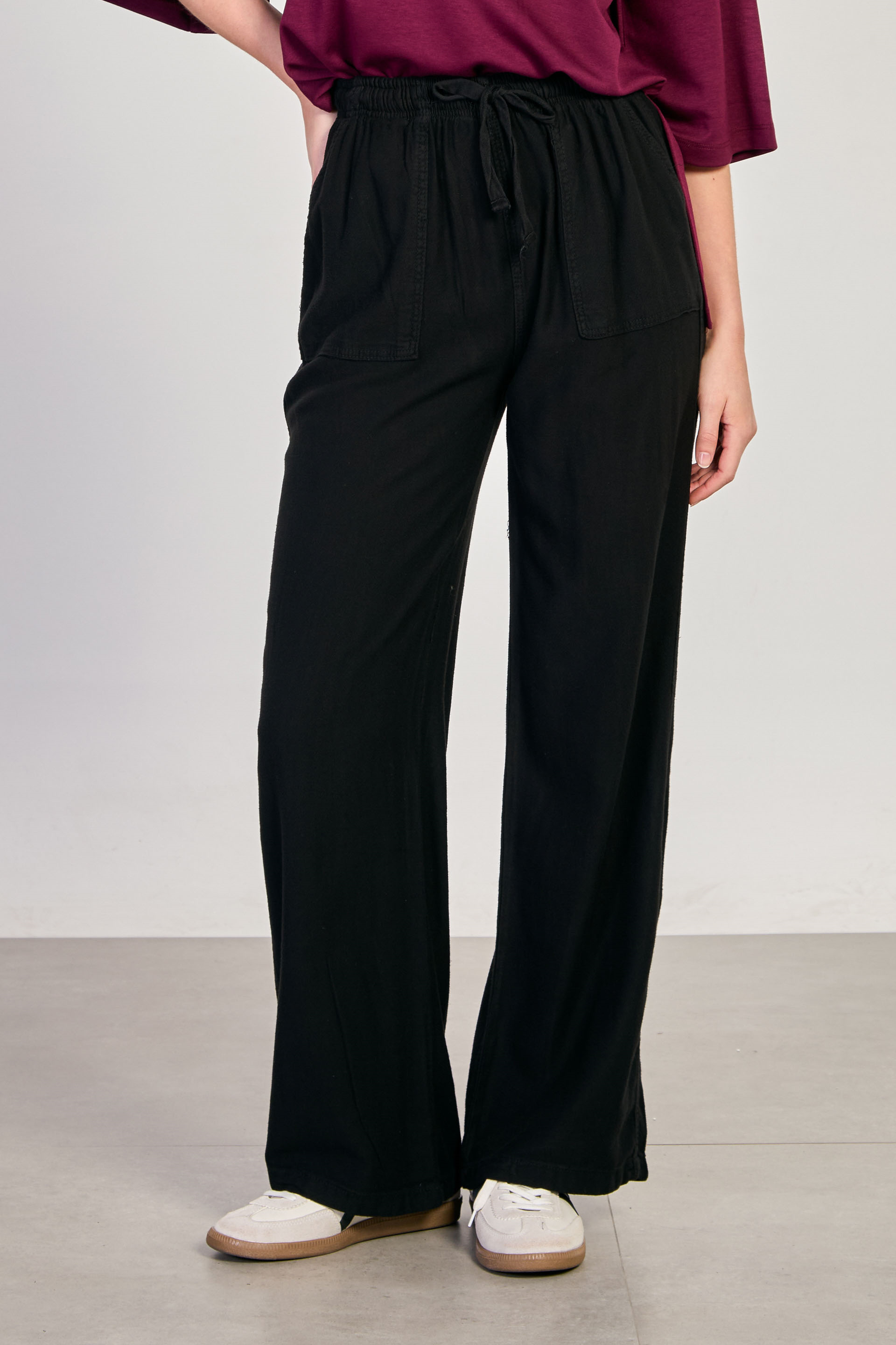 Kadın Beli Lastikli Kare Cep Bol Pantolon - Siyah