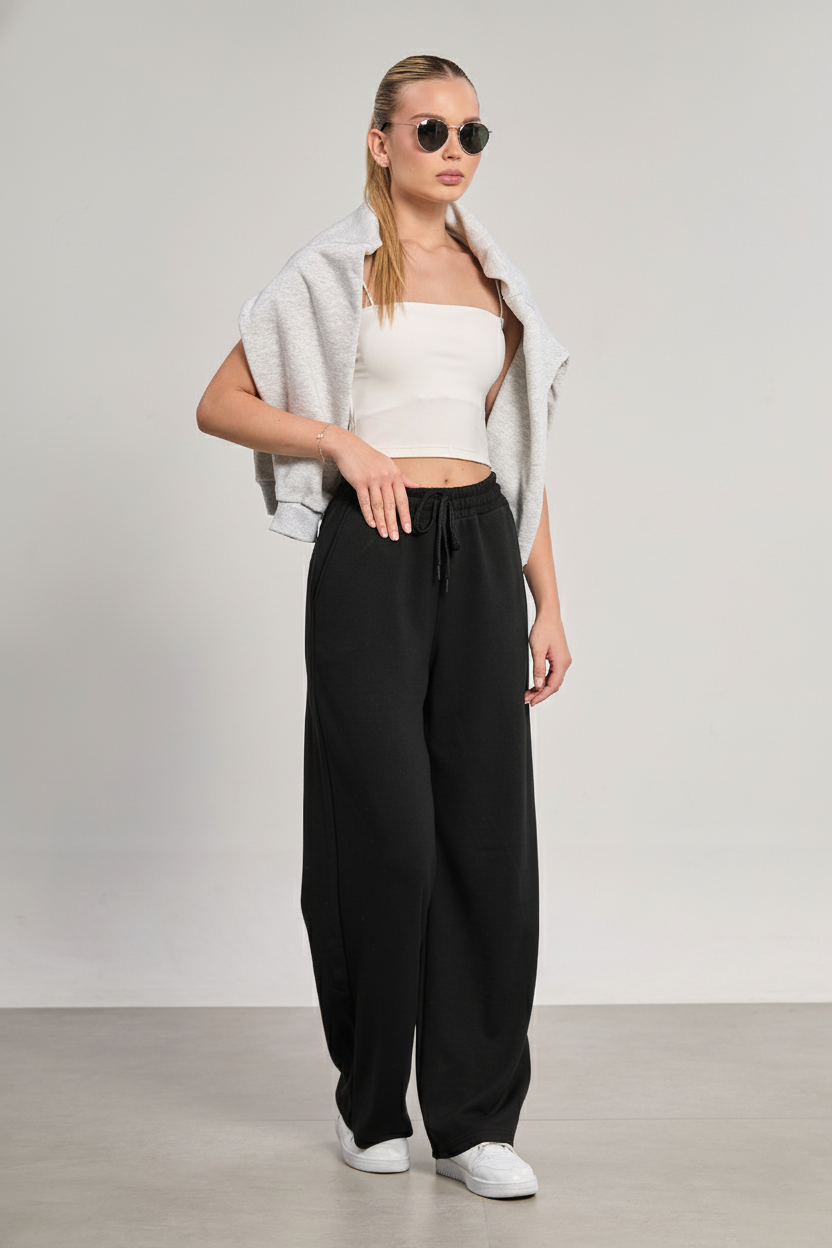 Beli Lastikli Modal Bol Paça Pantolon - Siyah