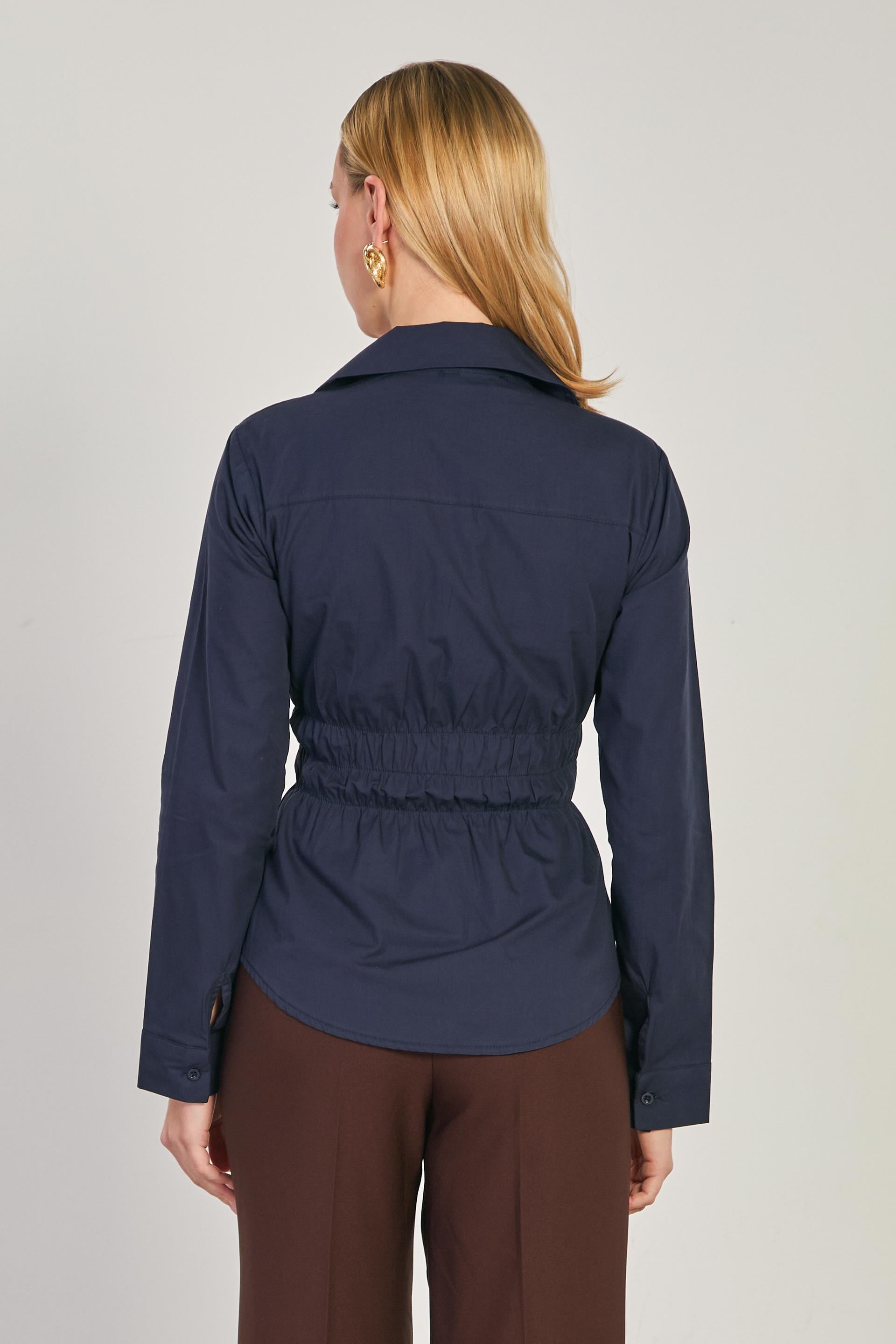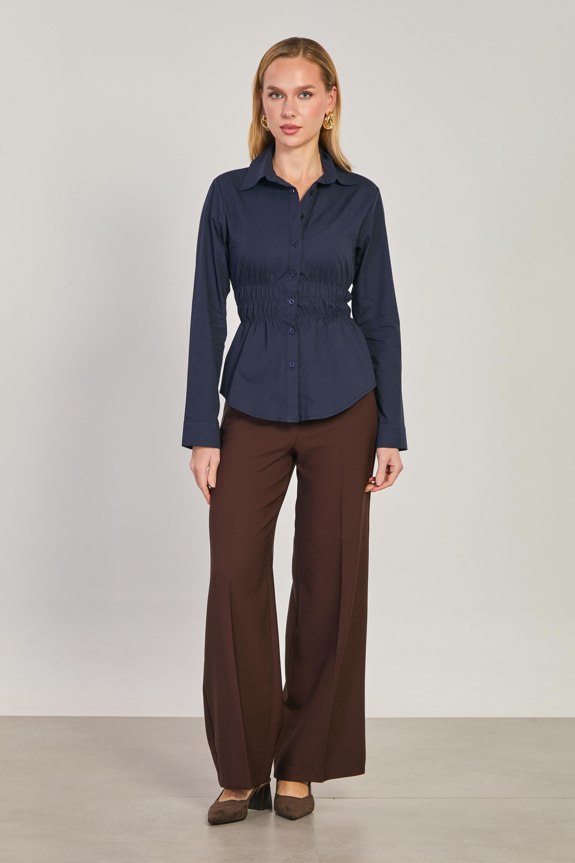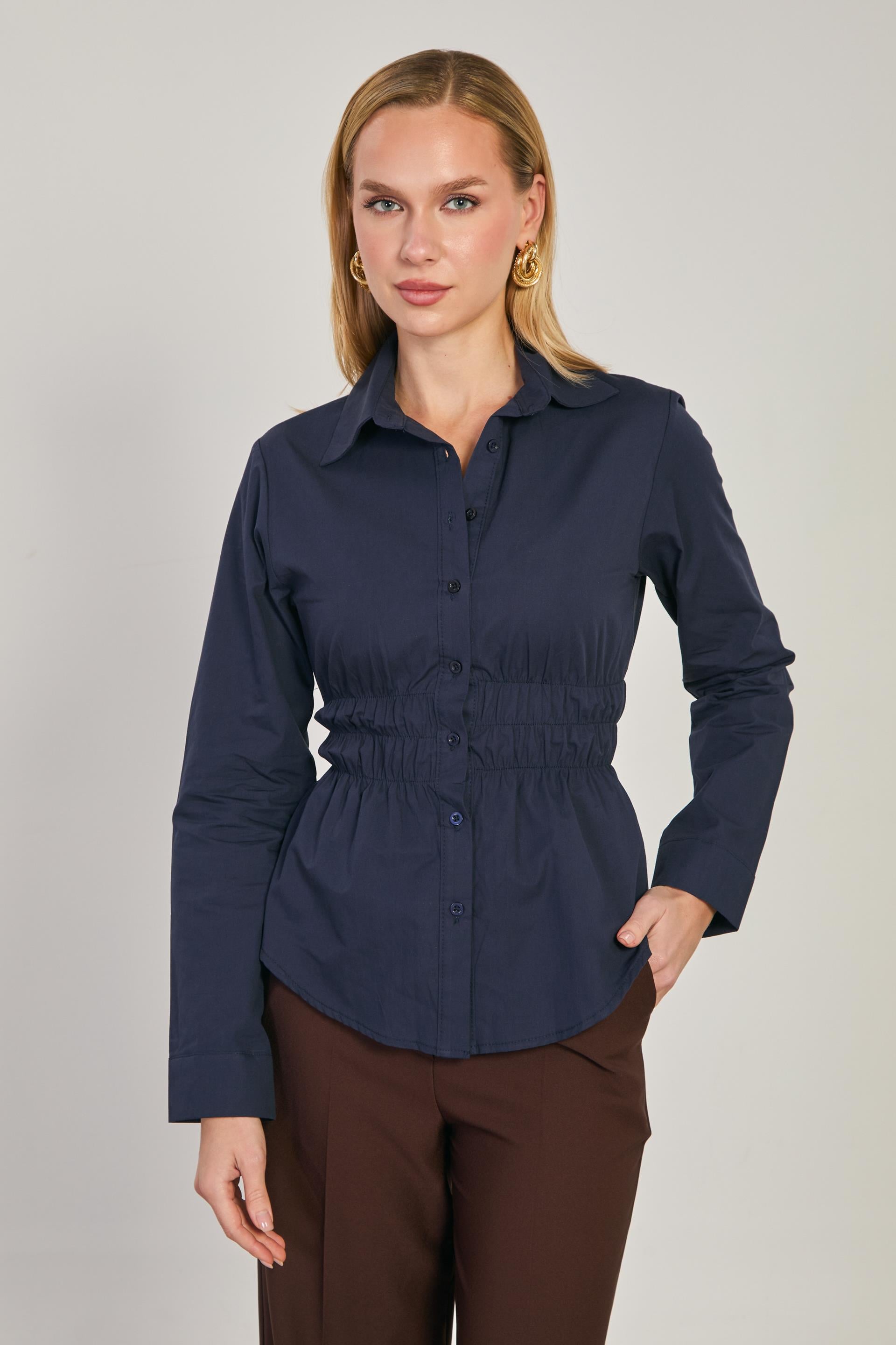 Kadın Beli Lastikli Uzun Kol Gömlek - Lacivert
