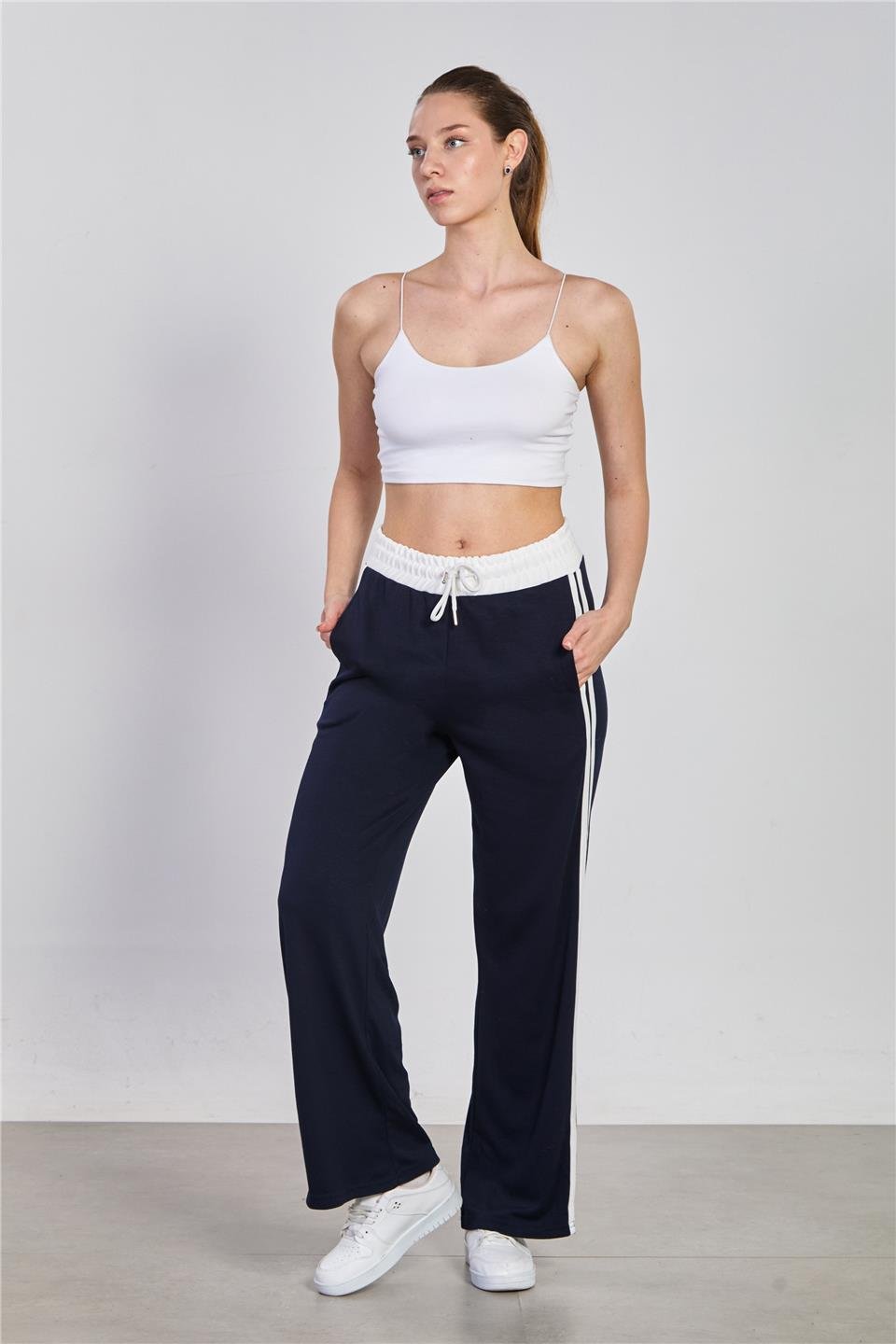 Kadın Beli Renk Garnili Eşofman Altı - Lacivert