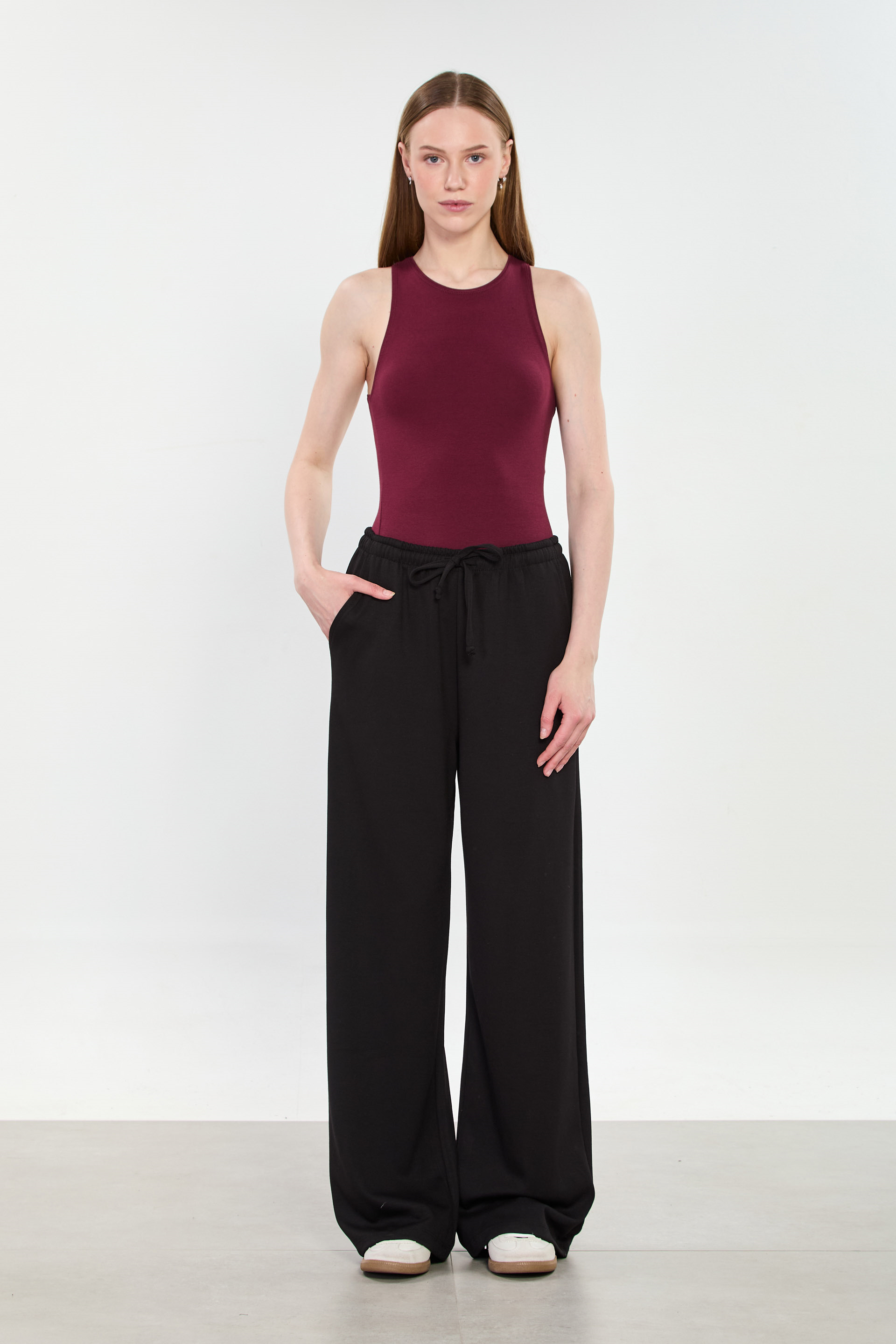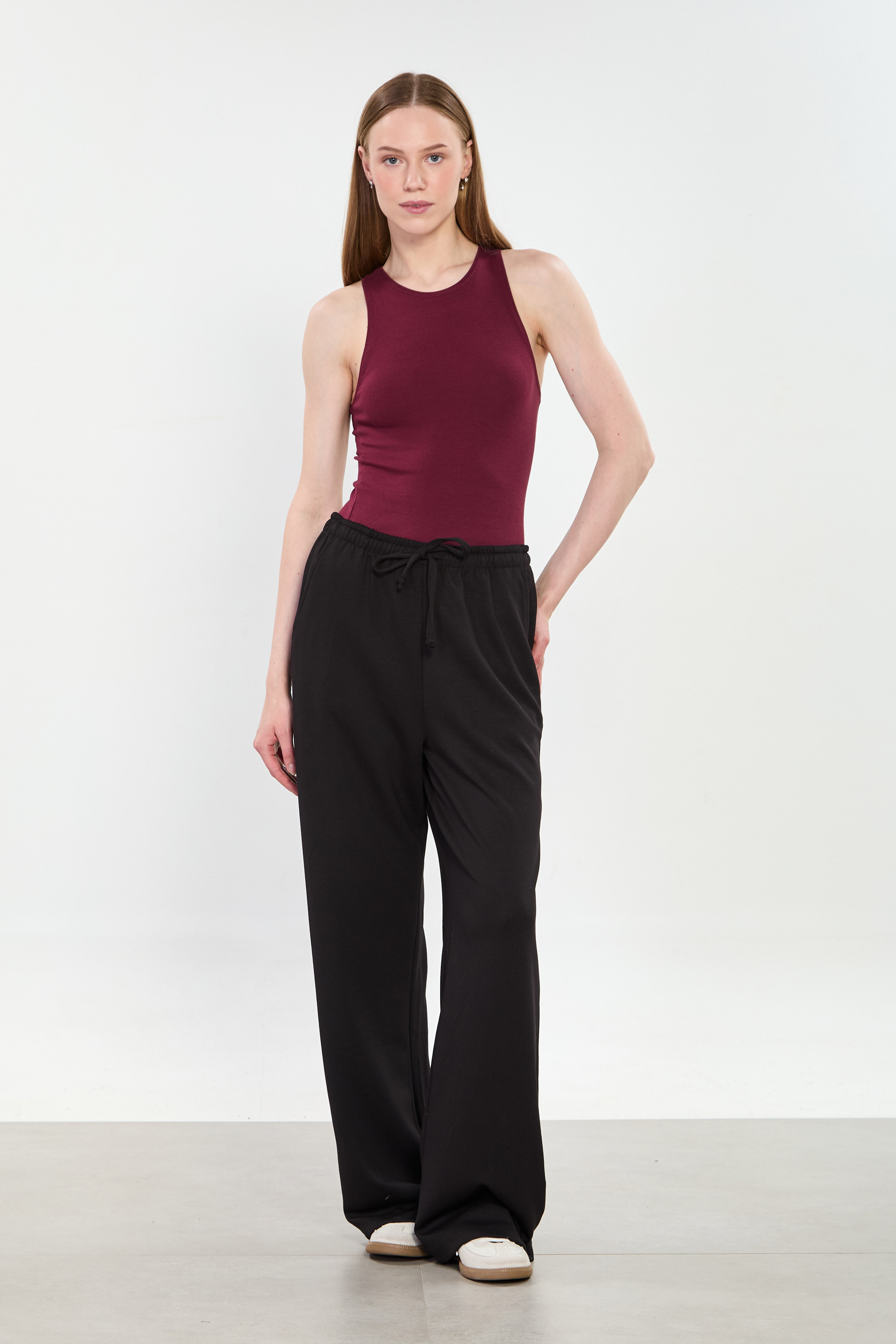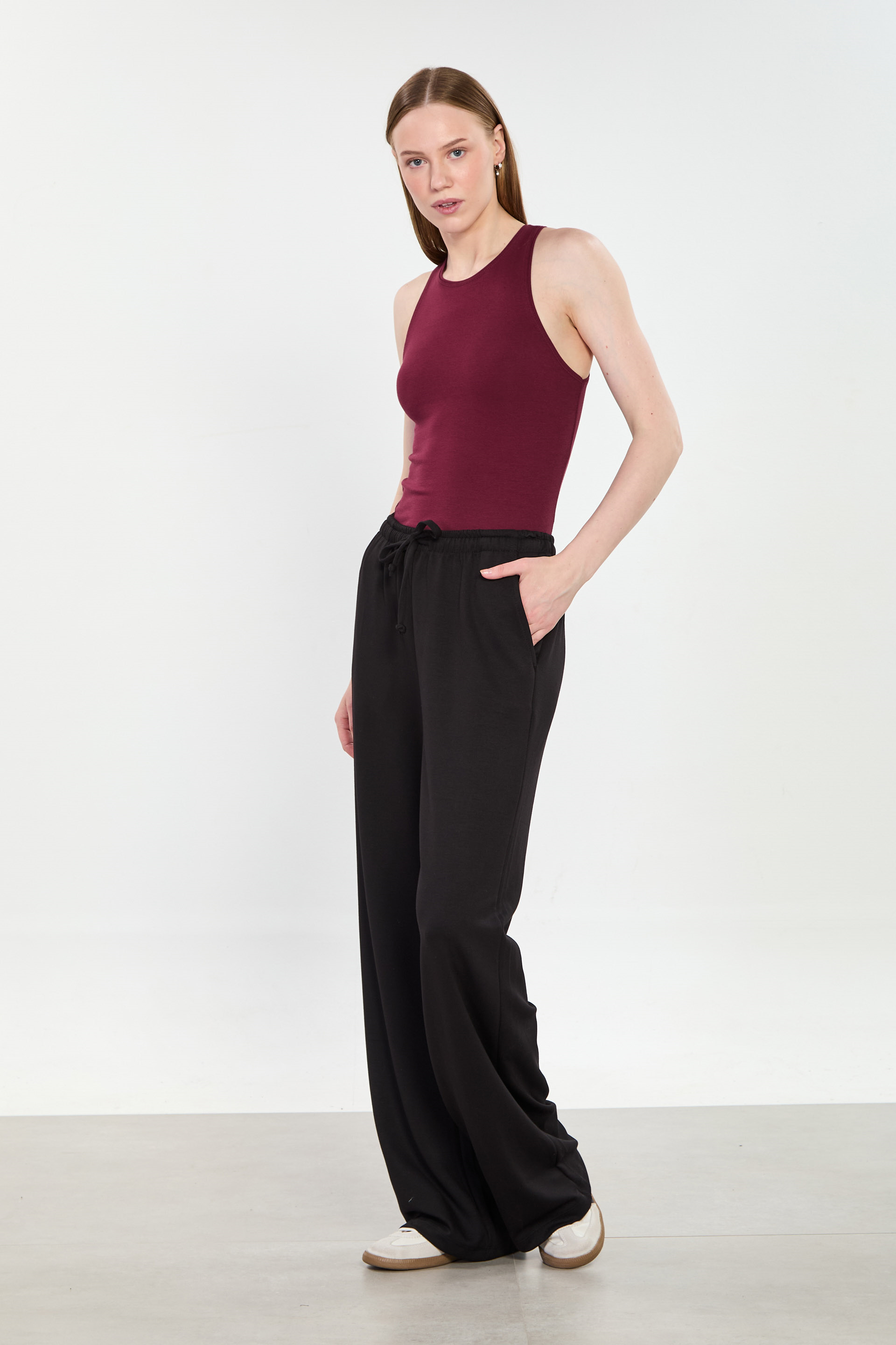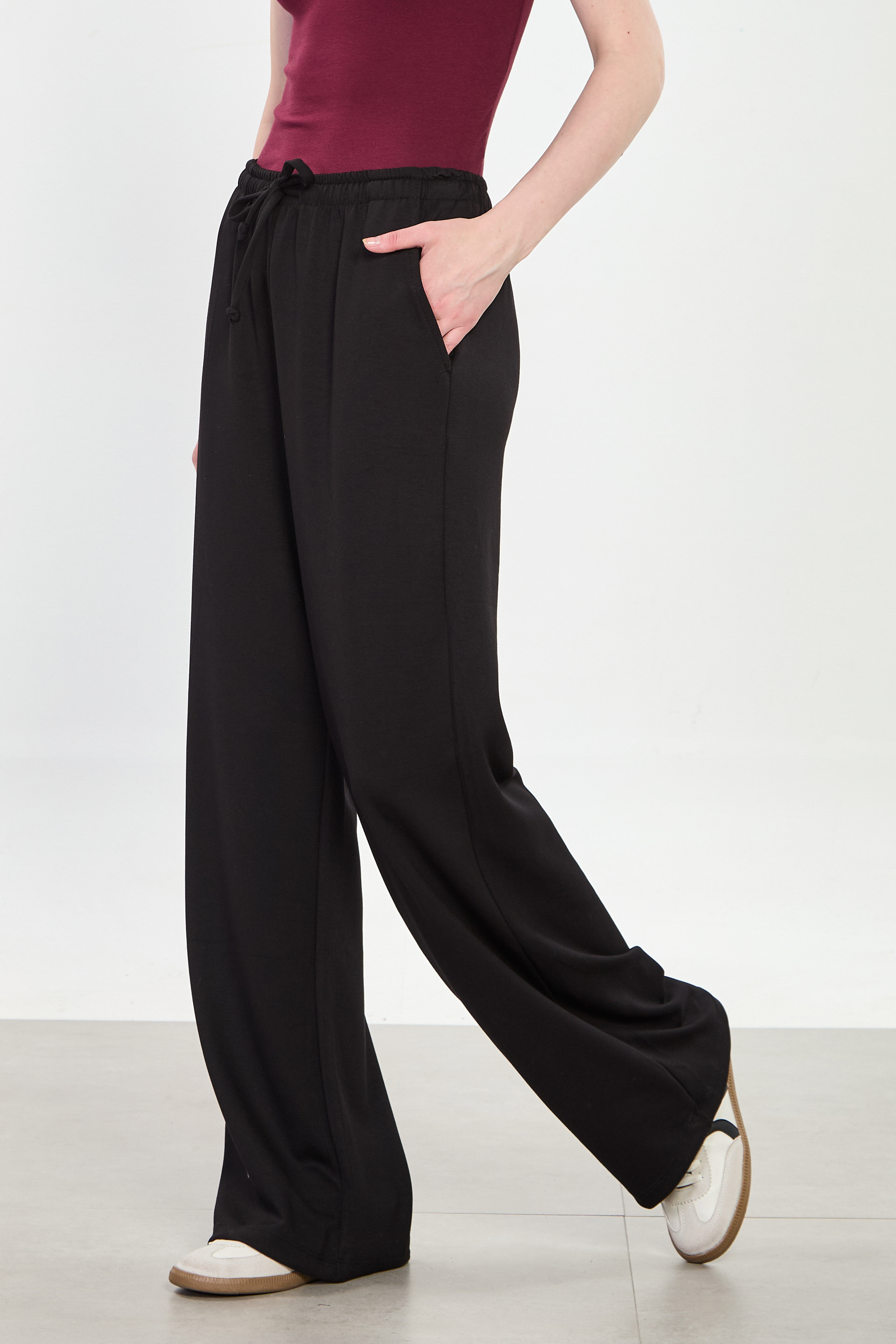 Kadın Big Size Beli İpli Modal Bol Pantolon - Siyah