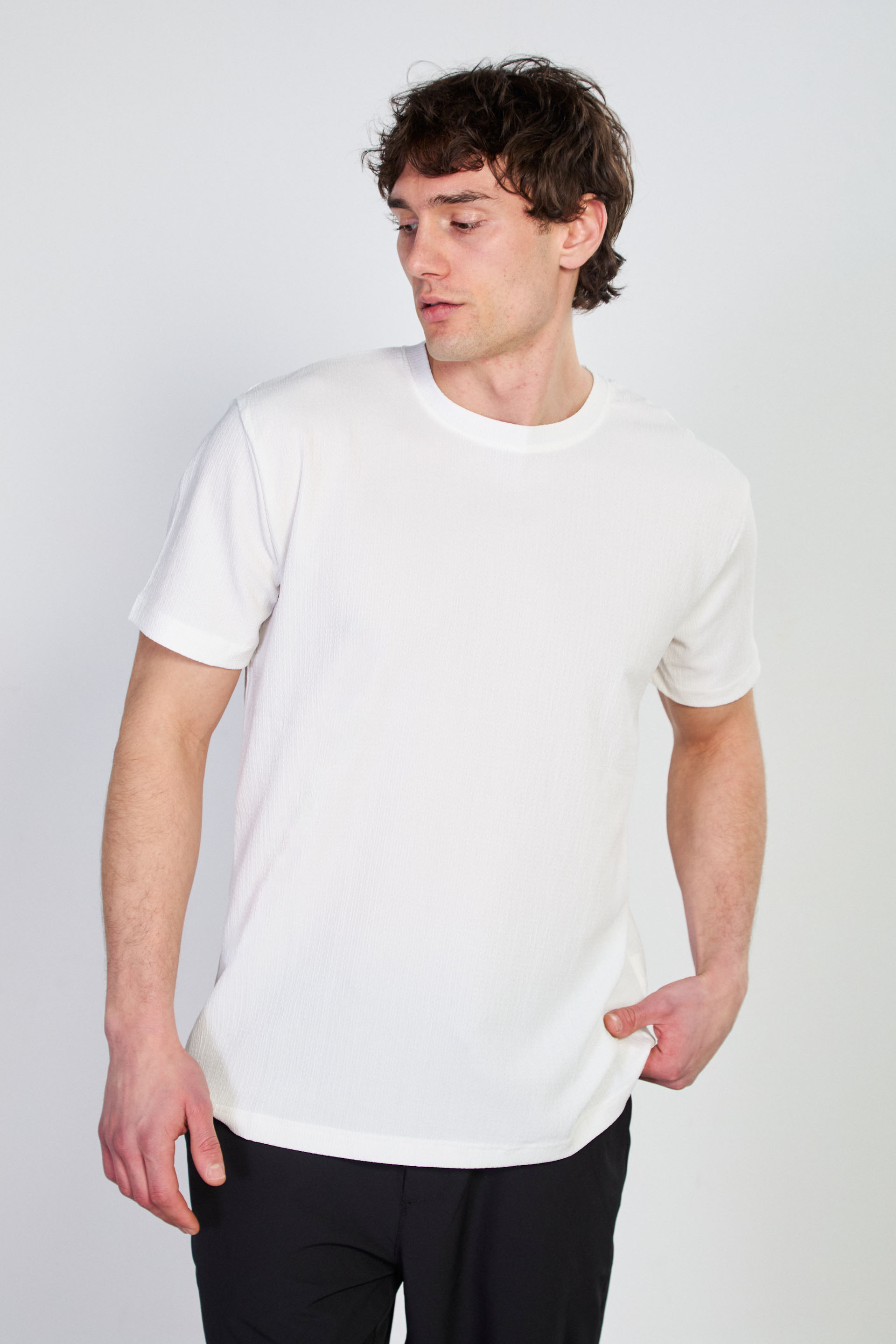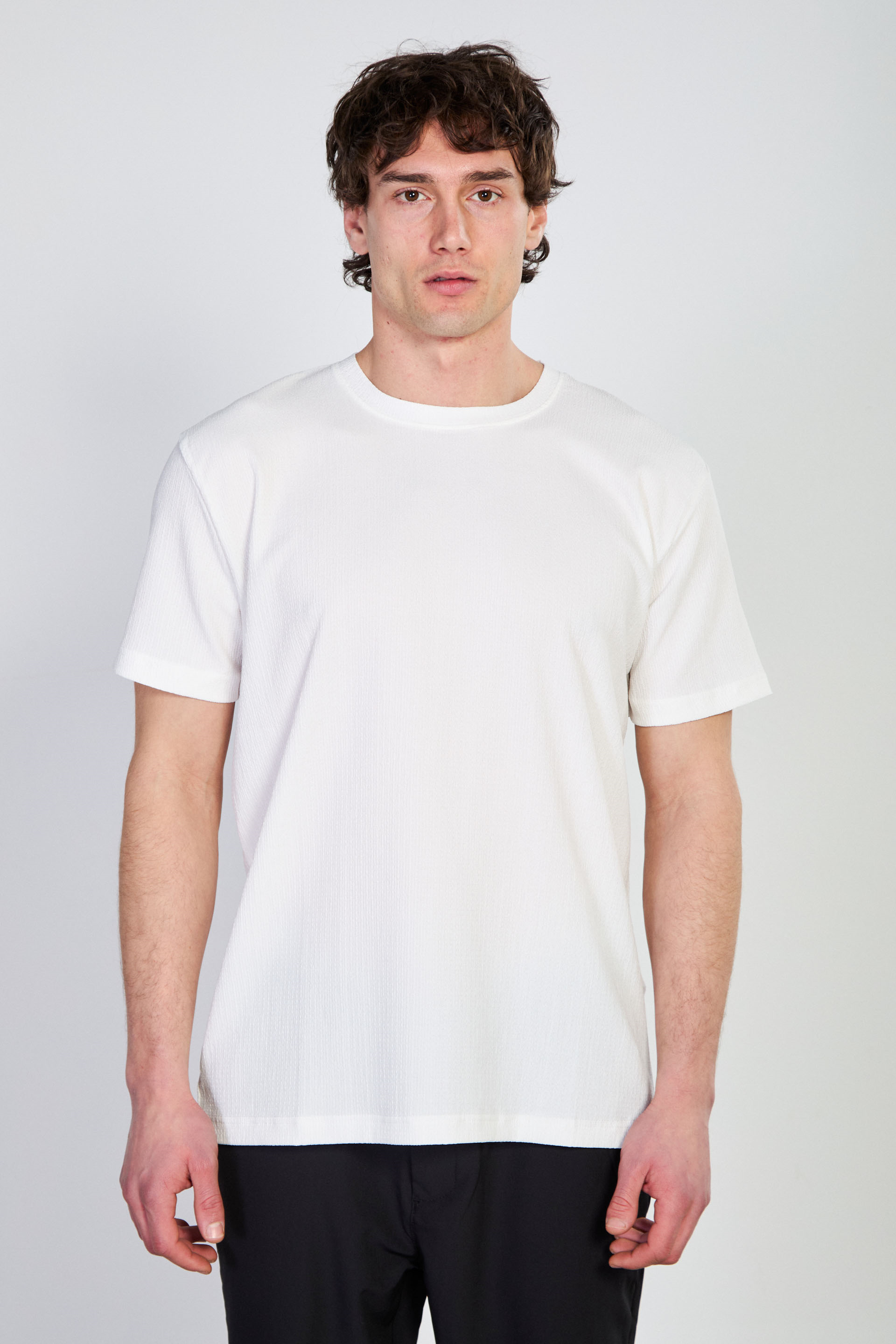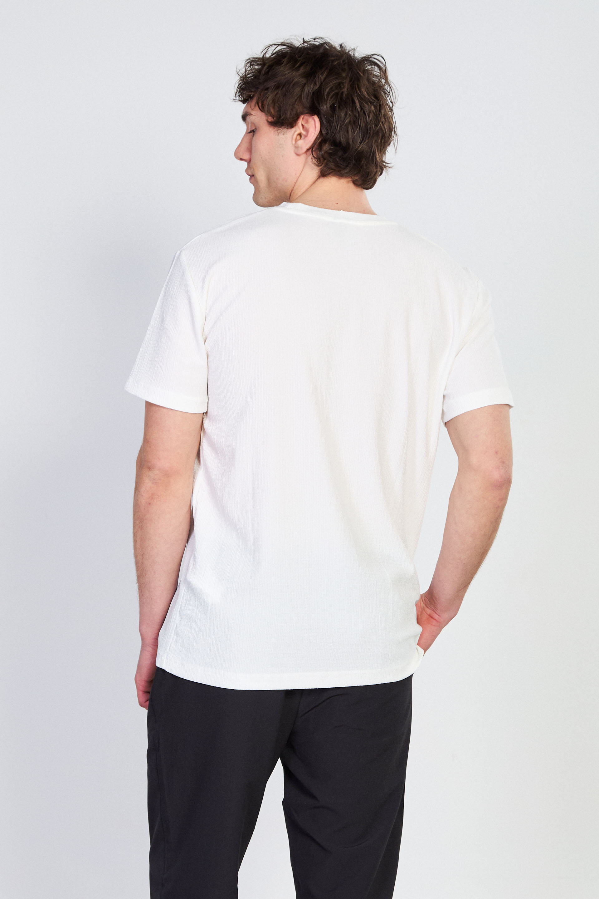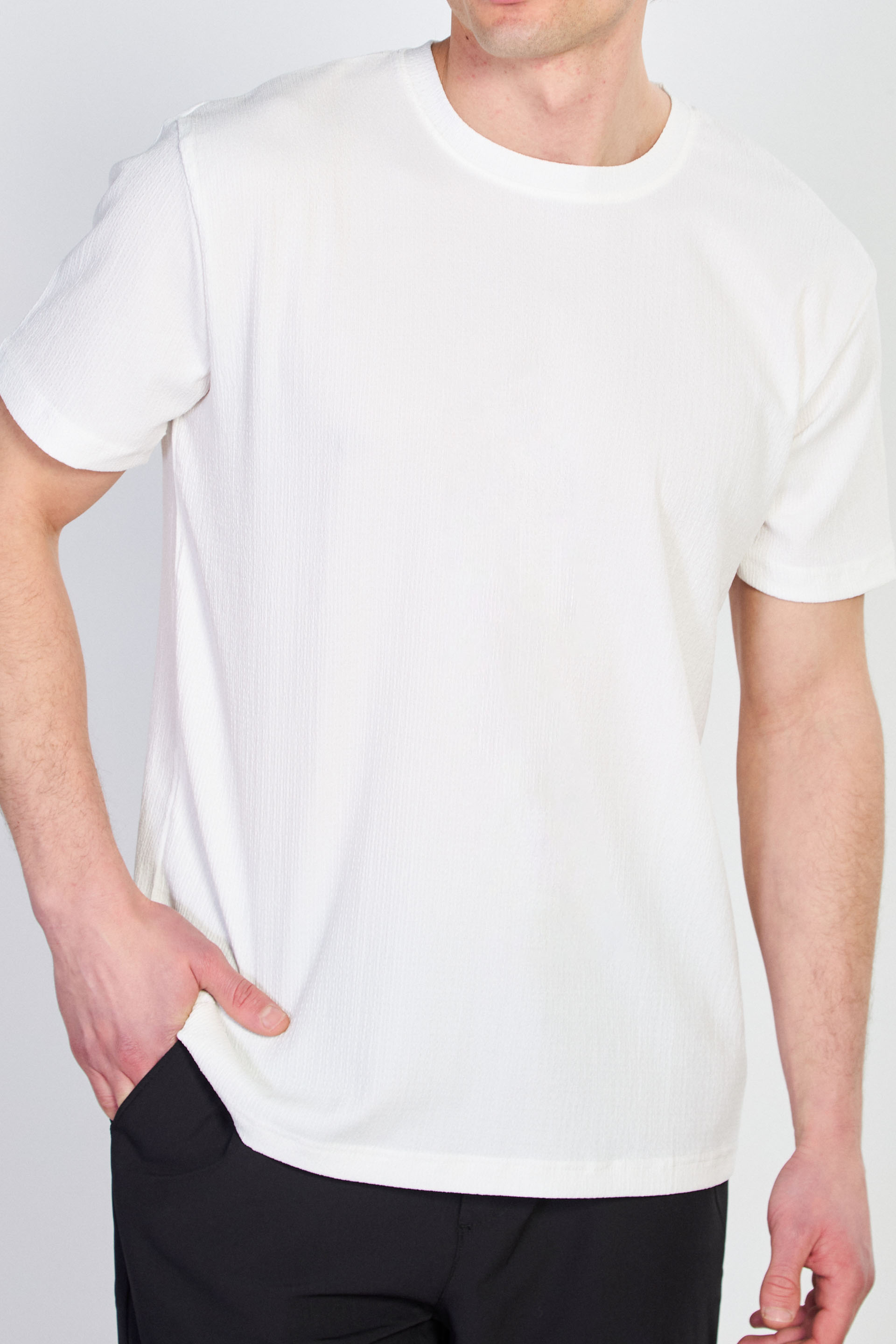 Erkek Bisiklet Yaka Bürümcük T-Shirt - Beyaz