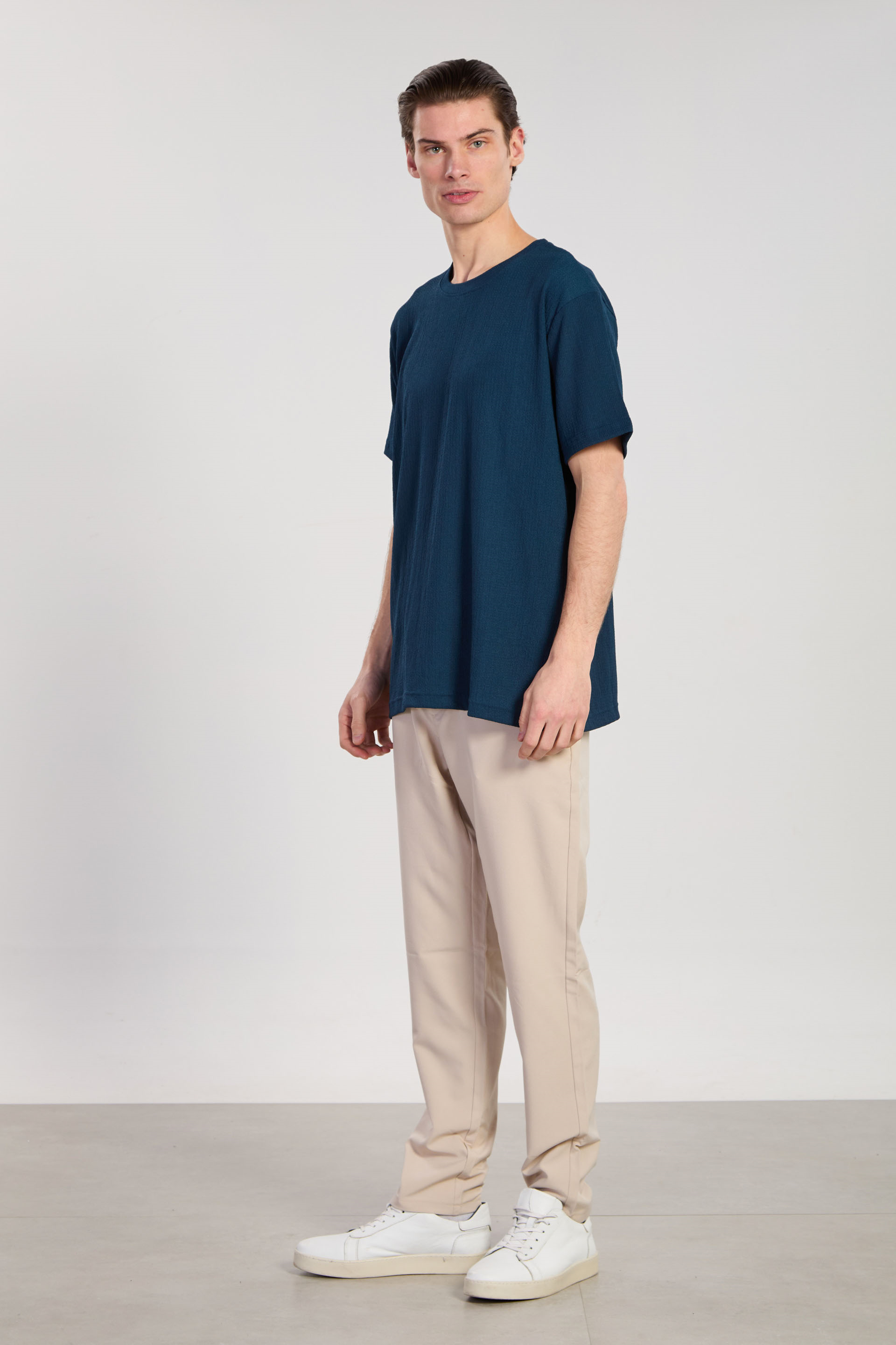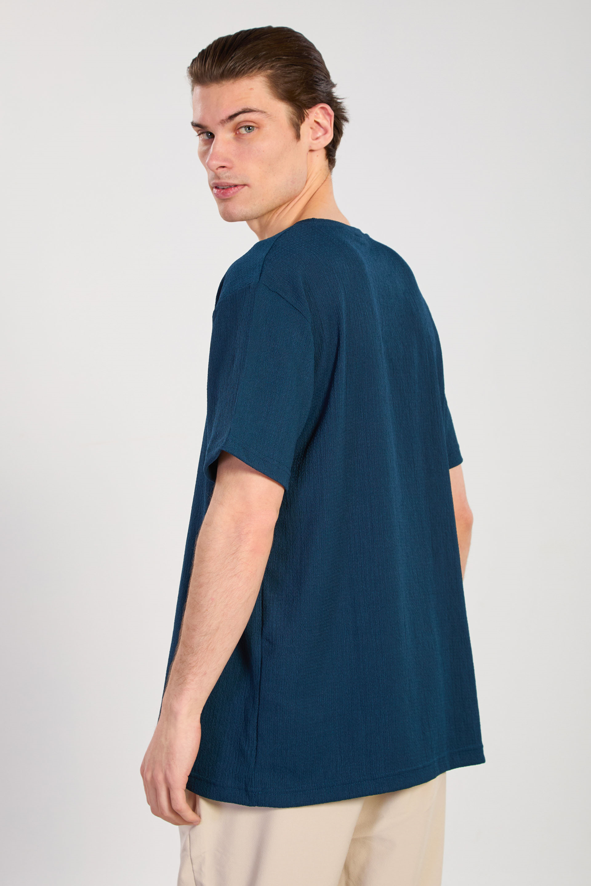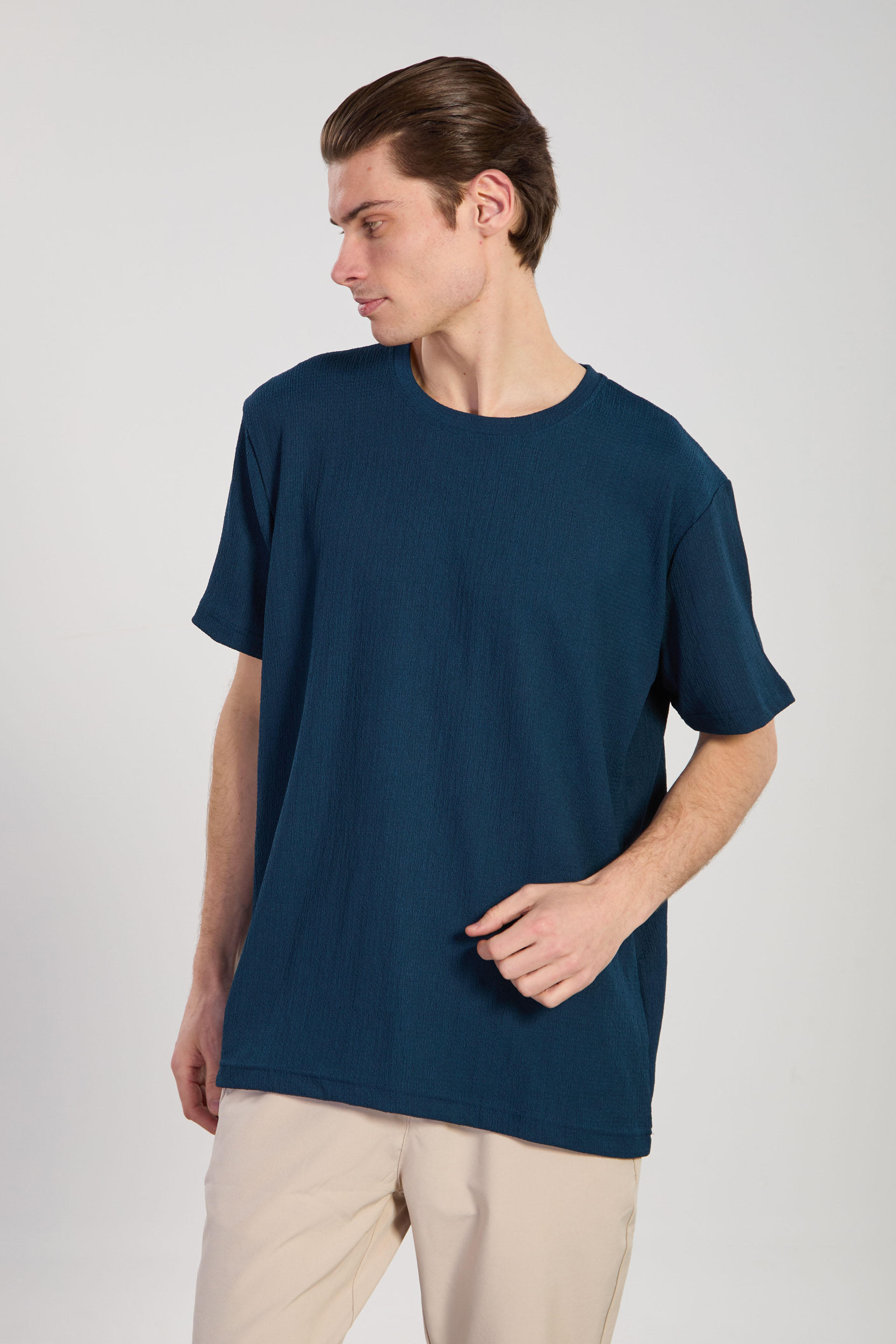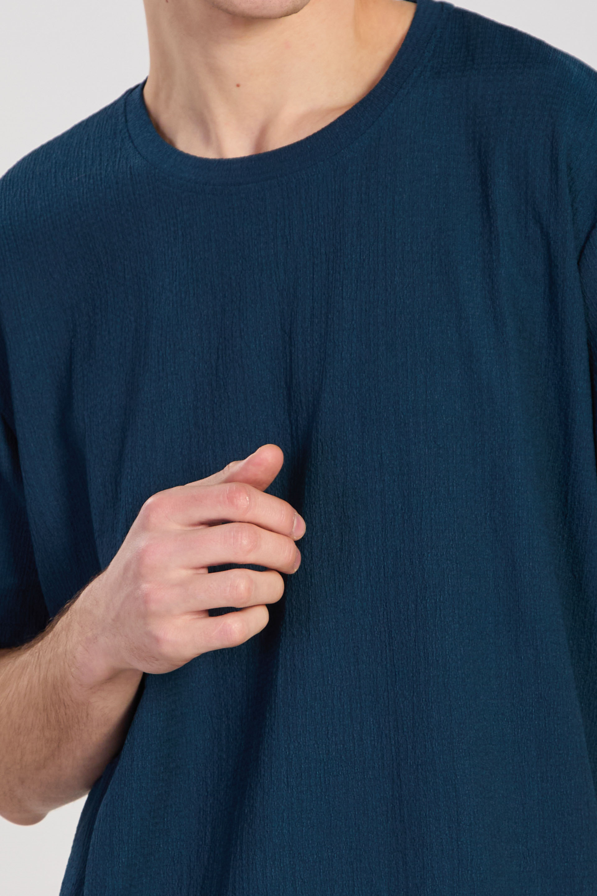 Erkek Bisiklet Yaka Bürümcük T-Shirt - Petrol