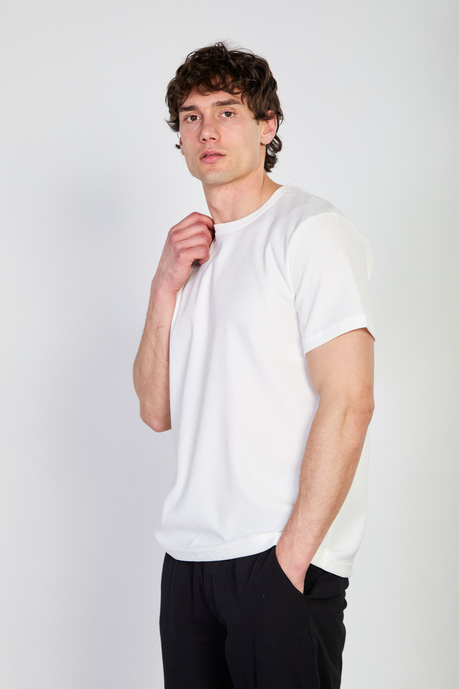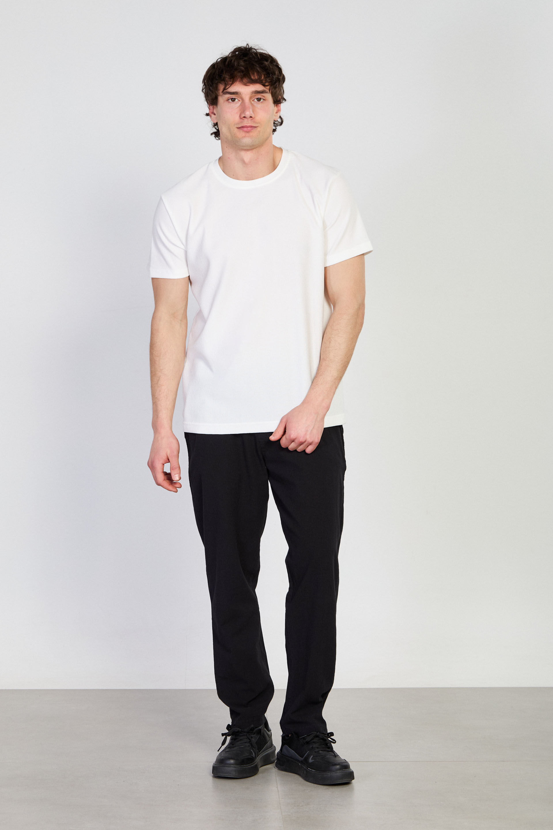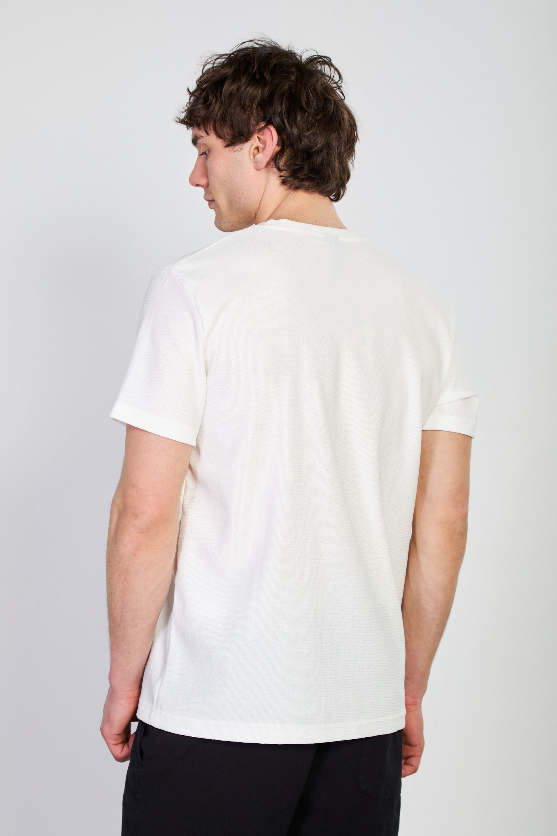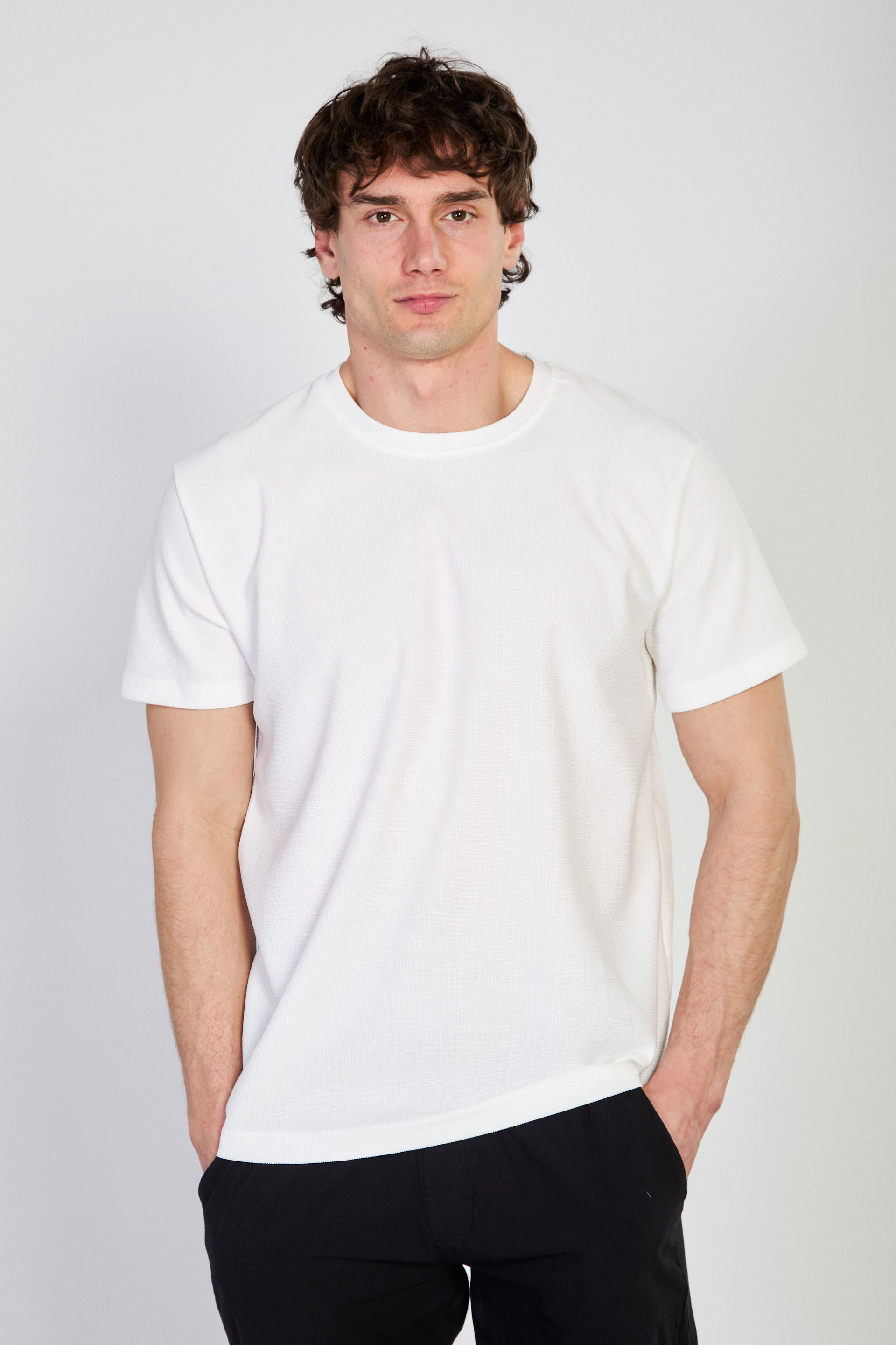 Erkek Bisiklet Yaka Dokulu T-Shirt - Beyaz