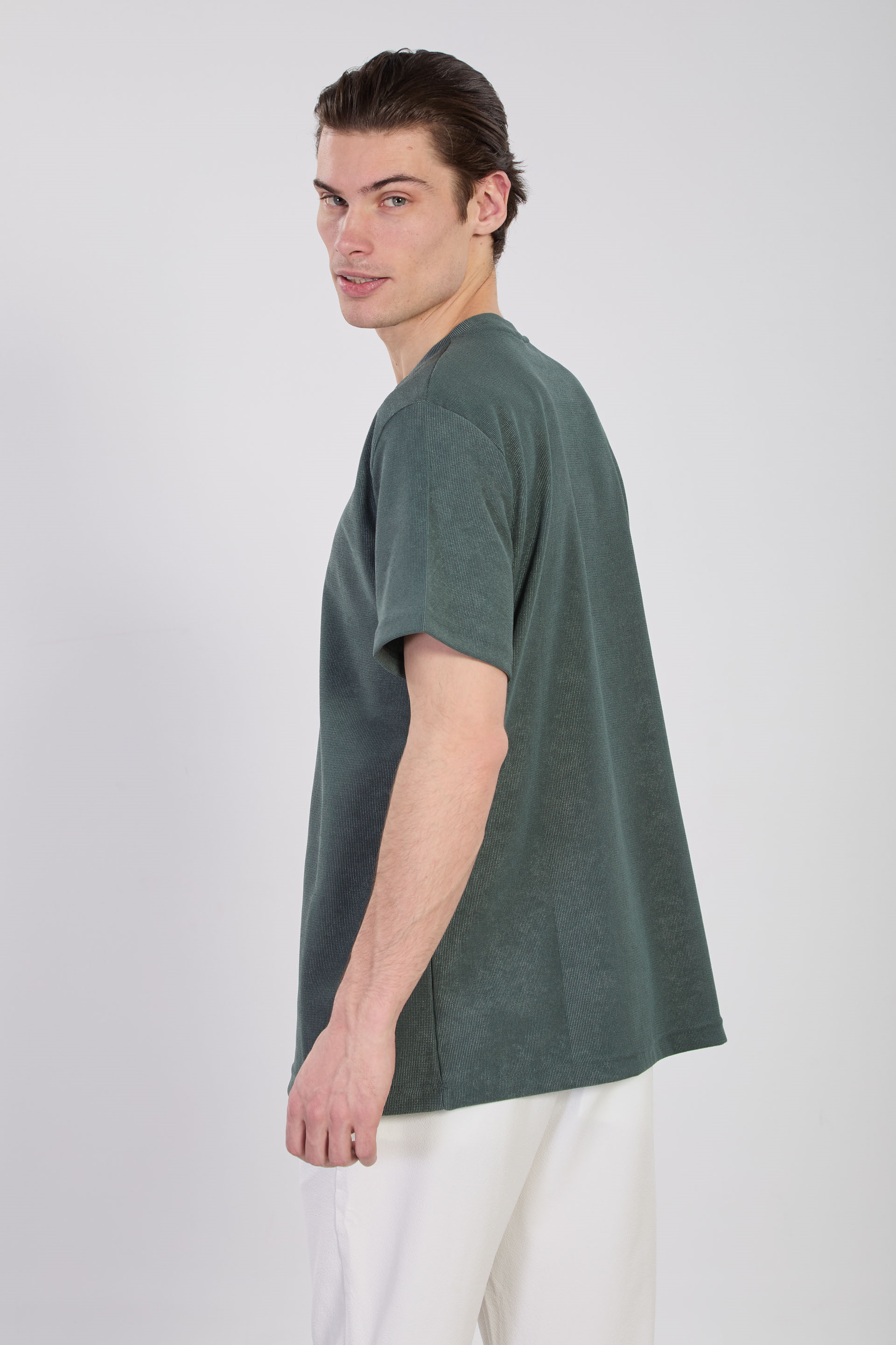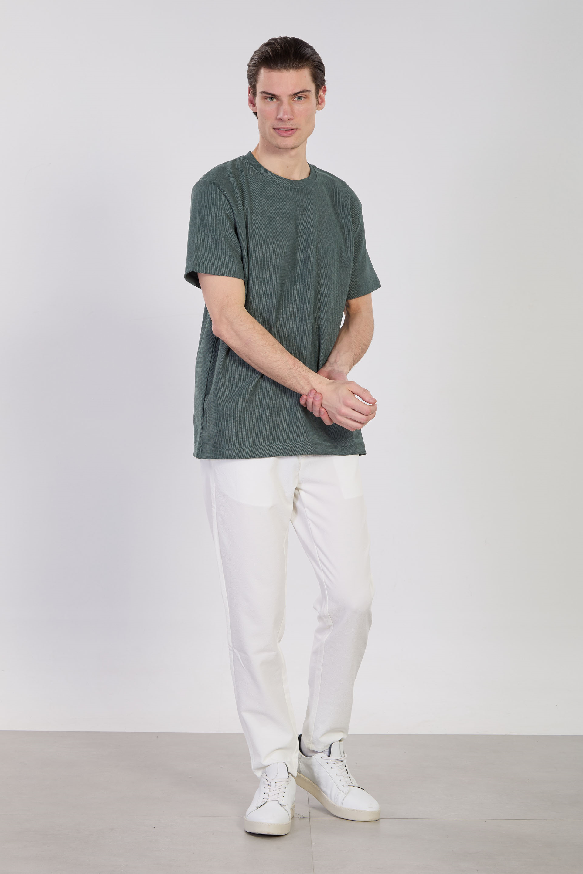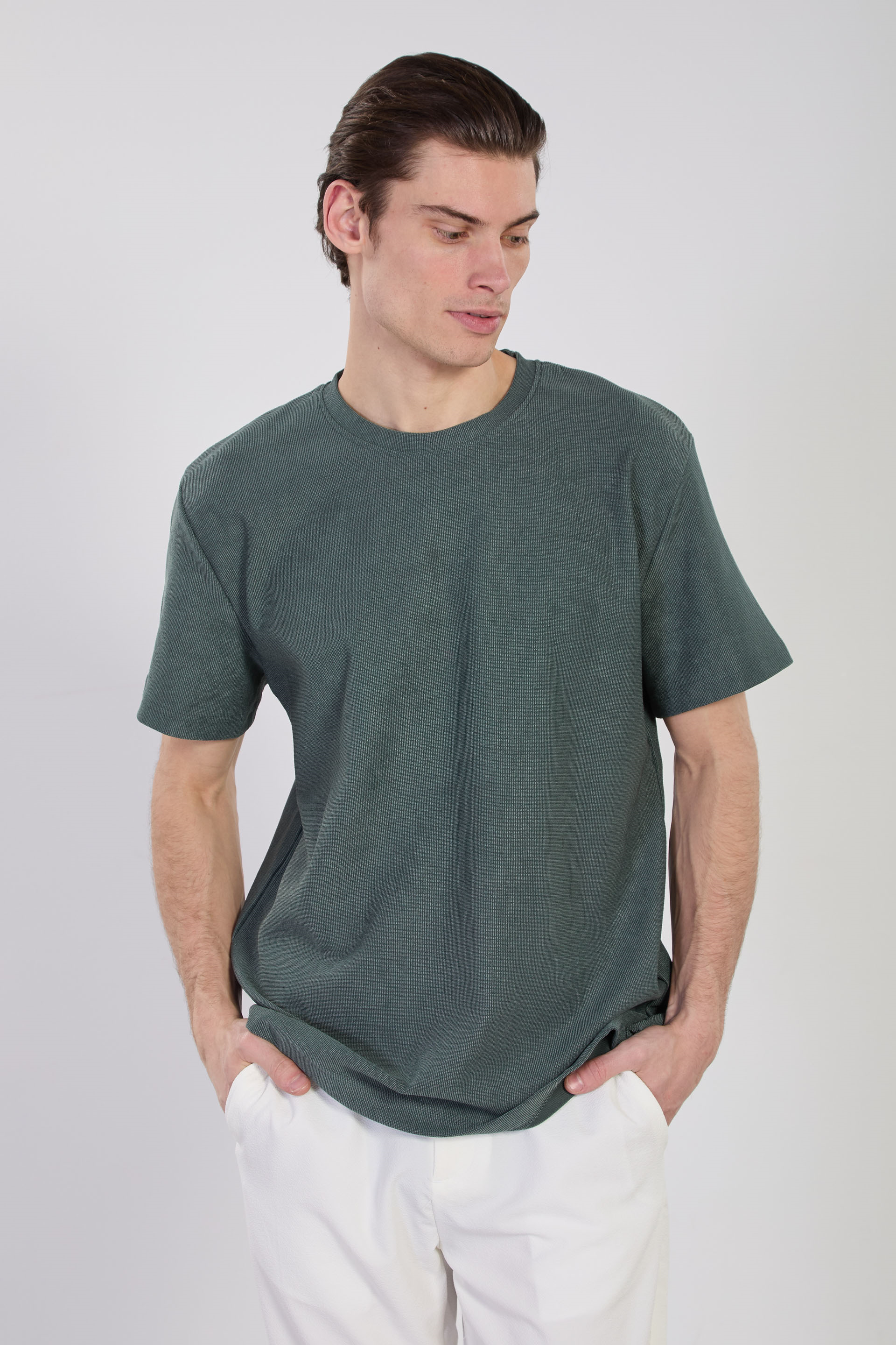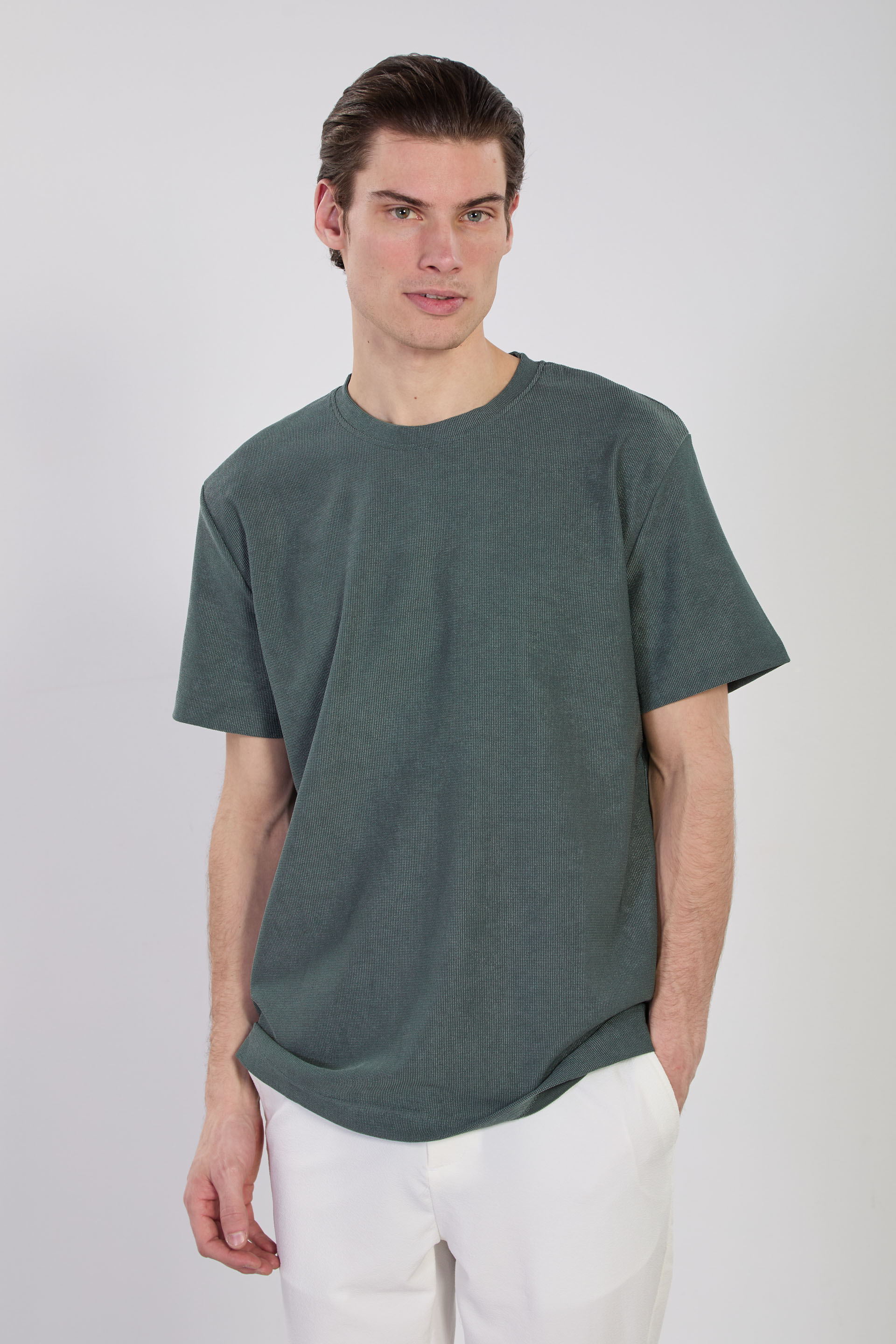 Erkek Bisiklet Yaka Dokulu T-Shirt - Haki