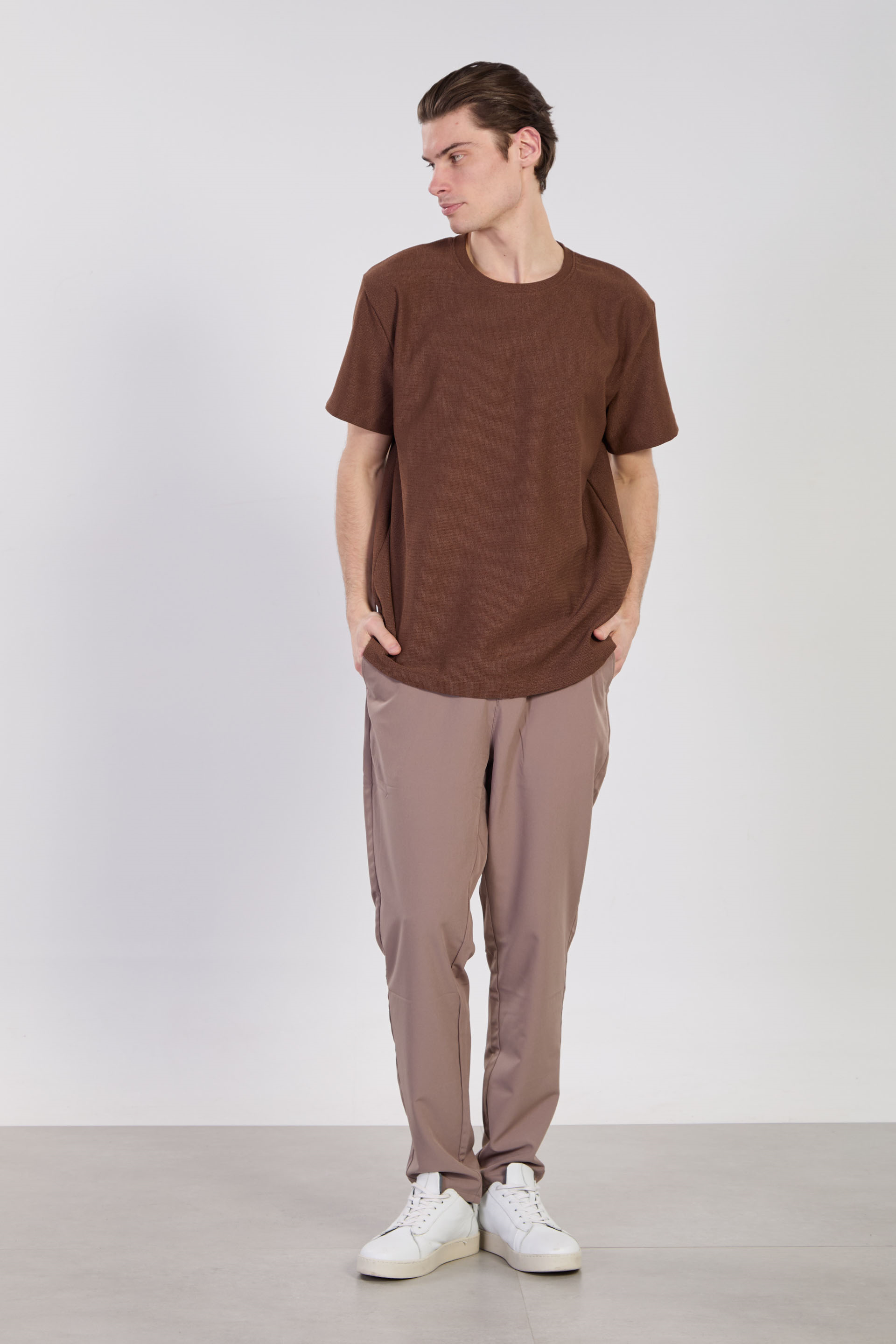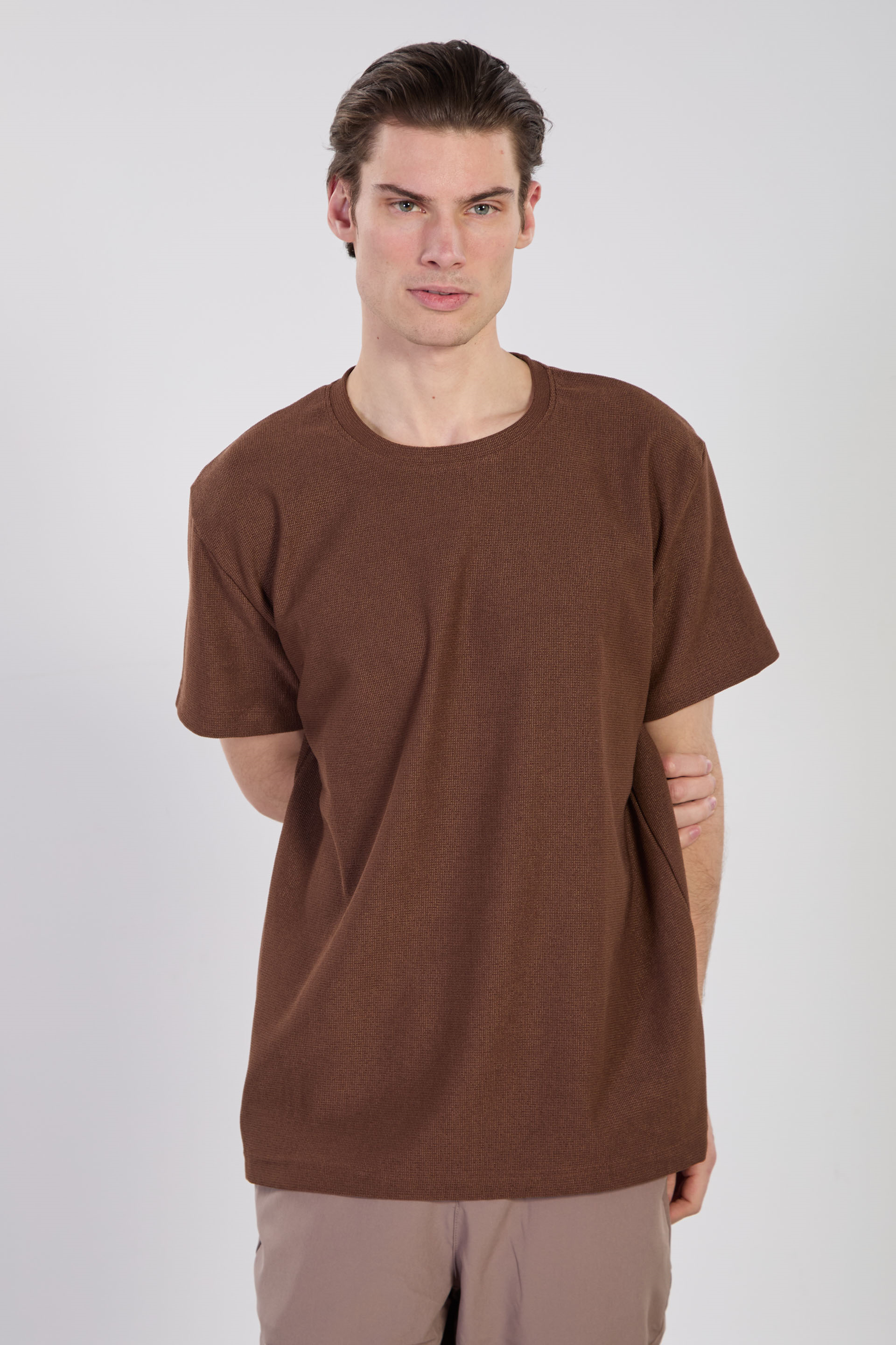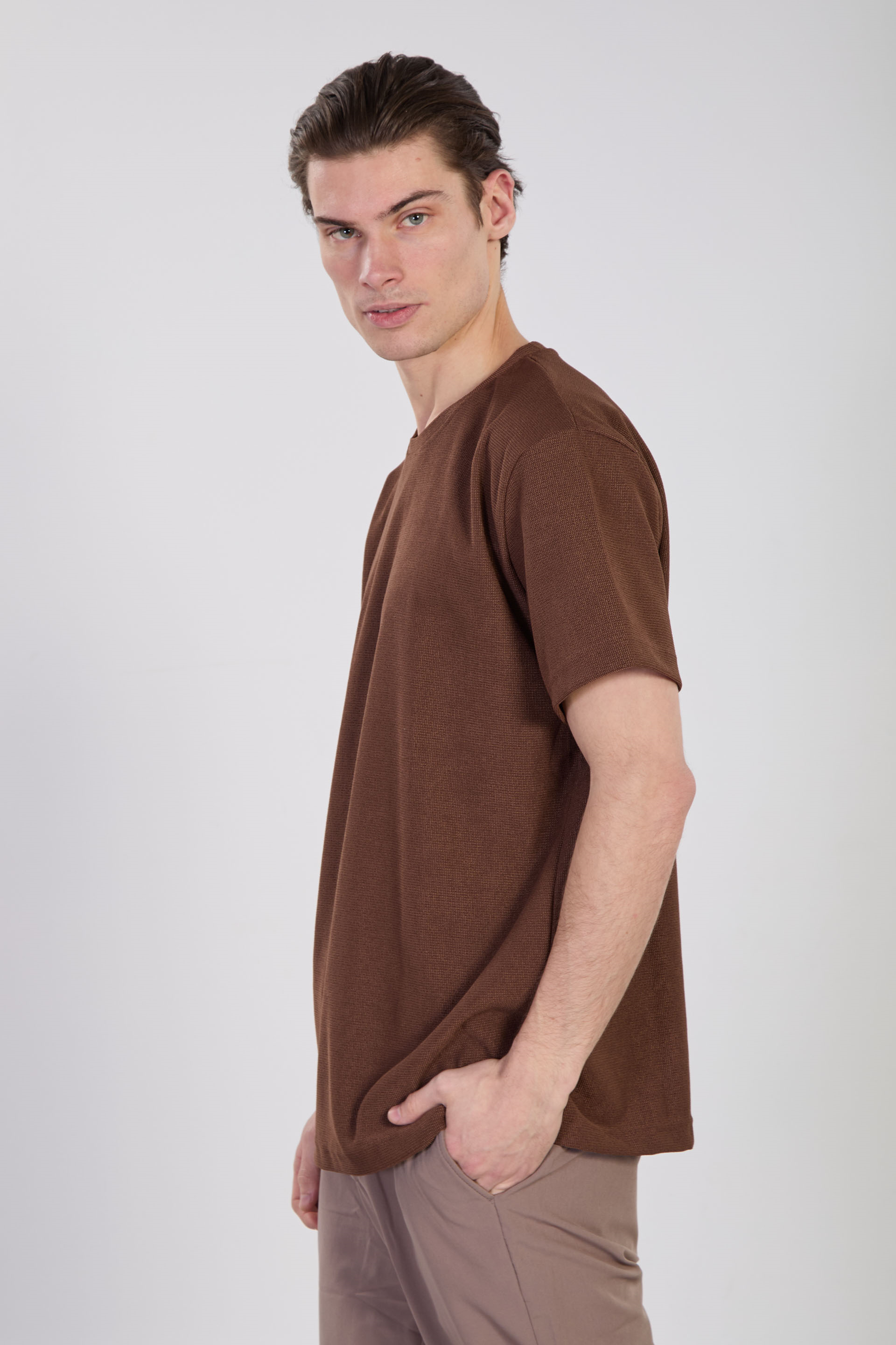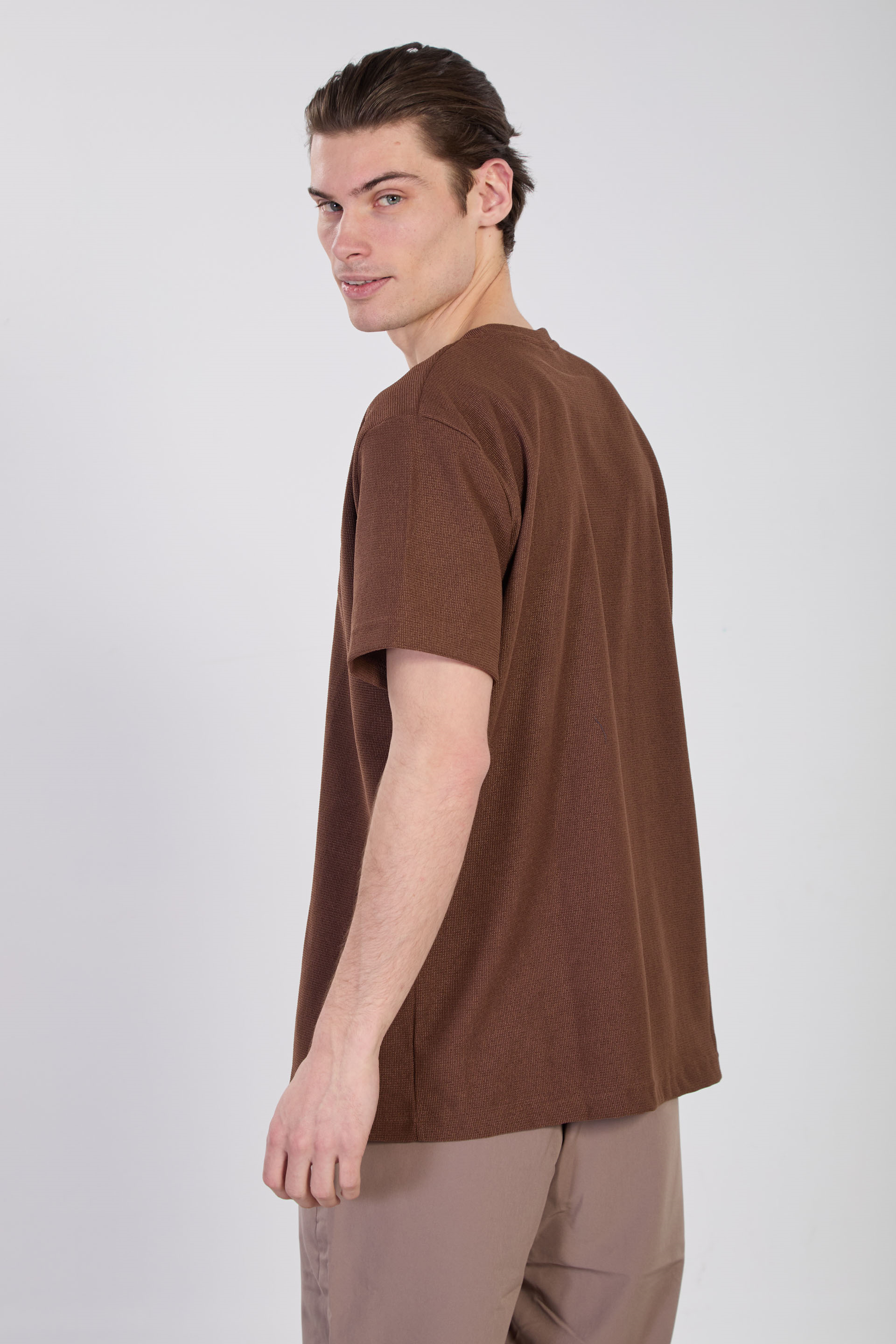 Erkek Bisiklet Yaka Dokulu T-Shirt - Kiremit