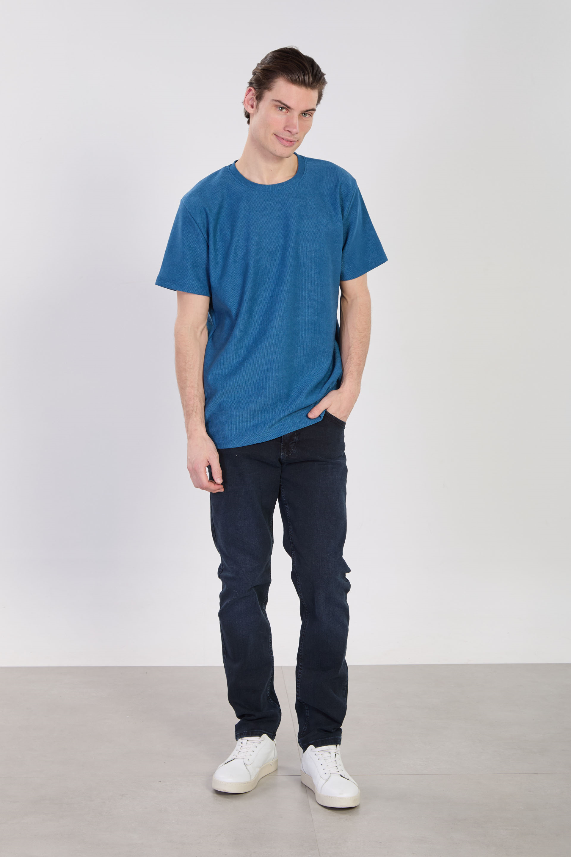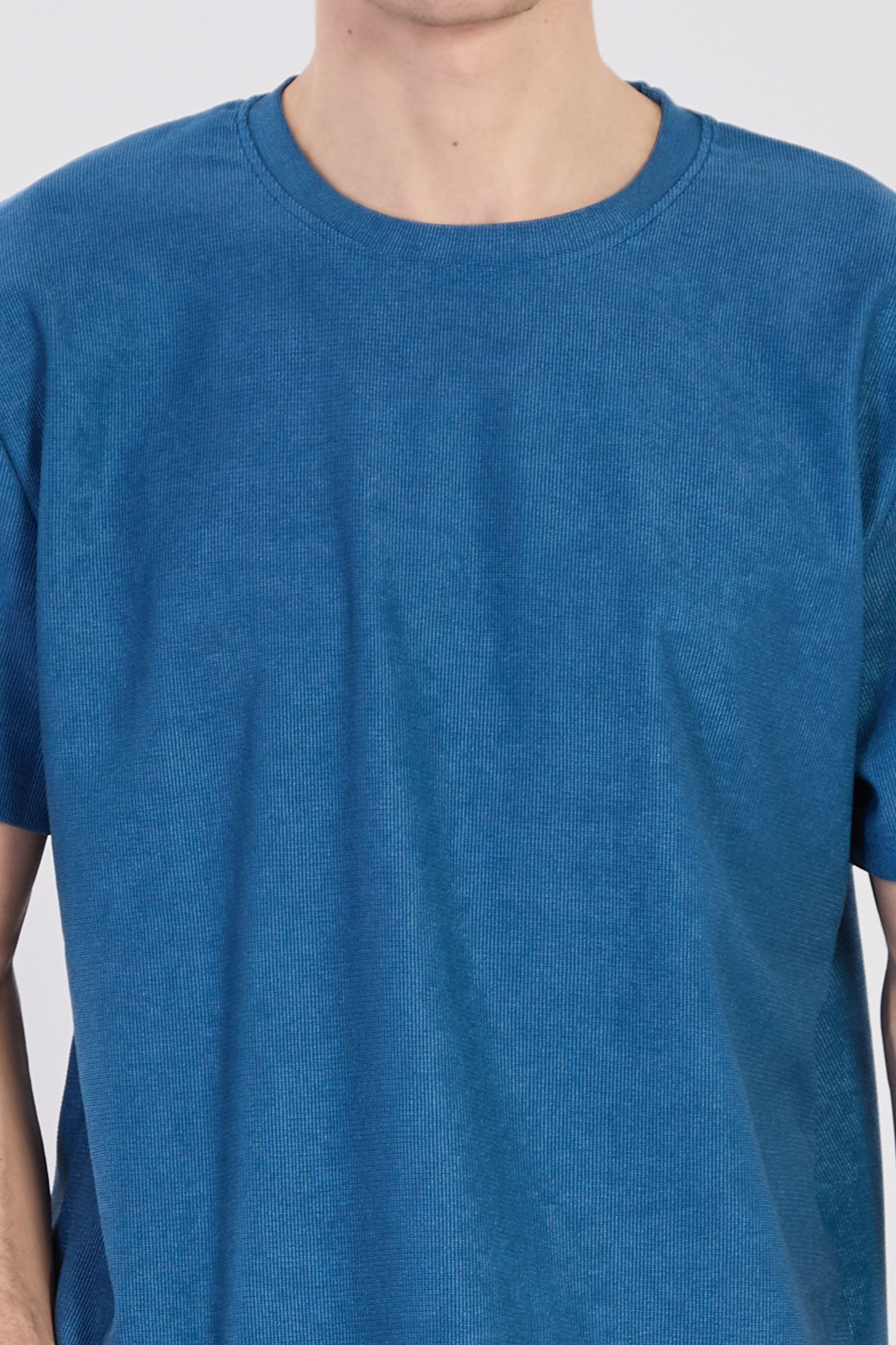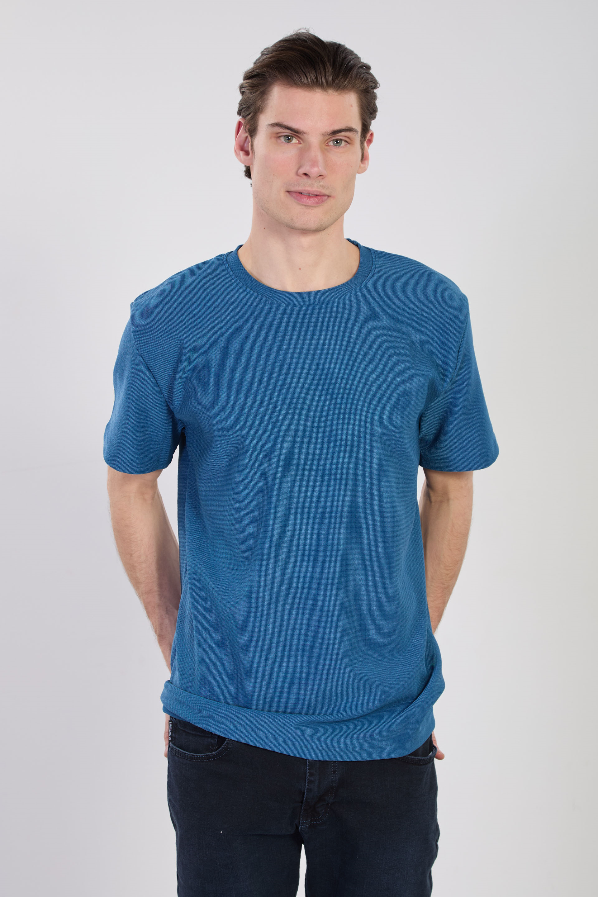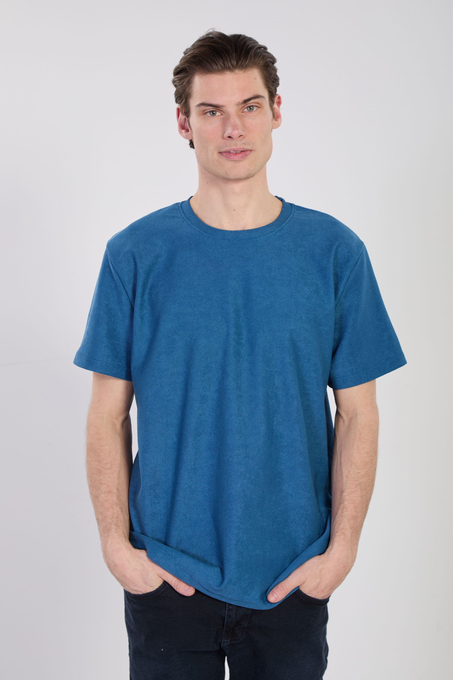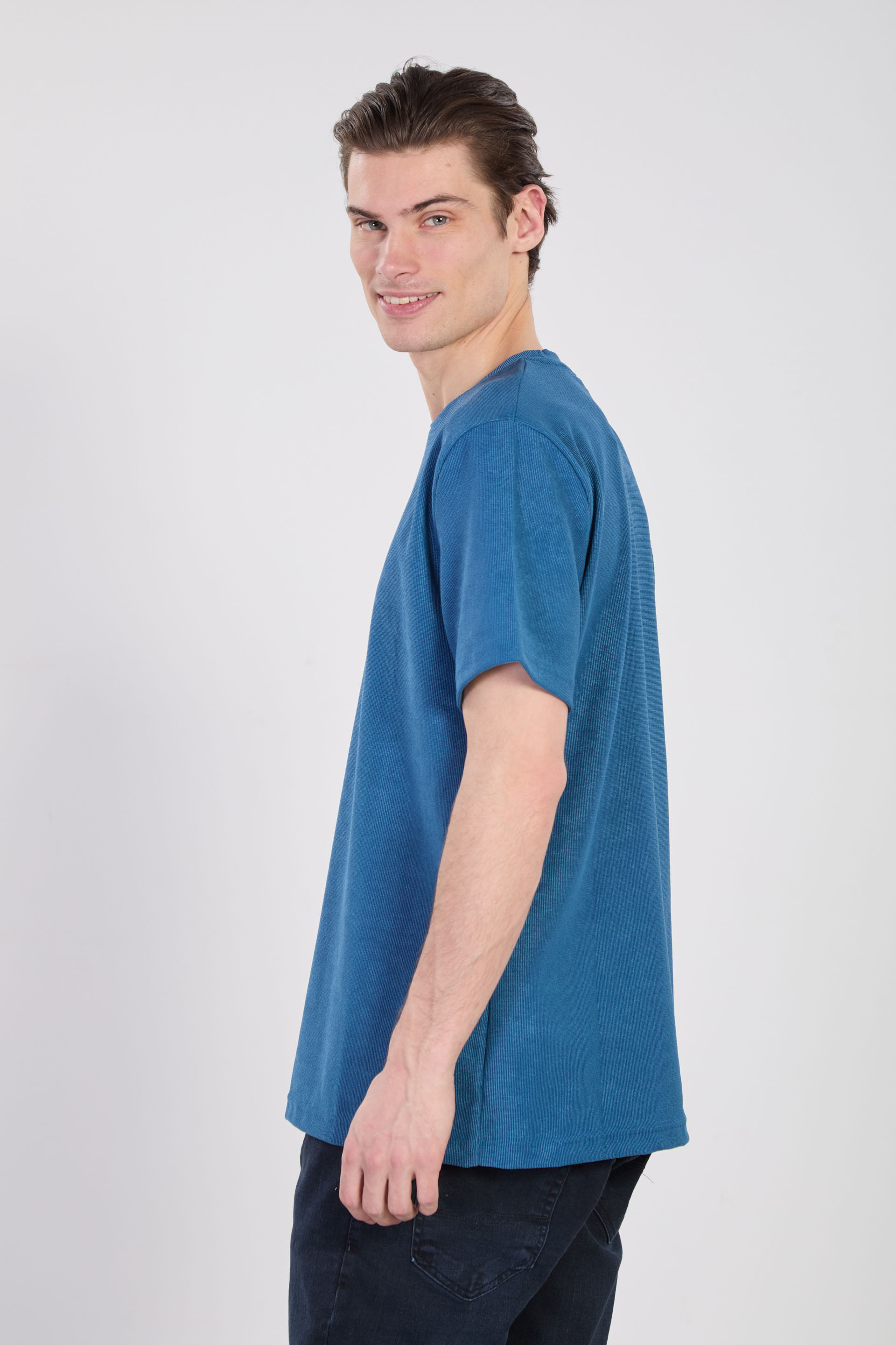 Erkek Bisiklet Yaka Dokulu T-Shirt - Petrol