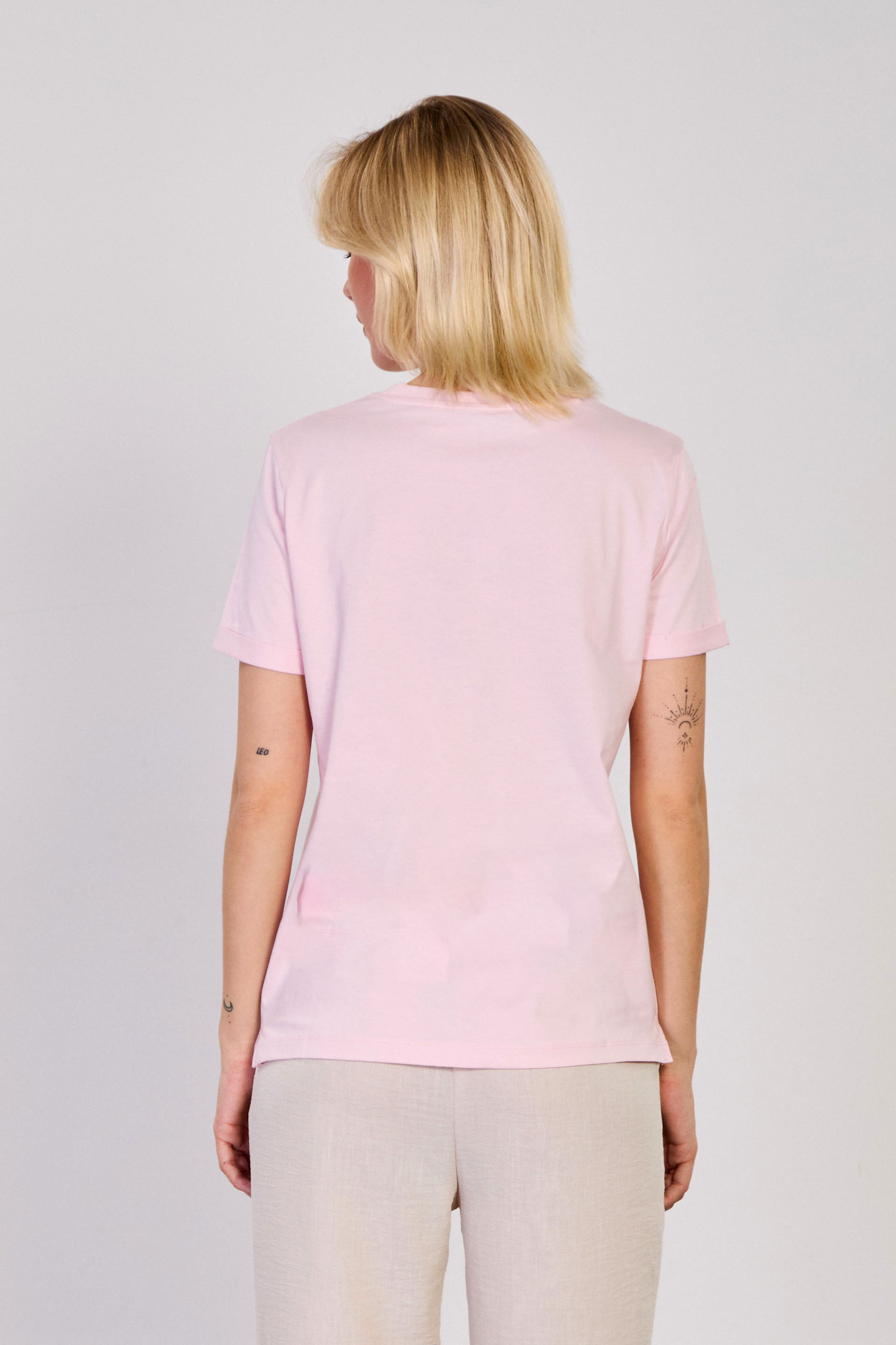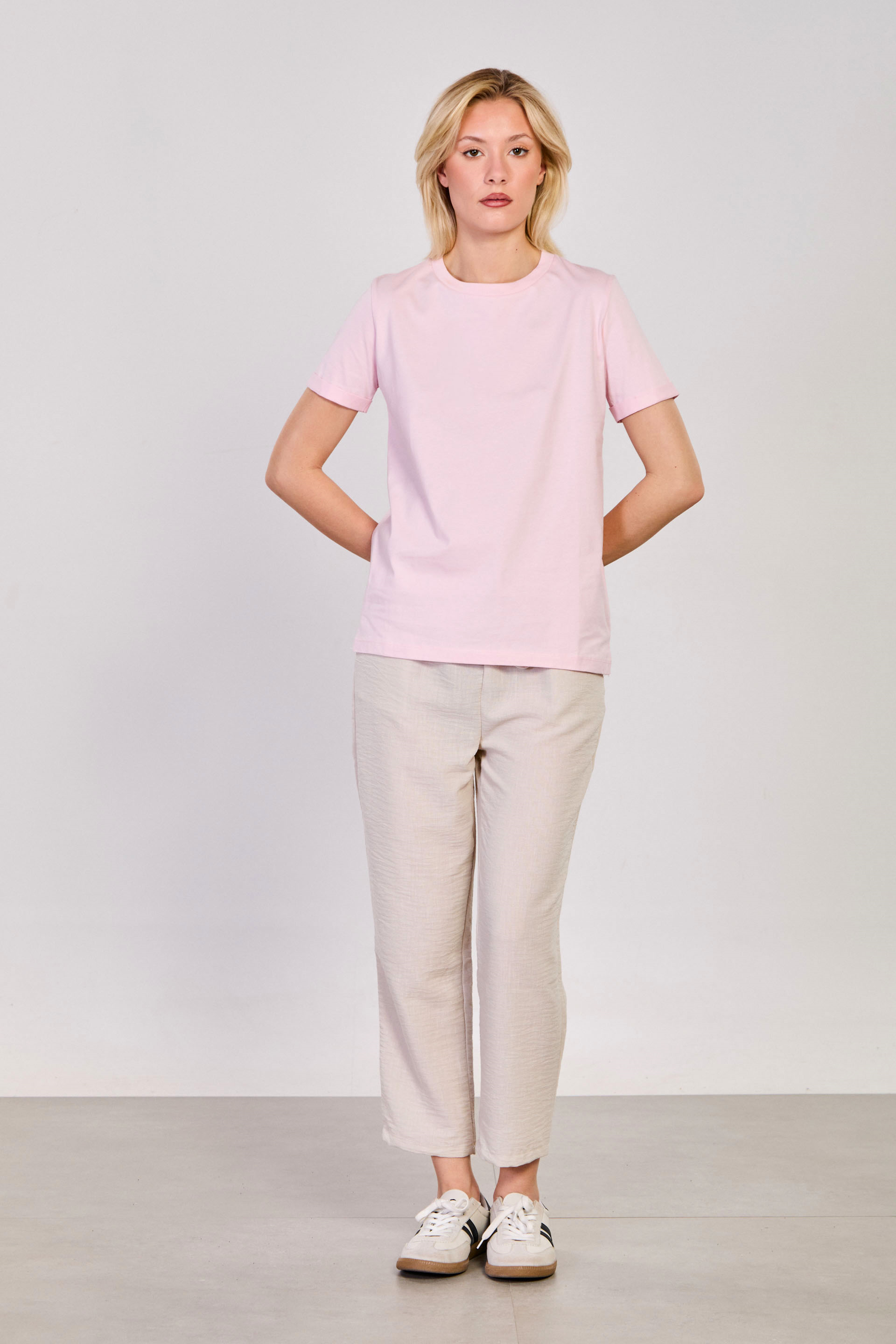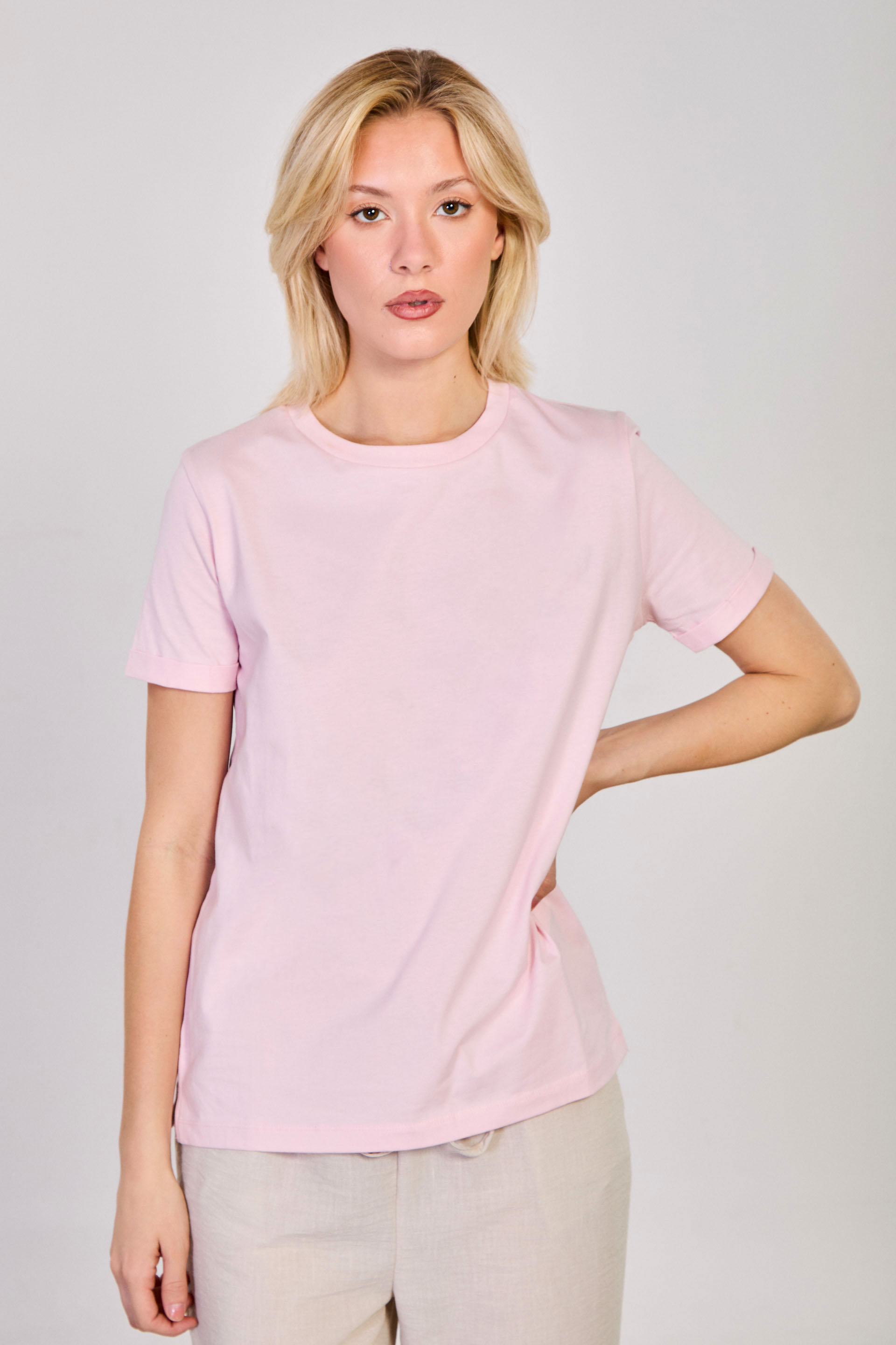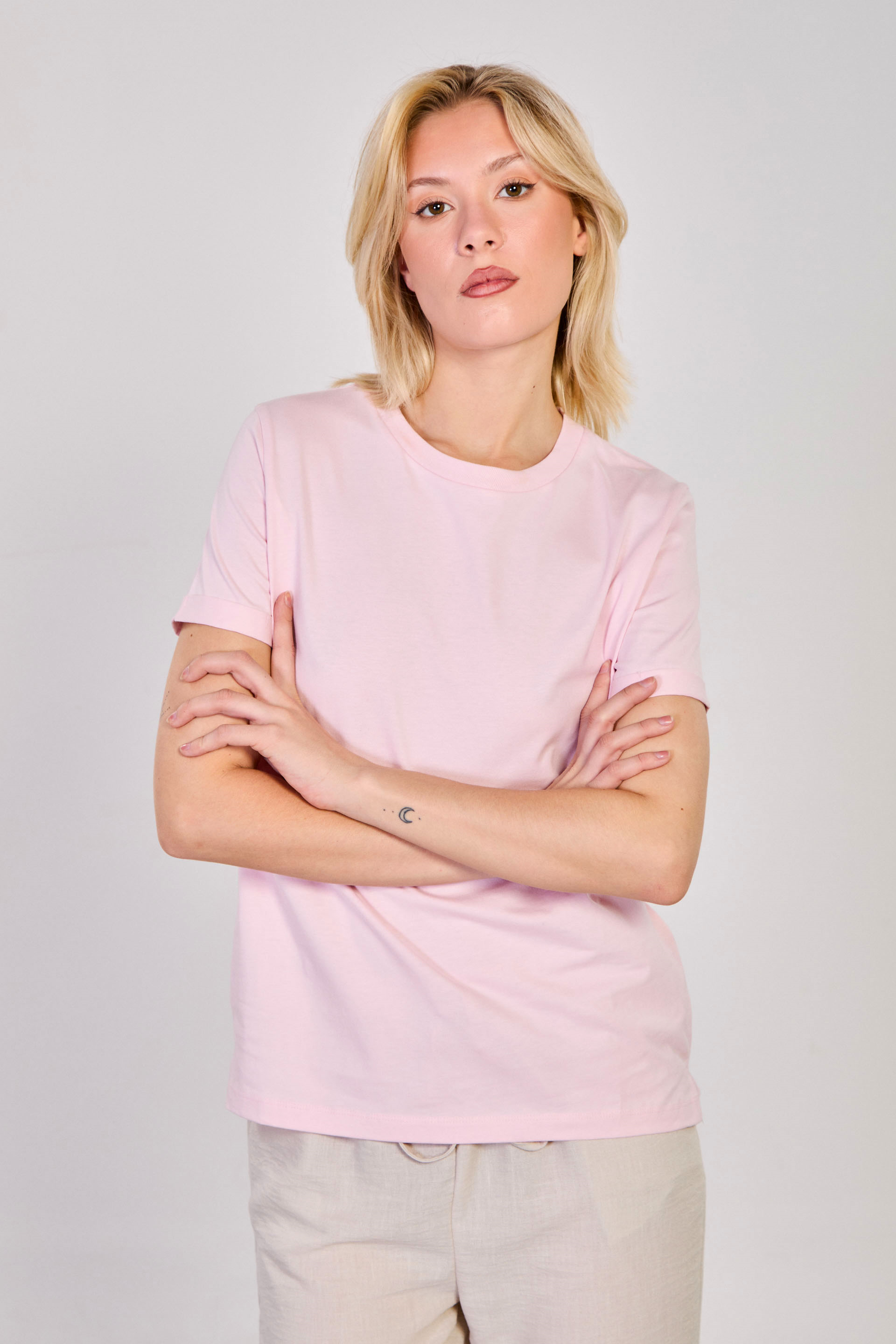 Kadın Bisiklet Yaka Double Kol Basic T-Shirt - Toz Pembe